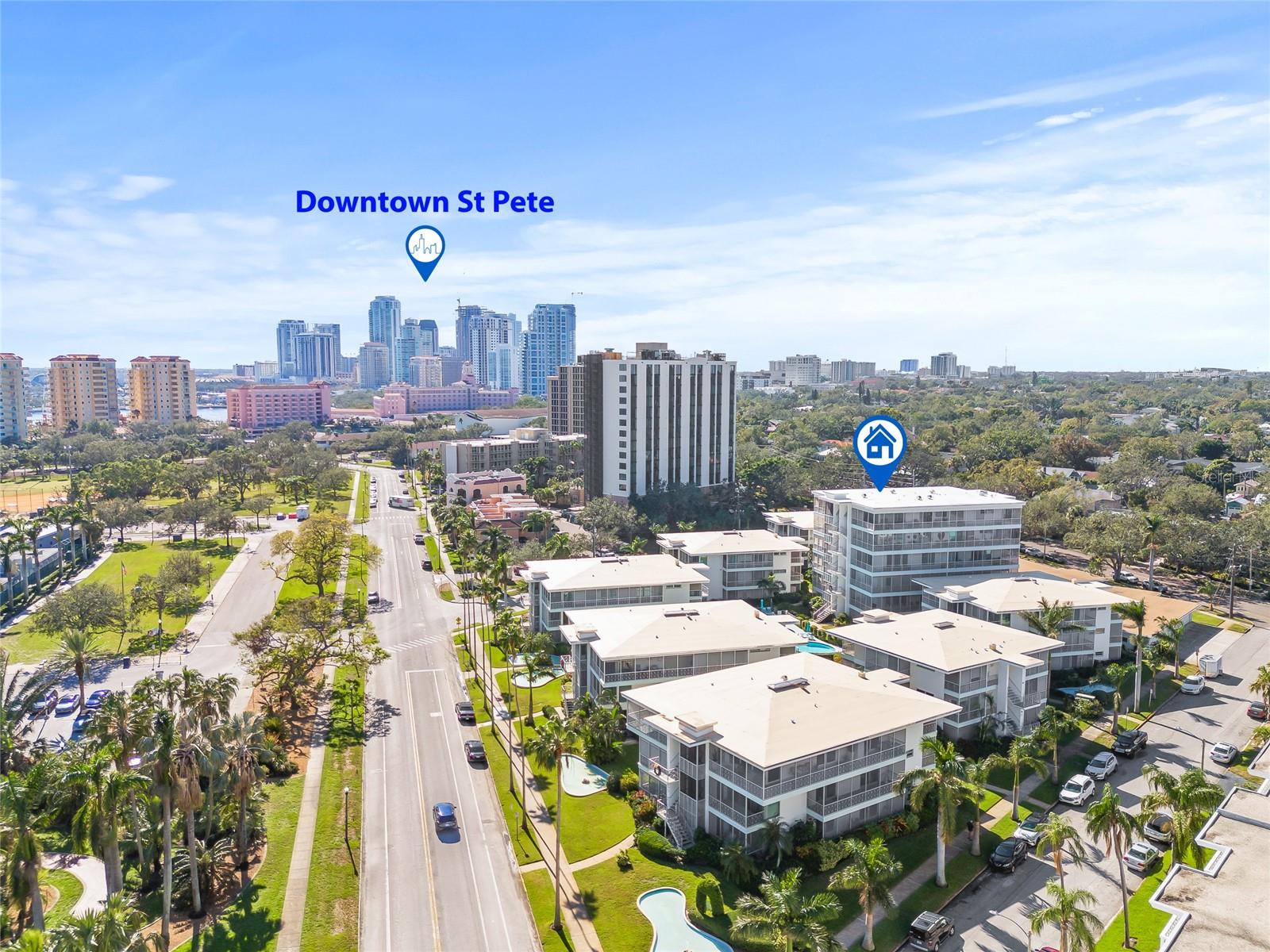 Take advantage of this prime location in the heart of St. Petersburg with this thoughtfully updated 1-bedroom, 1-bath lock-and-go condo in the desirable Whispering Waters 55+ community. Built in 1959, Whispering Waters is a beautifully landscaped complex consisting of 66 condos spread across 8 buildings, creating a serene and private environment. This first-floor residence has been renovated with many modern upgrades while preserving its original charm. Enjoy a spacious 360 sq. ft. wrap-around screened-in porch, perfect for relaxing while soaking in Florida’s balmy winter breezes. The condo features high-quality new flooring, including stunning tile and real tongue-and-groove vintage wood, adding warmth and character throughout. The entire space has been freshly painted after the popcorn ceiling was removed, and all new dual-glazed sliders were installed, filling the home with natural light. The kitchen has been thoughtfully updated and resembles a Ferrari theme, with new cabinets, a reoriented layout for better functionality, and new plumbing. It also has brand-new appliances, and is. Both the HVAC (17 SEER) and electrical systems are completely new. The bathroom has also received a fresh update, with new fixtures and finishes. Additional features include hurricane shutters and a private garage for added convenience. With all utilities included in the affordable monthly maintenance fee, this condo offers easy, low-maintenance living. The well-kept complex includes a pool, shuffleboard court, on-site laundry, and elevators. Enjoy everything St. Pete has to offer, with North Shore Park just across the street, featuring walking paths with scenic views of Tampa Bay, tennis courts, playgrounds, and beach access. Beach Drive, only a block away, offers some of downtown’s best dining, shopping, and cultural attractions. Plus, enjoy easy access to major highways, and Tampa International Airport. Don’t miss out on the opportunity to own in this prime location. Schedule your showing today!