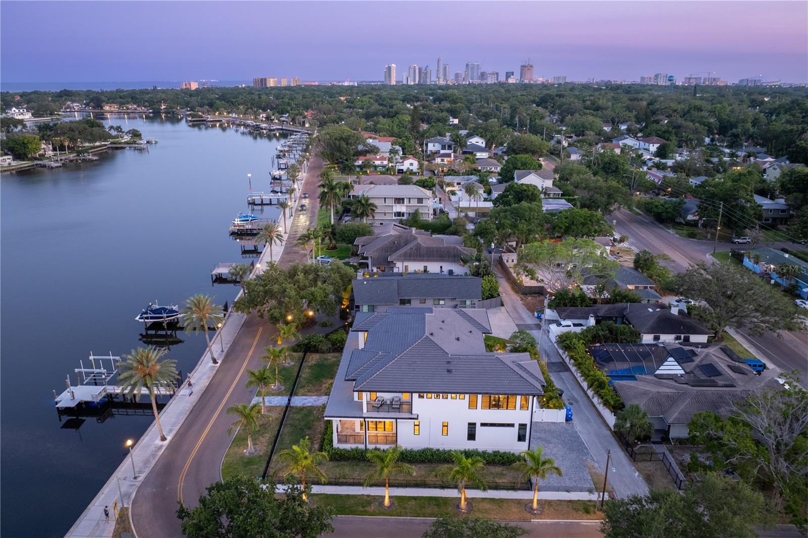 Nestled along the picturesque Coffee Pot Bayou, this luxurious waterfront estate embodies refined living at every turn. Offering 4 bedrooms, 5.5 baths spanning a spacious 5,801 sq ft of sheer indulgence, this 2022 contemporary masterpiece sets a new standard for waterfront living. Upon arrival, guests are greeted by an expansive wrap-around porch, offering panoramic views of the tranquil bayou waters. As natural light floods the interiors through floor-to-ceiling impact-rated windows and doors, the 11’ ceilings enhance the sense of openness, creating an airy ambiance. Designed for culinary enthusiasts, the chef's kitchen boasts top-of-the-line appliances, including a SubZero built-in refrigerator, freezer, wine chiller, a Wolf 6 burner gas range, and a Wolf built-in 30” convection oven. Taj Mahal Quartzite stone countertops and backsplash, custom cabinetry, and an expansive walk-in pantry, seamlessly blend style & functionality. For ease of cooking and entertaining this kitchen features two islands, each with stunning waterfall countertops and a large dining room off the kitchen that is surrounded by expansive windows overlooking Coffee Pot Bayou. The grandeur continues to the living spaces, where a custom media wall crafted from marble serves as the focal point, complemented by an 85-inch framed TV, surround sound & a built-in fireplace. The primary suite epitomizes luxury. With a private balcony overlooking the bay and park, 2 custom walk in closets, and an ensuite bath where indulgence knows no bounds. Features of the primary bath that make it truly one of a kind, include marble flooring, an oversized soaking tub, a spacious shower with multiple shower heads & body jets, & a wet bar with sink and beverage fridge. The guest suites each offer unparalleled comfort and privacy, and the 4th bedroom, currently transformed into a vibrant party room, boasts a full wet bar, pool table, and custom built-in closets. Take the convenient 3 stop elevator or one of the beautiful custom staircases to the downstairs office, which doubles as a 5th bedroom, and features a full bathroom as well as direct access to the outdoor entertainment and pool area.Step beyond the impeccably designed interiors into a realm of outdoor splendor. Encircled by lush landscaping and marble decking, a heated saltwater pool & spa, complete with a captivating waterfall, beckons for indulgent relaxation. Entertain in style on the lanai, furnished with a wet bar, Wolf BBQ grill, Sub Zero refrigeration, and a natural gas fireplace, all under the glow of a 75” outdoor TV accompanied by outdoor speakers. This stunning estate also comes with your private dock that features a 13k boat lift & kayak/paddleboard drop-downs. Here, indulge in direct access to limitless aquatic escapades or simply bask in the tranquility of the peaceful waters and playful marine life. Meanwhile, the 2 car garage, with its oversized dimensions and 20’ ceilings, caters to the needs of automotive enthusiasts. For the utmost convenience and security, this home is equipped with state-of-the-art technology, including a Savant Home system, Lutron automatic shades, LED mood lighting, and a comprehensive security system with exterior cameras and keypads. With its prime waterfront location, panoramic views of Coffee Pot Bayou, perfect blend of elegance and innovation, and unparalleled attention to detail, this residence redefines luxury living offering a lifestyle of unparalleled sophistication and serenity.