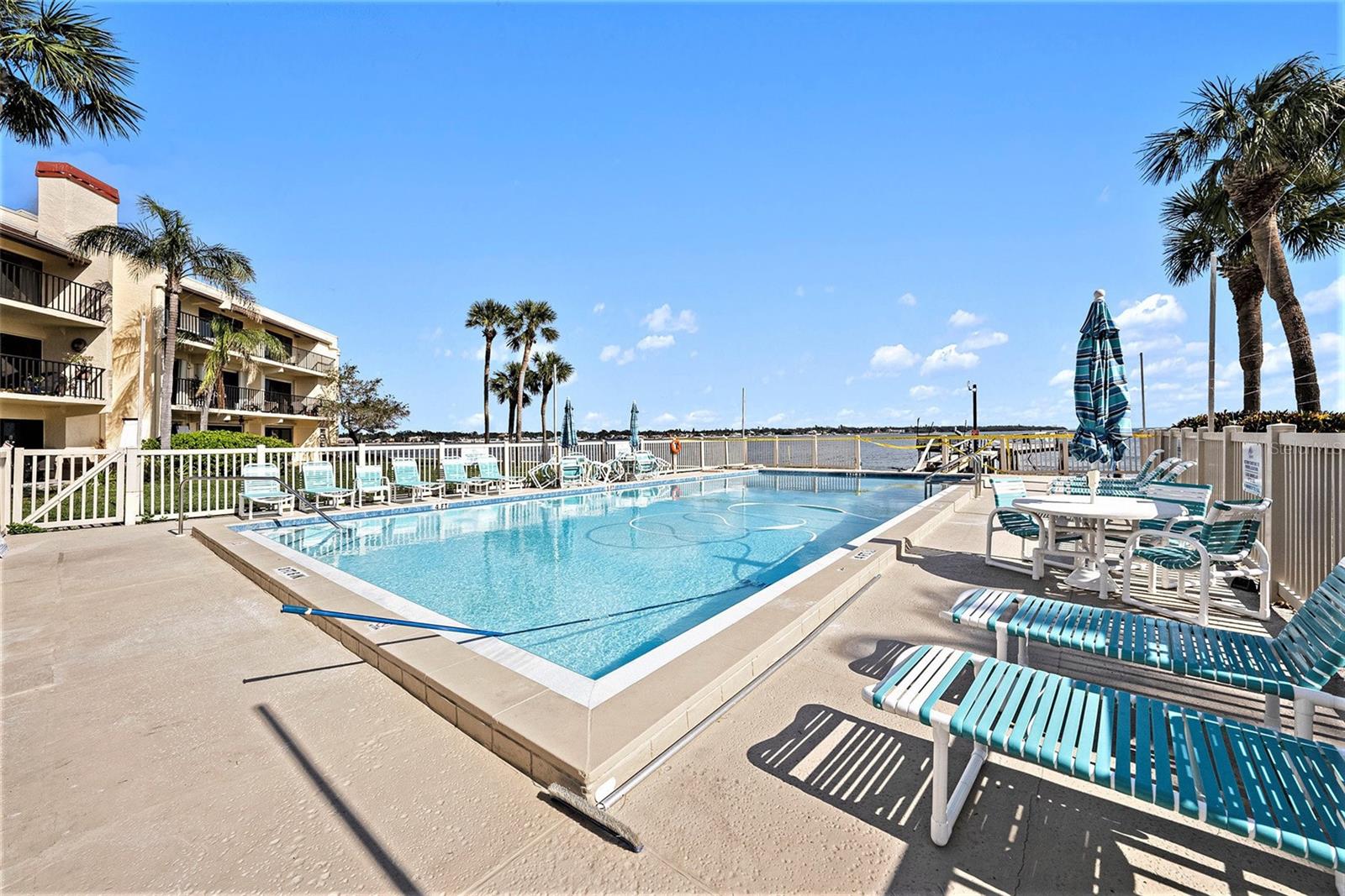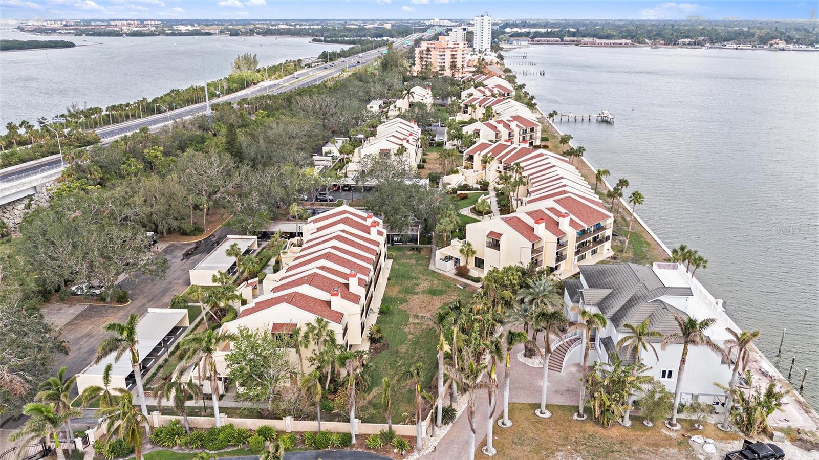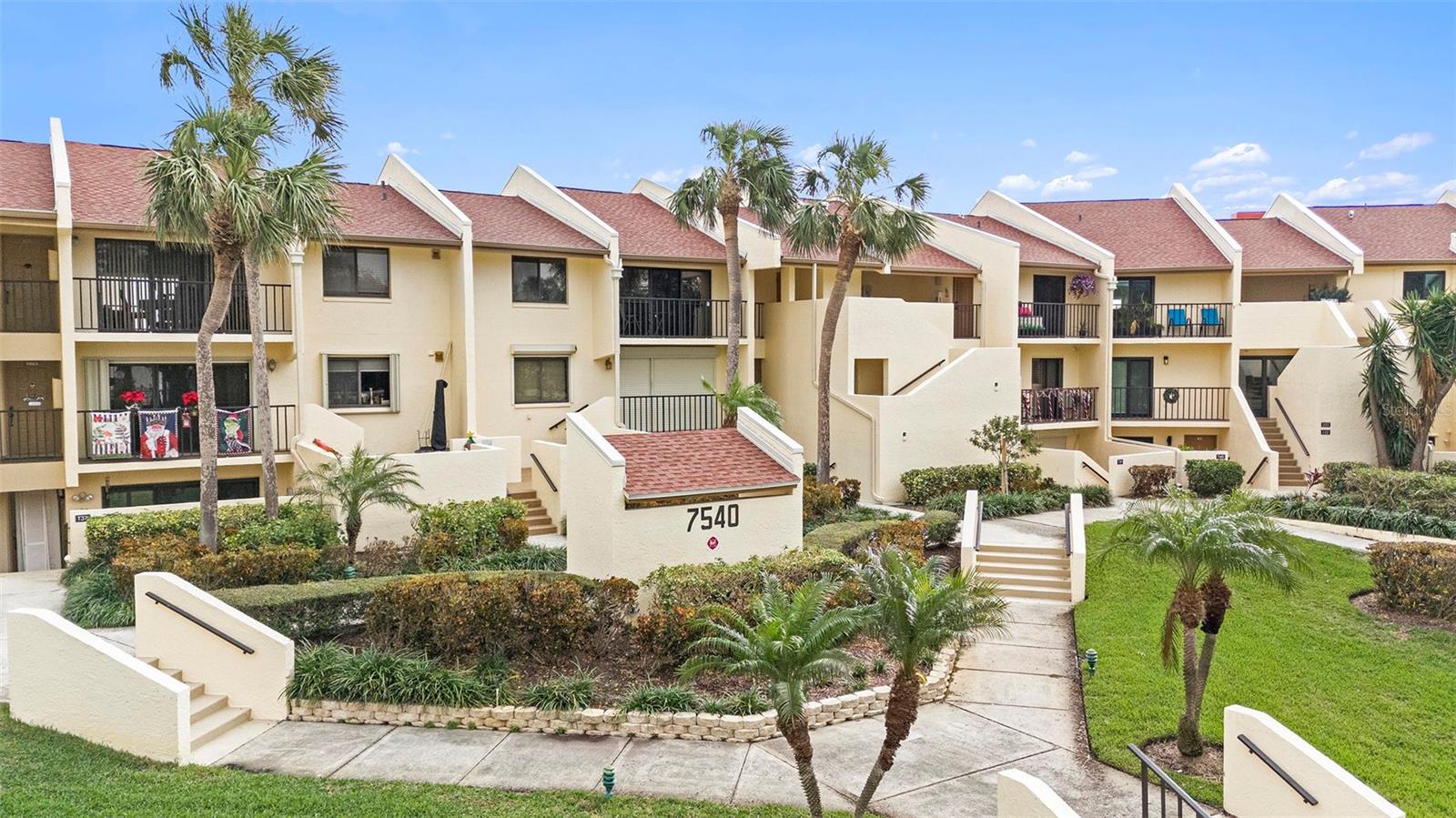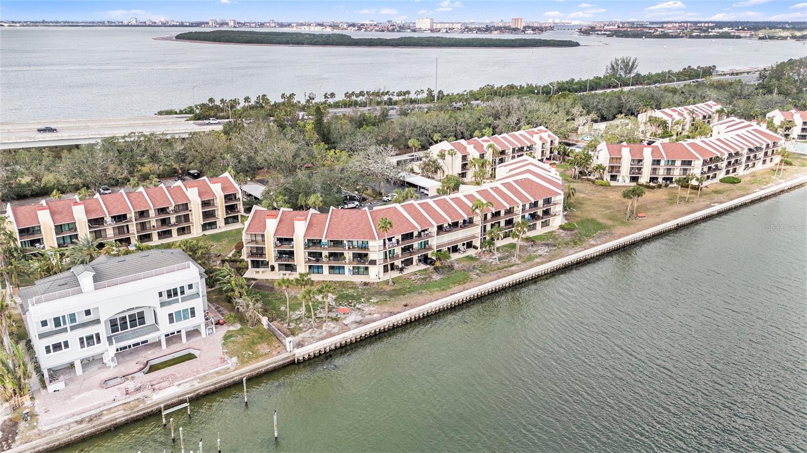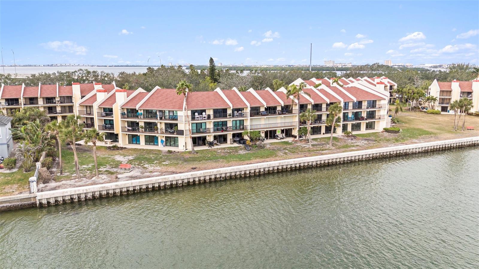 One or more photo(s) has been virtually staged. Coastal Living with Panoramic Bay Views – Top-Floor Condo Retreat Embrace the coastal lifestyle in this spacious top-floor condo, where breathtaking bay views greet you from nearly every room. Marvel at panoramic sights of Tampa Bay as dolphins, manatees, and vibrant birdlife provide a daily waterfront spectacle. The well-maintained interior features ceramic tile in the entry, kitchen, and bathrooms, while carpet adds comfort to the living area and both bedrooms. The updated kitchen shines with sleek countertops, a chic subway tile backsplash, natural earth tones, and brand-new stainless steel appliances. Designed for both comfort and entertaining, the open-concept layout connects the vaulted living room and dining area seamlessly. Step outside to enjoy two private balconies: a large main balcony accessible from both the living room and both bedrooms, perfect for savoring your morning coffee or unwinding with a sunset cocktail while soaking in uninterrupted bay views, and a second balcony just off the dining area for added outdoor enjoyment. This bright and inviting home includes two full bathrooms, one of which features a sleek, updated walk-in shower. While lower-level units experienced flooding during the hurricanes, this elevated unit remained untouched. Exterior community upgrades—including the fishing pier, seawall walkway, and landscaping—are currently underway. Additional features include two storage spaces—one private and one assigned in the common area—as well as a covered, assigned parking space. The condo is sold fully furnished with housewares included, making it truly move-in ready. The HOA provides incredible value—your monthly dues include Cable TV, high-speed Internet, Water, Sewer, Trash, Insurance, Community Pool, Escrow Reserves, Exterior Maintenance, Groundskeeping, and Recreational Facilities. You’ll enjoy worry-free living with nearly all utilities and upkeep covered. Community amenities and lifestyle features abound. Enjoy a clubhouse, sparkling pool, sidewalks, and tennis/pickleball courts. For water lovers, the community offers direct access to the Bay/Intracoastal Waterway, a fishing dock, and waterfront access—perfect for kayaking, boating, or simply relaxing by the shore. Located near Maximo Park, Fort De Soto, St. Pete Beach, and downtown St. Petersburg, this home offers the best of coastal living with easy access to beaches, biking trails, kayaking spots, restaurants, and vibrant city life. Whether you're looking for adventure or tranquility, this condo is your perfect piece of paradise.