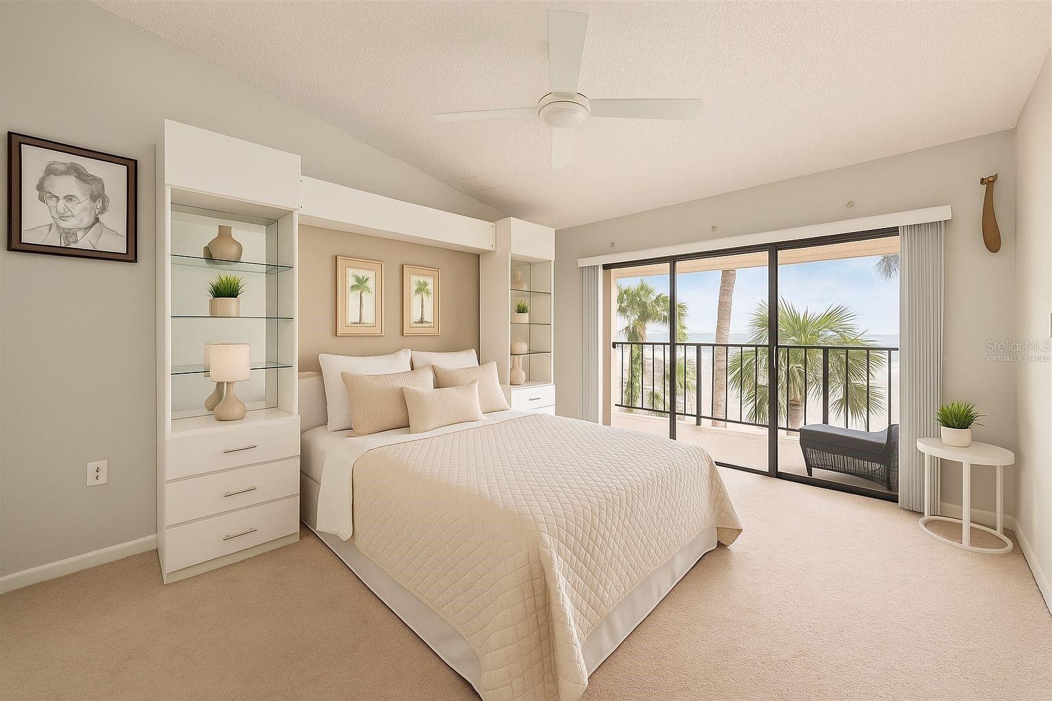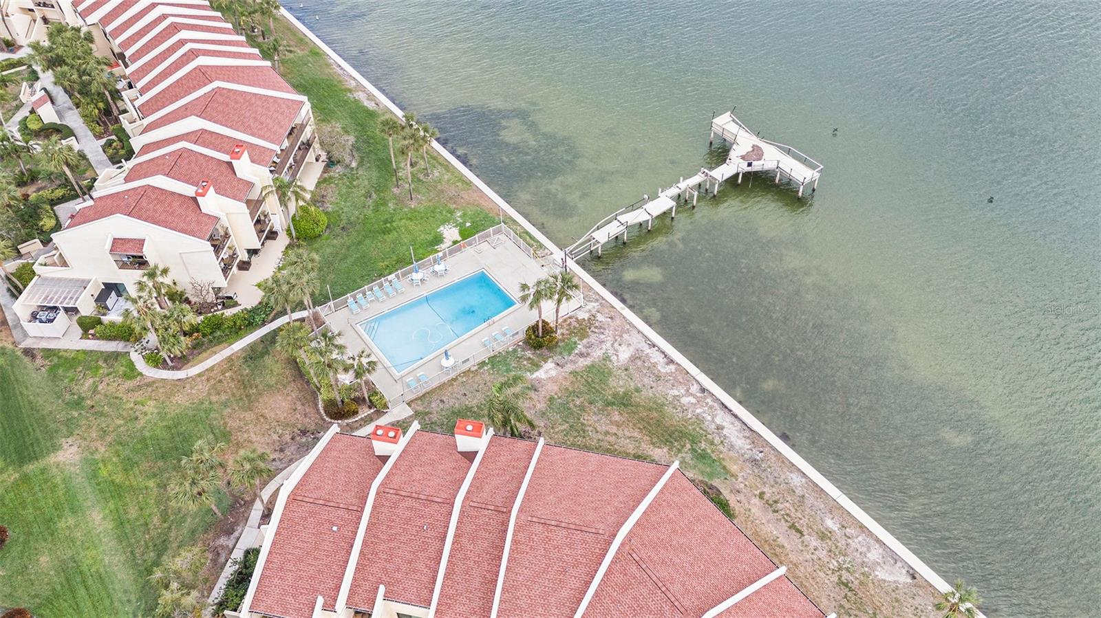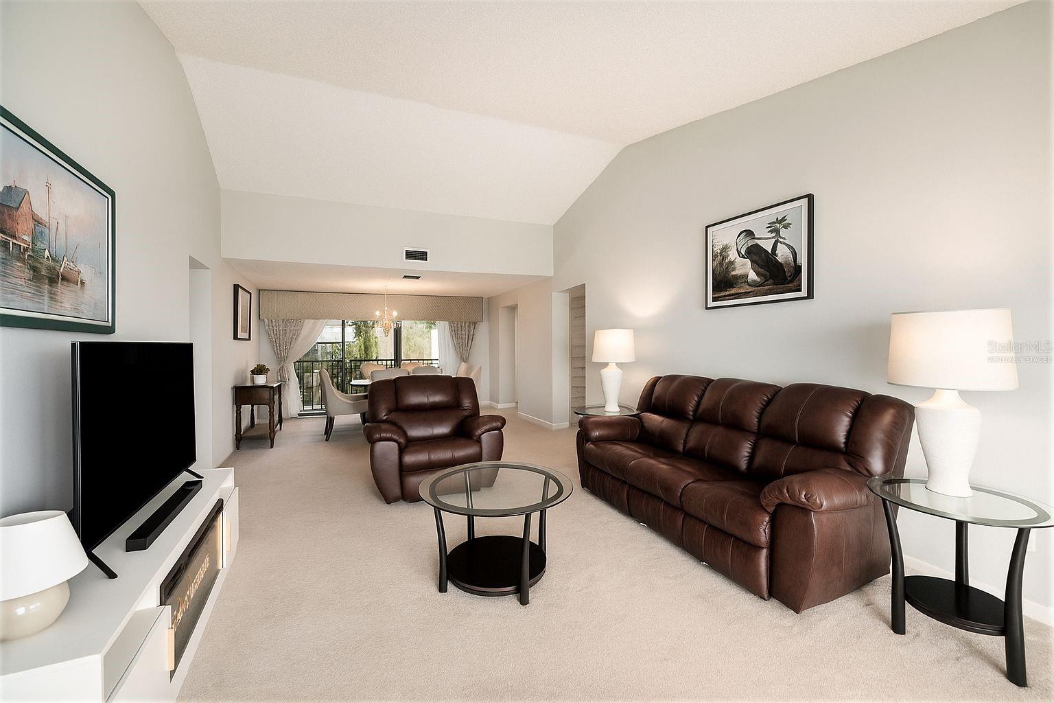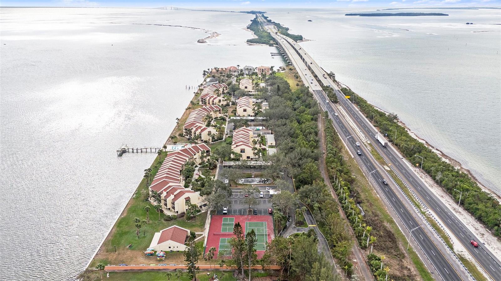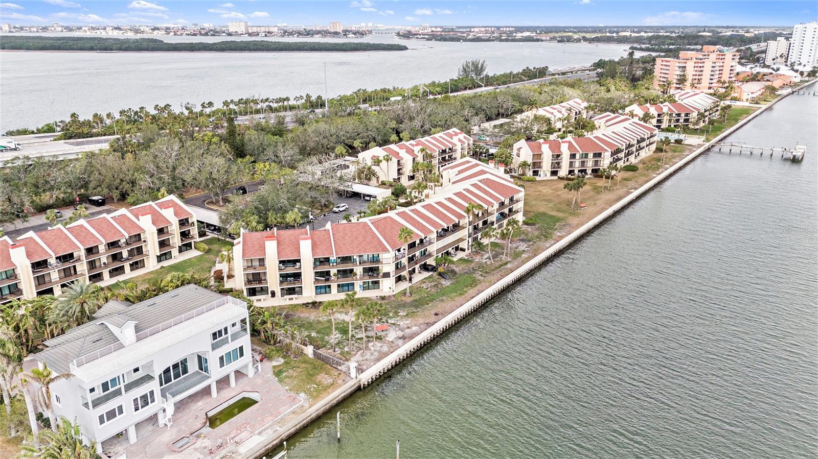 One or more photo(s) has been virtually staged. Coastal Living with Panoramic Bay Views – Top-Floor Condo Retreat Embrace the coastal lifestyle in this spacious top-floor condo, where breathtaking bay views greet you from nearly every room. Marvel at panoramic sights of Tampa Bay as dolphins, manatees, and vibrant birdlife provide a daily waterfront spectacle. The well-maintained interior features ceramic tile in the entry, kitchen, and bathrooms, while carpet adds comfort to the living area and both bedrooms. The updated kitchen shines with sleek countertops, a chic subway tile backsplash, natural earth tones, and brand-new stainless steel appliances. Designed for both comfort and entertaining, the open-concept layout connects the vaulted living room and dining area seamlessly. Step outside to enjoy two private balconies: a large main balcony accessible from both the living room and both bedrooms, perfect for savoring your morning coffee or unwinding with a sunset cocktail while soaking in uninterrupted bay views, and a second balcony just off the dining area for added outdoor enjoyment. This bright and inviting home includes two full bathrooms, one of which features a sleek, updated walk-in shower. While lower-level units experienced flooding during the hurricanes, this elevated unit remained untouched. Exterior community upgrades—including the fishing pier, seawall walkway, and landscaping—are currently underway. Additional features include two storage spaces—one private and one assigned in the common area—as well as a covered, assigned parking space. The condo is sold fully furnished with housewares included, making it truly move-in ready. The HOA provides incredible value—your monthly dues include Cable TV, high-speed Internet, Water, Sewer, Trash, Insurance, Community Pool, Escrow Reserves, Exterior Maintenance, Groundskeeping, and Recreational Facilities. You’ll enjoy worry-free living with nearly all utilities and upkeep covered. Community amenities and lifestyle features abound. Enjoy a clubhouse, sparkling pool, sidewalks, and tennis/pickleball courts. For water lovers, the community offers direct access to the Bay/Intracoastal Waterway, a fishing dock, and waterfront access—perfect for kayaking, boating, or simply relaxing by the shore. Located near Maximo Park, Fort De Soto, St. Pete Beach, and downtown St. Petersburg, this home offers the best of coastal living with easy access to beaches, biking trails, kayaking spots, restaurants, and vibrant city life. Whether you're looking for adventure or tranquility, this condo is your perfect piece of paradise.