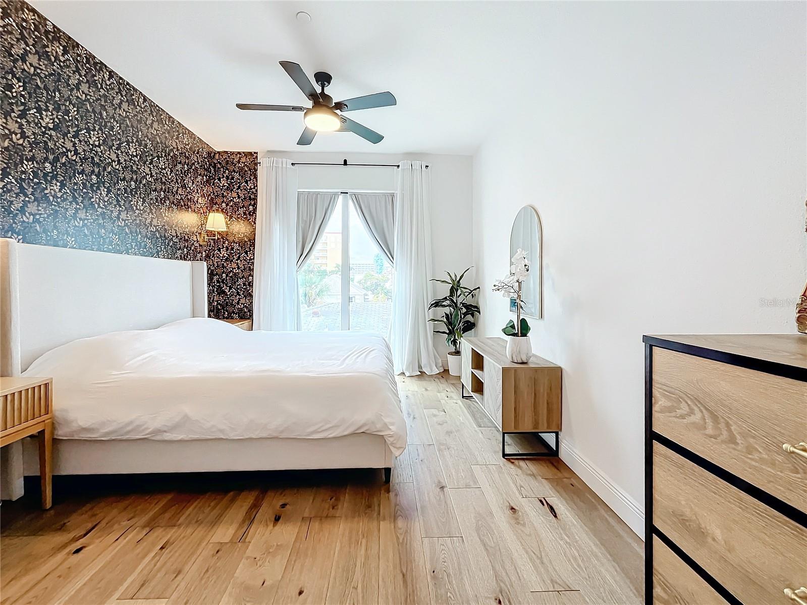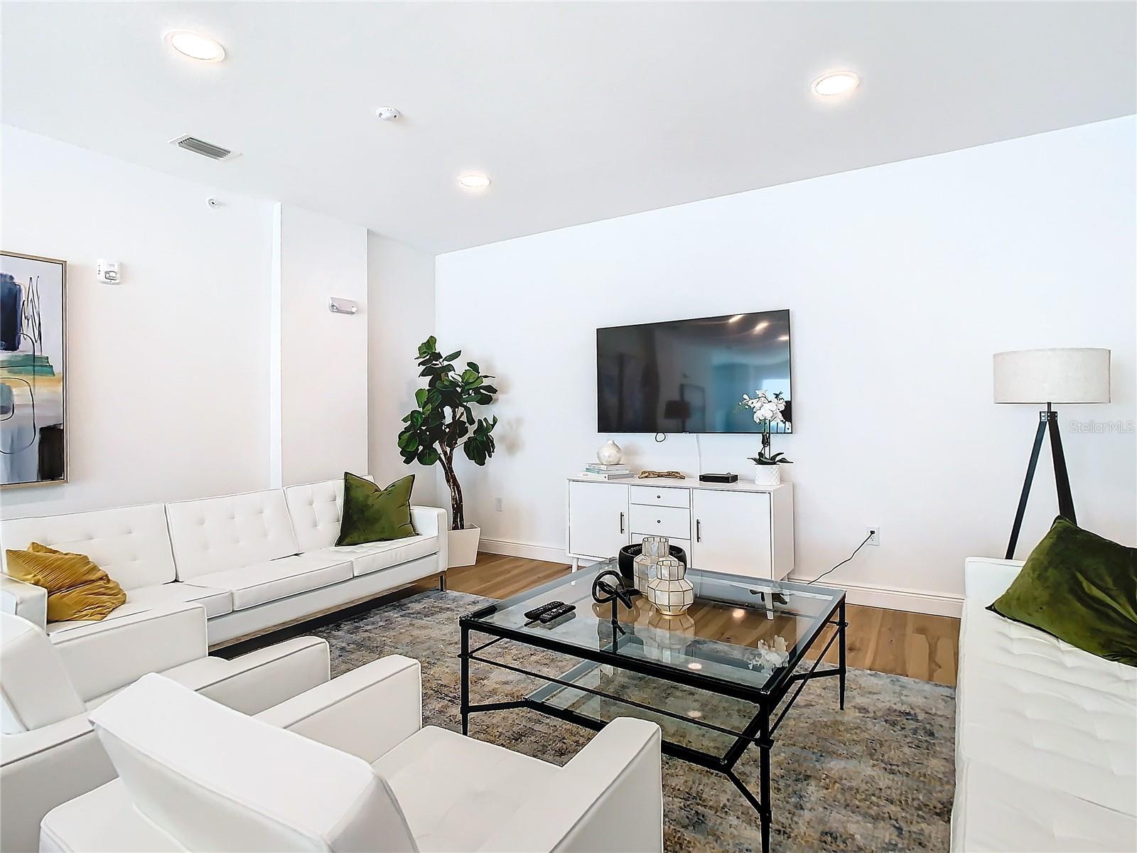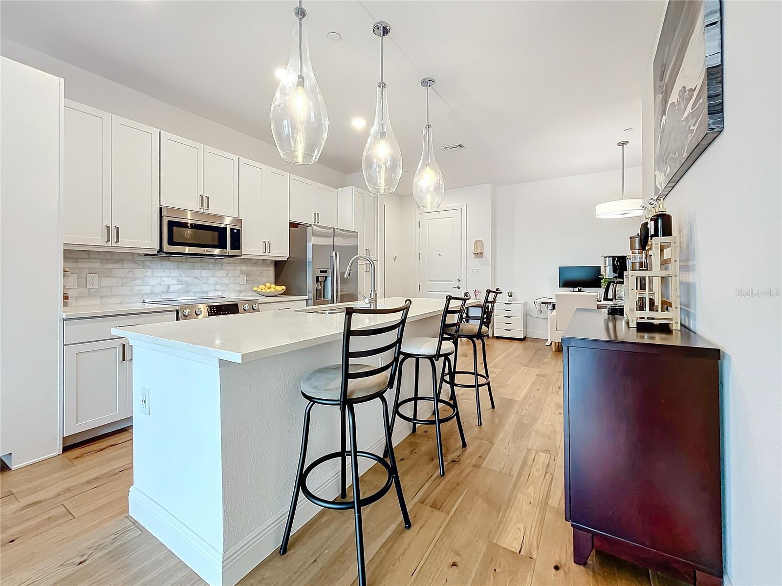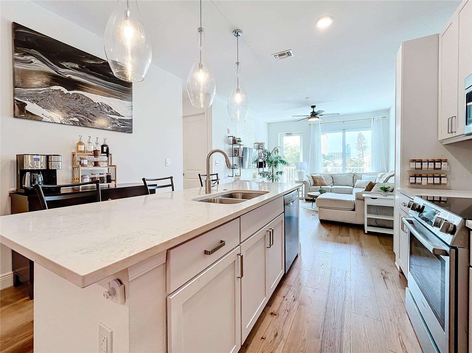 Beautiful, MOVE-IN Ready downtown Condo. Discover pure luxury and comfort in this exquisite, light-filled 3rd floor condo, located in downtown St. Pete's new Domus Urbana building. Live within WALKING distance of urban and vibrant attractions, while savoring the tranquility of a peaceful neighborhood, with ample on-street parking for your guests with not only museums, theaters, art galleries, JOHN HOPKINS hospital, USF, Tropicana field, Publix, over 50+ award-winning restaurants, you'll also have easy access to scenic cycling and pedestrian trails, nature preserves, St. Pete Pier and Award Winning Beaches. Imagine everything you could want, all within walking distance! And now: Step into your better than new condo, where a feeling of openness and grandeur envelops you with soaring 9' ceilings and an abundance of NATURAL LIGHT. MOVE-IN ready & meticulously maintained, this home caters to your every desire. You can entertain effortlessly in this open living room, LIGHT and BRIGHT kitchen, and spacious dining area, all providing ample space for making cherished memories while hosting with ease. The kitchen is a chef's DREAM, equipped with top-of-the-line stainless steel BOSCH appliances, including a convection oven. GORGEOUS pendant lighting hangs above the LARGE kitchen island, with space for in-kitchen dining. Elegant shaker cabinets provide ample storage, and QUARTZ countertops with well-placed task lighting provide ample prep space. For a quiet night in, you can sip a glass of wine on the BALCONY while taking in a mesmerizing SUNSET over Tropicana field. This home has two generously sized bedrooms, ensuring you have plenty of space for a good night's sleep. Spacious WALK-IN closet, linen closet, and en-suite bathroom provide both luxury and functionality. You can indulge in the spa-like en-suite, featuring an oversized shower adorned with Carraca MARBLE tiles, a spacious DOUBLE vanity with brushed-nickel features, exquisite quartz countertops, & double fogless touch-light mirrors. The guest bedroom, located on the opposite side of the home for maximum PRIVACY, also boasts a sizable walk-in closet. Convenience meets luxury with a generously sized laundry room with ample storage space and conveying washer and dryer, strategically tucked away near the front door plus another Extra storage space/closet. Beautiful wide-plank engineered hardwood flow throughout the home. This smoke-free, original owner condo boasts hurricane-rated, UVA-filtering windows and doors, along with fob-entry doors and gated parking to ensure you feel secure at home. BONUS: The original owner generously provides a brand-new home warranty, ensuring the buyer's peace of mind. This Building never lost power as powerlines are berried. Your furry friends are not forgotten! A dedicated DOG-RUN located conveniently in the garage allows your PET to play freely, & a dog-washing station helps keep them clean and pampered. Gym/Community room + Modern elevators allow you to effortlessly take groceries and packages to the 3rd floor. An EV charging station can be available for your vehicle via Duke Energy. I-75 is just around the corner, giving you easy access to the entire Tampa-Bay area. Don't miss this opportunity to elevate your lifestyle to new heights. Domus Urbana is not just a place to live, but a lifestyle you'll LOVE! Experience the epitome of modern, convenient, and luxurious living in this elegant St. Pete condo!