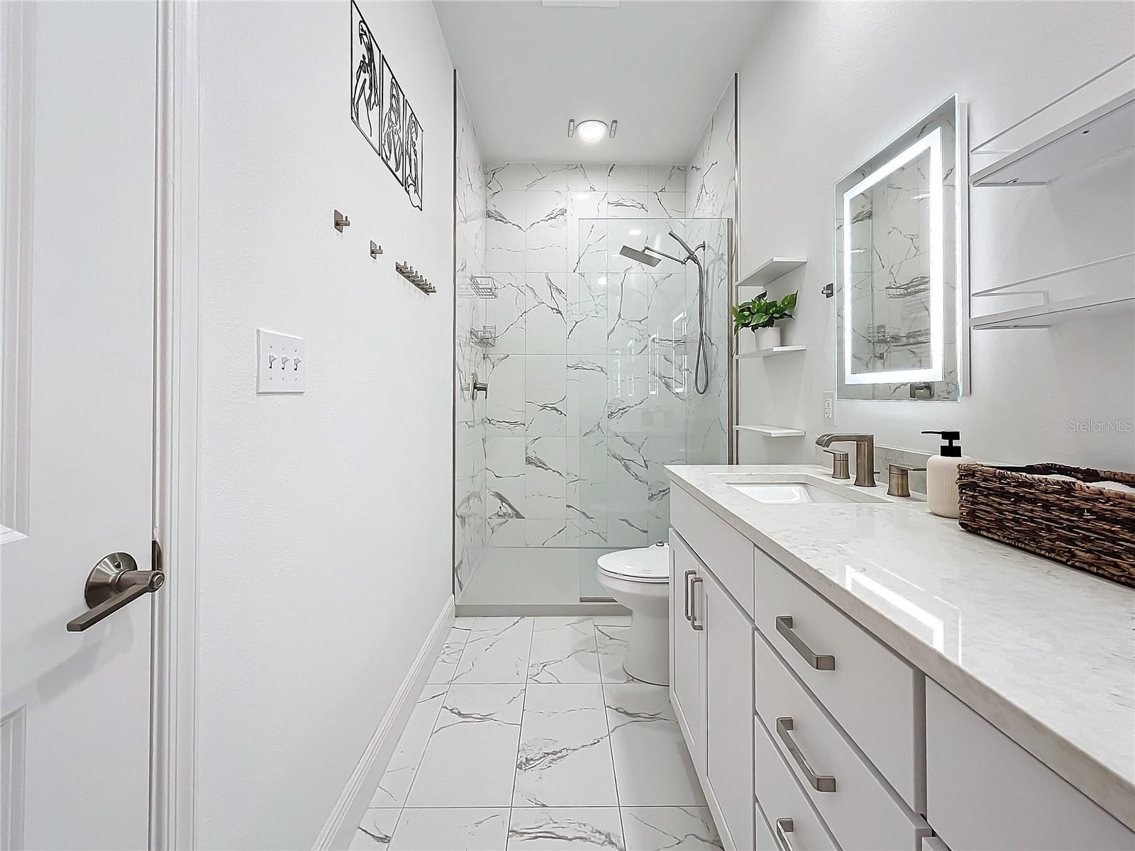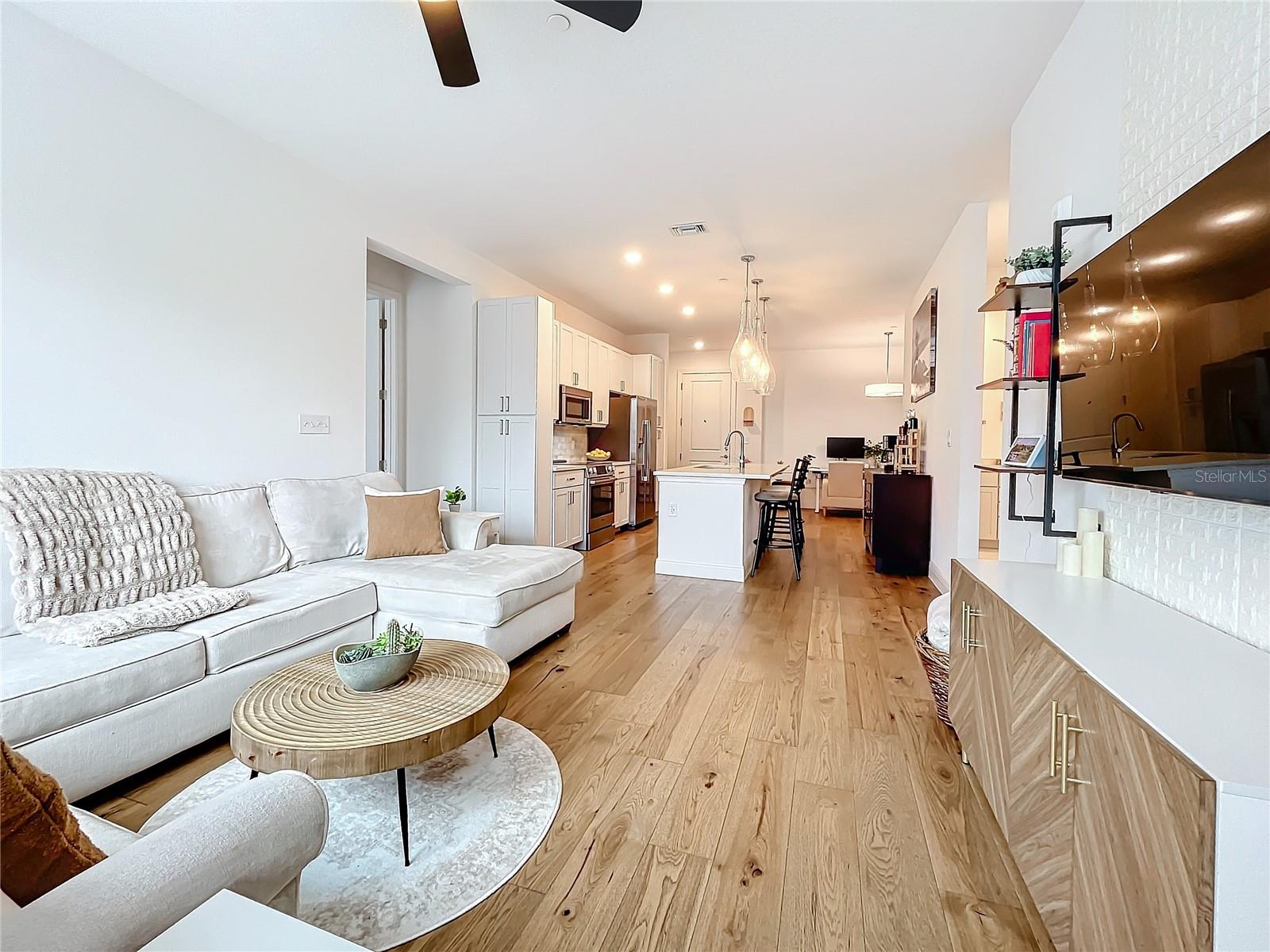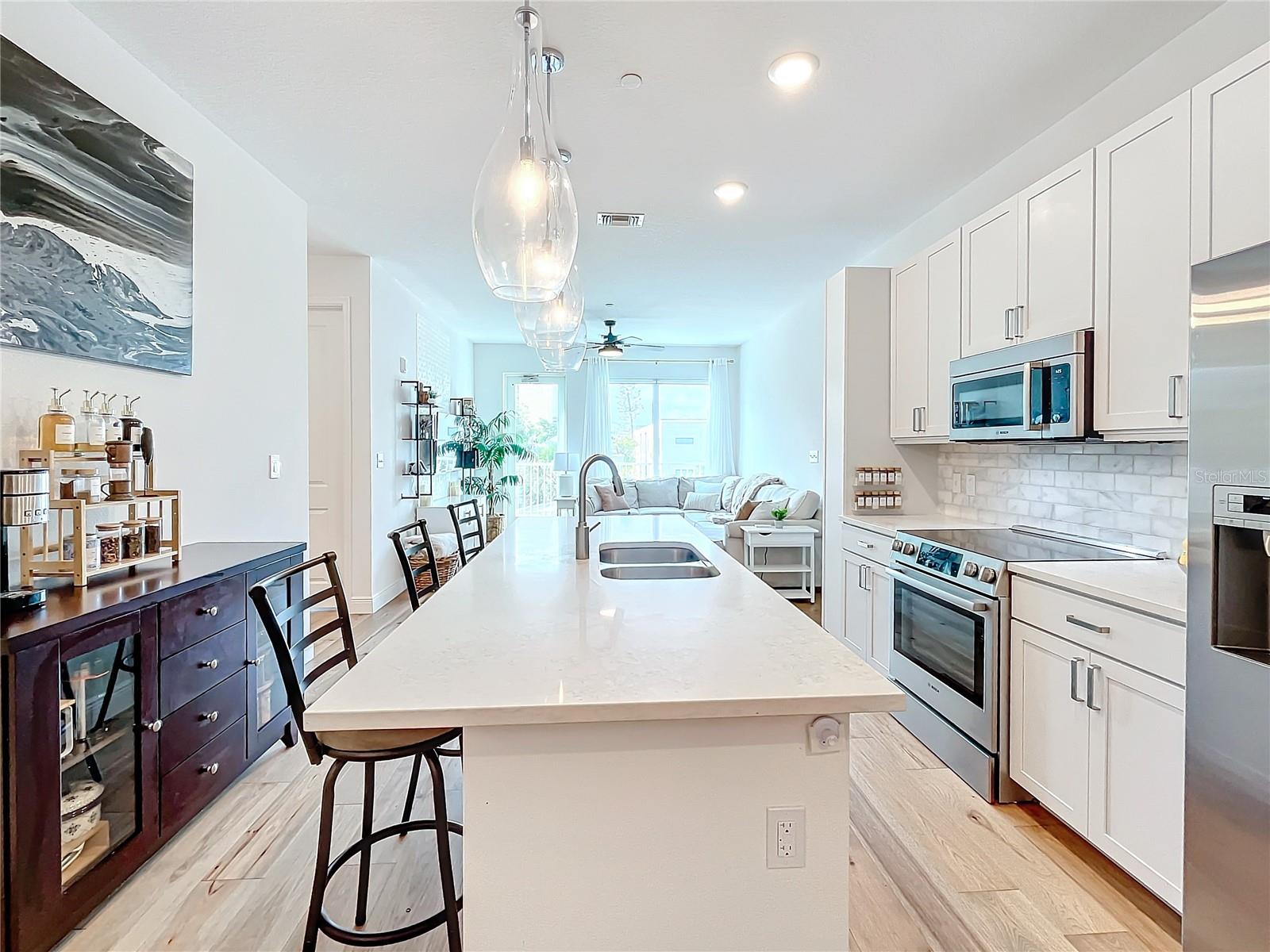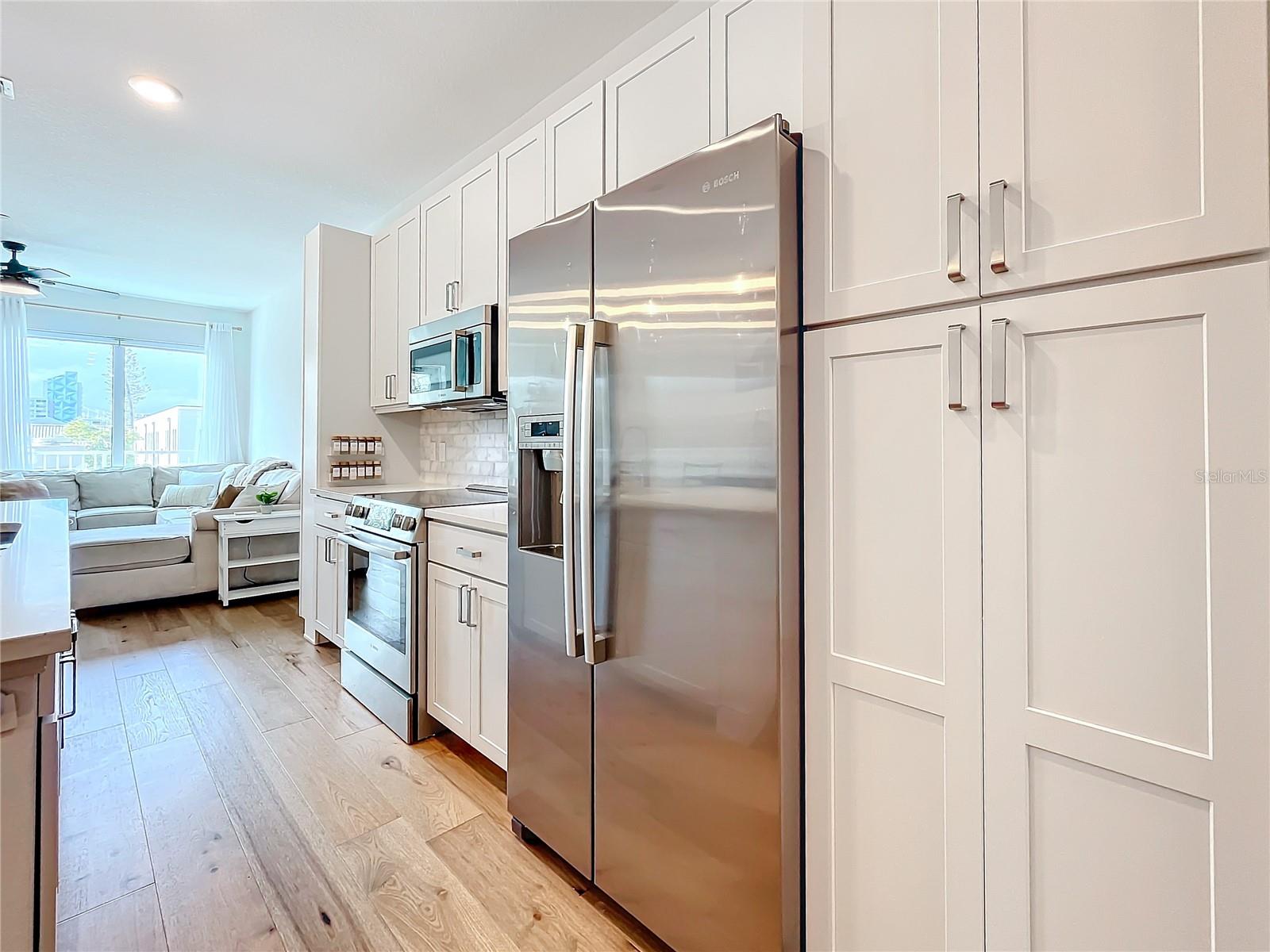 Beautiful, MOVE-IN Ready downtown Condo. Discover pure luxury and comfort in this exquisite, light-filled 3rd floor condo, located in downtown St. Pete's new Domus Urbana building. Live within WALKING distance of urban and vibrant attractions, while savoring the tranquility of a peaceful neighborhood, with ample on-street parking for your guests with not only museums, theaters, art galleries, JOHN HOPKINS hospital, USF, Tropicana field, Publix, over 50+ award-winning restaurants, you'll also have easy access to scenic cycling and pedestrian trails, nature preserves, St. Pete Pier and Award Winning Beaches. Imagine everything you could want, all within walking distance! And now: Step into your better than new condo, where a feeling of openness and grandeur envelops you with soaring 9' ceilings and an abundance of NATURAL LIGHT. MOVE-IN ready & meticulously maintained, this home caters to your every desire. You can entertain effortlessly in this open living room, LIGHT and BRIGHT kitchen, and spacious dining area, all providing ample space for making cherished memories while hosting with ease. The kitchen is a chef's DREAM, equipped with top-of-the-line stainless steel BOSCH appliances, including a convection oven. GORGEOUS pendant lighting hangs above the LARGE kitchen island, with space for in-kitchen dining. Elegant shaker cabinets provide ample storage, and QUARTZ countertops with well-placed task lighting provide ample prep space. For a quiet night in, you can sip a glass of wine on the BALCONY while taking in a mesmerizing SUNSET over Tropicana field. This home has two generously sized bedrooms, ensuring you have plenty of space for a good night's sleep. Spacious WALK-IN closet, linen closet, and en-suite bathroom provide both luxury and functionality. You can indulge in the spa-like en-suite, featuring an oversized shower adorned with Carraca MARBLE tiles, a spacious DOUBLE vanity with brushed-nickel features, exquisite quartz countertops, & double fogless touch-light mirrors. The guest bedroom, located on the opposite side of the home for maximum PRIVACY, also boasts a sizable walk-in closet. Convenience meets luxury with a generously sized laundry room with ample storage space and conveying washer and dryer, strategically tucked away near the front door plus another Extra storage space/closet. Beautiful wide-plank engineered hardwood flow throughout the home. This smoke-free, original owner condo boasts hurricane-rated, UVA-filtering windows and doors, along with fob-entry doors and gated parking to ensure you feel secure at home. BONUS: The original owner generously provides a brand-new home warranty, ensuring the buyer's peace of mind. This Building never lost power as powerlines are berried. Your furry friends are not forgotten! A dedicated DOG-RUN located conveniently in the garage allows your PET to play freely, & a dog-washing station helps keep them clean and pampered. Gym/Community room + Modern elevators allow you to effortlessly take groceries and packages to the 3rd floor. An EV charging station can be available for your vehicle via Duke Energy. I-75 is just around the corner, giving you easy access to the entire Tampa-Bay area. Don't miss this opportunity to elevate your lifestyle to new heights. Domus Urbana is not just a place to live, but a lifestyle you'll LOVE! Experience the epitome of modern, convenient, and luxurious living in this elegant St. Pete condo!