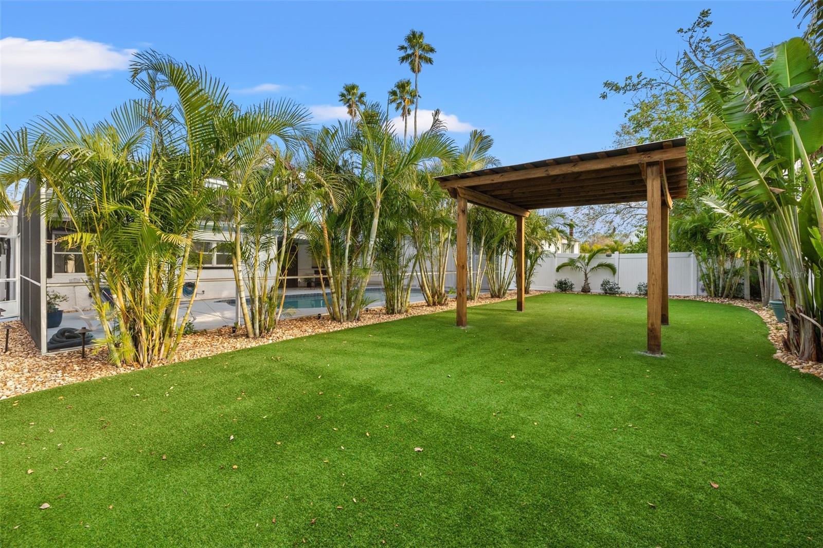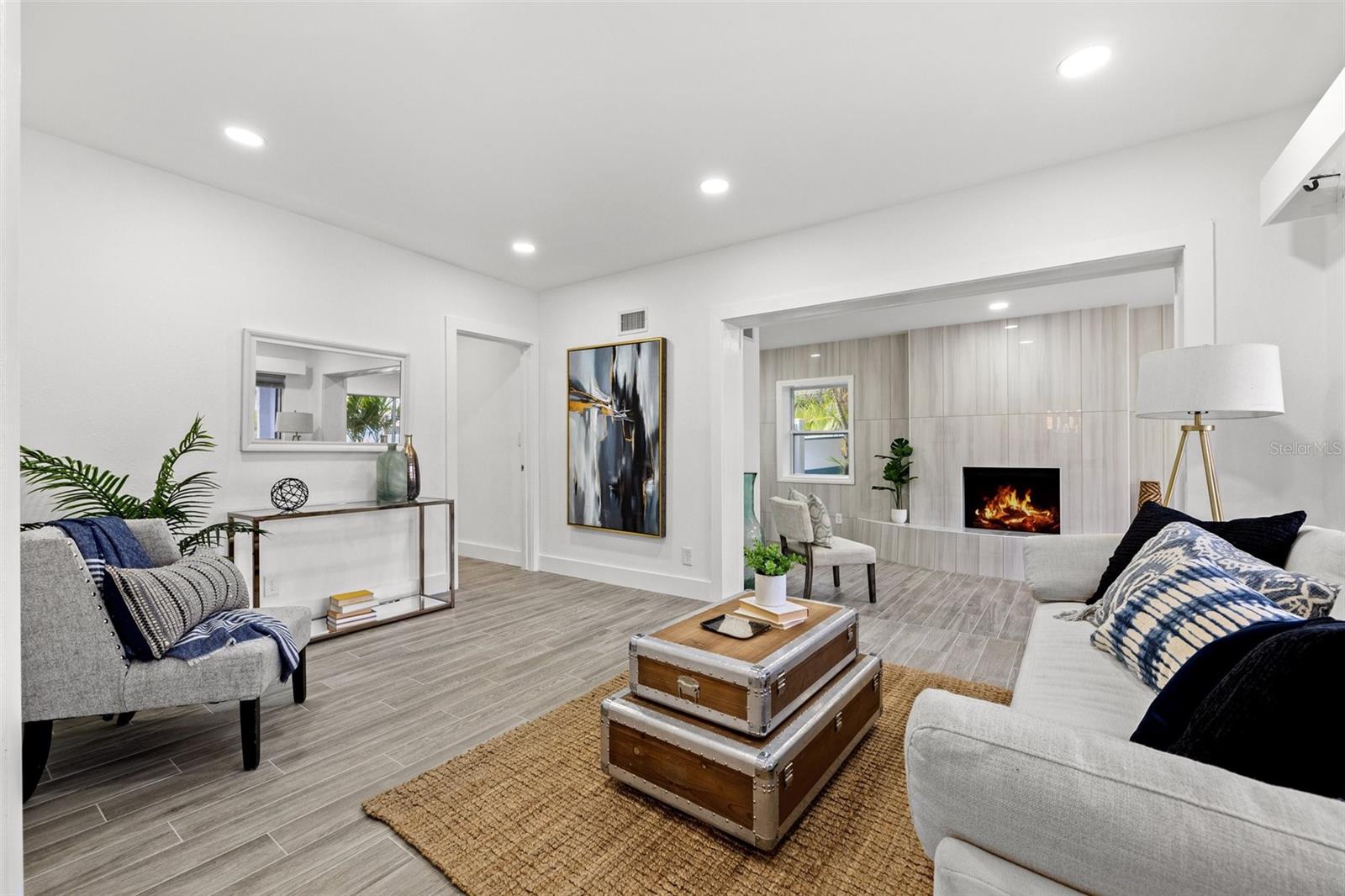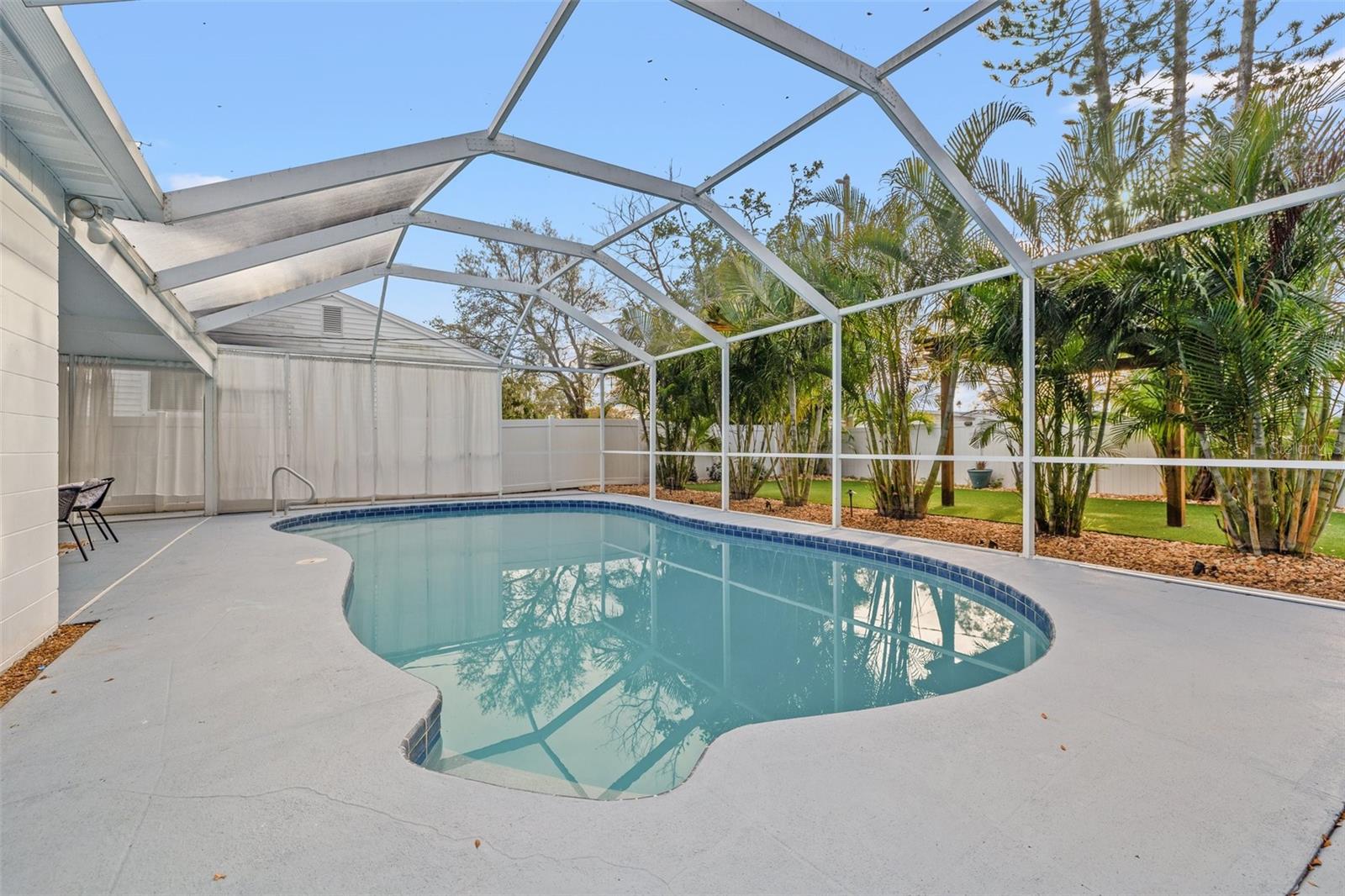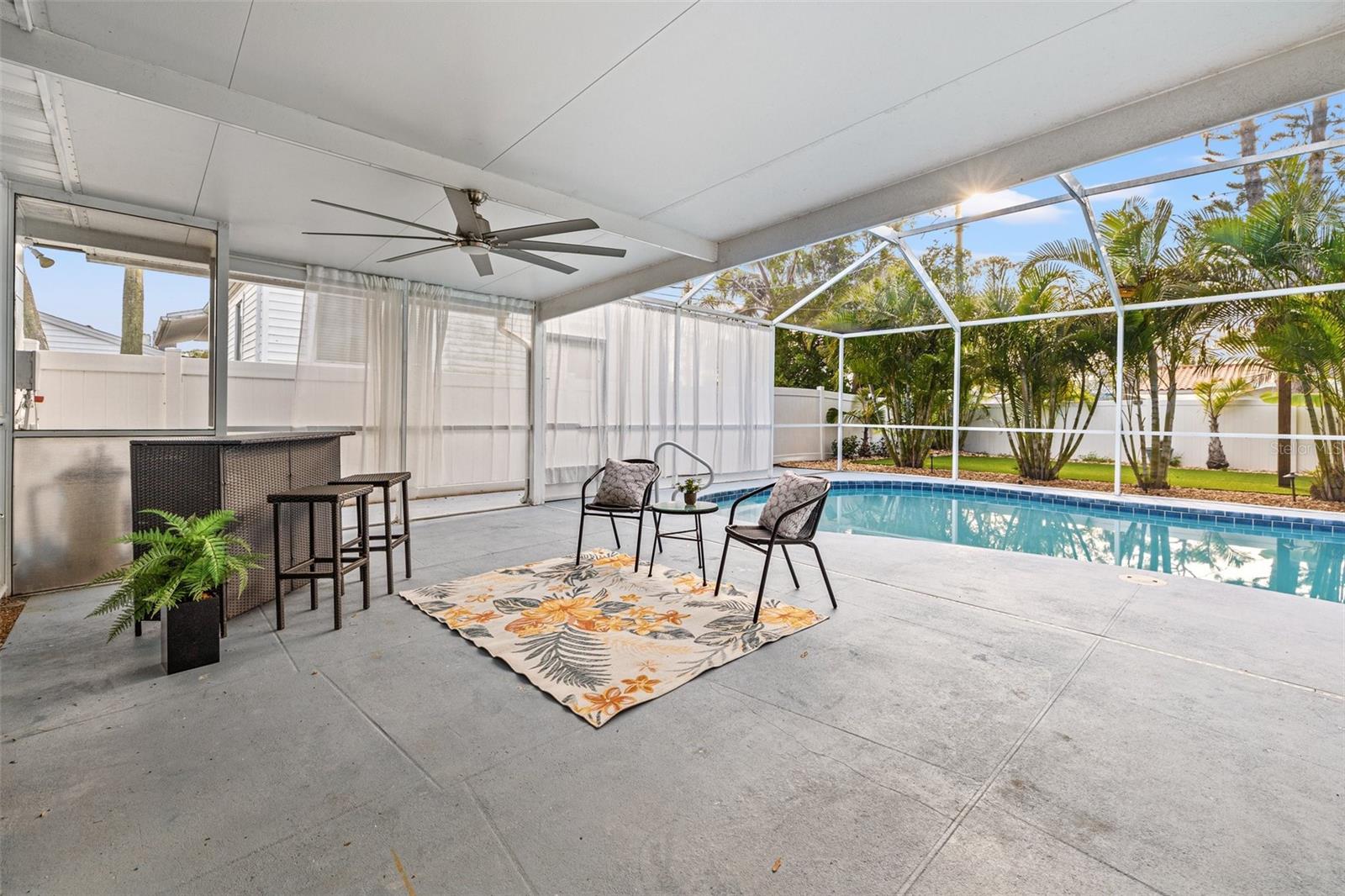 Welcome home to this beautifully updated POOL HOME ~ This 4 bedroom,2-bathroom home with a screened pool & backyard oasis has been recently UPDATED with stunning modern finishes. As you arrive, you'll be greeted by a freshly sodded and landscaped front yard, setting the tone for the charm and comfort inside. Step into the spacious great room, seamlessly connected to a brand-new kitchen featuring stylish cabinetry, sleek countertops, and new appliances. To the right, a sunken family room offers a cozy retreat with a beautiful FIREPLACE, built-in dry bar, and an adjacent versatile bedroom with custom cabinetry—perfect for a bedroom, home office, playroom, or additional living space. The primary suite is a private oasis, with dual vanities, a brand-new shower, and direct access to the screened-in pool area. On the opposite side of the home, two additional bedrooms share a fully updated hall bath with a tub, creating a functional split-bedroom layout. Step outside to the resort-style backyard, designed for effortless enjoyment with artificial turf and a charming gazebo—ideal for relaxing or entertaining. Beyond the beauty of this home, enjoy unbeatable convenience! Located just minutes from downtown, top-rated restaurants, waterfront parks, and popular attractions, you’ll have easy access to the best shopping, dining, and entertainment in the area. Whether it's a day at the beach, a night out in the city, or a stroll through nearby parks, this location offers something for everyone! NEW APPRAISAL DONE 4/2025 AND APPRAISED VALUE IS $535,000!