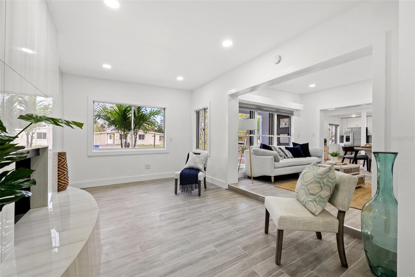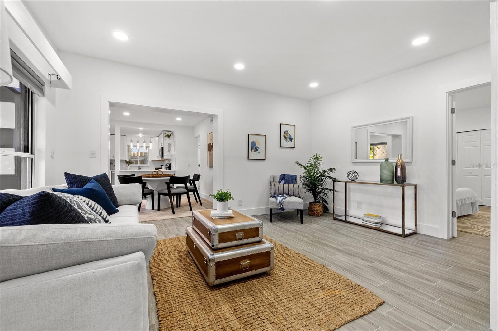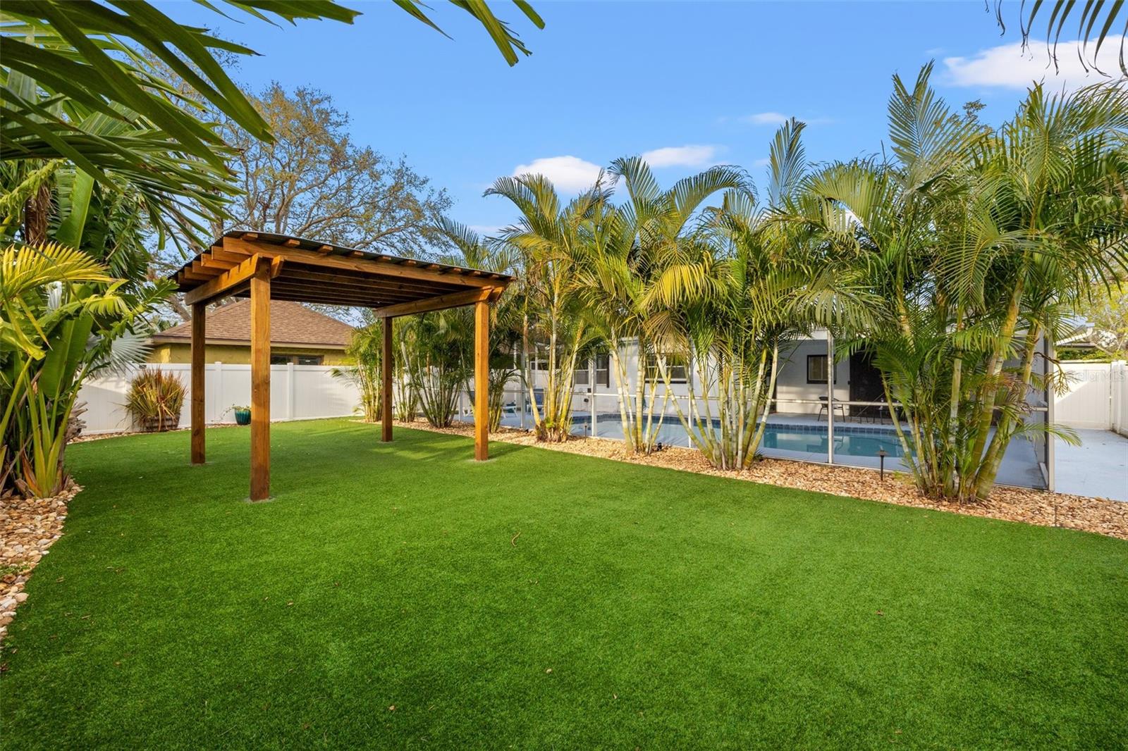 Welcome home to this beautifully updated POOL HOME ~ This 4 bedroom,2-bathroom home with a screened pool & backyard oasis has been recently UPDATED with stunning modern finishes. As you arrive, you'll be greeted by a freshly sodded and landscaped front yard, setting the tone for the charm and comfort inside. Step into the spacious great room, seamlessly connected to a brand-new kitchen featuring stylish cabinetry, sleek countertops, and new appliances. To the right, a sunken family room offers a cozy retreat with a beautiful FIREPLACE, built-in dry bar, and an adjacent versatile bedroom with custom cabinetry—perfect for a bedroom, home office, playroom, or additional living space. The primary suite is a private oasis, with dual vanities, a brand-new shower, and direct access to the screened-in pool area. On the opposite side of the home, two additional bedrooms share a fully updated hall bath with a tub, creating a functional split-bedroom layout. Step outside to the resort-style backyard, designed for effortless enjoyment with artificial turf and a charming gazebo—ideal for relaxing or entertaining. Beyond the beauty of this home, enjoy unbeatable convenience! Located just minutes from downtown, top-rated restaurants, waterfront parks, and popular attractions, you’ll have easy access to the best shopping, dining, and entertainment in the area. Whether it's a day at the beach, a night out in the city, or a stroll through nearby parks, this location offers something for everyone! NEW APPRAISAL DONE 4/2025 AND APPRAISED VALUE IS $535,000!