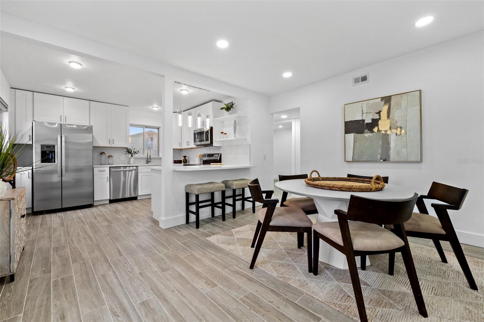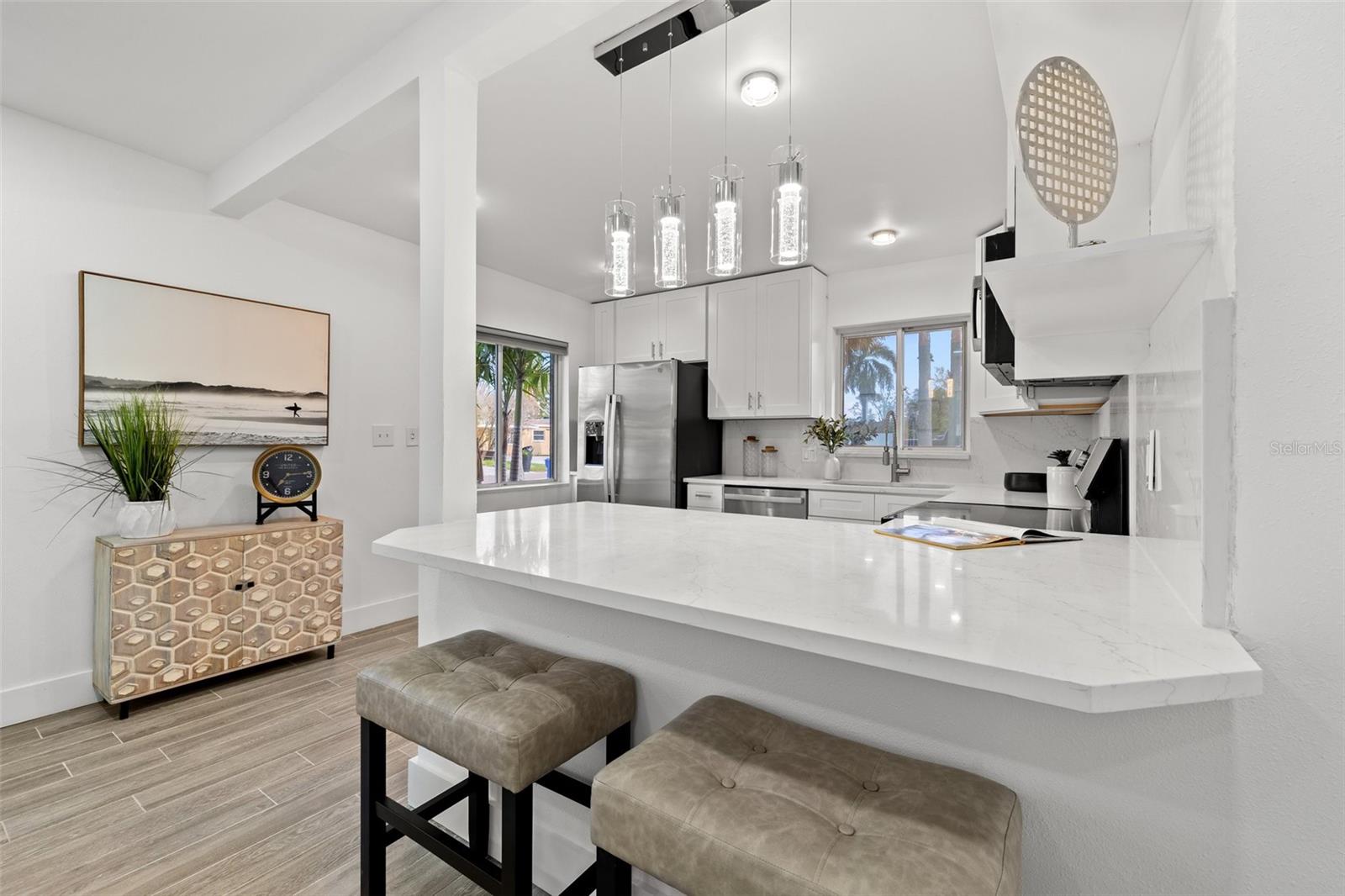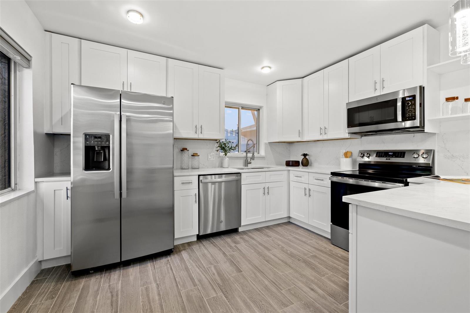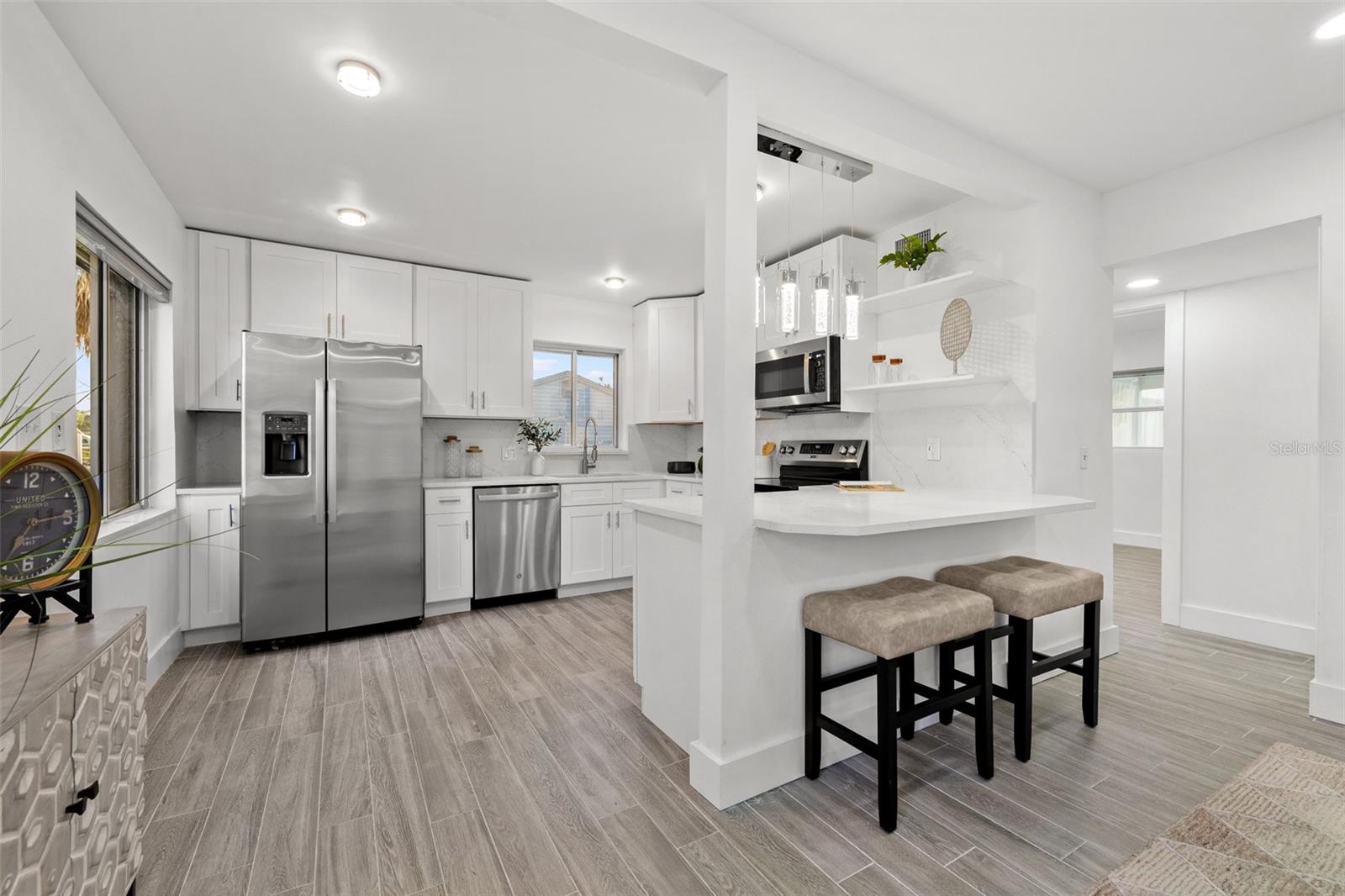 Welcome home to this beautifully updated POOL HOME ~ This 4 bedroom,2-bathroom home with a screened pool & backyard oasis has been recently UPDATED with stunning modern finishes. As you arrive, you'll be greeted by a freshly sodded and landscaped front yard, setting the tone for the charm and comfort inside. Step into the spacious great room, seamlessly connected to a brand-new kitchen featuring stylish cabinetry, sleek countertops, and new appliances. To the right, a sunken family room offers a cozy retreat with a beautiful FIREPLACE, built-in dry bar, and an adjacent versatile bedroom with custom cabinetry—perfect for a bedroom, home office, playroom, or additional living space. The primary suite is a private oasis, with dual vanities, a brand-new shower, and direct access to the screened-in pool area. On the opposite side of the home, two additional bedrooms share a fully updated hall bath with a tub, creating a functional split-bedroom layout. Step outside to the resort-style backyard, designed for effortless enjoyment with artificial turf and a charming gazebo—ideal for relaxing or entertaining. Beyond the beauty of this home, enjoy unbeatable convenience! Located just minutes from downtown, top-rated restaurants, waterfront parks, and popular attractions, you’ll have easy access to the best shopping, dining, and entertainment in the area. Whether it's a day at the beach, a night out in the city, or a stroll through nearby parks, this location offers something for everyone! NEW APPRAISAL DONE 4/2025 AND APPRAISED VALUE IS $535,000!
