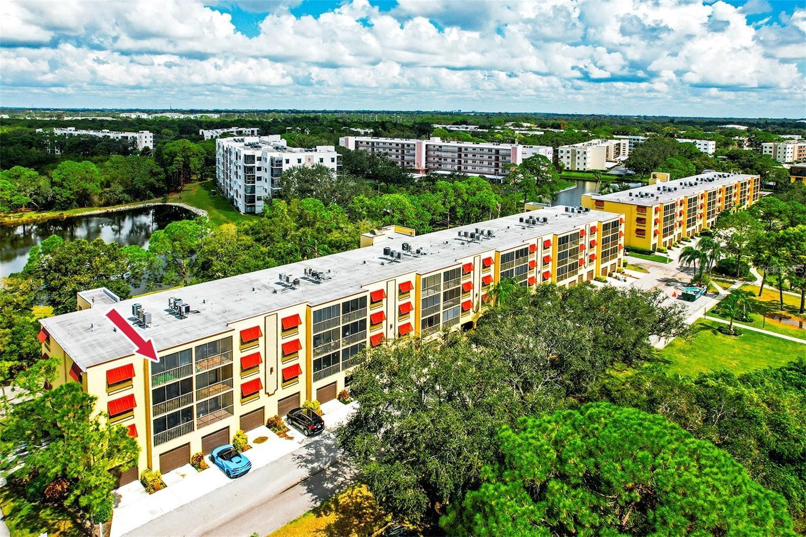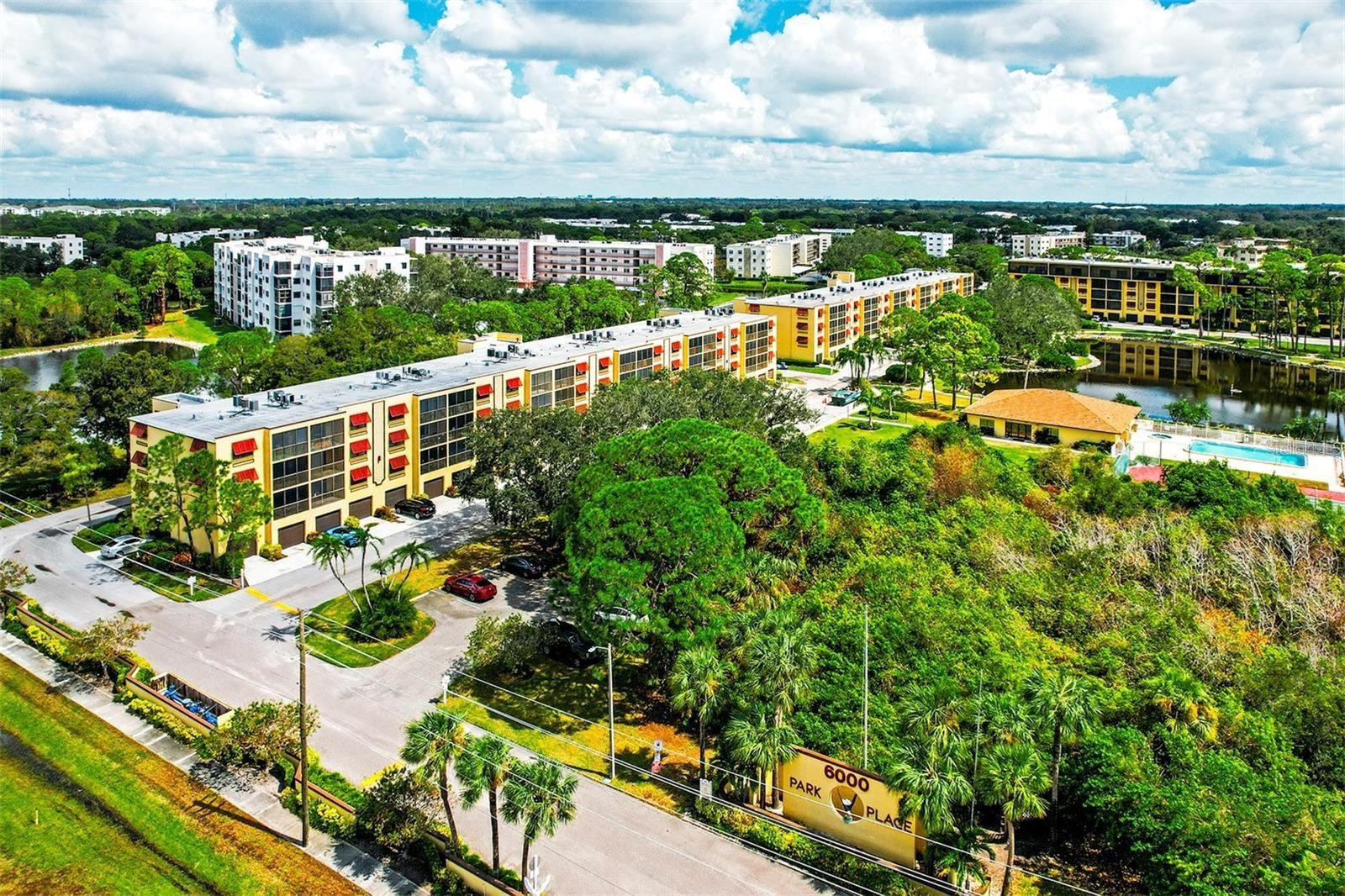 Welcome home to 6000 Park Place—Resort-Style Living for All Ages! Now is the time to come and discover this beautifully maintained 2nd-floor end unit featuring a split floor plan with 2 bedrooms and 2 baths, with under-the-building parking that offers a very rare opportunity to have a two-car garage with its own private entrance that leads directly into the building. From the moment you step inside, you’ll love the spacious open layout with combined living and dining areas that flow seamlessly to the screened lanai, where you can enjoy serene views of the fountain and pond surrounded by lush landscaping and local wildlife. The kitchen offers abundant counter space, extra cabinetry, and a cozy breakfast nook. The primary suite includes a large walk-in closet, a dressing/vanity area, and a private bath featuring a separate water closet and dual vanities. The second bedroom is bright and spacious with an adjacent full guest bath, perfect for visitors. You’ll also appreciate the inside laundry room with a full-size washer and dryer plus extra storage. The covered, screened balcony provides the ideal spot to relax and enjoy Florida’s outdoor lifestyle year-round. Here at 6000 Park Place, we offer beautifully landscaped grounds and a vibrant community atmosphere. Amenities include a heated pool, hot tub, tennis and pickleball courts, shuffleboard, and a newly updated clubhouse with a sauna, fitness area, billiards, TV lounge, and a full kitchen available for private gatherings. Enjoy our beautiful beaches, being just 10 mins from Madeira Beach, Treasure Island, and John's Pass Boardwalk—just too many to list. The HOA fee covers cable, water, sewer, trash, exterior maintenance, and access to all community amenities—making for a truly carefree lifestyle. Perfectly located next to Publix Shopping Center, close to restaurants, retail, VA Bay Pines Hospital, and the Pinellas Trail—and just 10 minutes from the Gulf beaches and 25 minutes from downtown St. Petersburg. Experience the best of Florida living in this well-cared-for home at Park Place—schedule your private showing today!