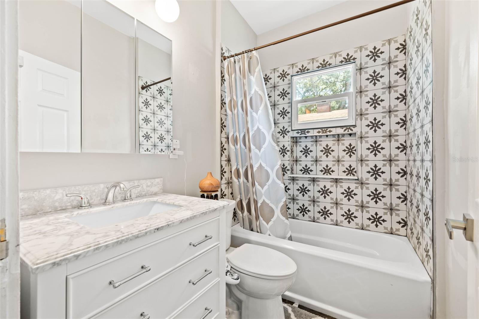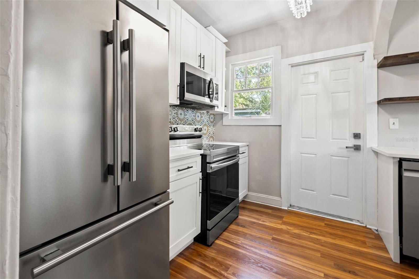 This restored bungalow-style home at 1511 Prescott Street South is a true masterpiece. Boasting 3 spacious bedrooms and 1 bathroom, this home has been beautifully brought back to life while maintaining elements of the original to detail. As you approach the home, you'll be greeted by a vast covered front porch, perfect for enjoying your morning coffee and the refreshing Florida air. The historic charm of the 1920s has been preserved, with the original architecture including the gorgeous front porch columns and decorative tile features. Upon entering, the 9-foot high ceilings and abundant natural light create an immediate sense of openness and warmth. The interior showcases period baseboards, window trim, arched passageways, and original built-ins, exuding timeless elegance.?The home seamlessly blends classic charm with modern updates, featuring professionally repainted interiors and exteriors in neutral tones, complementing any decor. The first floor boasts new laminate flooring throughout, offering both style and easy maintenance. The kitchen is a true work of art, with quartz countertops, white shaker cabinets, custom designer tile backsplash, and newer stainless-steel appliances. Two generously sized bedrooms are located on the first floor, while the third bedroom is privately situated upstairs, accompanied by a bonus flex space ideal for an office or sitting room. The newly updated bathroom is a modern oasis, adorned with tastefully chosen decorative designer tile accenting the shower wall. Conveniently located just off the kitchen, a large indoor utility room houses the easily accessible washer/dryer hook-ups, providing additional storage or a mudroom space. This home comes with a brand-new AC installed in 2022, ensuring year-round comfort. Step out into the large fenced backyard, offering ample space for a pool and the opportunity to pick fresh avocados for dinner. Additional updates include a brand-new driveway, gas water heater, and HVAC. Situated on a fantastic lot, this home is less than three miles from trendy Downtown St. Petersburg, offering access to the new St. Pete Pier, local shops, restaurants, and entertainment venues. With its proximity to the interstate, enjoying a quick commute is a breeze. Plus, you'll be just a short drive from the sugary sands of St. Pete Beach. Don't miss the chance to make this exceptional home yours. Schedule a showing today before it's gone!