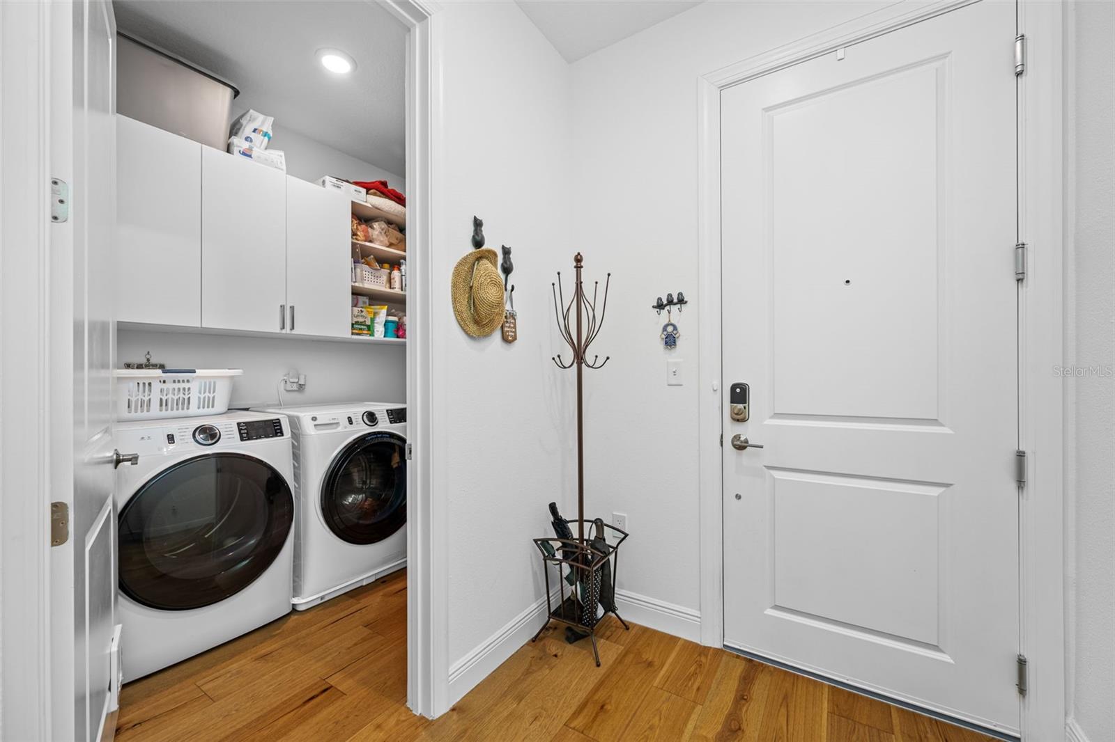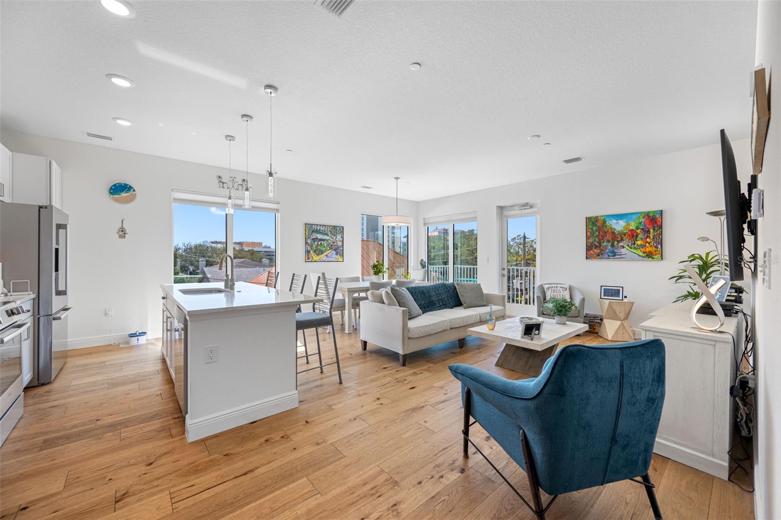 An incredible find, New 3-Bedroom Corner Unit, priced right and in an unbeatable Downtown St. Pete location! Move-in Ready! Palm Beach luxury meets downtown chic in this contemporary 3 Bedroom, 3 Full Bathroom corner residence. In a highly desired non-flood, non-evacuation zone, this southwest-facing unit, built in 2023, spans a generous 1,650 square feet with soaring 9.5-foot ceilings. Expansive 8-foot hurricane-impact windows and balcony door fill the home with natural light while providing peace of mind. The gourmet kitchen features premium Bosch stainless steel appliances, quartz countertops, soft-close solid wood cabinetry, a pantry closet, under-cabinet lighting and a spacious center island with seating. The king-sized primary suite has an oversized custom walk-in closet, en-suite bath with double vanities, Carrara tile and a seamless walk-in shower. A thoughtfully designed split floor plan ensures privacy, with the second bedroom also featuring its own en-suite bath and custom walk-in closet. The versatile third bedroom can serve as a home office, gym, or guest room, with the third full bath conveniently off the main hall. A spacious laundry room, ideally tucked away near the front entry, includes a full-size washer and dryer plus custom built-in cabinetry for additional storage. Your assigned parking space is in the gated, controlled access under-building garage. Building amenities include a community room, fitness center, outdoor patio and dog run with washing station. In a tranquil neighborhood just blocks from Central Avenue and Beach Drive, you are walking distance to award-winning restaurants, shopping, Publix, the waterfront, museums, parks and the St. Pete Pier. Explore nearby cycling and pedestrian trails or hop on the SunRunner for quick access to St. Pete Beach. This move-in ready residence invites you to live in the center of it all. Your new luxury lifestyle in Downtown St. Pete awaits! Floor plan slide #40. Must-see Vimeo video tour: https://vimeo.com/1052826941