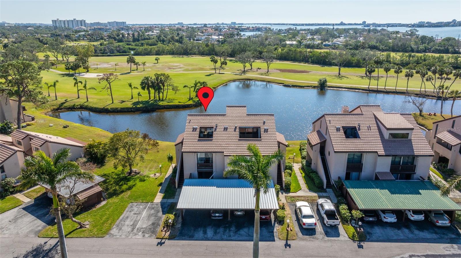 Beautifully Updated Condo with Stunning Golf Course & Pond Views in Pelican Creek Village - Only 9 Minutes from the Beach! Cannot miss out on this price!!! Welcome to this meticulously maintained, move-in-ready 2-bedroom, 2-bathroom condo in the sought-after Pelican Creek Village community! Offering a perfect blend of modern upgrades, spacious living, and breathtaking views, this home is ideal for those seeking a peaceful yet convenient lifestyle. As you step inside, you’ll be greeted by an inviting open-concept layout filled with natural light. The spacious living and dining areas seamlessly flow into the completely upgraded kitchen, which boasts brand-new stainless steel appliances, a new washer and dryer, sleek countertops, and ample cabinet space, perfect for cooking and entertaining. The home has been freshly painted, features new baseboards, beautifully re-textured ceilings, updated lighting throughout, and a brand-new tile roof completed in July 2024, ensuring both style and durability. The primary bedroom on the main floor provides a tranquil retreat with generous closet space and easy access to a beautifully updated bathroom. Upstairs, you’ll find an oversized second bedroom that offers incredible flexibility; it can serve as a guest room, private office, creative studio, or even a personal retreat. Best of all, both levels of this unit have private decks, where you can unwind and enjoy the breathtaking views of the 5th and 6th holes of the Pasadena Yacht & Golf Club. Best view in the community, must see in person! Beyond its stunning interior, this condo offers peace of mind! Situated on a private road on the second floor, this home has never experienced flooding, yet the HOA covers flood insurance for added security. The HOA also includes exterior maintenance, ground maintenance, water, sewer, trash, cable, high-speed internet, and access to fantastic amenities such as a clubhouse and a sparkling pool. A newer carport adds even more value. Located just 9 minutes (3 miles) from the beach, 15 minutes from downtown St. Petersburg, and 30 minutes from the airport, you'll enjoy easy access to top restaurants, shopping, and entertainment while savoring the serenity of this charming golf course community. Don't miss your opportunity to own this stunning, low-maintenance home in one of St. Pete's best-kept secrets! Schedule your private tour today!