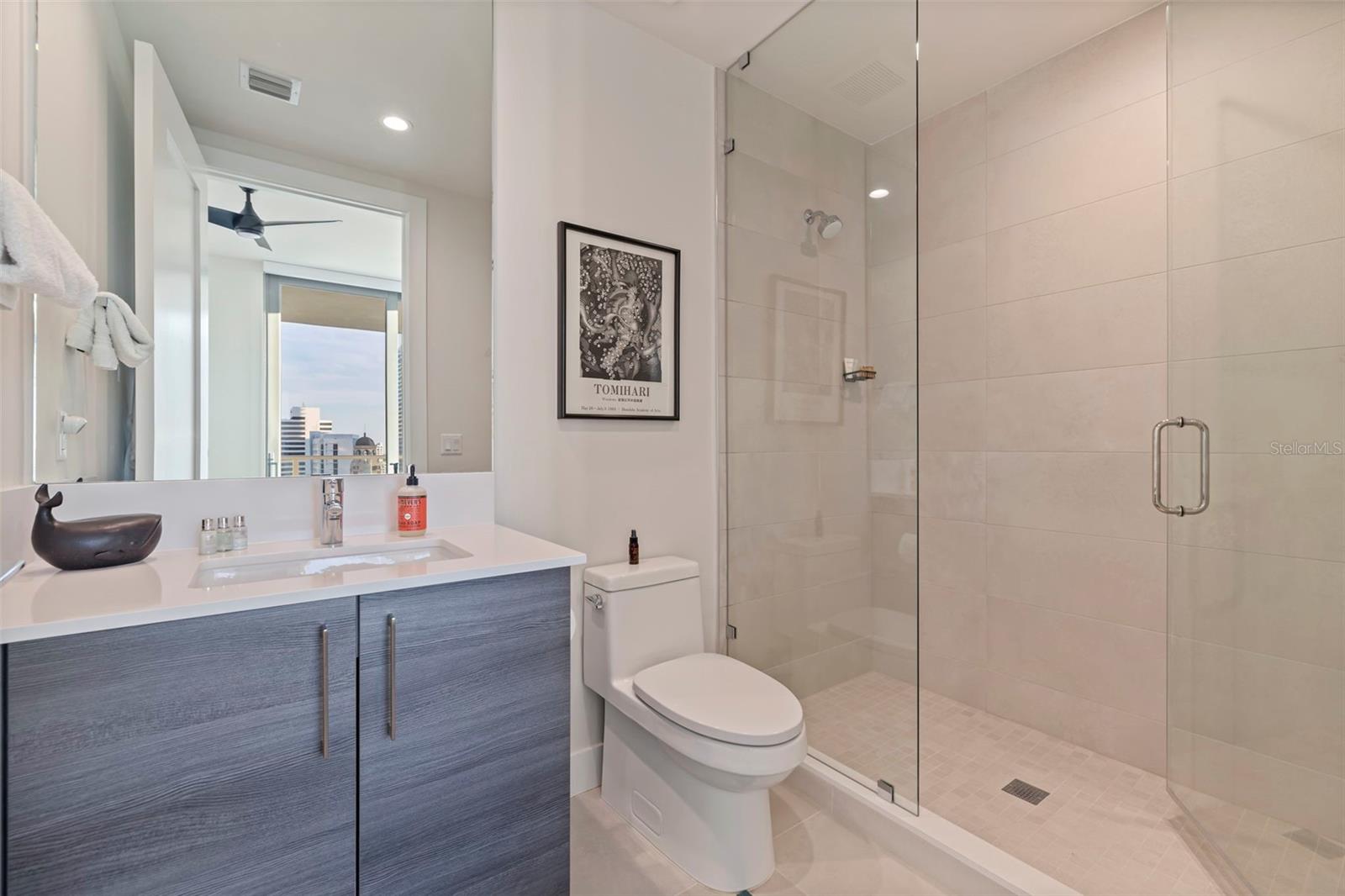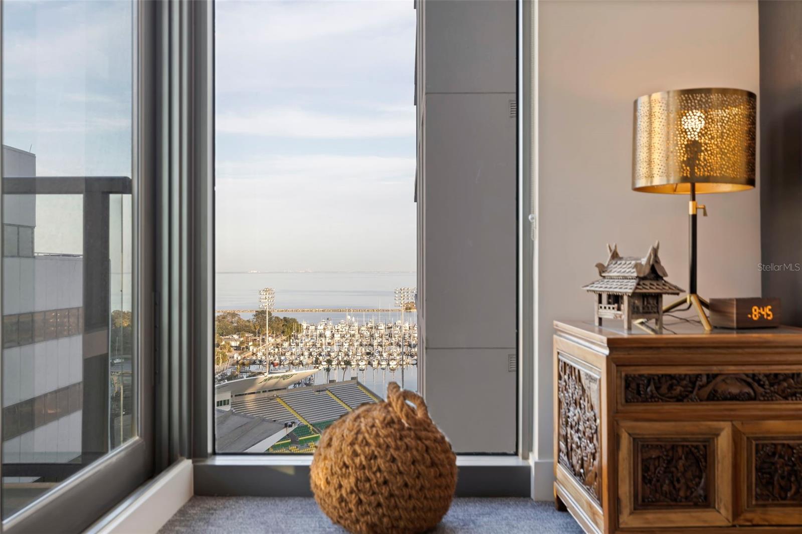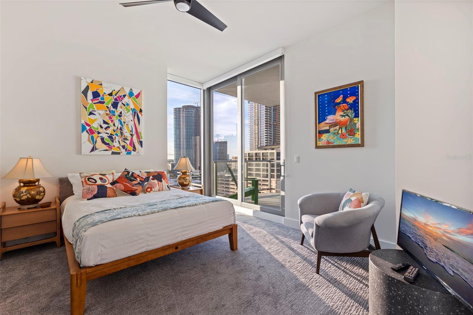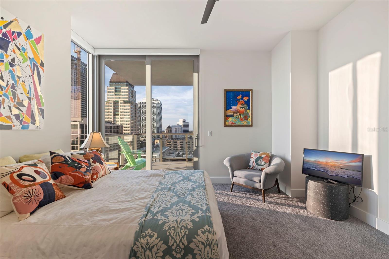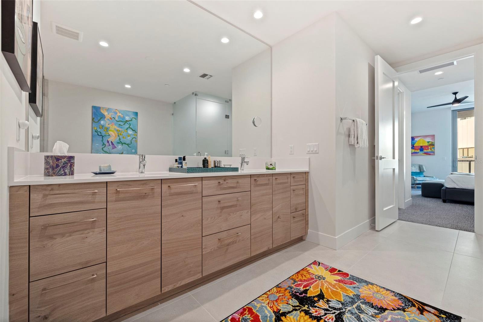 Situated on the 14th floor of the newly completed Saltaire, this exquisite condominium epitomizes the fusion of luxury and leisure. Offering an unparalleled living experience, this 2-bedroom plus versatile den, 3-bathroom unit spans 2,036 sq ft of meticulously designed interiors. Upon entry, be captivated by breathtaking water vistas to the east and sweeping city panoramas to the west. Dual expansive balconies, accessible from both the great room and each bedroom, invite seamless indoor-outdoor living. The interior is adorned with elegant porcelain tile flooring and high-end fixtures throughout, including three ceiling fans for added comfort. The kitchen dazzles with stainless steel appliances, slide-out pantry drawers, and a central island with bar seating, perfect for hosting guests. The owner's suite offers a tranquil retreat with a private balcony showcasing a blend of water and city views, along with dual walk-in closets. Indulge in the spa-like owner's bath, complete with refined vanities, a soaking tub, and an oversized walk-in shower. The second bedroom suite provides its own sanctuary with city views, a walk-in closet, and a private balcony, while the den offers flexibility as an additional bedroom or home office. This unit includes two dedicated parking spaces in a secure, covered garage, along with a climate-controlled storage unit conveniently located next to the residence. Beyond its exceptional interiors, Saltaire offers resort-style amenities, including a pool, spa, club rooms, fitness center, and dog park. Residents can also enjoy breathtaking views from the 7th-floor deck overlooking Tampa Bay and downtown St. Pete. With waterfront parks, marinas, shops, and dining options just steps away, Saltaire isn’t just a place to live—it’s a statement of sophistication, offering an unparalleled blend of luxury, convenience, and vibrant city living.