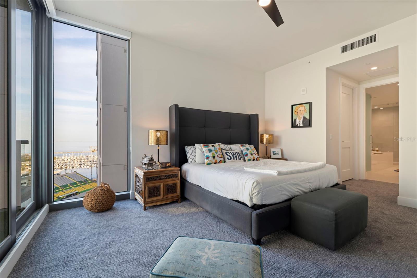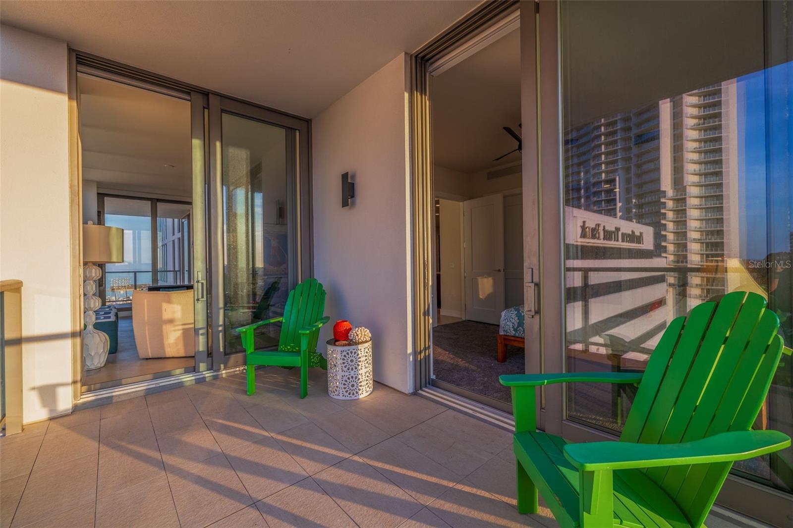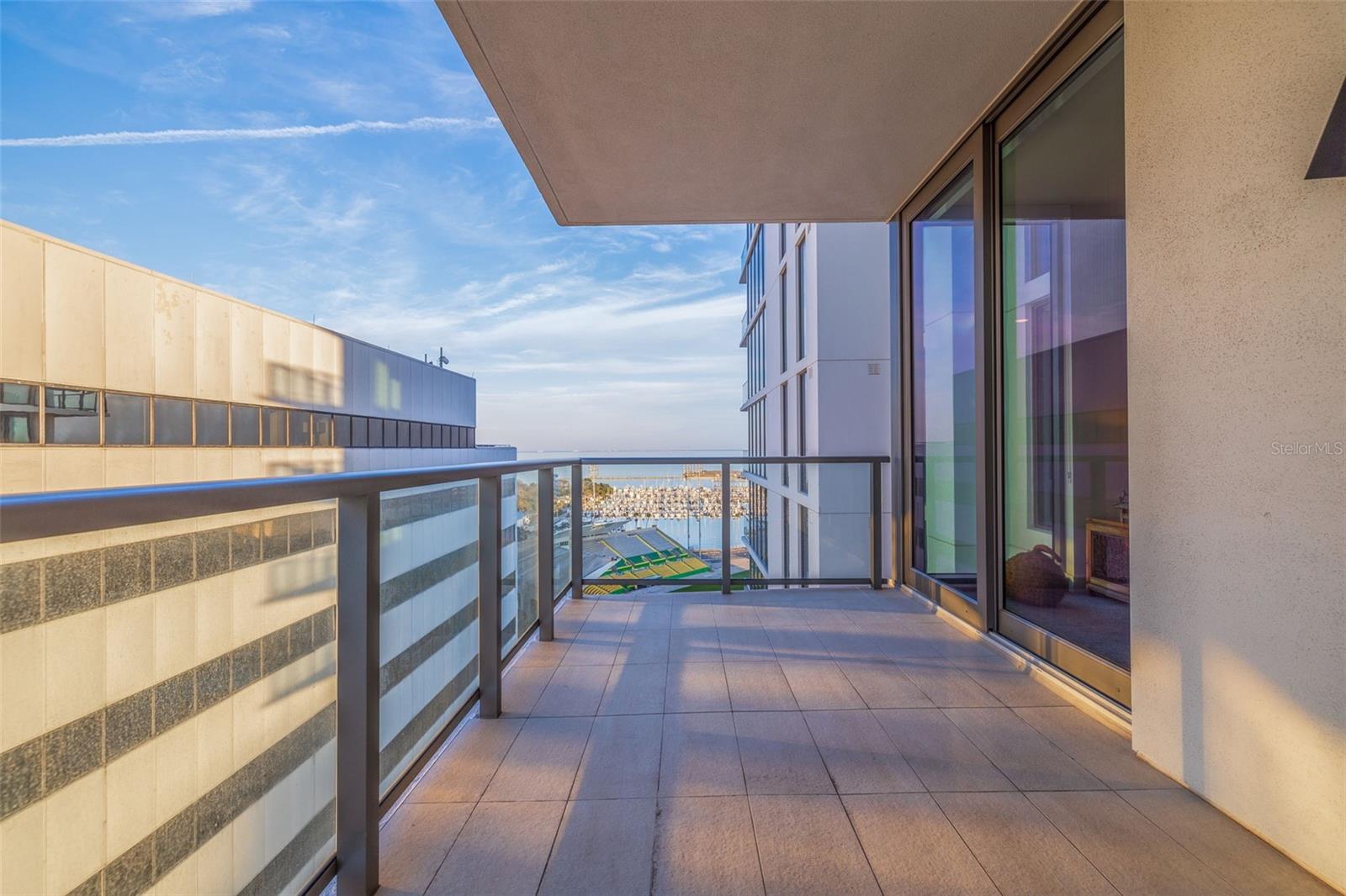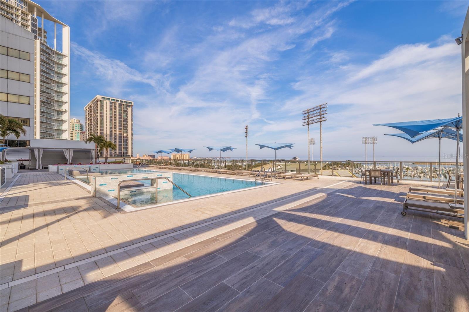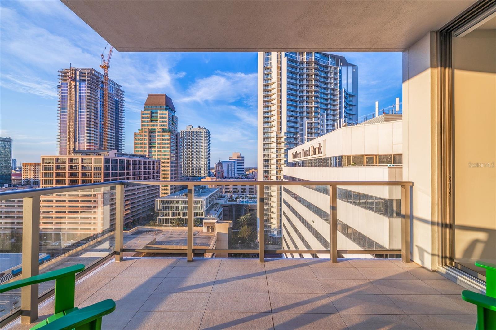 Situated on the 14th floor of the newly completed Saltaire, this exquisite condominium epitomizes the fusion of luxury and leisure. Offering an unparalleled living experience, this 2-bedroom plus versatile den, 3-bathroom unit spans 2,036 sq ft of meticulously designed interiors. Upon entry, be captivated by breathtaking water vistas to the east and sweeping city panoramas to the west. Dual expansive balconies, accessible from both the great room and each bedroom, invite seamless indoor-outdoor living. The interior is adorned with elegant porcelain tile flooring and high-end fixtures throughout, including three ceiling fans for added comfort. The kitchen dazzles with stainless steel appliances, slide-out pantry drawers, and a central island with bar seating, perfect for hosting guests. The owner's suite offers a tranquil retreat with a private balcony showcasing a blend of water and city views, along with dual walk-in closets. Indulge in the spa-like owner's bath, complete with refined vanities, a soaking tub, and an oversized walk-in shower. The second bedroom suite provides its own sanctuary with city views, a walk-in closet, and a private balcony, while the den offers flexibility as an additional bedroom or home office. This unit includes two dedicated parking spaces in a secure, covered garage, along with a climate-controlled storage unit conveniently located next to the residence. Beyond its exceptional interiors, Saltaire offers resort-style amenities, including a pool, spa, club rooms, fitness center, and dog park. Residents can also enjoy breathtaking views from the 7th-floor deck overlooking Tampa Bay and downtown St. Pete. With waterfront parks, marinas, shops, and dining options just steps away, Saltaire isn’t just a place to live—it’s a statement of sophistication, offering an unparalleled blend of luxury, convenience, and vibrant city living.
