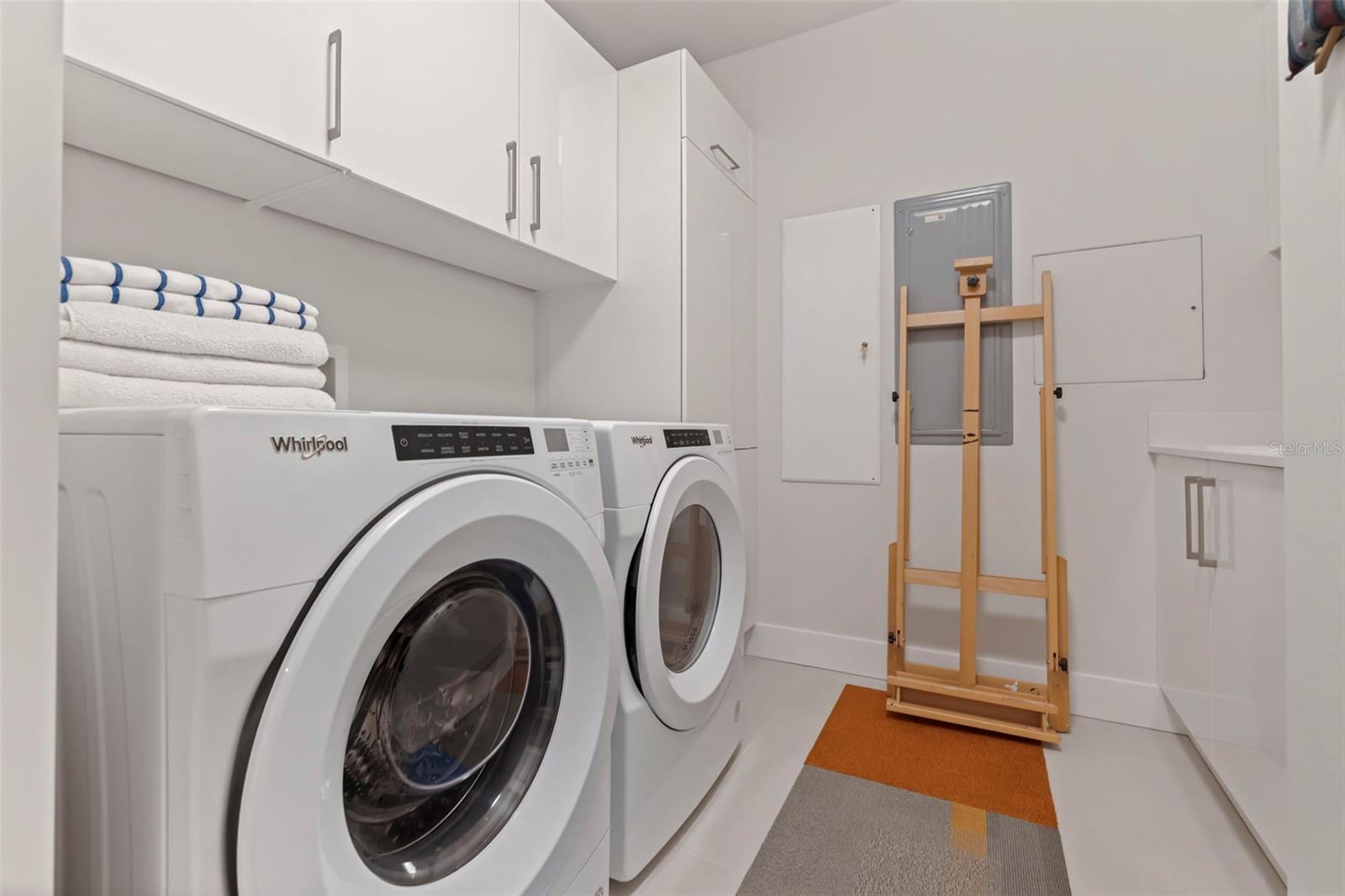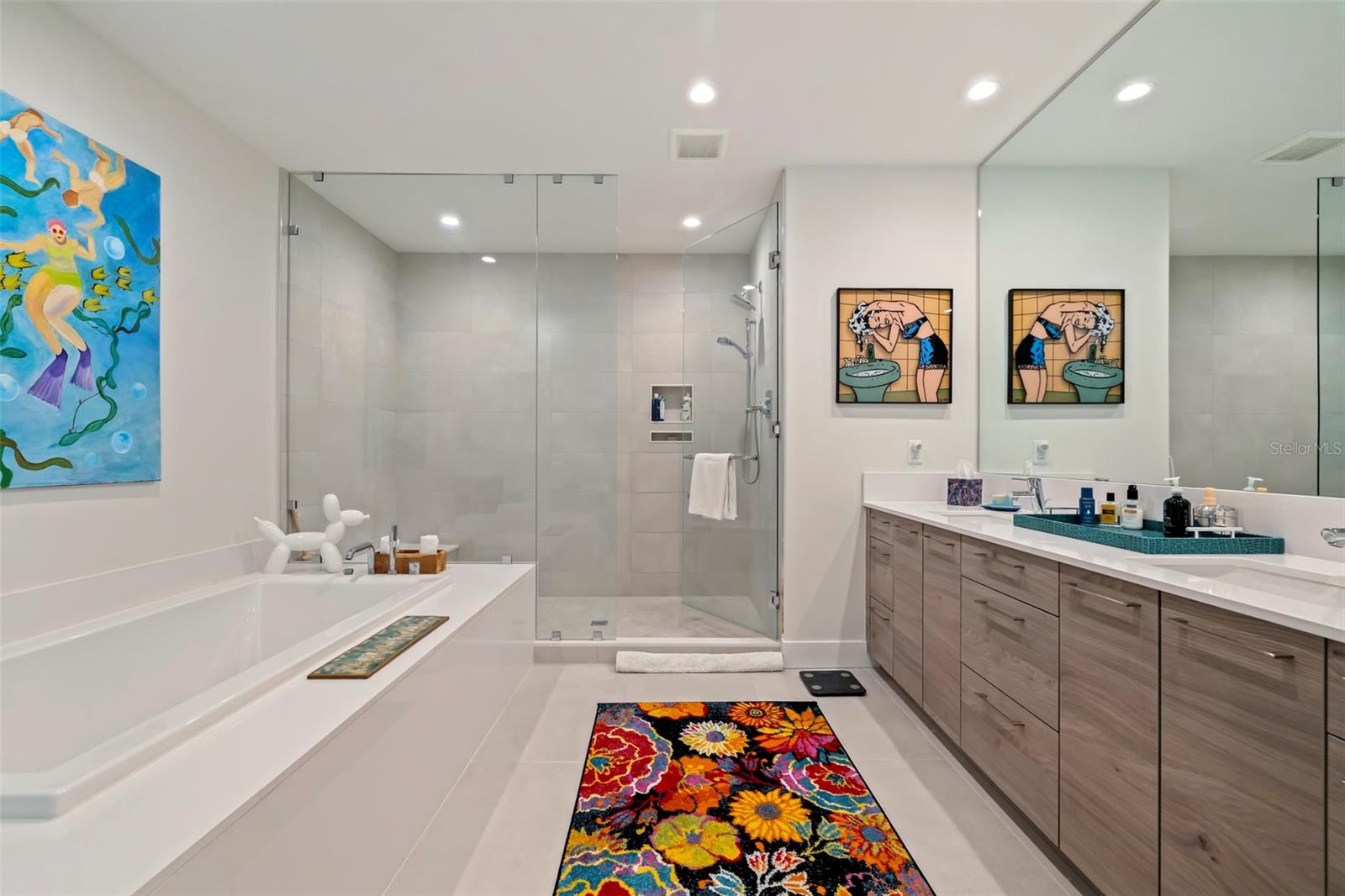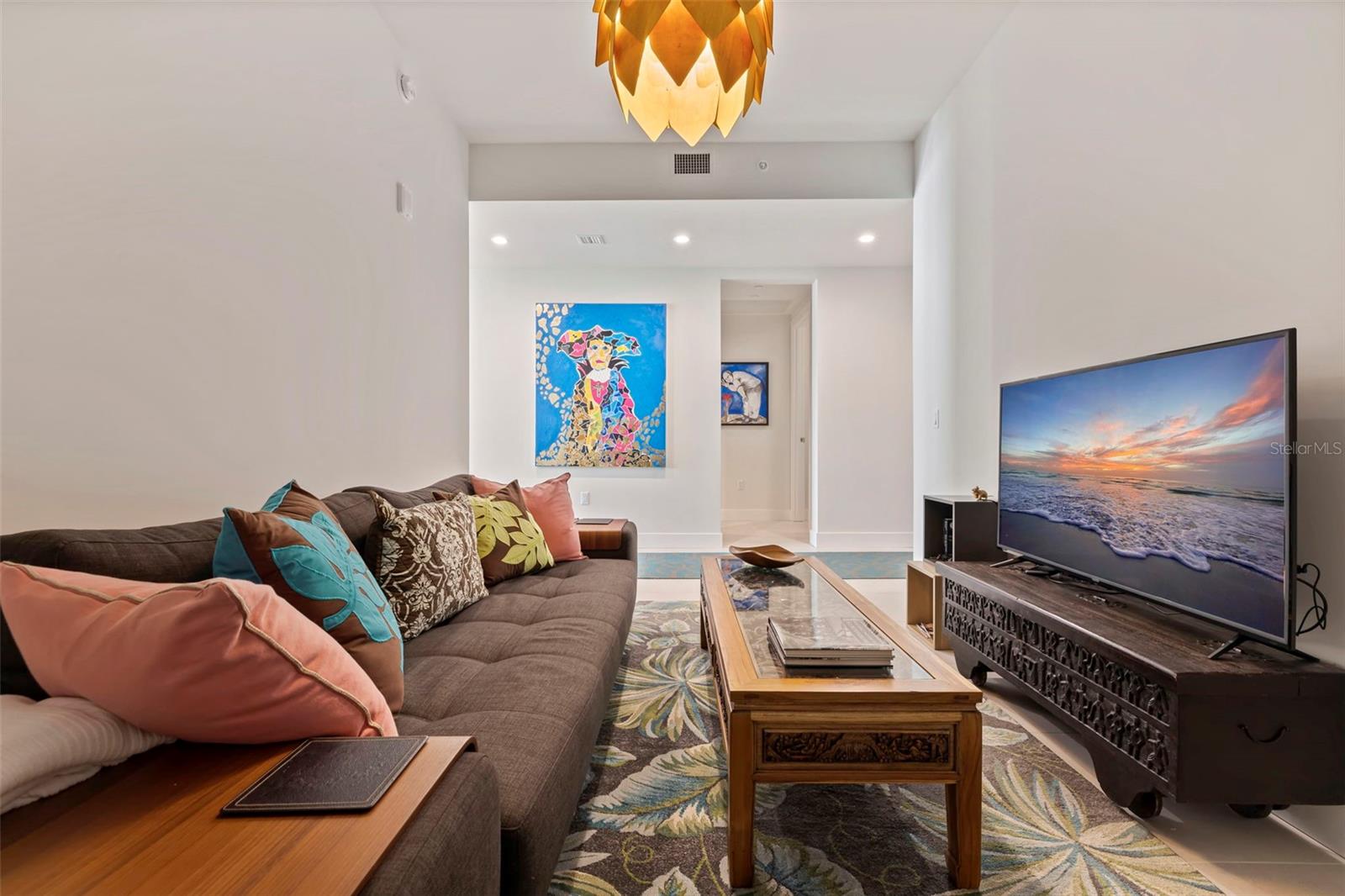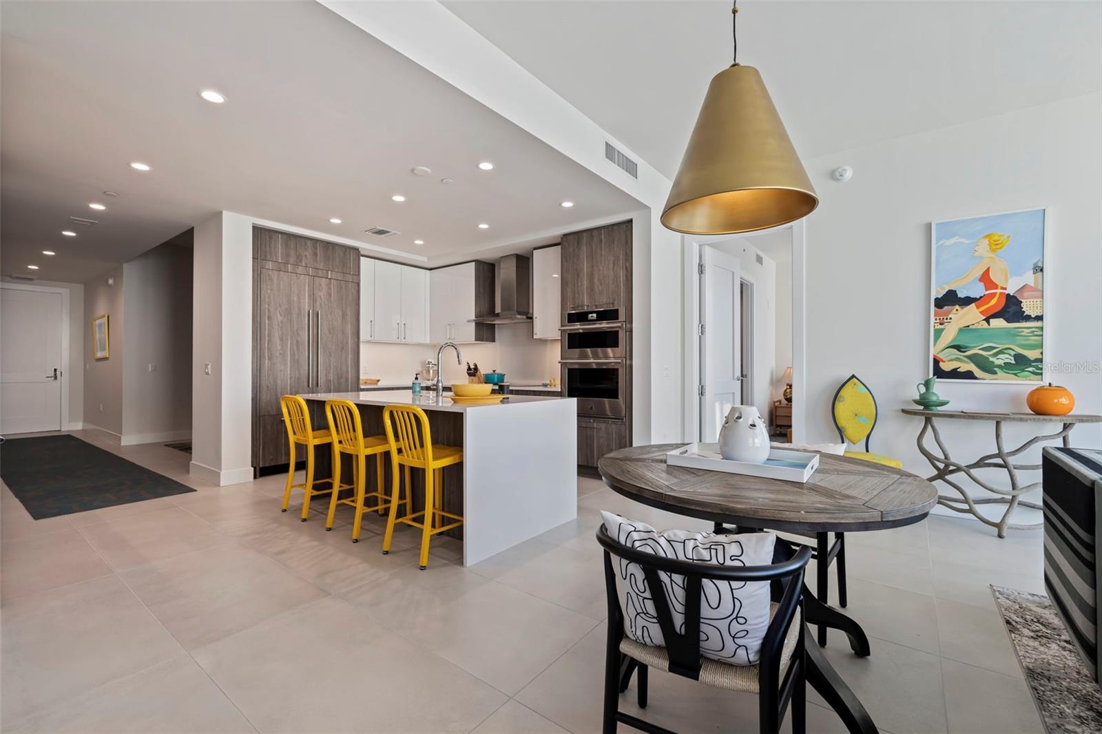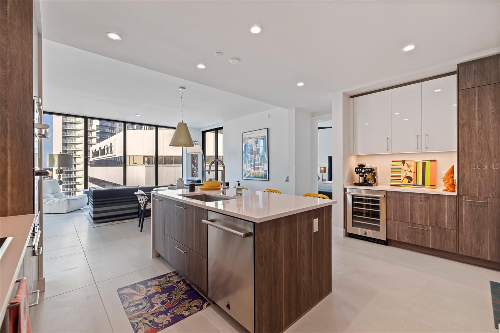 Situated on the 14th floor of the newly completed Saltaire, this exquisite condominium epitomizes the fusion of luxury and leisure. Offering an unparalleled living experience, this 2-bedroom plus versatile den, 3-bathroom unit spans 2,036 sq ft of meticulously designed interiors. Upon entry, be captivated by breathtaking water vistas to the east and sweeping city panoramas to the west. Dual expansive balconies, accessible from both the great room and each bedroom, invite seamless indoor-outdoor living. The interior is adorned with elegant porcelain tile flooring and high-end fixtures throughout, including three ceiling fans for added comfort. The kitchen dazzles with stainless steel appliances, slide-out pantry drawers, and a central island with bar seating, perfect for hosting guests. The owner's suite offers a tranquil retreat with a private balcony showcasing a blend of water and city views, along with dual walk-in closets. Indulge in the spa-like owner's bath, complete with refined vanities, a soaking tub, and an oversized walk-in shower. The second bedroom suite provides its own sanctuary with city views, a walk-in closet, and a private balcony, while the den offers flexibility as an additional bedroom or home office. This unit includes two dedicated parking spaces in a secure, covered garage, along with a climate-controlled storage unit conveniently located next to the residence. Beyond its exceptional interiors, Saltaire offers resort-style amenities, including a pool, spa, club rooms, fitness center, and dog park. Residents can also enjoy breathtaking views from the 7th-floor deck overlooking Tampa Bay and downtown St. Pete. With waterfront parks, marinas, shops, and dining options just steps away, Saltaire isn’t just a place to live—it’s a statement of sophistication, offering an unparalleled blend of luxury, convenience, and vibrant city living.
