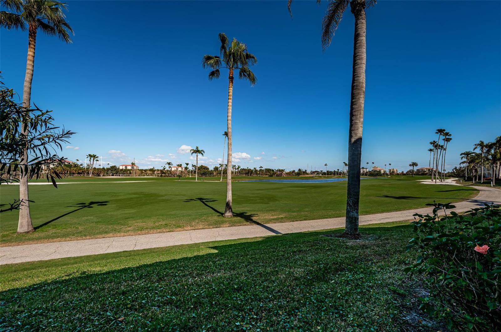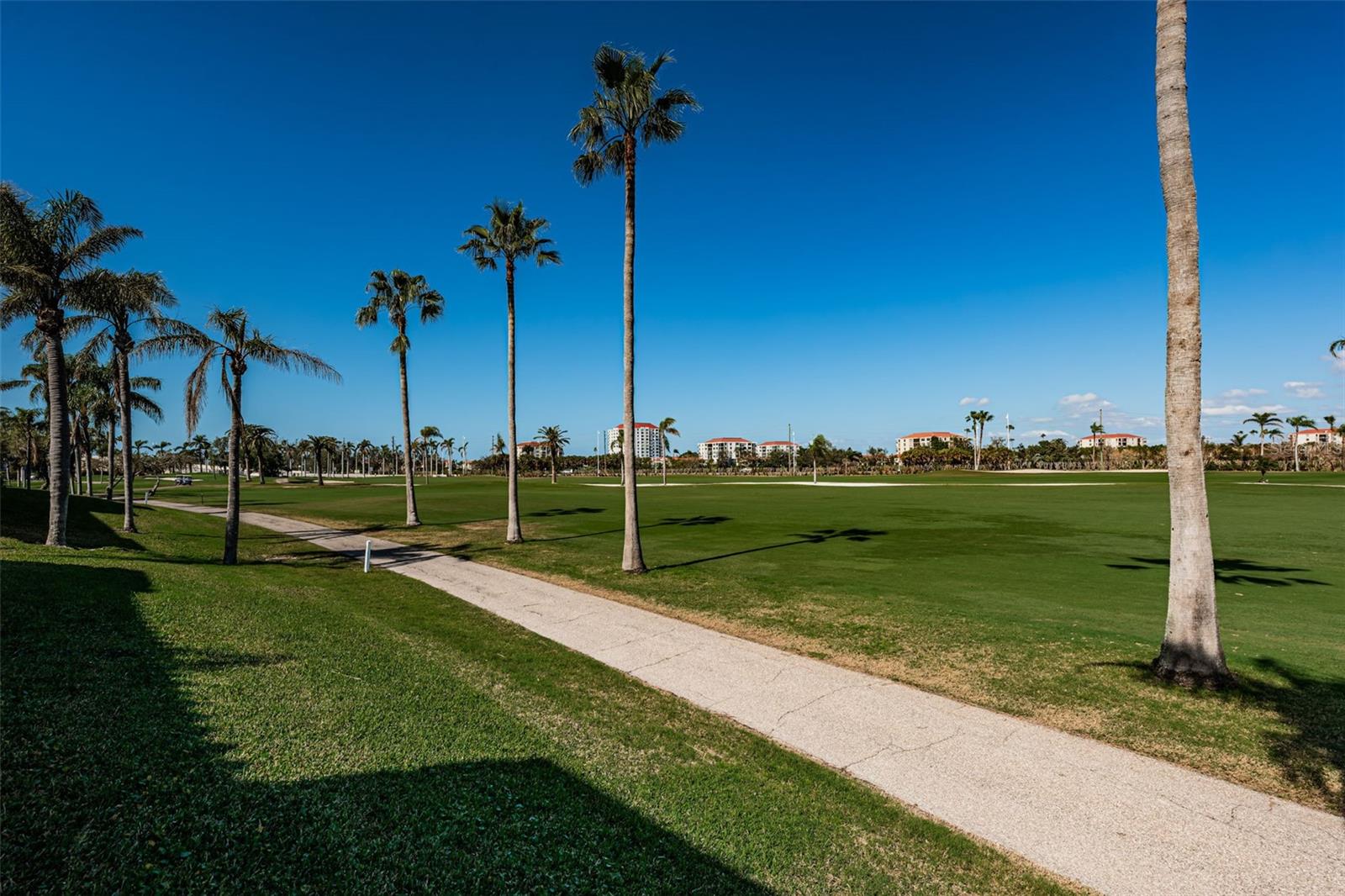 ** REDUCED PRICE ** Enjoy paradise in this comfortable two-bedroom, two-bathroom condo. This unit is easily accessible being on the first floor. Step in and immediately notice the lush green views of the Isla Del Sol golf course. The large kitchen features a lovely breakfast nook. The dining and living rooms provide ample space to entertain family and guests. The primary bedroom/suite with views of the golf course is separated by double doors that encompass the primary bedroom with walk-in closet and connecting to the primary bathroom with tub and double vanity. The generously sized secondary bedroom has separate access to the guest bathroom with a step-in shower giving an ensuite feel for your guests. This bathroom is also accessible from the living area, granting privacy when guests are over. Pull out an electric grill from the patio storage closet while relaxing on the patio and enjoying the peacefulness of the golf course view. This 7-day minimum rental property is an excellent investment opportunity for rental income, or even better to make this your permanent home or vacation get-away in paradise. Take advantage of a golf, tennis, yacht or social membership offered at Isla Del Sol Yacht & Country Club. All of this, and within minutes of the award-winning beaches of Fort Desoto State Park, and top ranked St Pete Beach. Or with easy access to I275, you're only 15 minutes to the vibrant activity of the nightlife, restaurants and shopping in downtown St Petersburg.