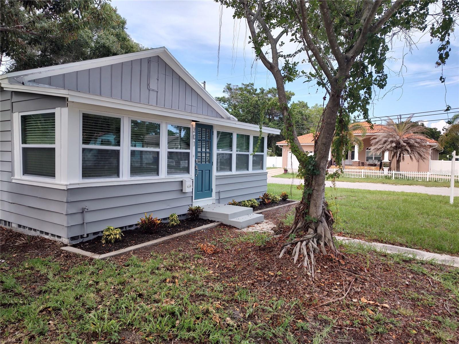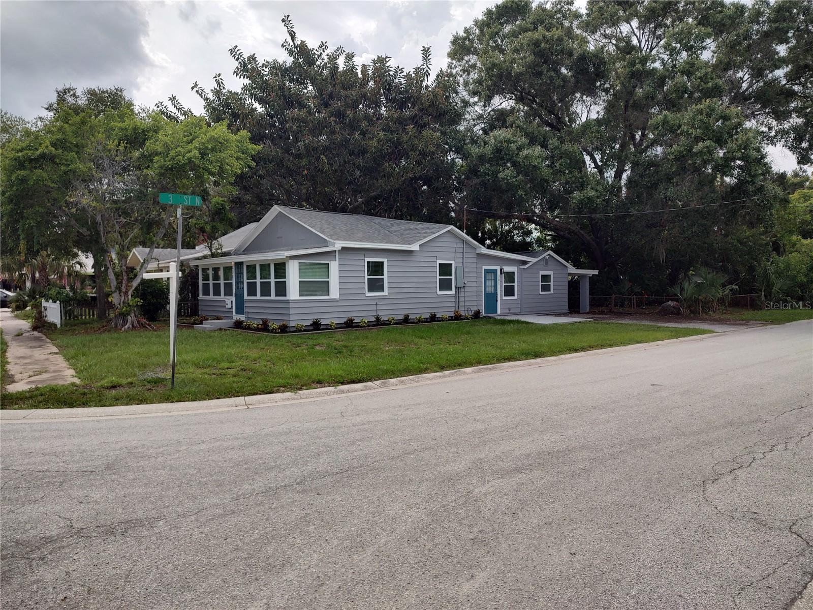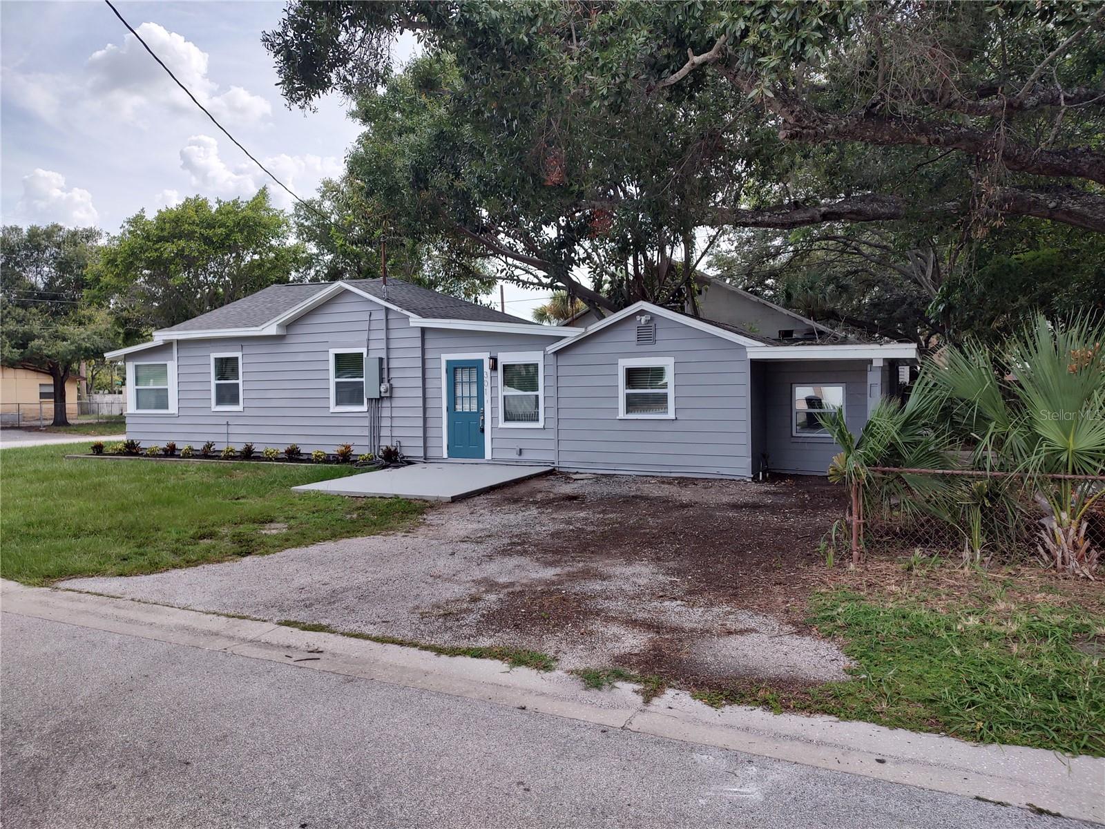 Ideal location in North St. Petersburg for this 3-bedroom, 2-bathroom home. The home sits on a corner lot with a side driveway, fenced in backyard and storage shed. The home was completely remodeled in 2023 with new roof, AC, impact windows, paint, tile floors, bathrooms, kitchen, stainless-steel appliances, and much more. The interior also features built in cabinets and full sink in the laundry room and two closets for the primary bedroom. This nice, quiet neighborhood is conveniently located a block off of 4th Street near restaurants, shopping, schools, I-275, and is a quick drive to downtown and the beaches.