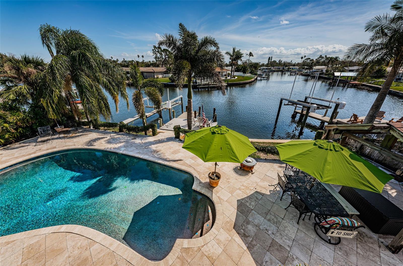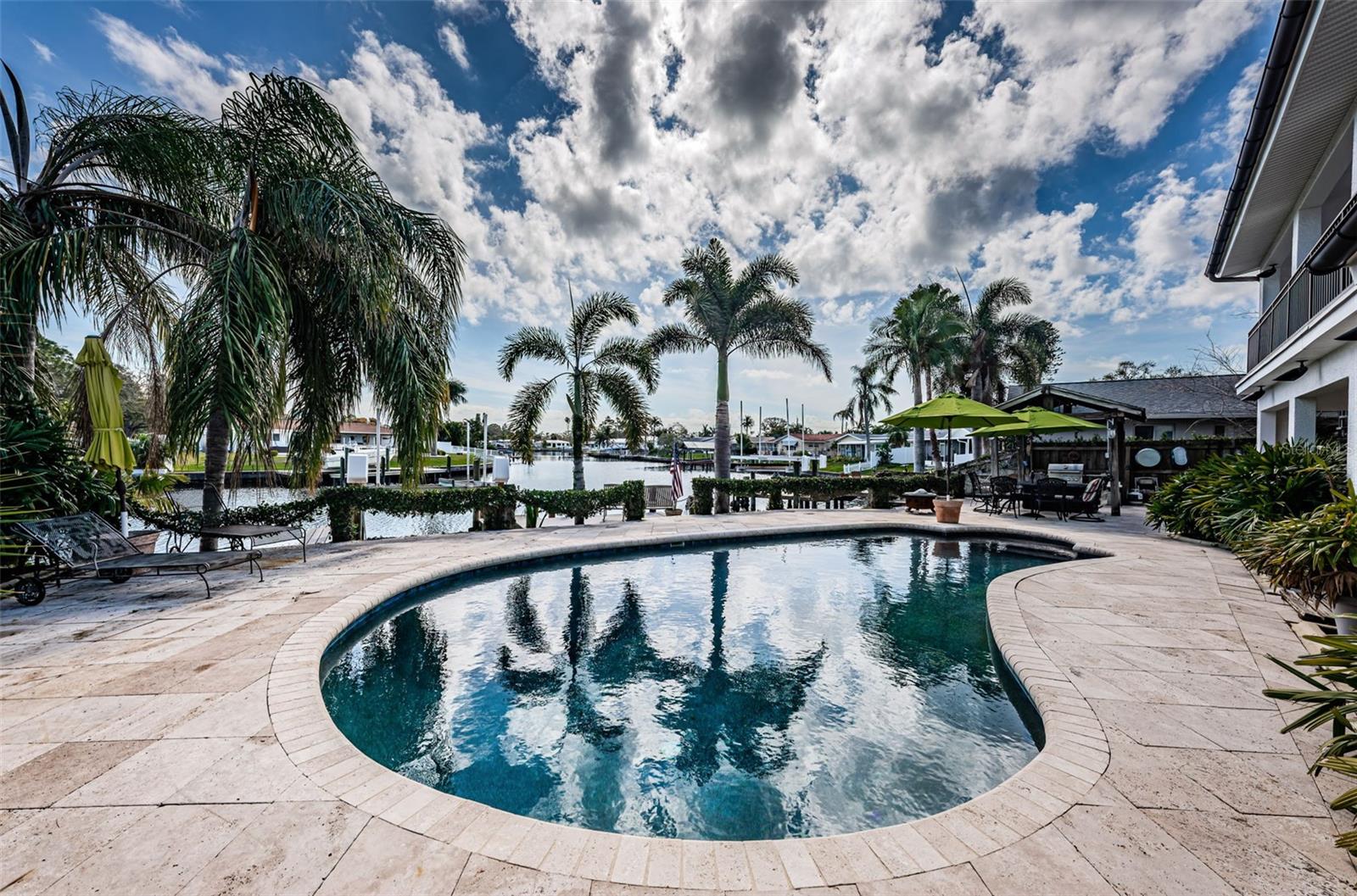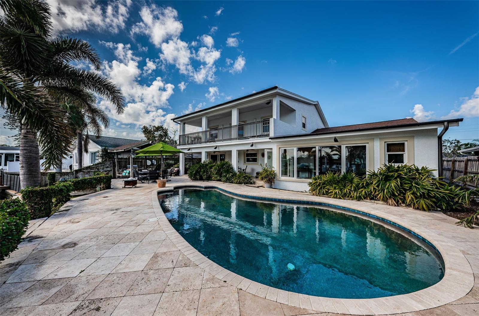 SELLER MOTIVATED! You'll fall in love with this beautiful home. This stunning waterfront, two-story home in desirable Waterway Estates in NE St. Petersburg offers three bedrooms and three bathrooms. Could be 4 bedrooms! It includes a beautiful saltwater pool and canal frontage providing direct access to Tampa Bay. Well-maintained and updated, the home has had only three owners. Big ticket items done! New HVAC system and brand new roof, both in 2025! The downstairs features neutral tile, while the upstairs is graced with rich Brazilian teak flooring. The updated kitchen boasts a farm sink, newer stainless-steel appliances, beautiful cabinetry, and an island for additional prep space. The Florida room provides a perfect view of the pool and travertine patio. The bathroom floors are elegantly finished with marble. The home was originally a 4-bedroom and could easily be converted back. A wall could be added to an upstairs bedroom that had previously been taken out, or there's the possibility of a 4th bedroom, on the first floor, that could be a separate in-law suite with a full bath. Additional features include a fantastic water view from the 2nd story balcony, a new pump and filter for the pool, an amazing outdoor space with a gazebo and grill, and a covered patio with shady spots for relaxing. For added convenience, there is extra storage access over the garage with easy entry from in the home. It's only 10 minutes to Tampa Bay via boat or car, 25 minutes to the airport. This home has been loved and cared for, and it truly offers the best of waterfront living in a prime location.