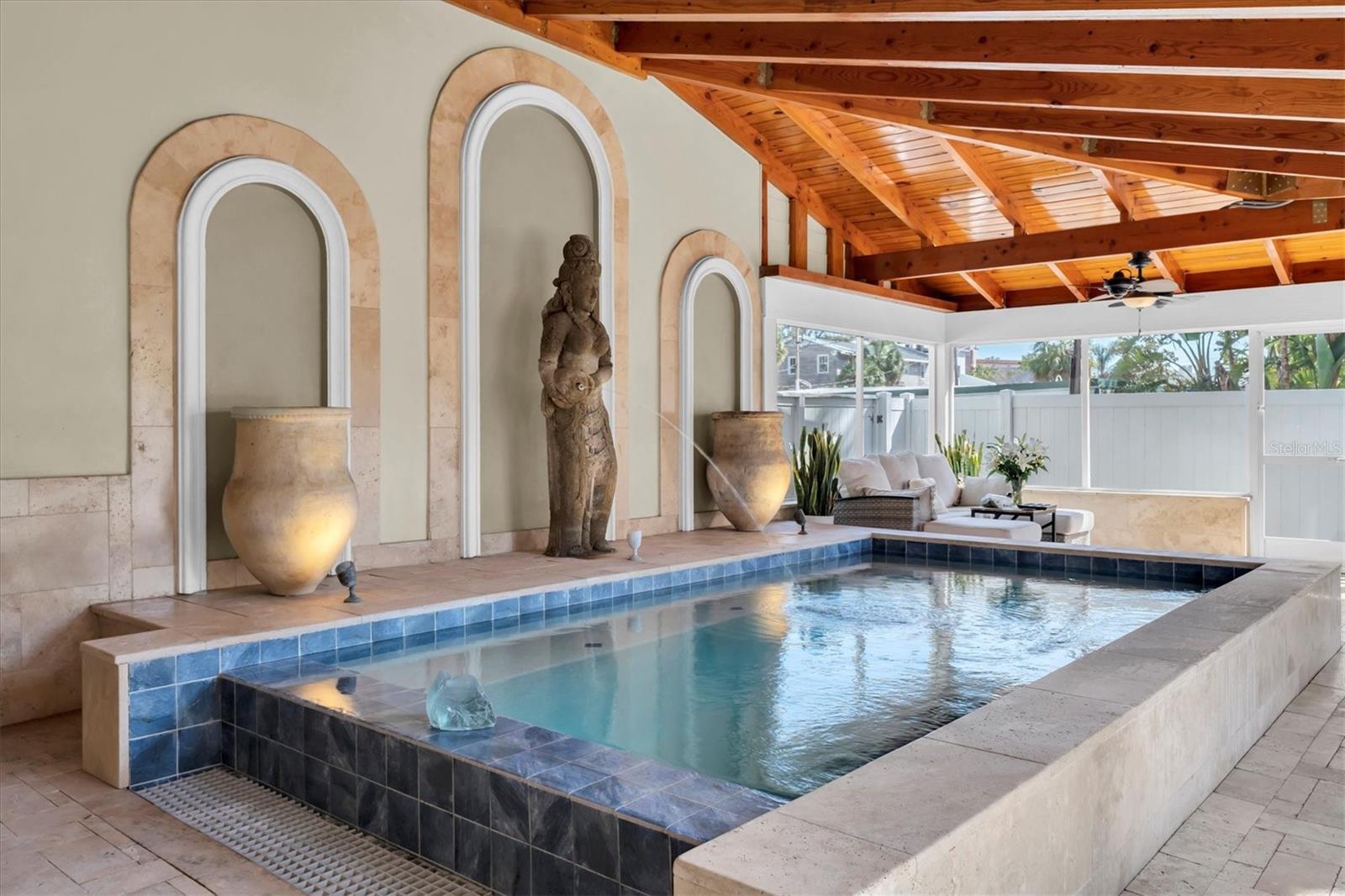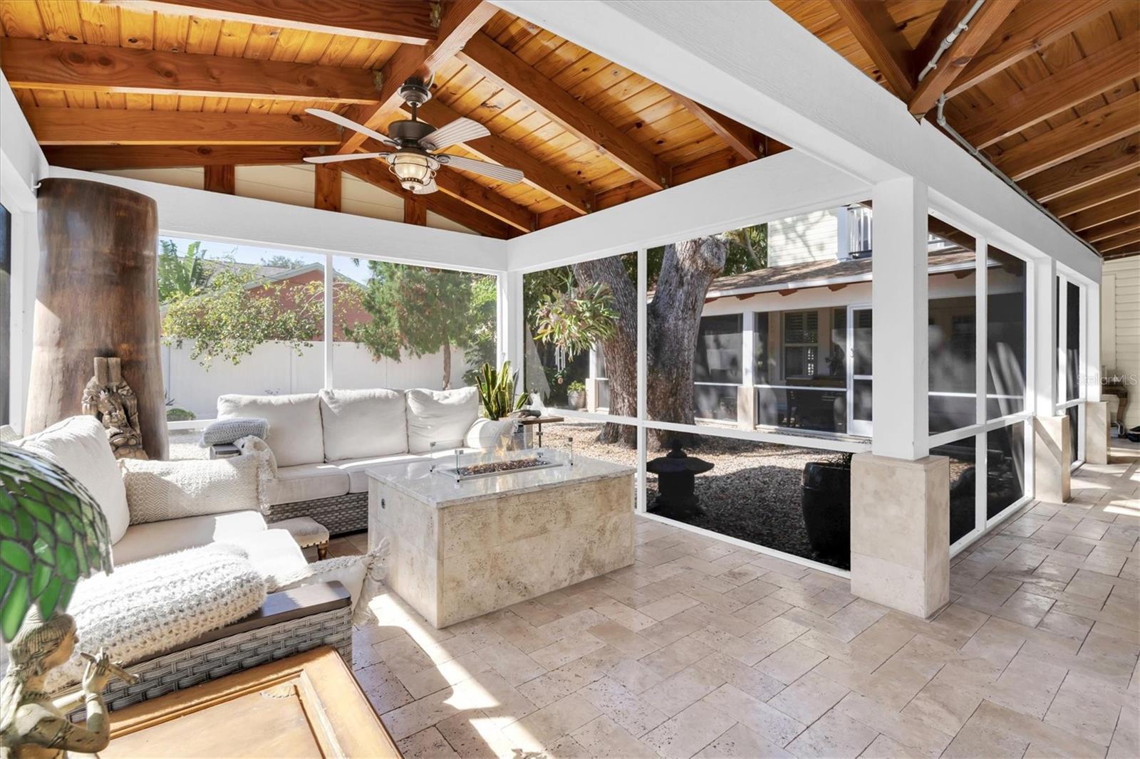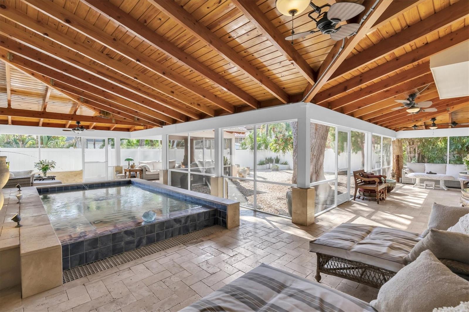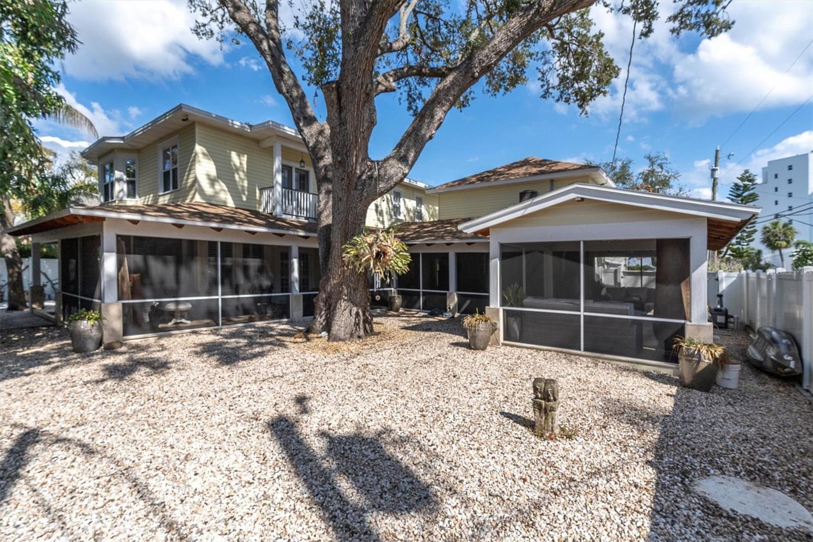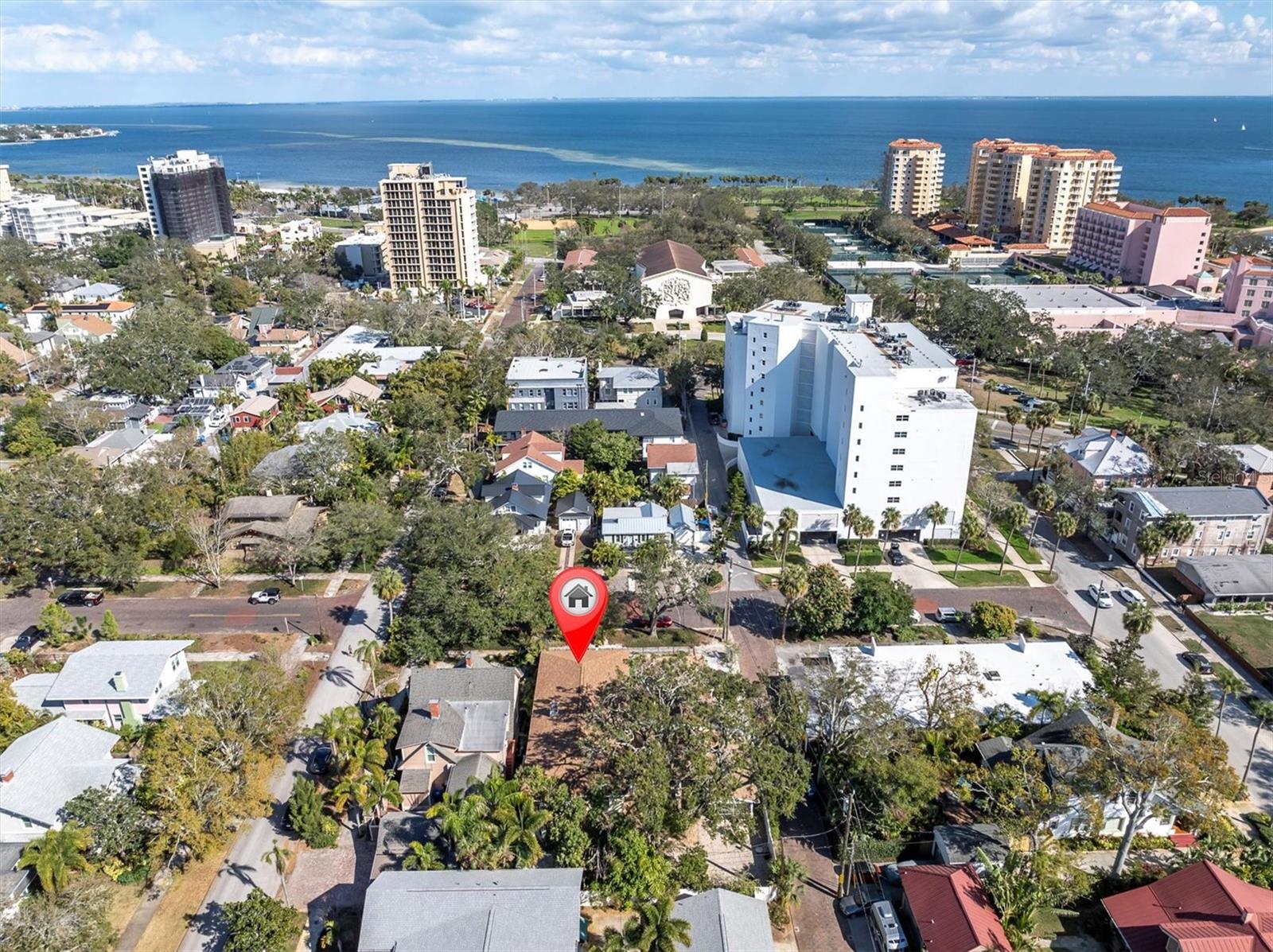 This Circa 1905 Colonial-style Beauty is a RARE find in our Coveted Old Northeast: DOUBLE LOT; WALKING DISTANCE TO DOWNTOWN; OFF-STREET PARKING FOR 6 CARS; POOL; 2 CAR GARAGE; LEGAL GARAGE APARTMENT; FENCED FRONT AND BACK. It offers 6 Bedrooms and 5 Baths, including the Garage Apartment. Built in tandem with the iconic Vinoy Hotel, this home blends Period Charm with Modern Amenities and offers the Discriminating Buyer the opportunity to own a piece of Architectural History. As you enter through the wrought-iron gate, you will notice the home's curb appeal. The front porch could easily be featured in an advertisement for Southern Living! Upon entering, you are greeted by new Hardwood Floors, 7 3/4" Antique Baseboards, Crown Molding, Arched Doorways, Plantation Shutters, and a Wood-burning Fireplace in the spacious, inviting Living Room. The adjacent Den leads to a functional Updated Kitchen that would delight any Chef with copious Oak Cabinets, Granite, commercial Thermador Gas Stove with Grill, Double Appliances, 2 Pantries, and a Wet Bar. At the back of the Kitchen, you will find a pleasant eat-in area with a Bay Window and a 2nd staircase that could be converted to an Elevator. A spacious Dining Room is adjacent to the Kitchen and looks out to the beautiful backyard through Double French Doors. Up the Grand Staircase, you will find 5 Bedrooms, including 2 Master Suites. The large Master has a Soaking Tub, Steam Shower, Double Vanity, spacious Walk-in Closet, and Juliet Balcony, overlooking the Vinoy Tower. The Hall Bathroom includes a Laundry Room, complete with an “Aussie” drain. The Front Bedroom makes a great Office with View and Balcony access. Retractable Screen doors provide luscious breezes. If you like to Entertain or simply relax in an Outdoor Space, you will be captivated as you step through the French doors and take in the expansive Enclosed Porch, with custom Redwood Rafters and Risers, and a 10-ft deep Heated Saltwater Pool (2018). Upscale Travertine Pavers provide the finishing touch. A White vinyl-fence, beautiful Oak tree, and Xeriscaped backyard complete your Private Oasis. A breezeway connects to an oversized 2-car Garage with a Rentable 1 Bedroom, 1 Bath Garage Apartment built in 2018. It includes a stackable washer/dryer, lovely balcony with view of Vinoy Tower, and reinforced stair railing that can accommodate a chair lift. Other features include a NEW ROOF in 2021, Double-Paned Windows, Improved Foundation and Plumbing under the entire home. The Pool, Tankless Water Heater, Stove, Dryer, outside Firepit & BBQ, and portable Generator (negotiable) operate on natural gas. This Well-loved Residence has stood the test of time and has undergone Extensive Renovations with the current owners over the last 10 years. Pride of Ownership and Meticulous attention to detail are apparent at every turn. The location is ideal—NO FLOOD zone, 1 block to Beach Drive, and Walking Distance to all vibrant downtown St. Pete amenities.