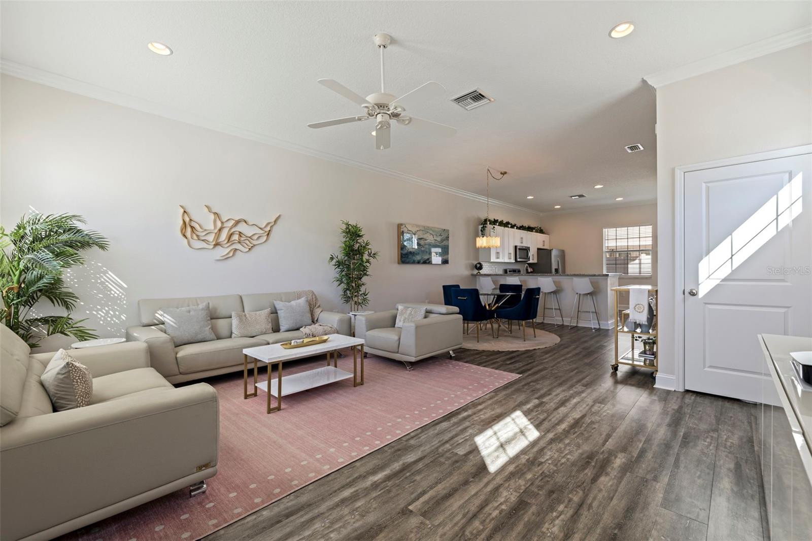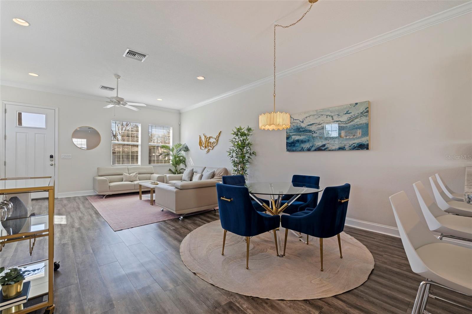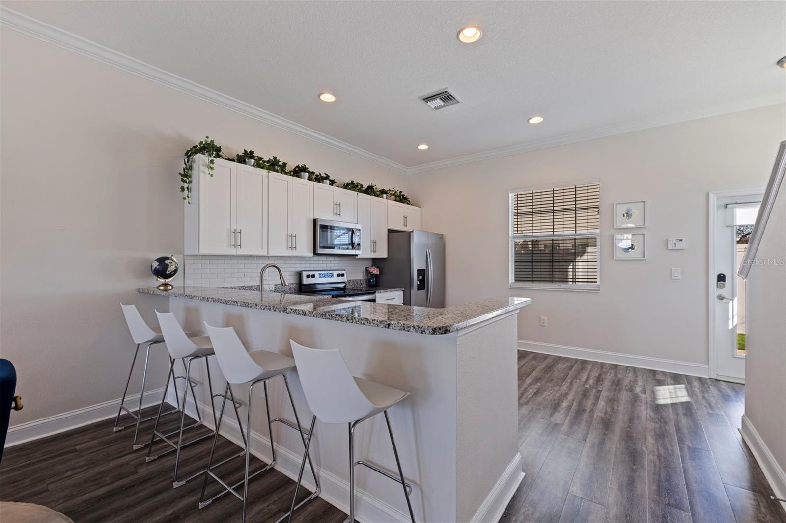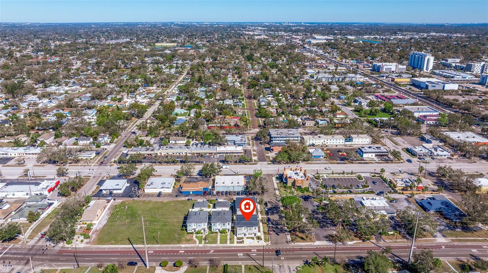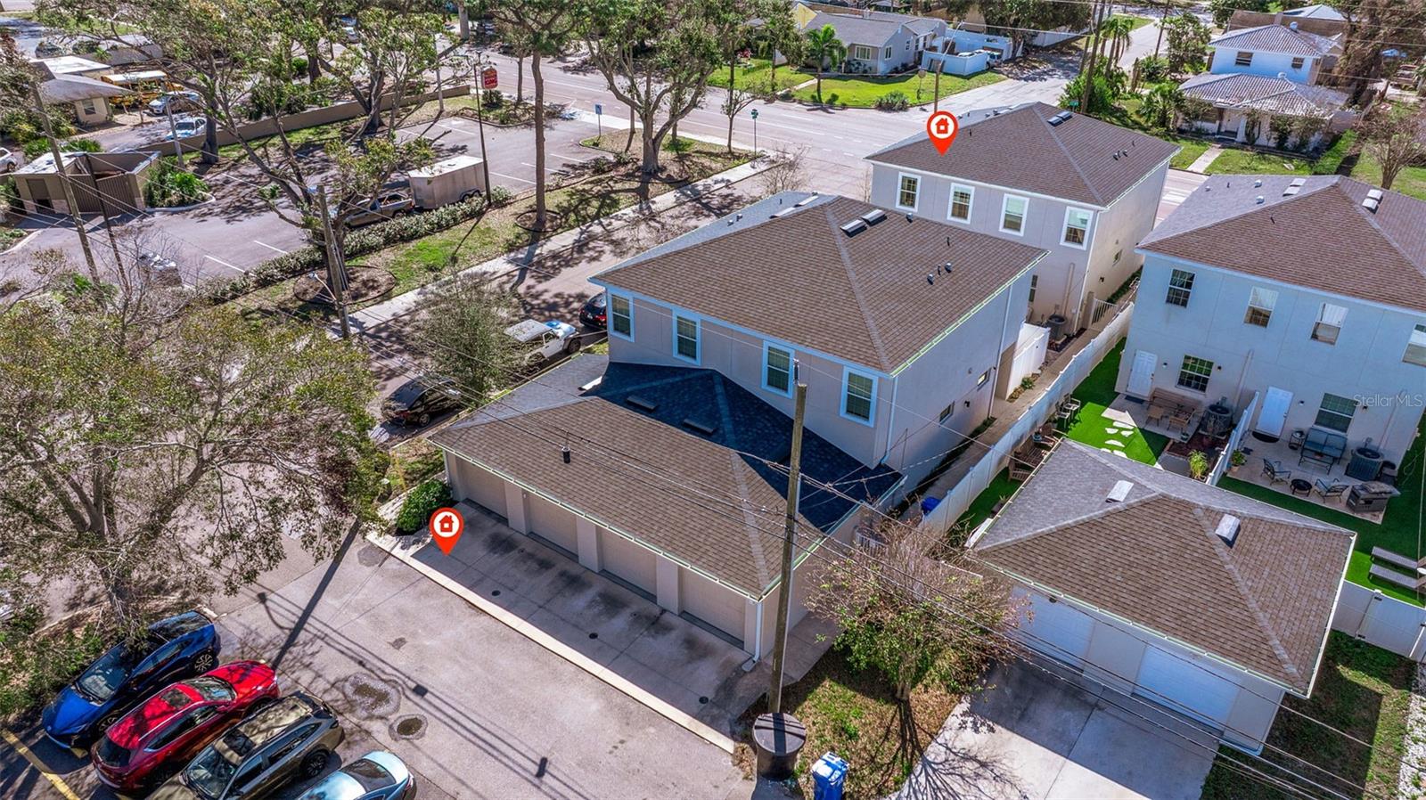 This stylish 2020 built townhome is a RARE opportunity to live at the center of it all, with NO HOA! Highly desirable location, about a 5 minute drive to restaurants and shops in the GRAND CENTRAL DISTRICT, around 8-10 minutes to the heart of DOWNTOWN ST PETERSBURG, and approximately 15 minutes to ST PETE BEACH, with easy access to the Pinellas Trail and I-275. The low maintenance manicured landscaped entry welcomes you into an open-concept layout with high ceilings and laminate floors throughout the first level, perfect for both relaxation and entertaining. The kitchen has granite countertops, white shaker cabinets, stainless steel appliances, and offers plenty of space for meal prep, all while staying connected to the living and dining areas. The half bath on the main level offers added convenience for guests. Step outside and enjoy the low-maintenance courtyard style patio, complete with artificial turf and privacy fence. On the second level, the oversized primary and secondary bedrooms feature their own ensuite bathrooms with ceramic tile and granite countertops, plus walk-in closets. The detached 1 car garage provides additional parking and storage, adding to the appeal of this lovely home. With all of these features and easy access to all that St. Pete has to offer, this property is a must-see!