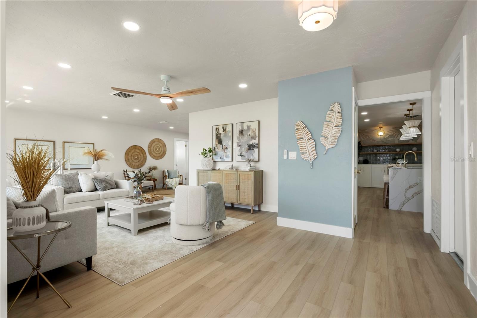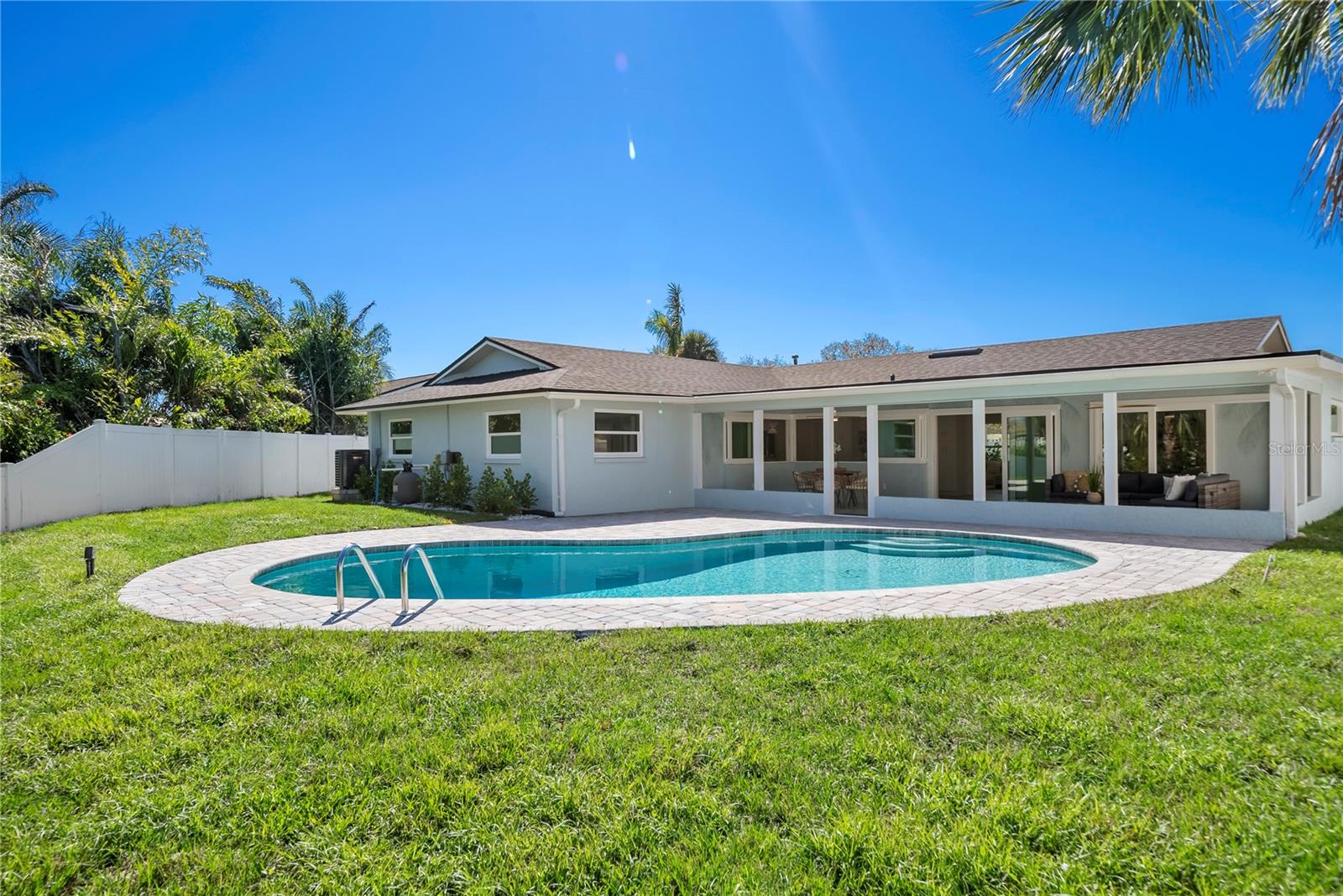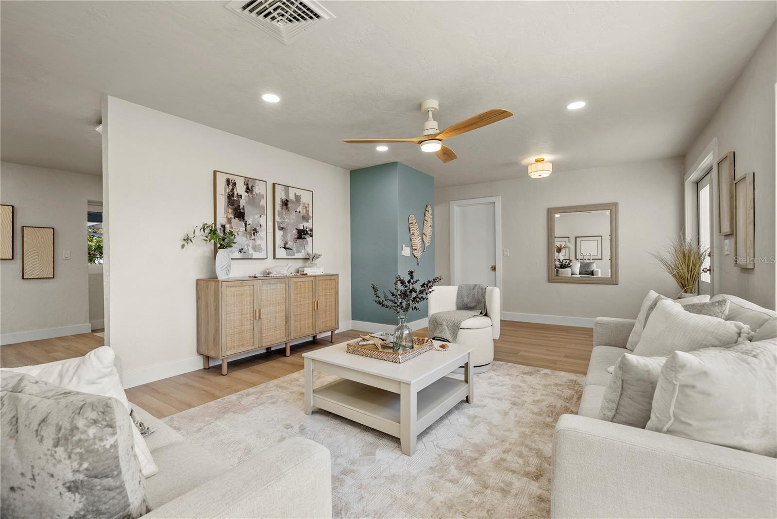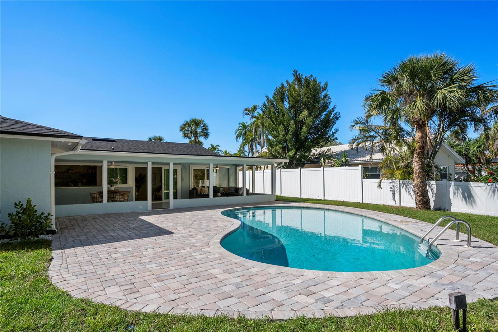 "Best of Both Worlds" in this fully renovated 4 bedroom 2 bathroom pool home offering over 1900 sq ft in the desirable waterfront neighborhood of Broadwater in St Petersburg. Walking into the house prepare to be wowed at every turn. The split floorplan offers 4 bedrooms with 3 bedrooms on one side sharing a hallway bath and the primary bedroom offers an ensuite bathroom with dual walk-in closets and a slider to the lanai and pool area, The newly designed kitchen creates a true entertainer's dream with easy access to the lanai and pool area with pocketing doors and windows, The fresh coastal design of this property is created in every room. The custom-curated kitchen in crisp blue and white offers a custom tile backsplash and a dual waterfall edge island. Enjoy the impressive painted graphic designs with floating shelving creating dual entertainment areas with ample cabinets and Thor appliance package. The consistent Scandinavian luxury vinyl flooring throughout the house makes an impressive coastal beach vibe as well. The indoor-outdoor living potential is so amazing with the large covered lanai off the rear of the house leading to a large paver entertainment area and pool. The attached 2 car garage with laundry has access to the side yard ideal for boat or RV storage. Recent updates include new roof and full renovation throughout. Minutes to the Gulf beaches and easy access to all the fun of Downtown St. Pete. Enjoy the best of both worlds in this stunning property! Get up to 1% lender credit from our preferred lender to use toward closing costs or rate buydown.