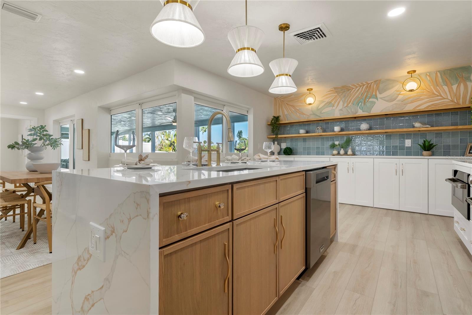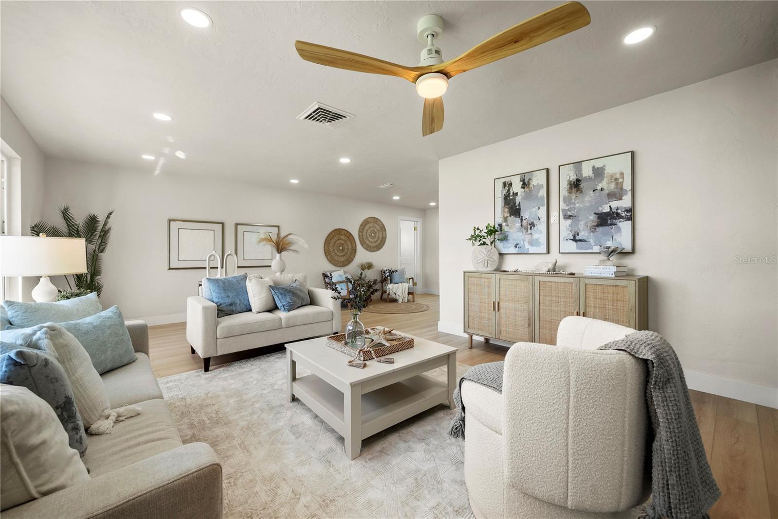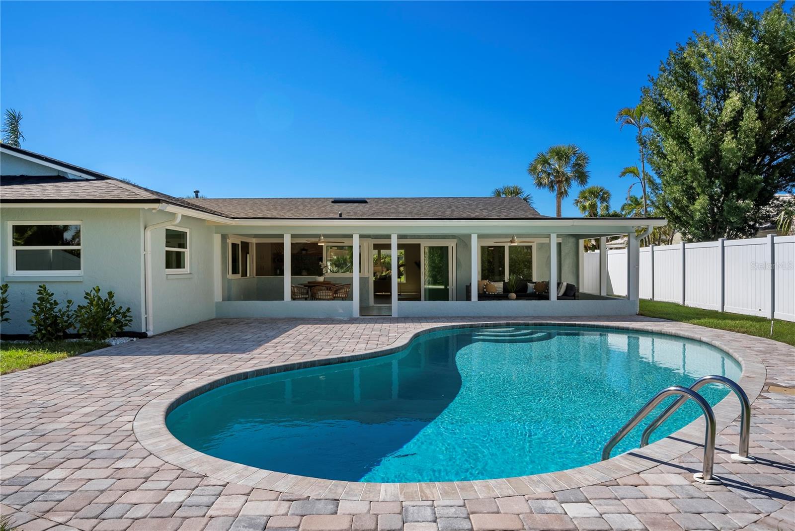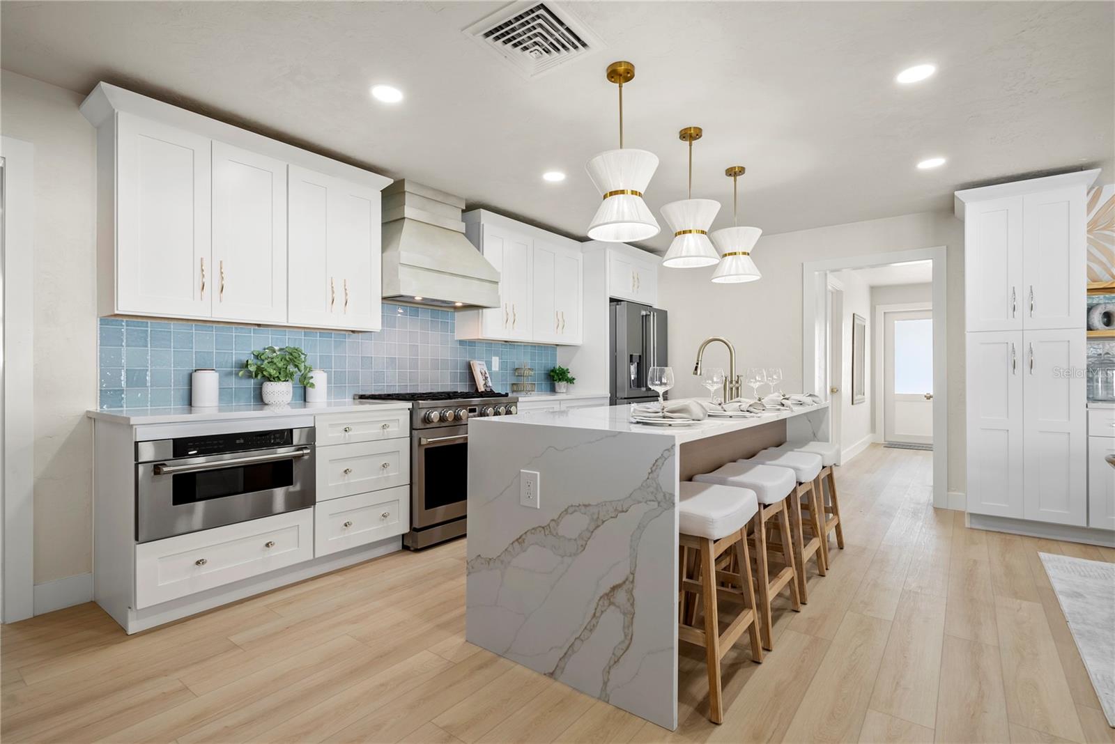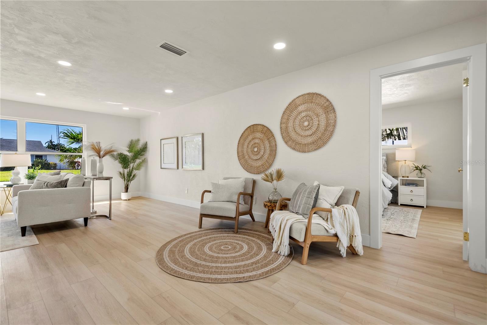 "Best of Both Worlds" in this fully renovated 4 bedroom 2 bathroom pool home offering over 1900 sq ft in the desirable waterfront neighborhood of Broadwater in St Petersburg. Walking into the house prepare to be wowed at every turn. The split floorplan offers 4 bedrooms with 3 bedrooms on one side sharing a hallway bath and the primary bedroom offers an ensuite bathroom with dual walk-in closets and a slider to the lanai and pool area, The newly designed kitchen creates a true entertainer's dream with easy access to the lanai and pool area with pocketing doors and windows, The fresh coastal design of this property is created in every room. The custom-curated kitchen in crisp blue and white offers a custom tile backsplash and a dual waterfall edge island. Enjoy the impressive painted graphic designs with floating shelving creating dual entertainment areas with ample cabinets and Thor appliance package. The consistent Scandinavian luxury vinyl flooring throughout the house makes an impressive coastal beach vibe as well. The indoor-outdoor living potential is so amazing with the large covered lanai off the rear of the house leading to a large paver entertainment area and pool. The attached 2 car garage with laundry has access to the side yard ideal for boat or RV storage. Recent updates include new roof and full renovation throughout. Minutes to the Gulf beaches and easy access to all the fun of Downtown St. Pete. Enjoy the best of both worlds in this stunning property! Get up to 1% lender credit from our preferred lender to use toward closing costs or rate buydown.