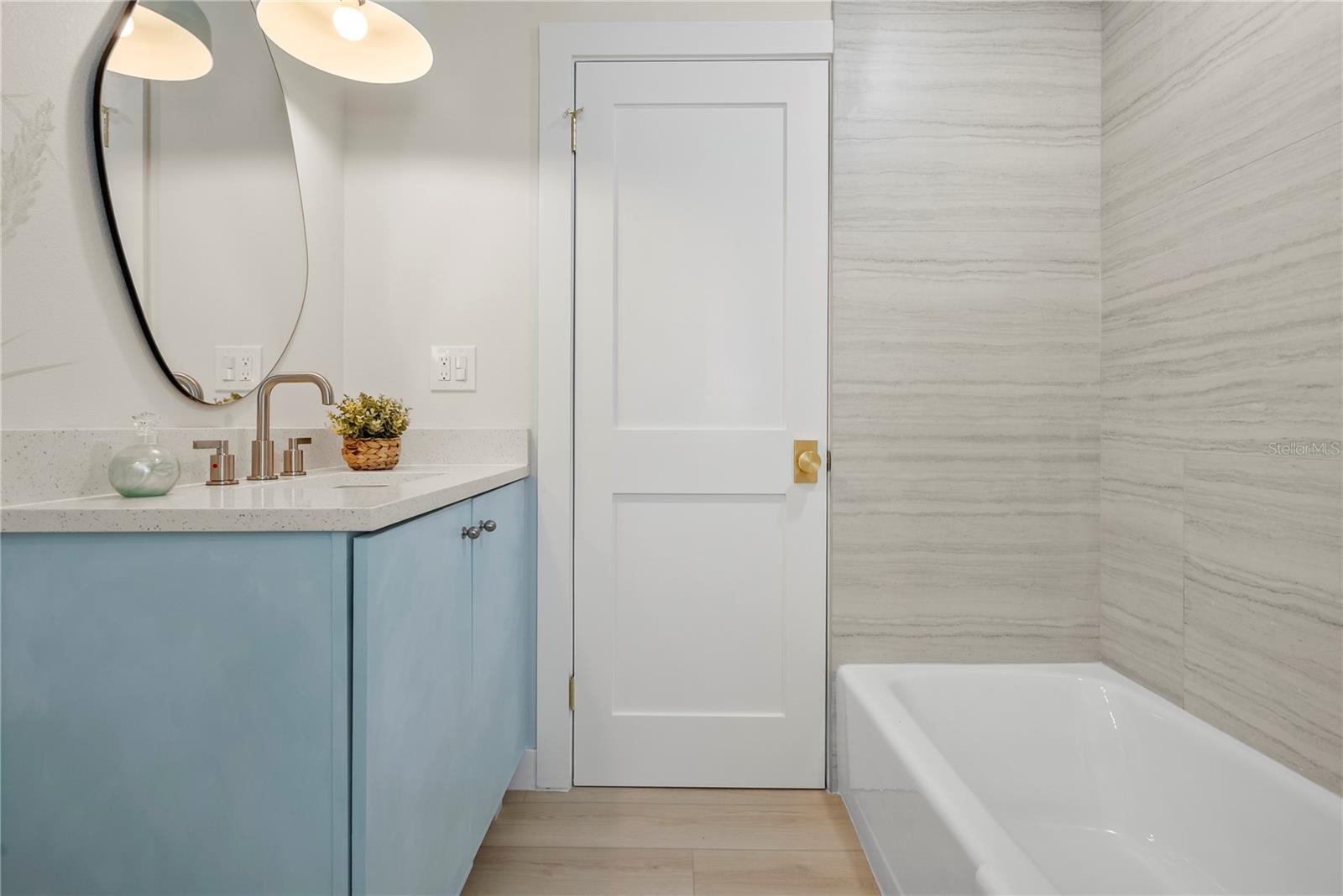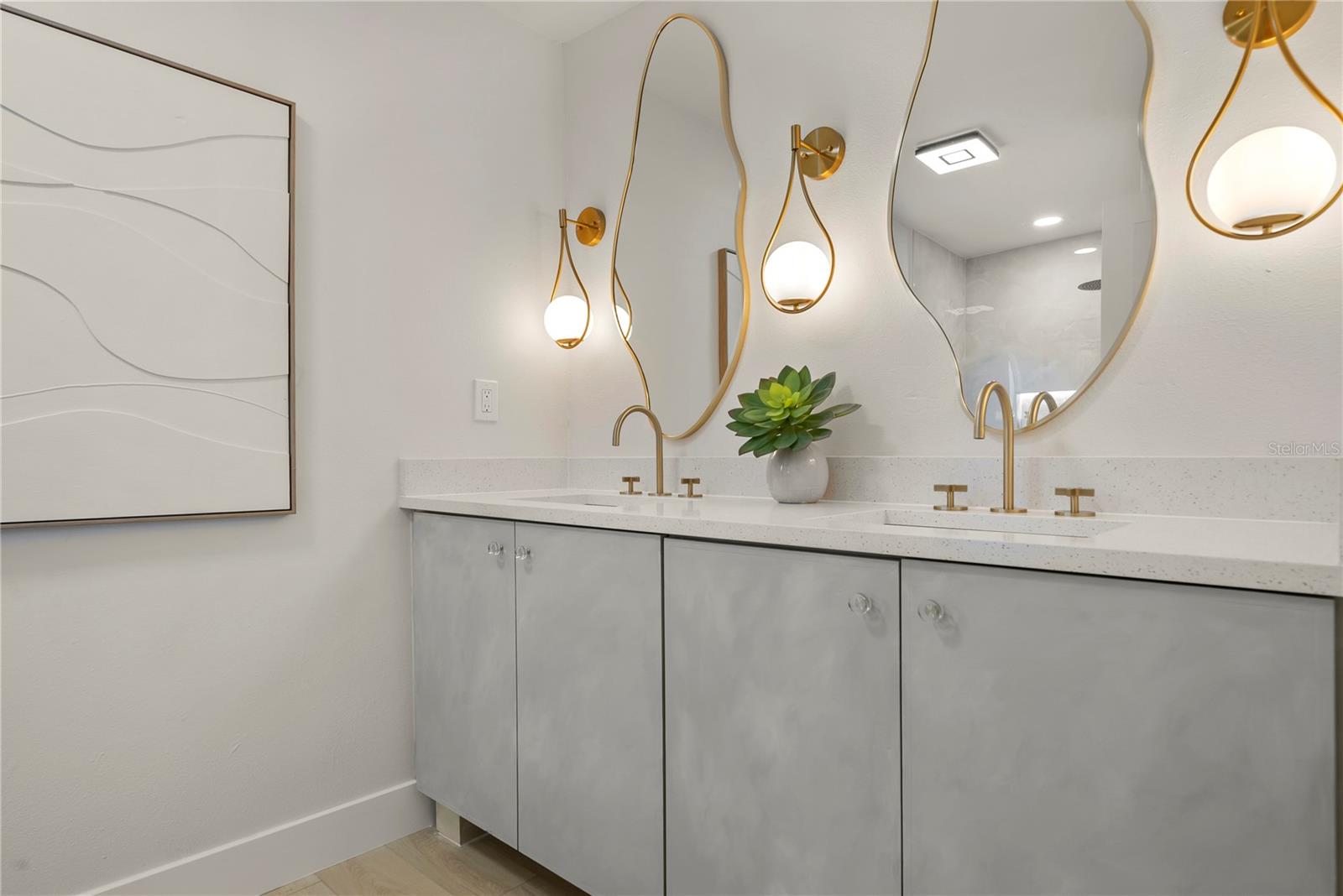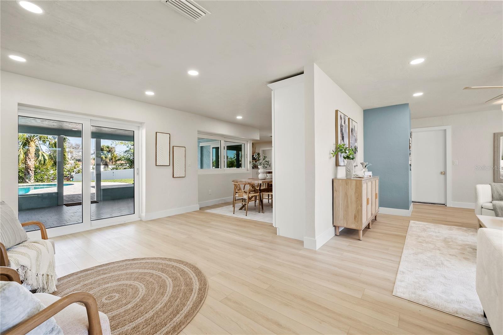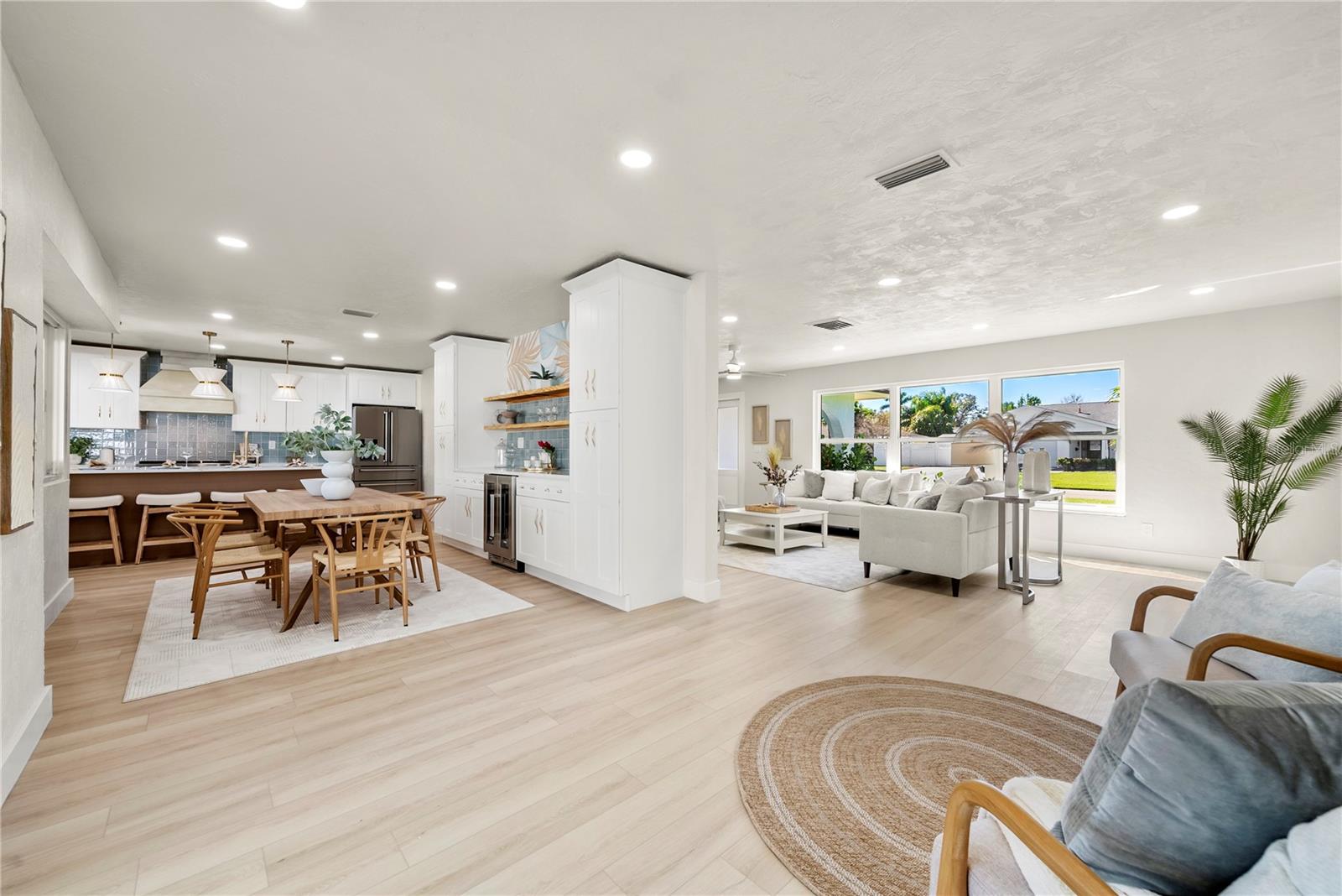 "Best of Both Worlds" in this fully renovated 4 bedroom 2 bathroom pool home offering over 1900 sq ft in the desirable waterfront neighborhood of Broadwater in St Petersburg. Walking into the house prepare to be wowed at every turn. The split floorplan offers 4 bedrooms with 3 bedrooms on one side sharing a hallway bath and the primary bedroom offers an ensuite bathroom with dual walk-in closets and a slider to the lanai and pool area, The newly designed kitchen creates a true entertainer's dream with easy access to the lanai and pool area with pocketing doors and windows, The fresh coastal design of this property is created in every room. The custom-curated kitchen in crisp blue and white offers a custom tile backsplash and a dual waterfall edge island. Enjoy the impressive painted graphic designs with floating shelving creating dual entertainment areas with ample cabinets and Thor appliance package. The consistent Scandinavian luxury vinyl flooring throughout the house makes an impressive coastal beach vibe as well. The indoor-outdoor living potential is so amazing with the large covered lanai off the rear of the house leading to a large paver entertainment area and pool. The attached 2 car garage with laundry has access to the side yard ideal for boat or RV storage. Recent updates include new roof and full renovation throughout. Minutes to the Gulf beaches and easy access to all the fun of Downtown St. Pete. Enjoy the best of both worlds in this stunning property! Get up to 1% lender credit from our preferred lender to use toward closing costs or rate buydown.