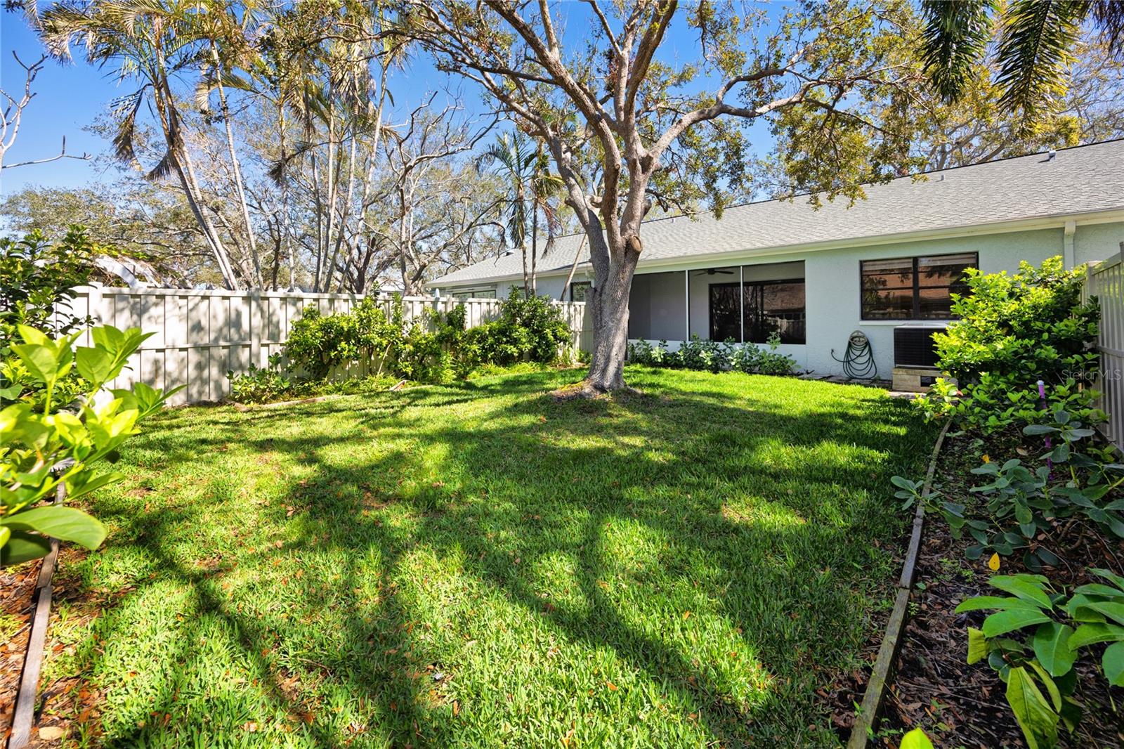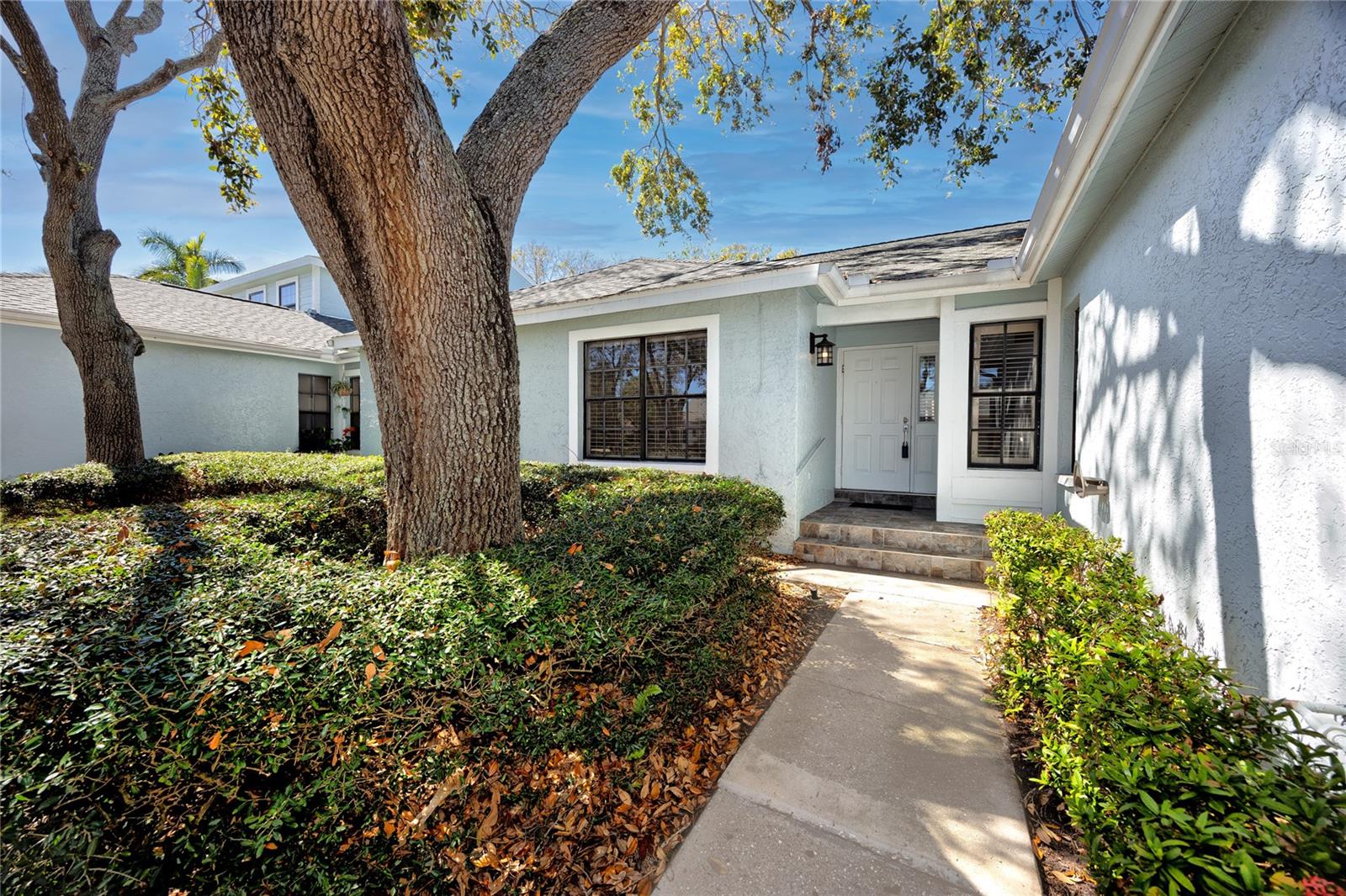 Imagine living in a sought-after community surrounded by picturesque live oaks and serene ponds, offering 24-hour gated security and an array of resort-style amenities. Residents enjoy a large pool, heated Jacuzzi, grilling station, pavilion, fishing pier, and a Boat/Kayak/Paddleboard launch. For sports enthusiasts, the community features tennis and pickleball courts, while boaters will appreciate the private boatyard with canal access to Tampa Bay—all just 10 minutes from Downtown St. Petersburg! This beautifully landscaped two-bedroom villa sits on a charming tree-lined cul-de-sac and boasts an open, split-bedroom floor plan with soaring vaulted ceilings, luxury plank flooring, and plantation shutters. The spacious living and dining areas provide the perfect setting for relaxation and entertaining, while the thoughtfully designed kitchen features a subway tile backsplash, solid surface countertops, updated cabinetry, a work island, pull-up island, and ample storage. The expansive primary suite offers a walk-in closet, an additional storage closet, and private access to the rear lanai through sliding glass doors, creating a peaceful retreat. The second bedroom is conveniently located near the second bathroom, which has been fully updates, ensuring comfort and privacy for guests. A full glass-enclosed lanai overlooks the fully fenced backyard, providing a private oasis to unwind. For added convenience, the indoor washer/dryer closet is situated just off the kitchen. Enjoy a maintenance-free lifestyle, as the HOA takes care of landscaping, yard irrigation, roofing, and exterior painting, allowing you to make the most of the community’s exceptional amenities. This villa is a rare opportunity to experience luxury, convenience, and tranquility in one of St. Petersburg’s most desirable locations.