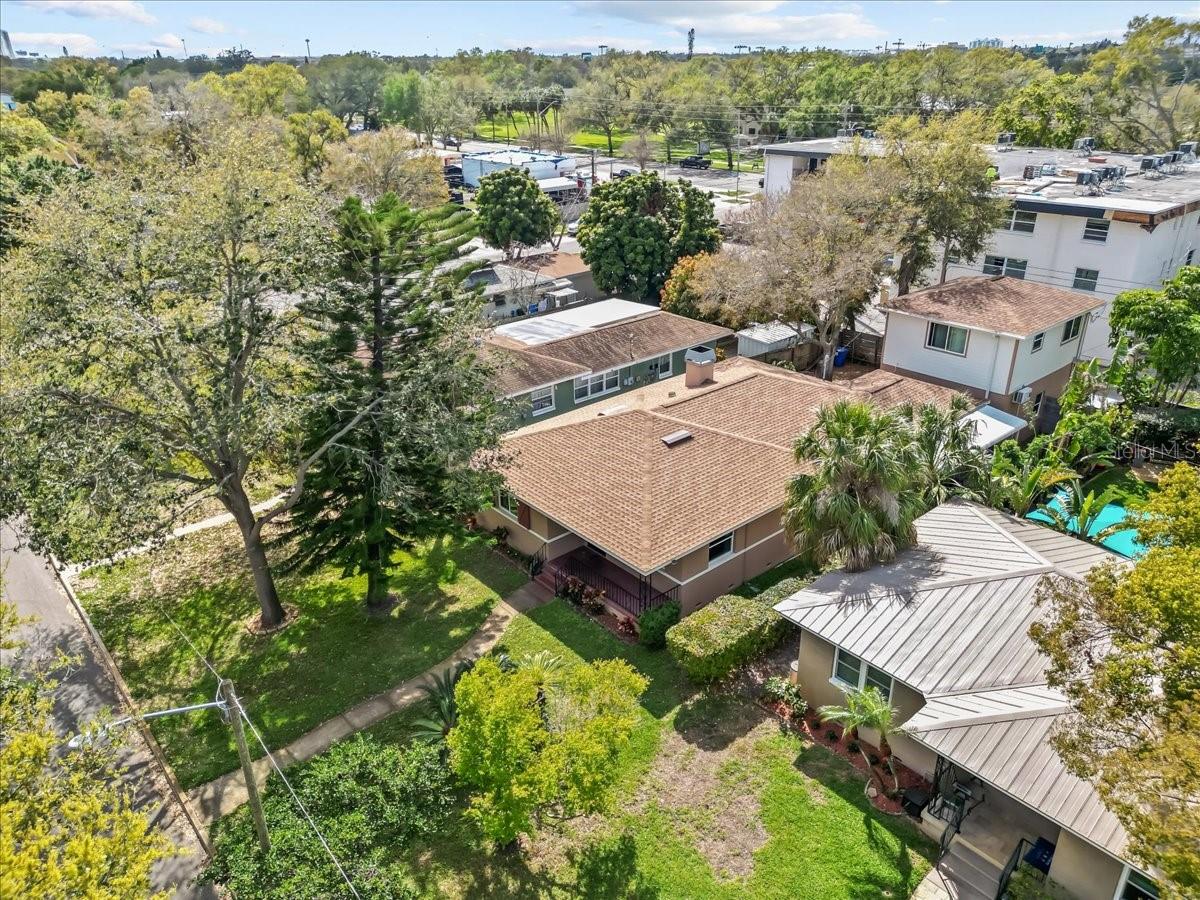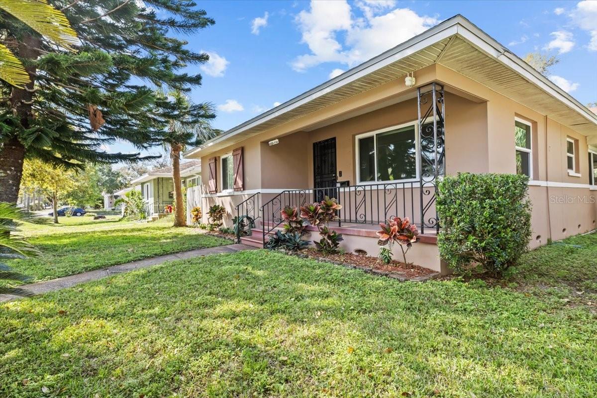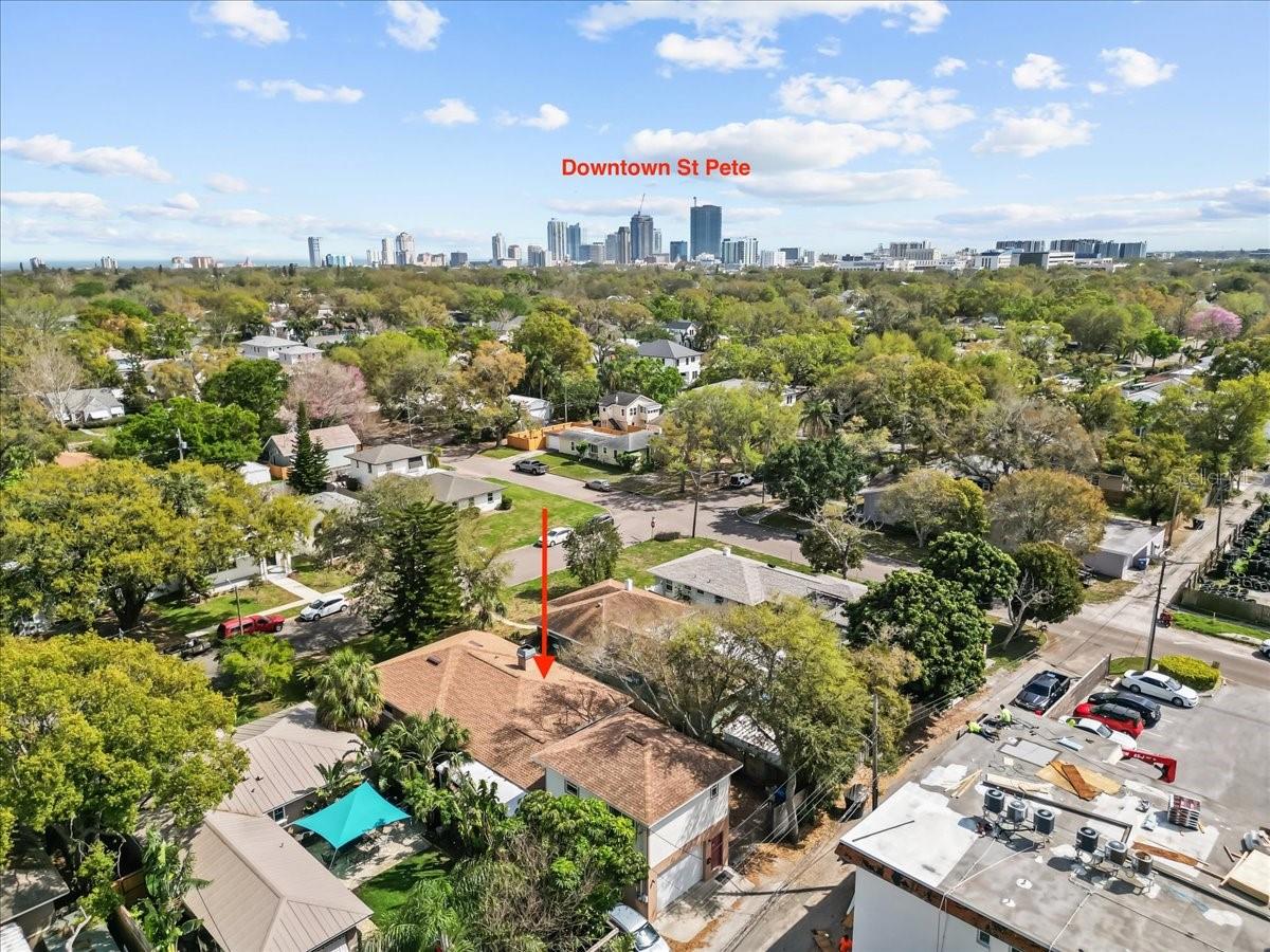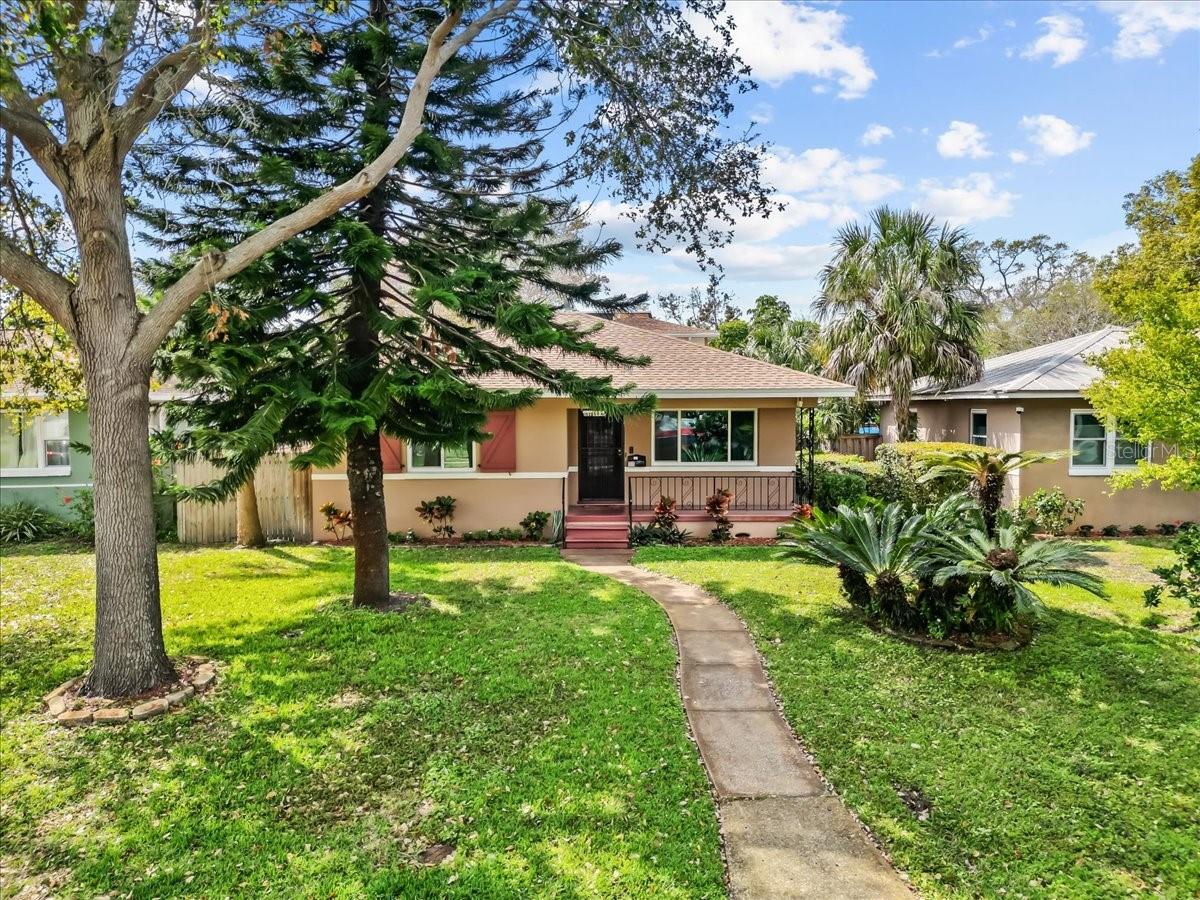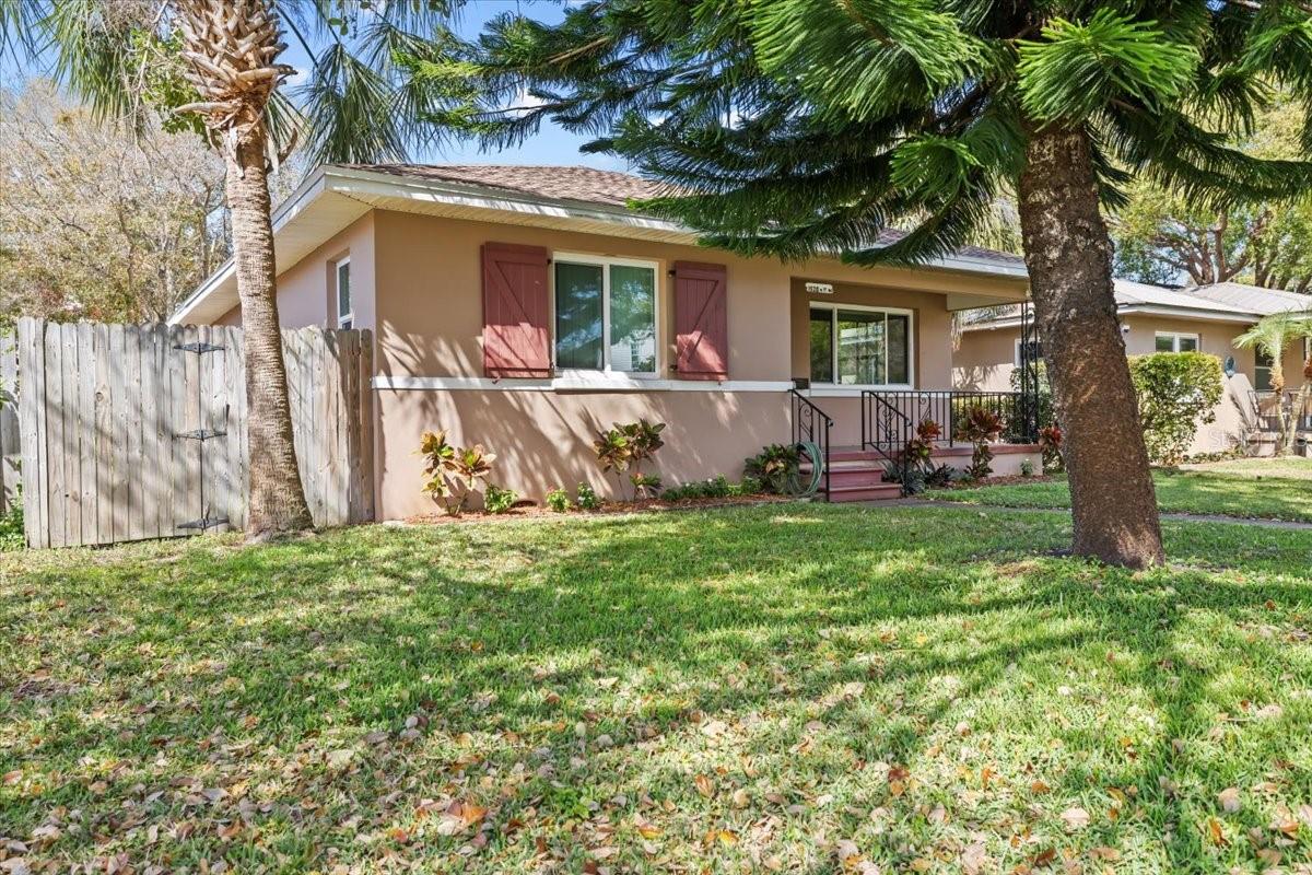 Spacious block home featuring impact windows, new roof, a NEWER DETACHED ADU over the garage and alley access located in the heart of St Pete! This 3 bedroom 2 bathroom main home with additional bedroom and bathroom in the ADU unit are sitting high and dry in the highly sought after neighborhood of Euclid St. Paul's. Enjoy the additional rental income the ADU brings or a great living space for family and friends who come too often! The open air covered front porch, hardwood floors, arched doorways, coved ceilings, and magnificent tongue and groove wood ceiling in the dining room welcome you with the St. Pete charm we all love. This home seamlessly blends beautiful and functional additions while perfectly preserving the history of the original home. With a front living room AND a grand great room with a fireplace located in the back of the home that has 2 sets of beautiful french doors one leading you to the dining room and the other out to your large patio deck, you’ll never run out of places to entertain or have privacy. You could have three parties going on at the same time! The kitchen is loaded with storage with an abundance of cabinets, stainless steel appliances, and granite countertops. There is zero wasted space in this home as it is built to live comfortably. Love storage? This home has 8 closets throughout the main home and a walled off storage section in the garage. Feel safe with new hurricane impact windows (2023), new roof (2023), and located in non-evacuation zone flood X. Work from home? No problem! The back bedroom has an en suite bathroom and walk-in closet and is away from the other 2 bedrooms. Making it the perfect place to have an office or a private place for guests. The detached alley access garage is big enough to park your car, has a dedicated storage room, and 2 potential parking pads besides the garage. Above the garage is the 480sqft 1 bedroom, 1 bathroom apartment that you can rent out for extra income or use for your guests. The irrigation system is powered by well water. So, you have free irrigation for the perfect beautiful yard. Now, let's talk about this AMAZING LOCATION. This neighborhood community is top notch. Euclid St. Paul’s organizes numerous annual family friendly community activities throughout the year including the St. Paul’s Festival and the Haunted Hike. You are 5 minutes from all the action of downtown St. Pete, including the St. Pete Pier, numerous museums, shops, restaurants, breweries, bars, and parks. You can even hop on the Cross Bay Ferry and take a leisurely ride or a quick 25 minute drive over the bridge to Tampa for yet another AMAZING city. Tampa International Airport is just 20 minutes away and St Pete/Clearwater International Airport is just 15 minutes away. Making travel and picking up people from the airport easy and convenient. If that's not enough, you are 15 minutes from some of the best beaches in the world. Are you packed yet? This opportunity to live in paradise and have income producing property won't last long!