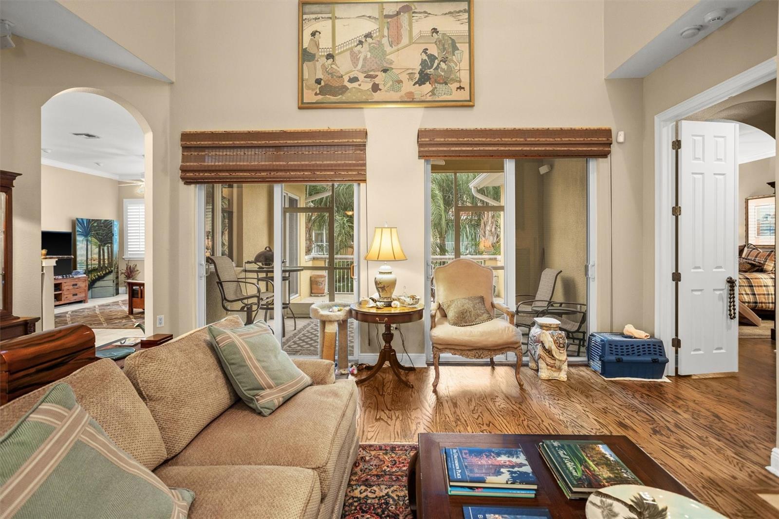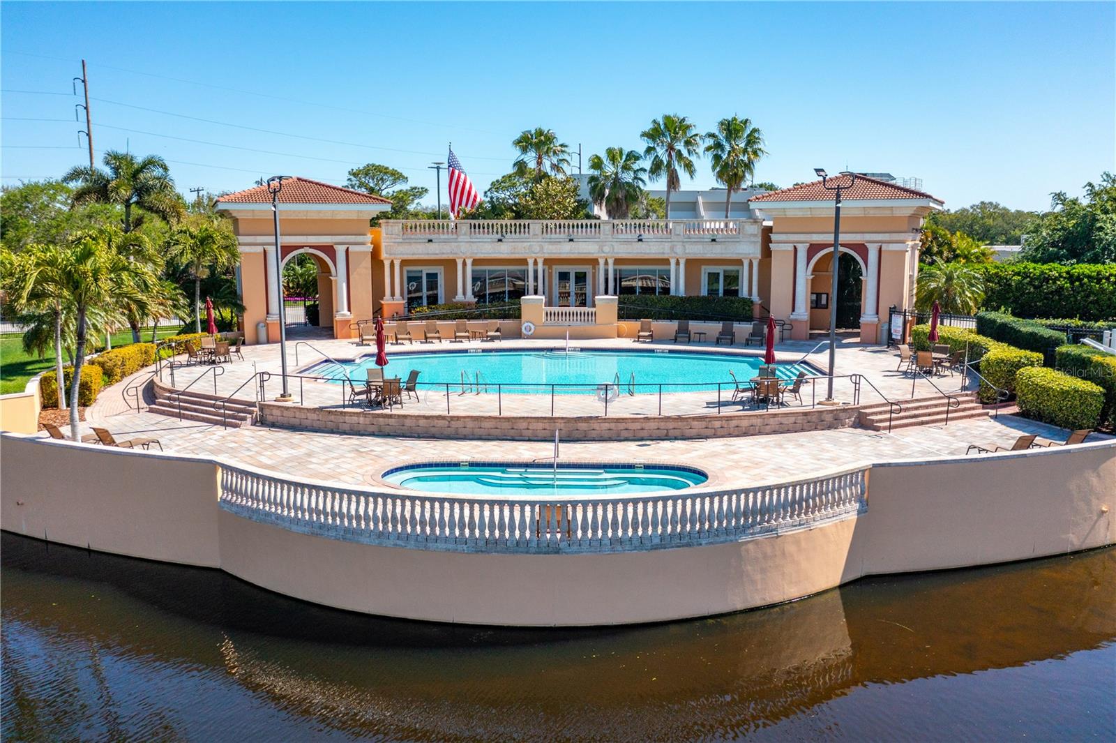This spacious and dramatic Garden Home Villa in Marina Bay provides a rare opportunity to own a high-quality, low maintenance home with endless upgrades and all the conveniences a luxury home provides. This 4 bedroom, 3.5 bath Villa, one of ONLY THREE in the entire Marina Bay community, with over 2,800 sq.ft. of living space ALL ON ONE LEVEL and an enormous garage (over 2,700 sq.ft.) on the first level. Very flexible floor plan, with bedroom 4 currently set up as a study with double doors opening into Living Room (see attached floor plan and garage plan). Beautifully appointed including a PRIVATE ELEVATOR from the garage to the living level, 10’ foot high ceilings throughout with dramatic vaults in the main living area. Luxury appliances include gas KitchenAid 5-burner cooktop, self-cleaning oven with convection and separate baking/warming drawer, KitchenAid 3-door refrigerator, Bosch dishwasher and the cooktop hood is vented to the exterior. Luxury features include rich, glowing hardwood floors throughout, a natural gas fireplace with marble surround, crown molding, granite countertops, interior/exterior surround sound wiring and a natural gas GENERATOR for ultimate peace of mind. Solid concrete block construction with metal framing, high impact PGT Wingard windows and doors, NEW ROOF replaced late 2024, two newer (2022) Trane high-efficiency heat pumps with UV protection and top of the line LG washer and dryer also new in 2022. Loaded with upgrades: custom window treatments including Plantation Shutters on every window and Roman shades on every sliding glass door; room darkening shades in main bedroom, custom lighting, wall murals and 8 ceiling fans. Temperature controlled garage level game room with tile floor includes a custom-made pool table/Ping-Pong table. The screened lanai and adjoining open terrace are a bonus to enjoy the lush landscaping and all that Florida has to offer. Marina Bay is a spectacular waterfront, gated community with stunning amenities including two pools, two spas, clubhouse, fitness center, boat slips and fishing pier on Boca Ciega Bay, direct access to Pinellas Trail and so much more. Located on Pinellas Bayway next to Eckerd College, minutes to Pinellas beaches, I-275 and downtown St. Petersburg. Call today for your private tour!