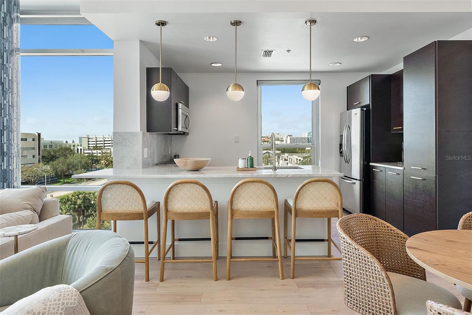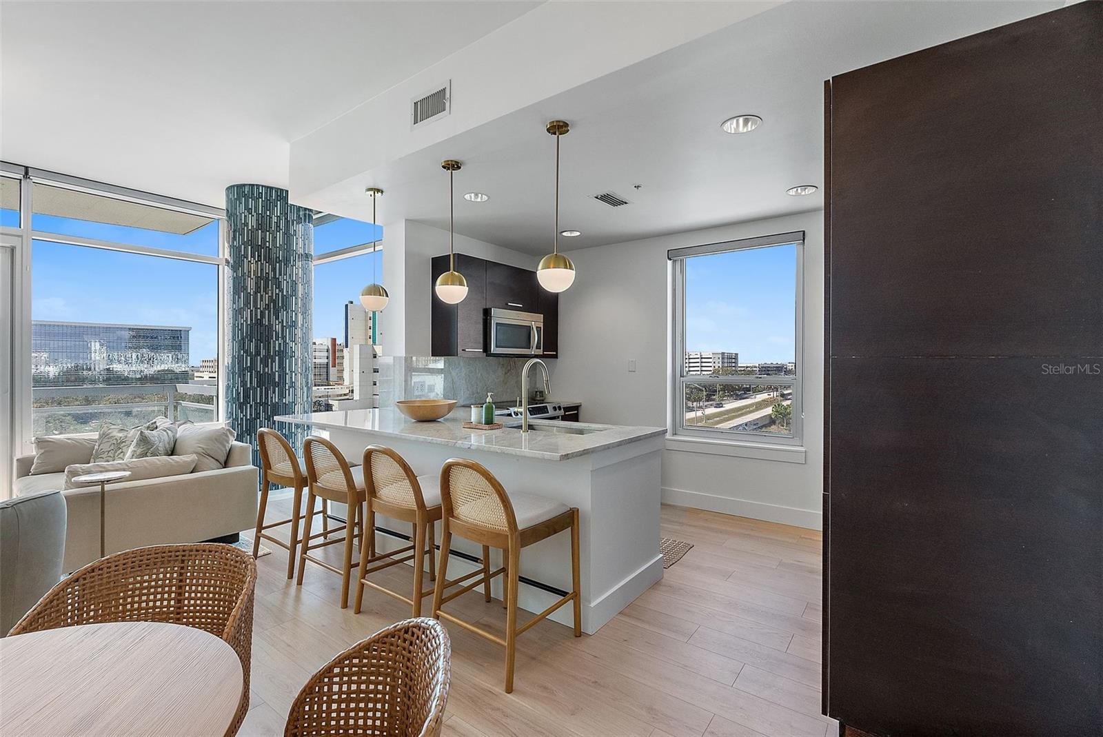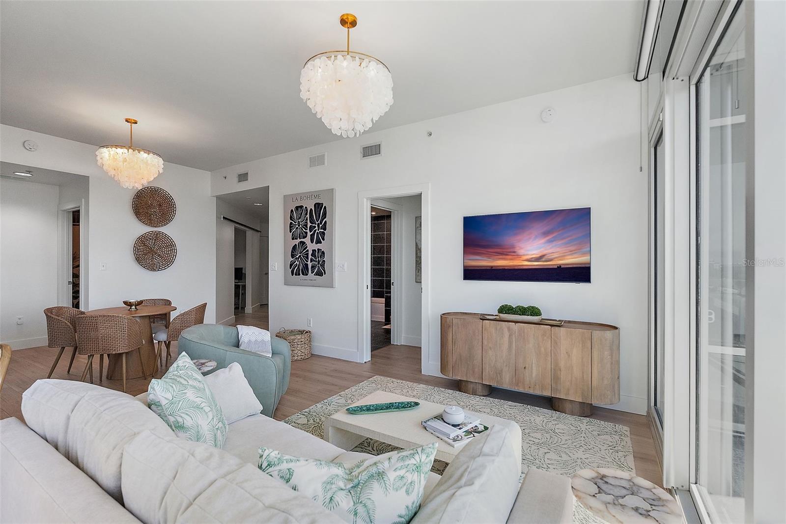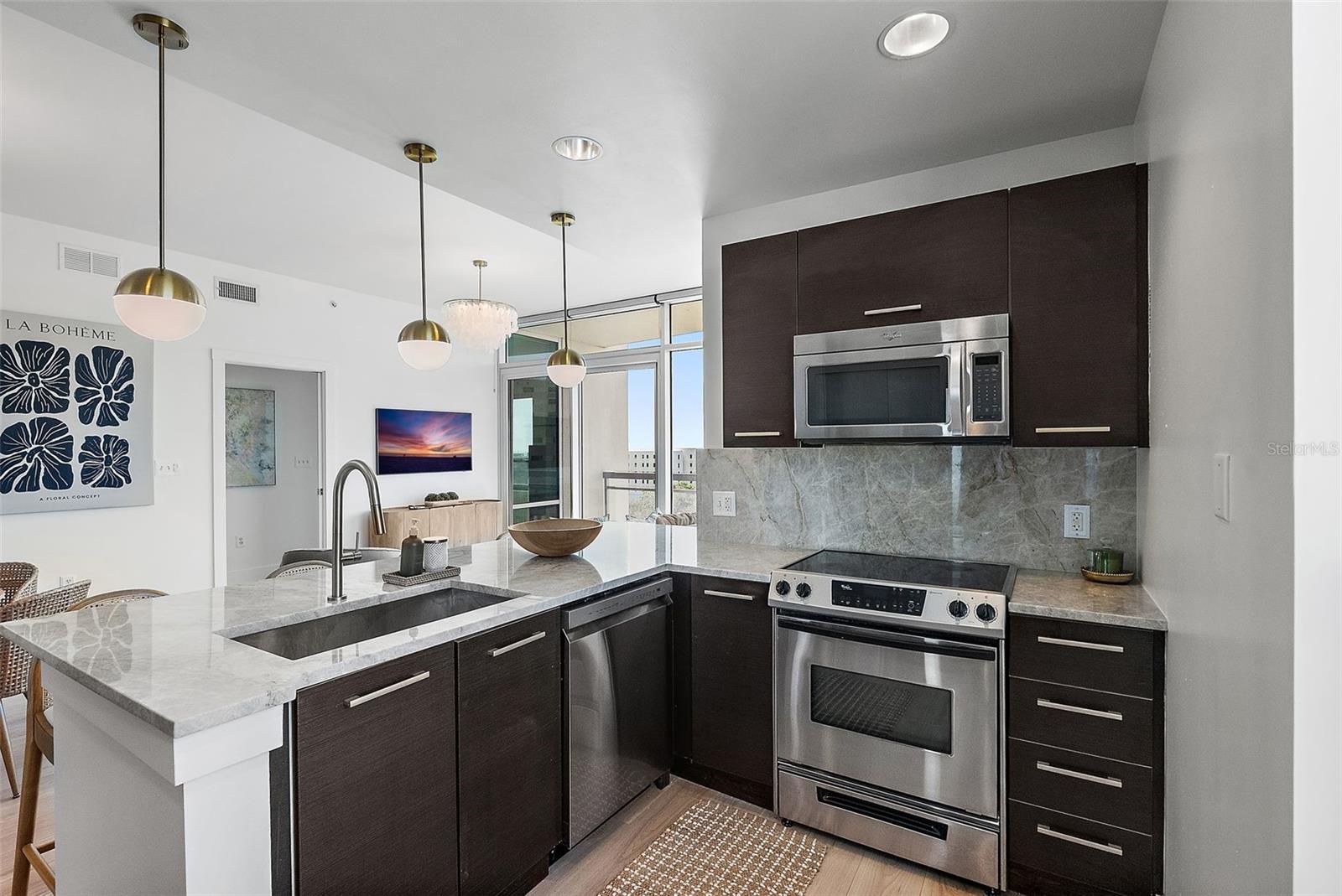 Tastefully renovated luxury Corner unit in the Sage being sold with furnishings optional. Seller to entertain all reasonable offers and offer seller concessions for this beautiful corner unit with bonus room. Steps away from restaurants, entertainment, museums, the pier or take a short drive to the beach. The Sage units are sought after and has a gym, cooled pool, shared kitchen & living room area for functions, and 2 parking spots in the attached garage for your 2 vehicles. The renovations include high end finishes, new luxury flooring, new fixtures, new mechanical, new AC, new high efficiency On Demand Waterless Tank, Taj Mahal Quartzite, Modern Cabinetry, Frame Picture TVs, tastefully chosen trim, and so much more!