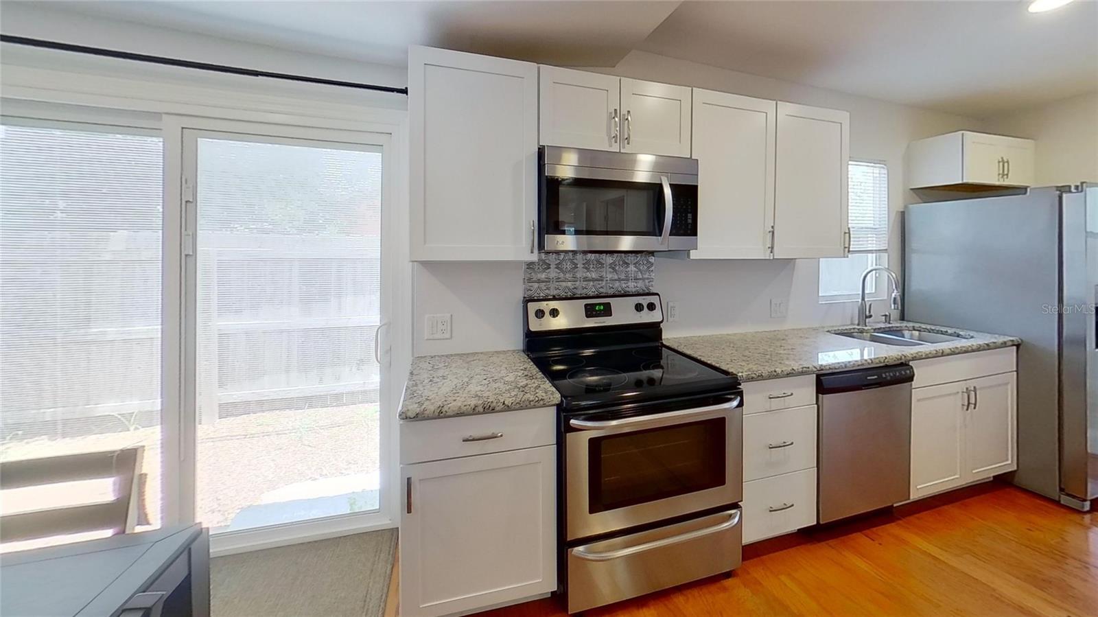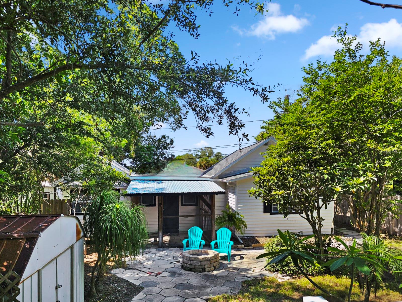 Welcome to this charming 3-bedroom, 2-bathroom home nestled in the tranquil Bayview neighborhood of St. Pete. Step into an inviting open floor plan with hardwood floors throughout, creating a warm and welcoming atmosphere. The split bedroom layout ensures privacy, with the master bedroom spacious enough for a king-size bed. The master bathroom features an updated tile shower and a large vanity, while the guest bathroom boasts a spacious clawfoot tub and shower. The kitchen is a delight with white shaker cabinets, granite countertops, and stainless steel appliances, perfect for meal preparation and entertaining guests. The convenience of indoor laundry adds to the home's practicality. Recent updates include a 2021 roof, a 2023 AC unit, and a newer tankless water heater, ensuring energy efficiency and comfort. Outside, enjoy a recently sodded yard with lush green grass, fully fenced for privacy, and featuring a cozy firepit area for outdoor gatherings. Relax on the screened-in front porch or utilize the large storage shed for outdoor tools and equipment. This home offers a perfect blend of modern updates and classic charm in a serene neighborhood setting. Don't miss the opportunity to make this your new home in Baywood. Schedule your showing today!