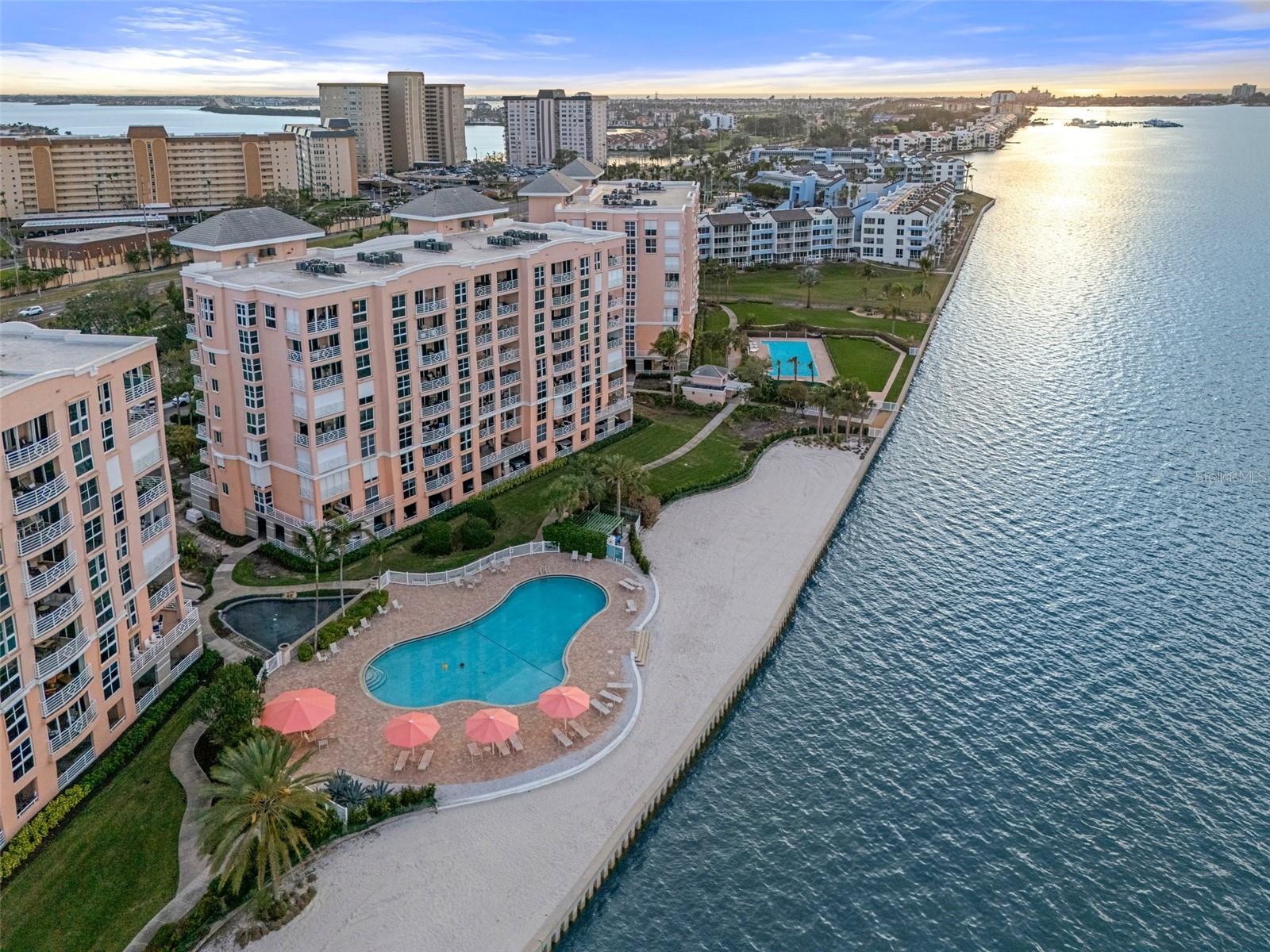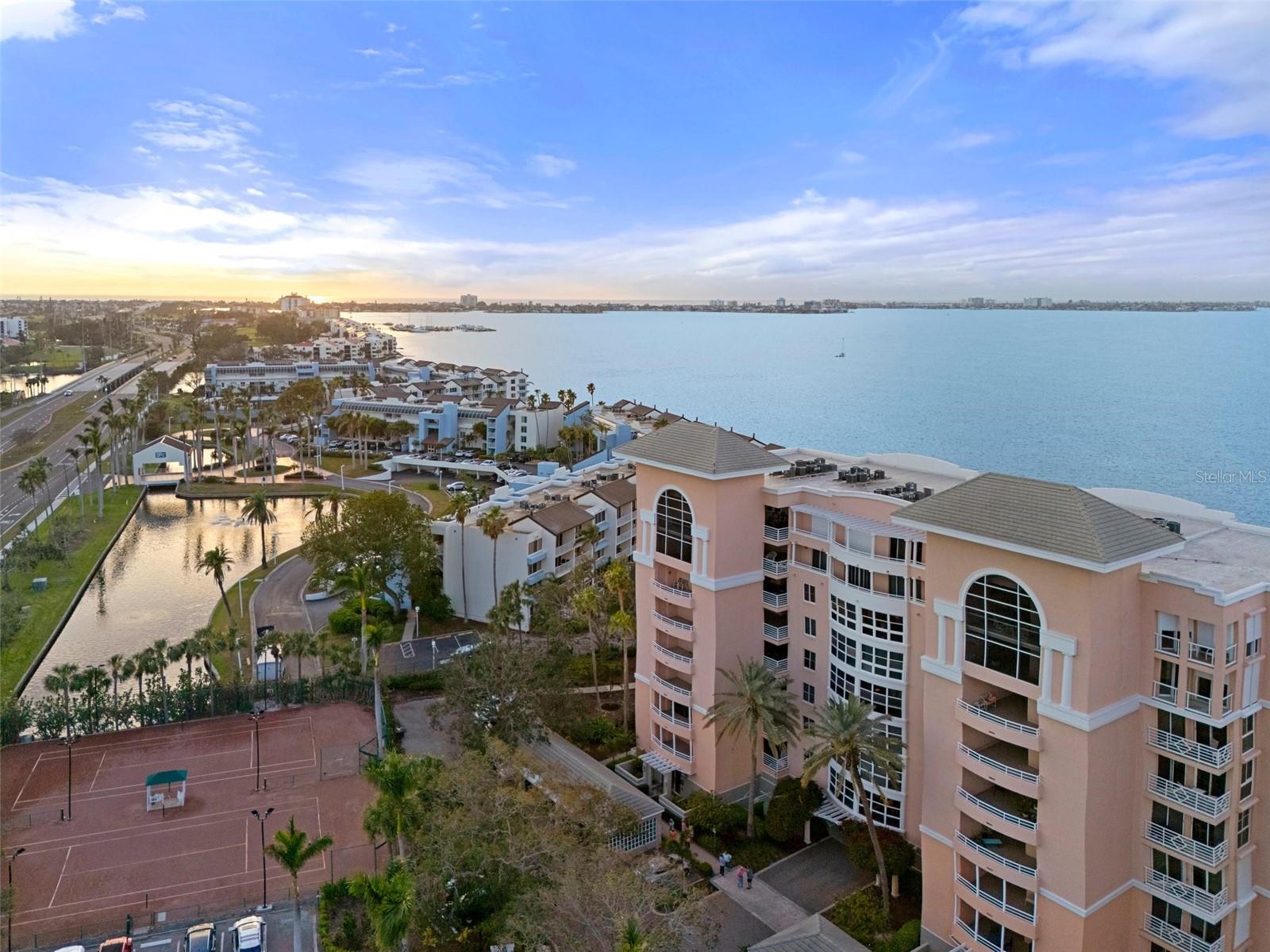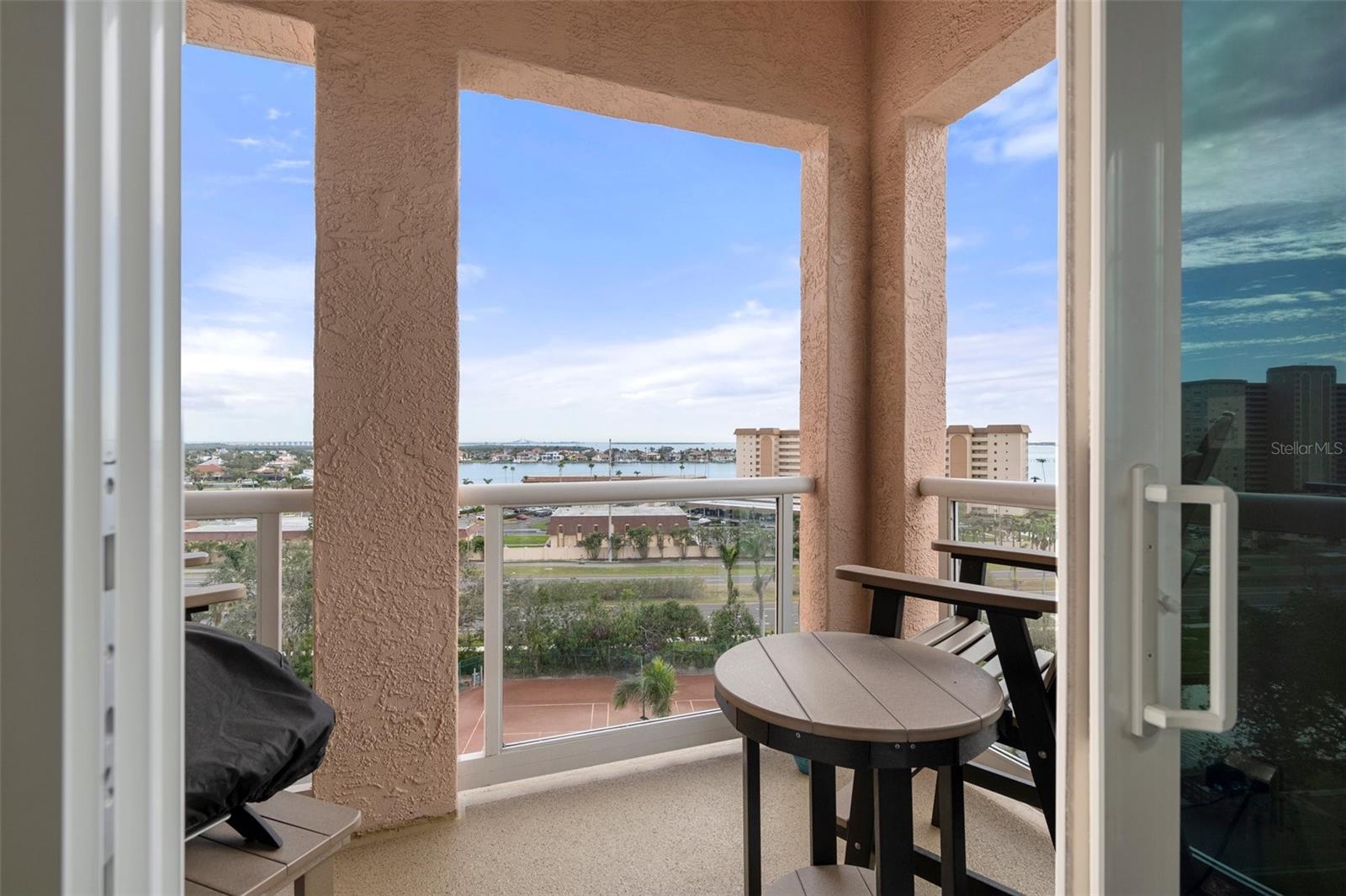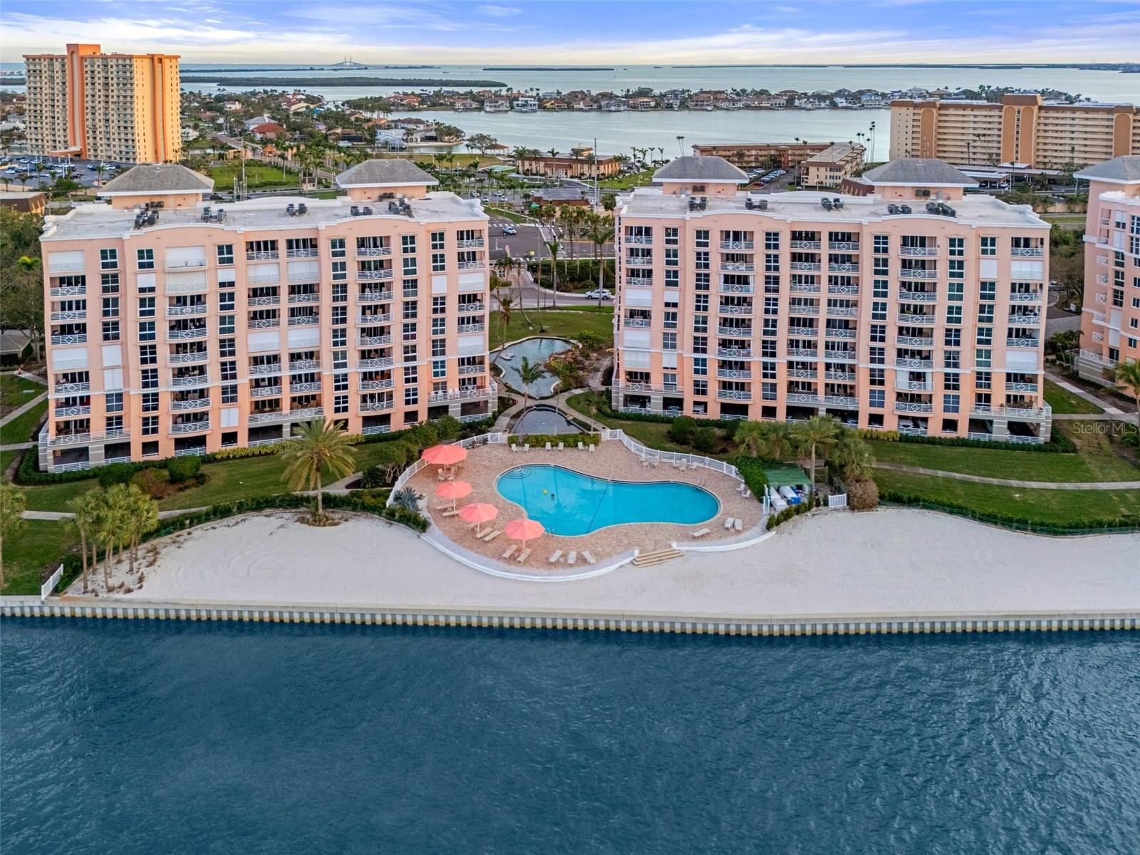Gorgeous Top-floor penthouse at Bacopa Bay. As the only residence on the 8th floor, this home offers 3,028 sq.ft. of beautifully restored waterfront living. Step off the elevator into your private lanai entry and enjoy the breathtaking views of Tampa Bay and the iconic Skyway Bridge. This penthouse features 3-bedroom, and 2.5-bathrooms, with three private balconies extending from the great room, dining area, primary suite, and third bedroom—each recently renovated with Gemstone concrete landings (2023). This residence showcases Italian porcelain tile flooring throughout and custom White Oak built-in cabinetry. The chef’s kitchen features Quartz countertops, modern LED lighting, a custom dry bar, and high-end LG appliances, including a dual ice maker refrigerator. Thoughtful details, such as hidden built-in walk-in storage rooms, enhance the home’s functionality. Every element has been upgraded for comfort and security, including hurricane-rated PGT windows and doors, electric hurricane shutters, a new water heater (2024), and two brand-new Performance AC systems (2023) with a 10-year warranty. The primary suite features two walk-in closets with built-ins and an ensuite bathroom with a renovated shower, including dual showerheads. This penthouse also includes two covered parking spaces: Garage spot #4 by the lobby and a second covered carport spot. Developed by JMC Properties, a highly respected builder in St Pete, Bacopa Bay features a resort-style living in this 24-hour guard-gated community with secured grounds, featuring two newly renovated heated pools, a Jacuzzi hot tub, newly completed clay tennis courts, new elevators, and lush landscaping. With fully funded reserves and recent community-wide enhancements, Bacopa Bay is one of the most desirable communities on the Pinellas Bayway. Just minutes from Gulf beaches, Fort De Soto, and a 10-minute drive to downtown St. Petersburg, with museums, popular restaurants, and luxury shopping. Easy access to I-275, Tampa International Airport is about 30 minutes away. Don’t miss this great move-in-ready opportunity—schedule your private tour today!