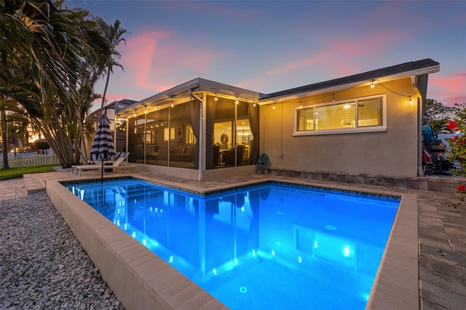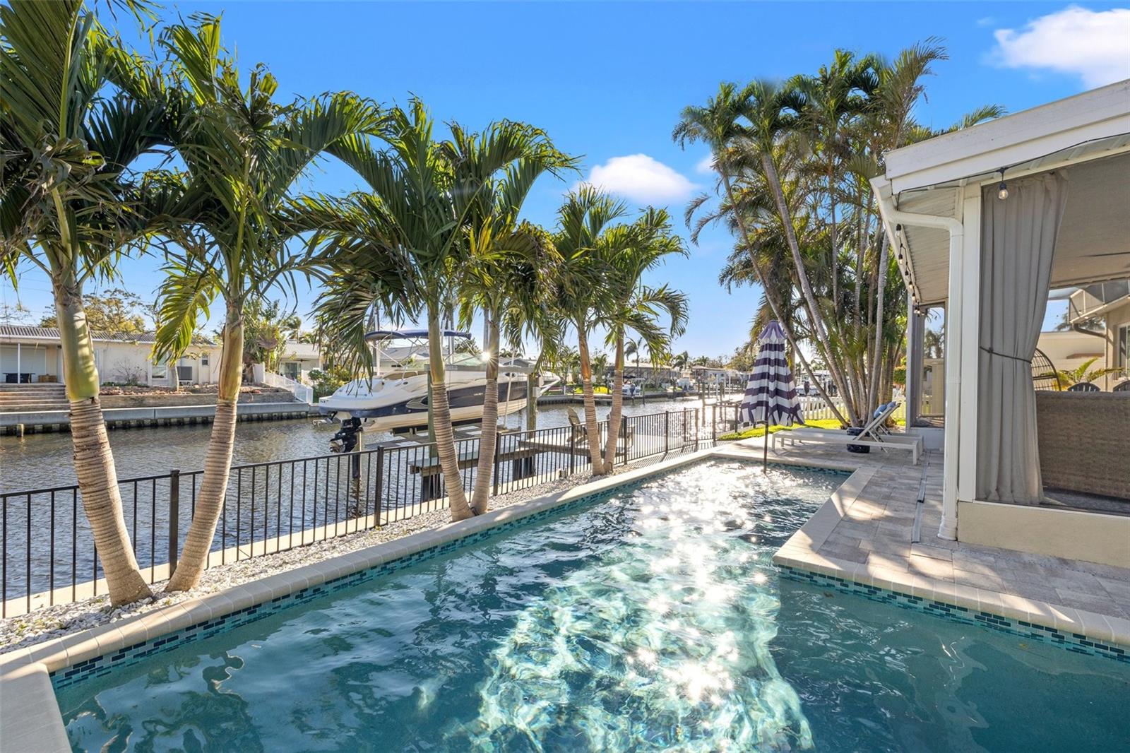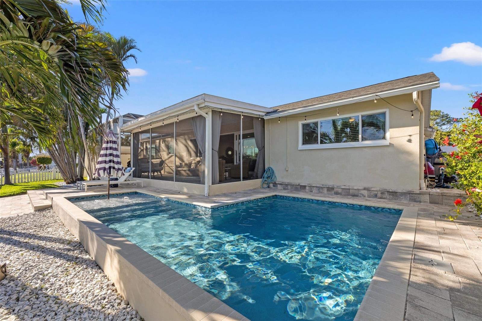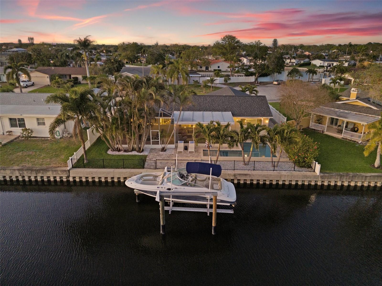 THIS HOME DID NOT FLOOD!! Located in the peaceful Waterway Estates, this charming waterfront pool home perfectly embodies the relaxed and tranquil lifestyle of St. Petersburg’s coastal living. Situated on a quiet cul-de-sac just a short distance from downtown St. Petersburg, this thoughtfully updated home offers easy living by the water. As you step inside, the airy, open floor plan welcomes you with a seamless flow from the spacious living areas to a cozy dining space, ideal for both everyday relaxation and entertaining. The kitchen, updated with modern finishes, offers a bright and inviting atmosphere with a view of the water, living and dining areas—perfect for casual meals or enjoying a conversation while cooking. Pristine impact windows and doors bring in plenty of natural light while ensuring your peace of mind. The primary suite offers a serene escape with tranquil water views, a private ensuite bath with dual vanities, and a spacious walk-in closet. Added conveniences include an indoor laundry room and a two-car garage with an impact-resistant door. With a new roof (2024) and HVAC system (2025), you can enjoy a worry-free coastal lifestyle. Step outside into your private outdoor sanctuary, where an expansive screened lanai overlooks the sparkling pool and serene waterfront. Whether you’re relaxing by the pool, dining al fresco, or simply enjoying the beautiful surroundings, this space offers the perfect setting. The pool, installed in 2020, is surrounded by elegant pavers and lush landscaping, creating a peaceful oasis. For boating enthusiasts, a private dock with a 13,000 lb lift provides easy access to the water, making it simple to cruise to downtown or explore the nearby waterways. Just minutes from downtown St. Petersburg, enjoy the best of coastal living with easy access to waterfront parks, the St. Pete Pier, local cafes, and a variety of restaurants. The vibrant art scene, museums, breweries, and coffee shops are all within reach. Plus, the community feel is strong, with a recreation center and Denver Park just a short walk away, complete with pickleball courts and a playground. Grocery runs are a breeze with Whole Foods, Trader Joe’s, Publix, and Fresh Market nearby. This home offers the perfect blend of relaxation, convenience, and coastal charm—your dream coastal retreat. And with no impact from recent storms, you can rest easy in your new home.