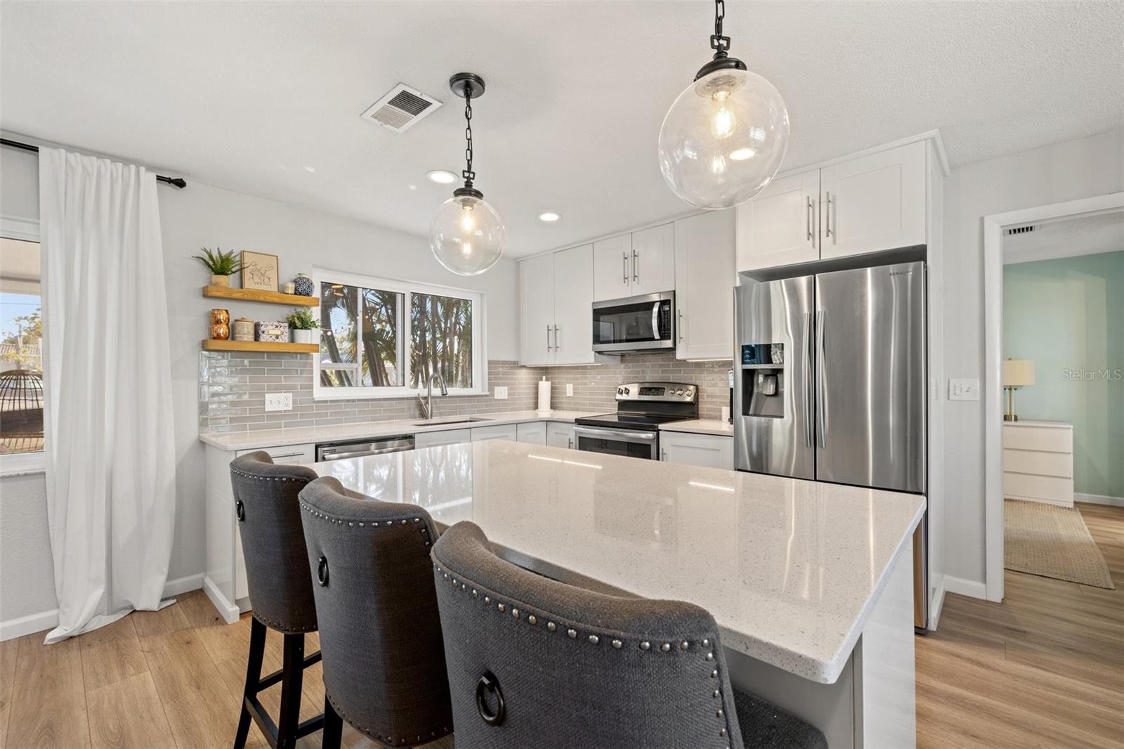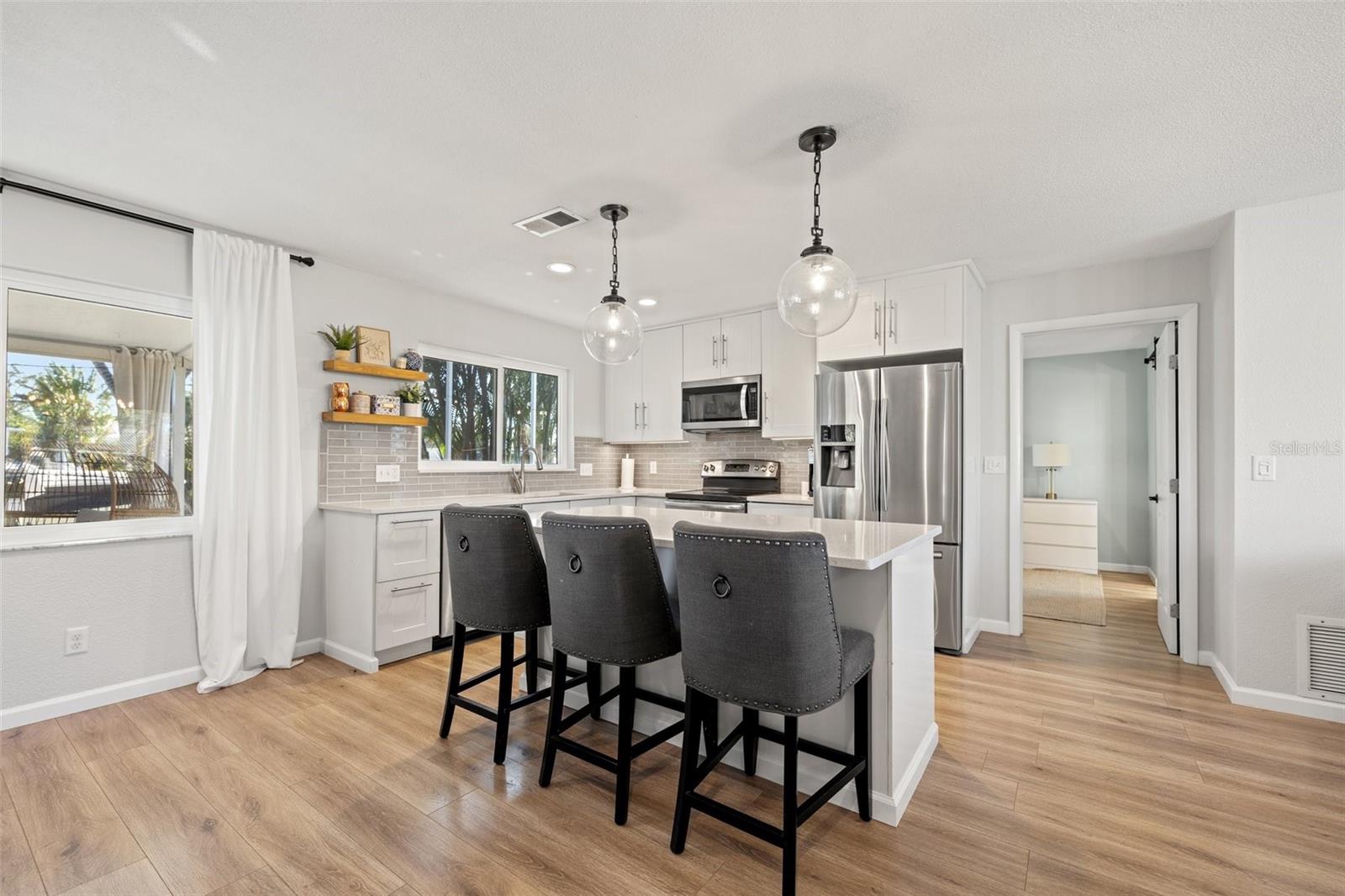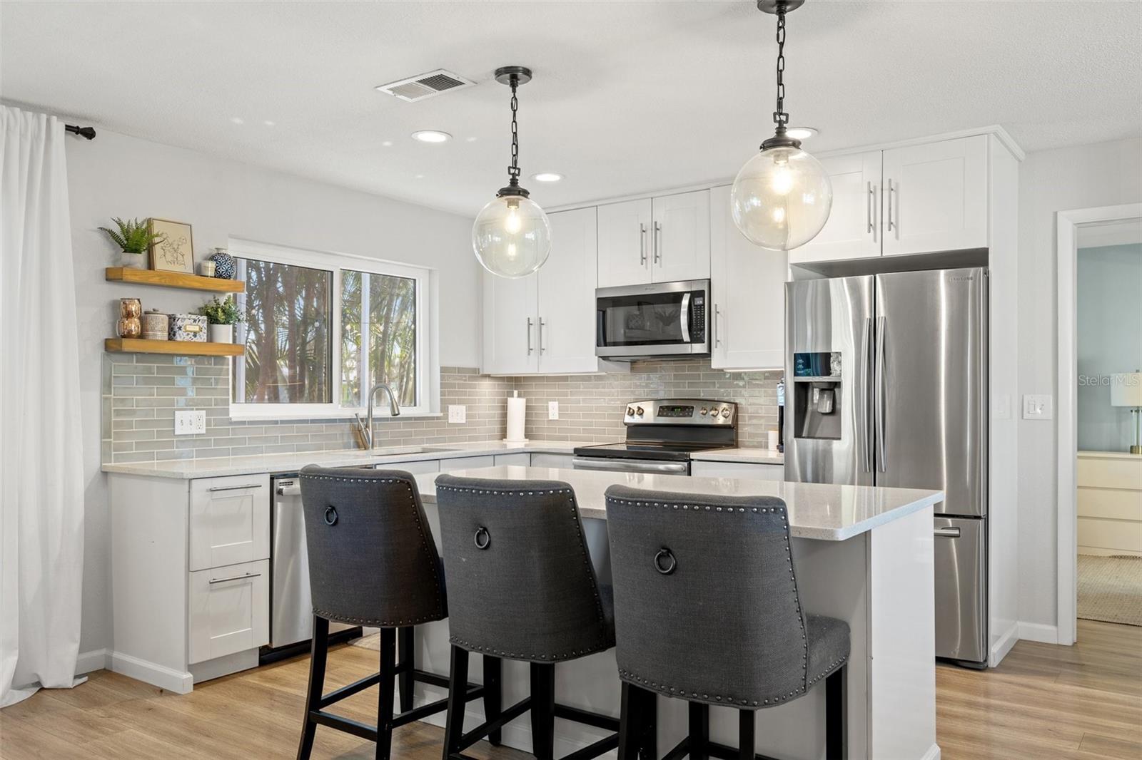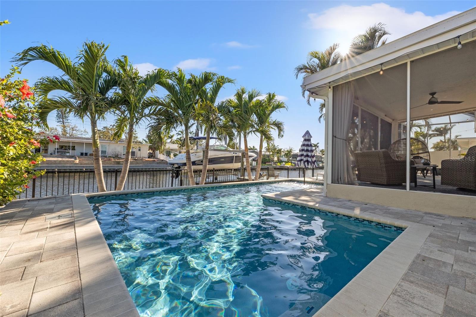 THIS HOME DID NOT FLOOD!! Located in the peaceful Waterway Estates, this charming waterfront pool home perfectly embodies the relaxed and tranquil lifestyle of St. Petersburg’s coastal living. Situated on a quiet cul-de-sac just a short distance from downtown St. Petersburg, this thoughtfully updated home offers easy living by the water. As you step inside, the airy, open floor plan welcomes you with a seamless flow from the spacious living areas to a cozy dining space, ideal for both everyday relaxation and entertaining. The kitchen, updated with modern finishes, offers a bright and inviting atmosphere with a view of the water, living and dining areas—perfect for casual meals or enjoying a conversation while cooking. Pristine impact windows and doors bring in plenty of natural light while ensuring your peace of mind. The primary suite offers a serene escape with tranquil water views, a private ensuite bath with dual vanities, and a spacious walk-in closet. Added conveniences include an indoor laundry room and a two-car garage with an impact-resistant door. With a new roof (2024) and HVAC system (2025), you can enjoy a worry-free coastal lifestyle. Step outside into your private outdoor sanctuary, where an expansive screened lanai overlooks the sparkling pool and serene waterfront. Whether you’re relaxing by the pool, dining al fresco, or simply enjoying the beautiful surroundings, this space offers the perfect setting. The pool, installed in 2020, is surrounded by elegant pavers and lush landscaping, creating a peaceful oasis. For boating enthusiasts, a private dock with a 13,000 lb lift provides easy access to the water, making it simple to cruise to downtown or explore the nearby waterways. Just minutes from downtown St. Petersburg, enjoy the best of coastal living with easy access to waterfront parks, the St. Pete Pier, local cafes, and a variety of restaurants. The vibrant art scene, museums, breweries, and coffee shops are all within reach. Plus, the community feel is strong, with a recreation center and Denver Park just a short walk away, complete with pickleball courts and a playground. Grocery runs are a breeze with Whole Foods, Trader Joe’s, Publix, and Fresh Market nearby. This home offers the perfect blend of relaxation, convenience, and coastal charm—your dream coastal retreat. And with no impact from recent storms, you can rest easy in your new home.