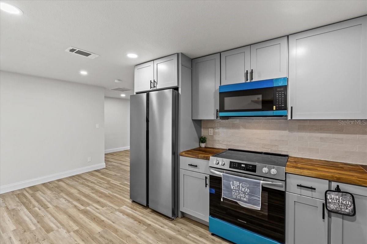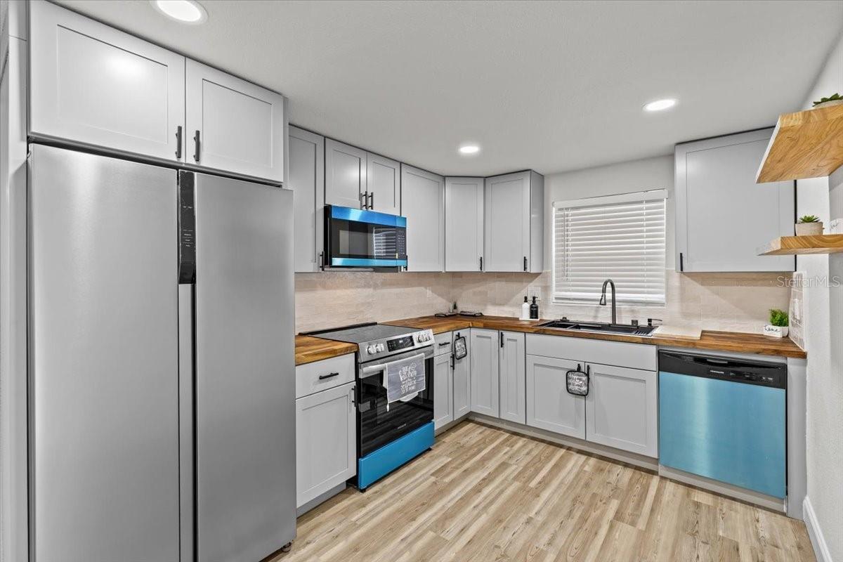 One or more photo(s) has been virtually staged. Step inside this fully remodeled 4 bed 3 bath home with a fenced in yard located in a desired neighborhood and not a through street for added privacy, near nature preserves, parks, golf course, Downtown St Pete and the Pier. To start, this home has a brand new 2025 roof installed after the hurricane Helene. This home features a modern farm style kitchen with a stain finished butcher block, wood shaker cabinets with soft close, stainless steel drop in sink with workstation and waterfall feature, brand new stainless steel appliances. Additionally, there are two primary bedrooms, one with private entrance and parking for optional mother in law suite or other. Three luxurious bathrooms with a new modern wall tile design, niches and a full walk in glass shower with rain shower and a handheld sprayer with a double sink vanity. It doesnt end there, there is an indoor laundry closet, HVAC under 5 years old and just serviced, tankless water heater, electrical updated as well. Current flood policy is transferable with no existing claim. Minor flooding was remediated prior to the remodel from Hurricane Helene. Easy to show so book your showing today and make this gem of a home yours today. Seller offering concessions towards closing cost! Appraisal available!