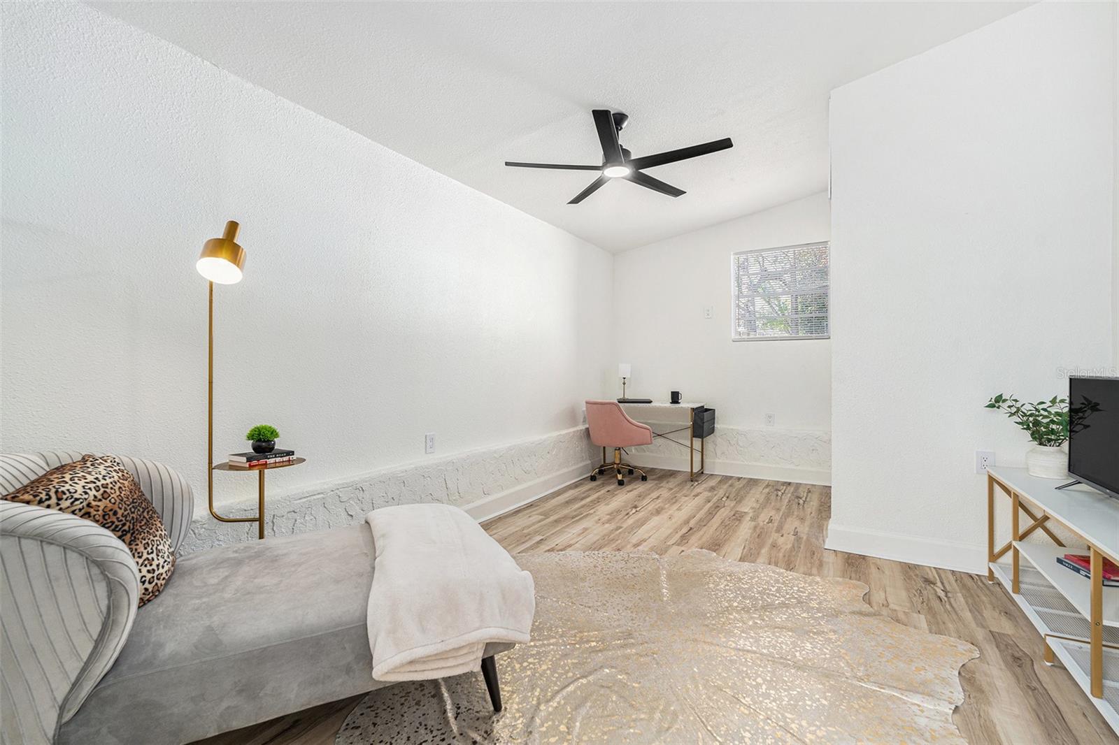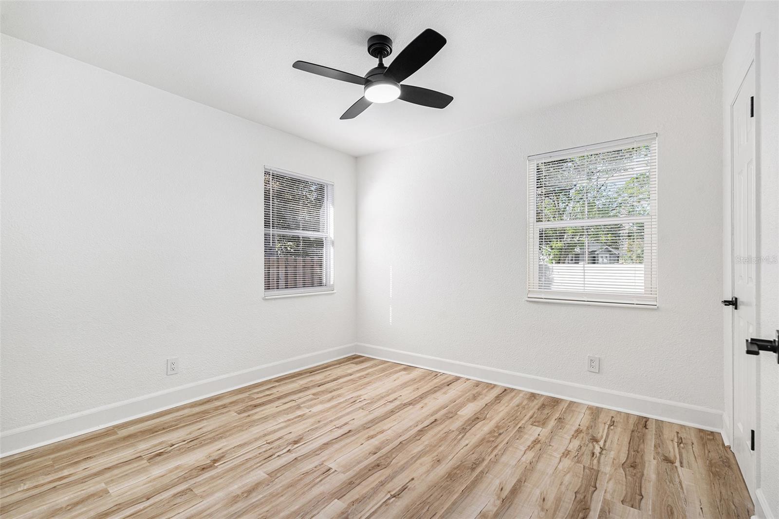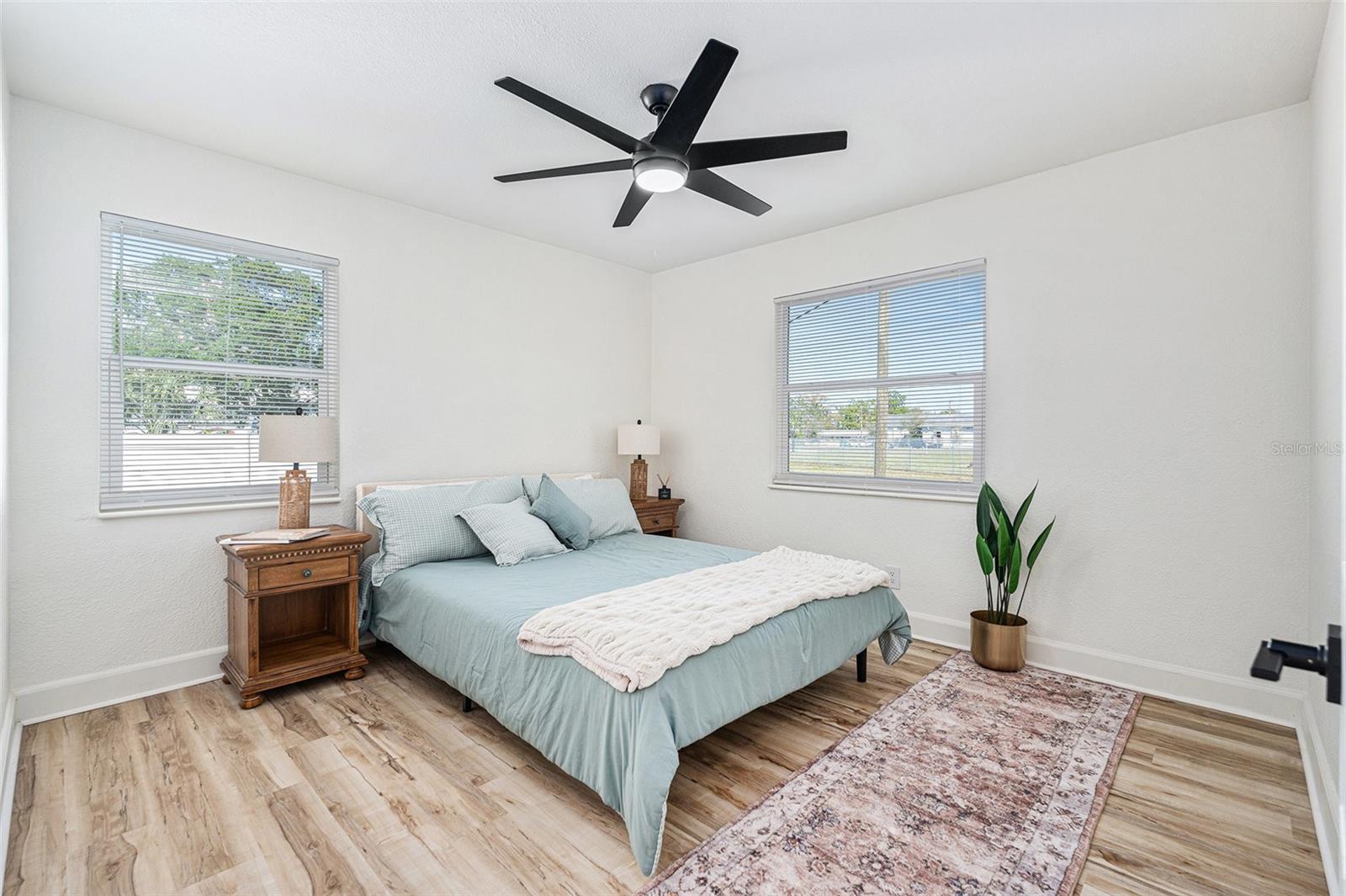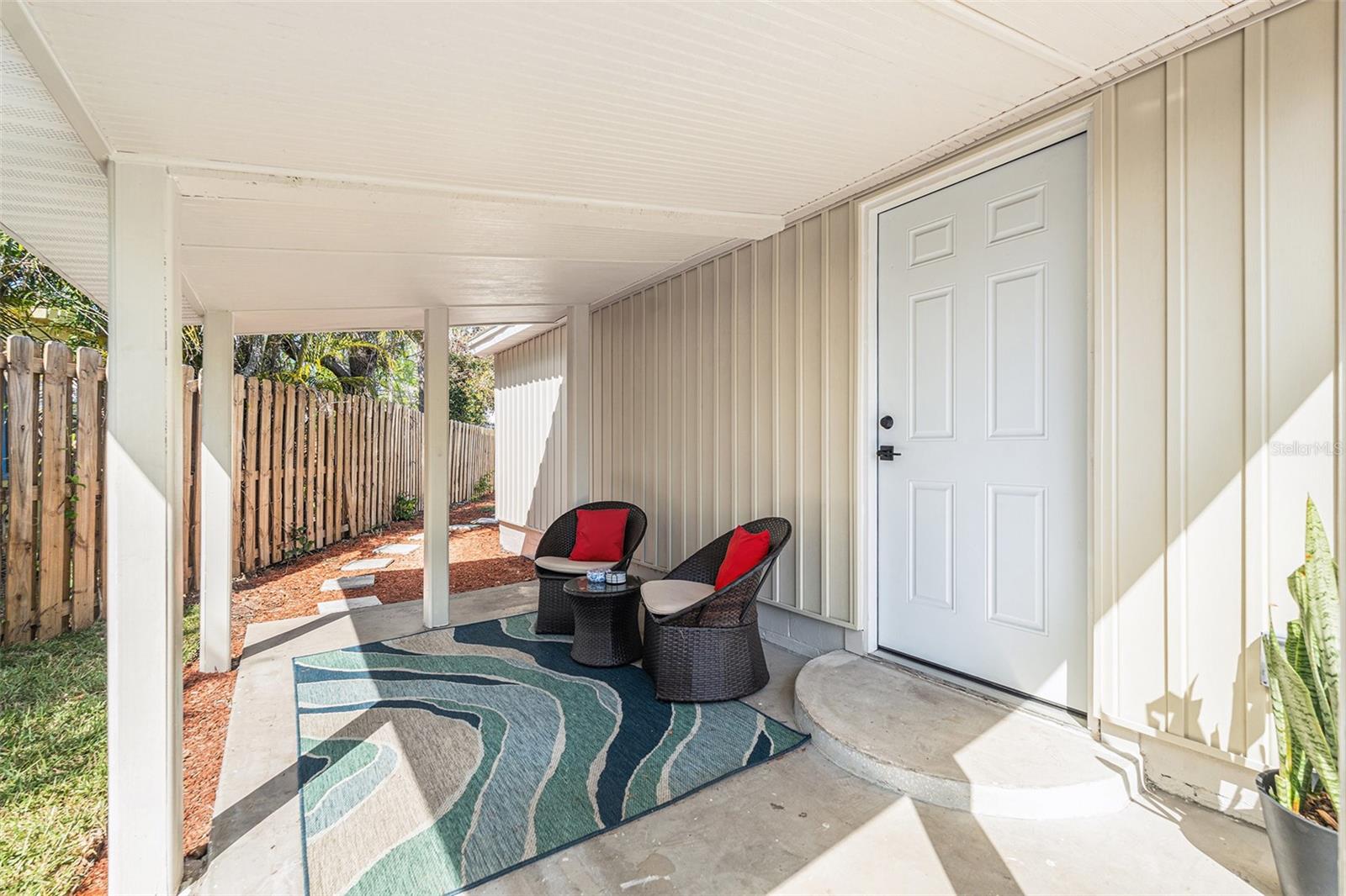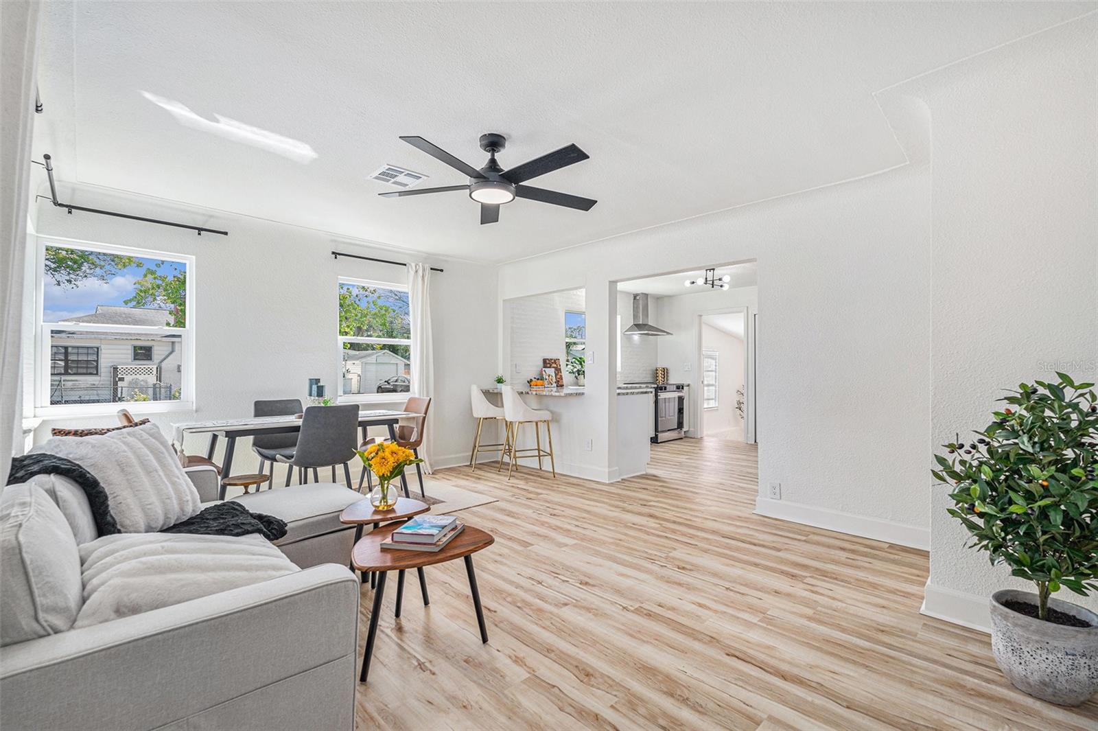 Welcome to this beautifully upgraded home in St. Petersburg, where contemporary updates meet timeless charm. This stunning three-bedroom, one-bath home has been completely transformed with high-end finishes and energy-efficient enhancements, including OWNED SOLAR PANELS that significantly reduce electrical expenses. Recent updates include a brand-new roof installed in October 2024, impact windows and doors added in December 2024, and stylish board and batten siding in an almond color with white trim for a fresh, modern look. The home features a fully permitted and inspected plumbing re-pipe, an updated electrical system, and a new tankless water heater for maximum efficiency. The interior boasts luxury vinyl flooring that is both waterproof and scratch-resistant, along with a designer kitchen featuring stone countertops, brass hardware, and Samsung stainless steel appliances. The spa-like bathroom includes a walk-in shower, an LED defog mirror, and a modern vanity. Additional upgrades include new lighting, ceiling fans, and matte black door hardware throughout the home. The third bedroom, located in the back of the home, is a versatile space that can be used as a bedroom, family room, or home office to suit your needs. The spacious, private yard is fully fenced with fresh landscaping and new sod, creating the perfect space for pets or entertaining. For added peace of mind, the foundation has been reinforced with two new steel beams. FLOOD ZONE X - NO FLOOD INSURANCE NEEDED! Property did not flood or receive damages from the storms. Nestled on a spacious corner lot in a prime St. Petersburg location, this move-in-ready home offers both style and energy efficiency. Schedule a tour today and see all that this beautifully upgraded home has to offer.