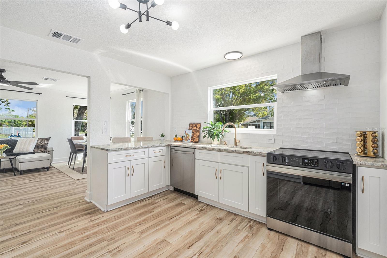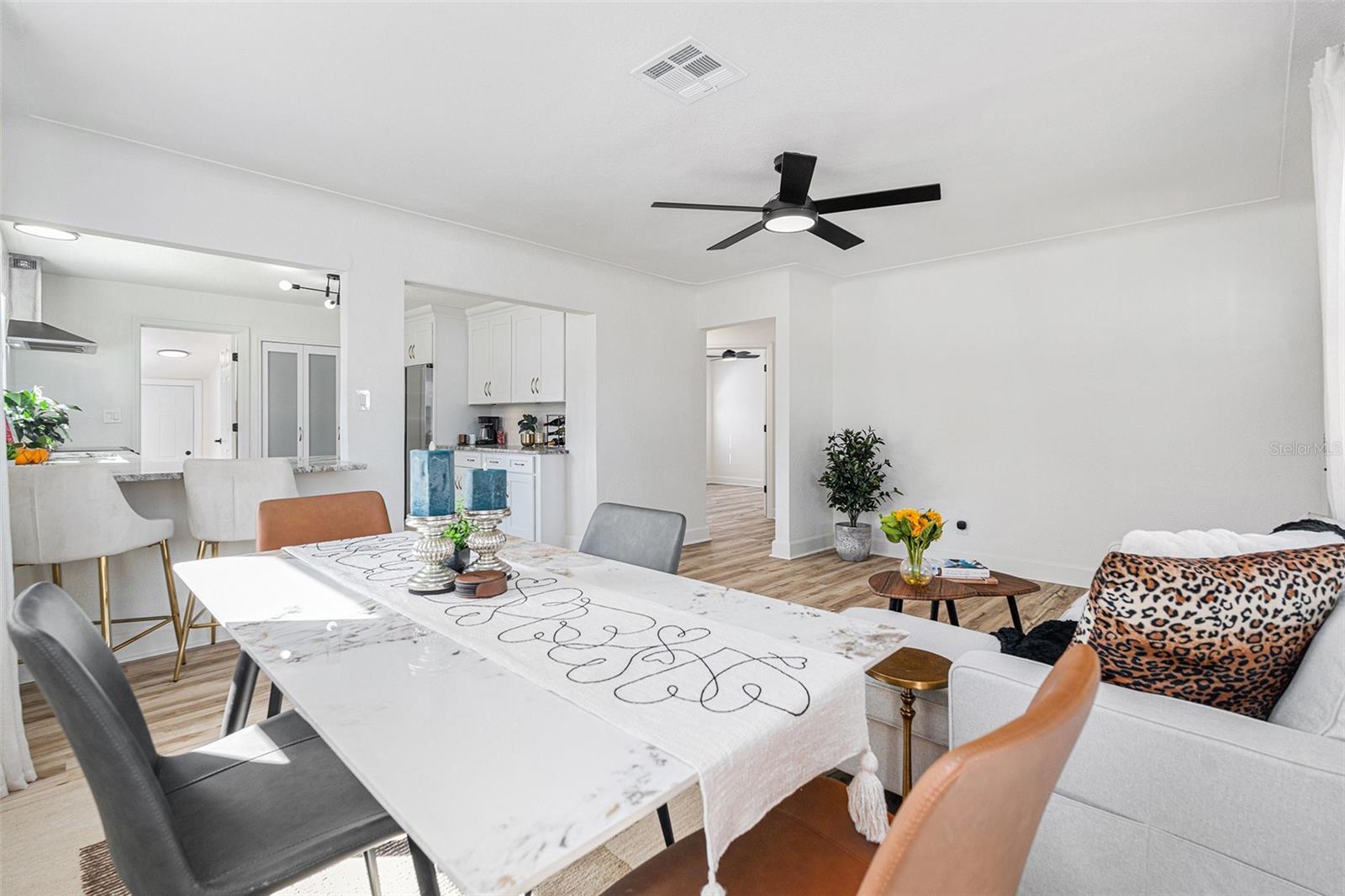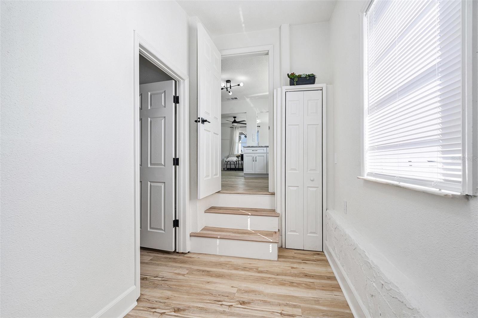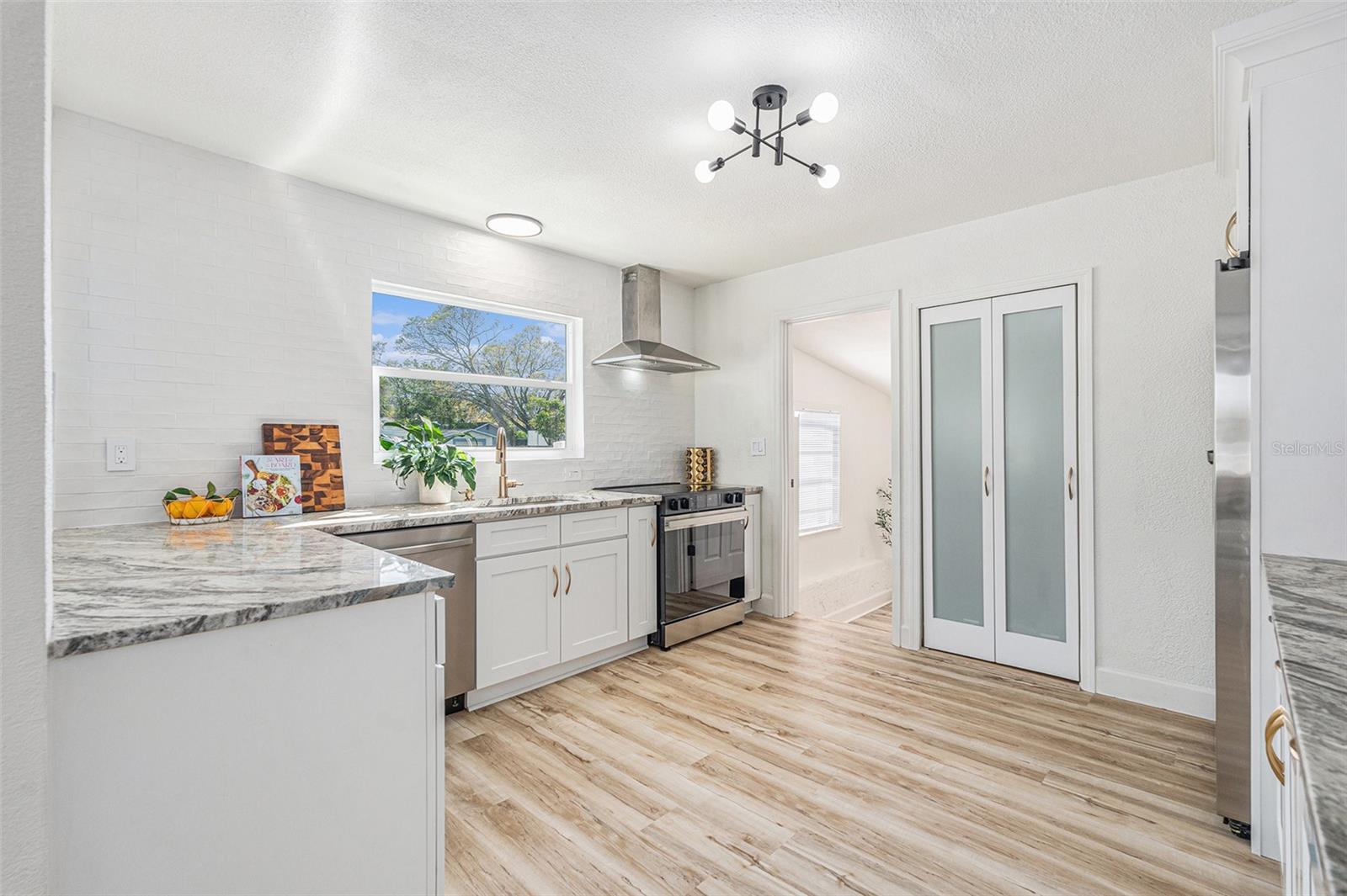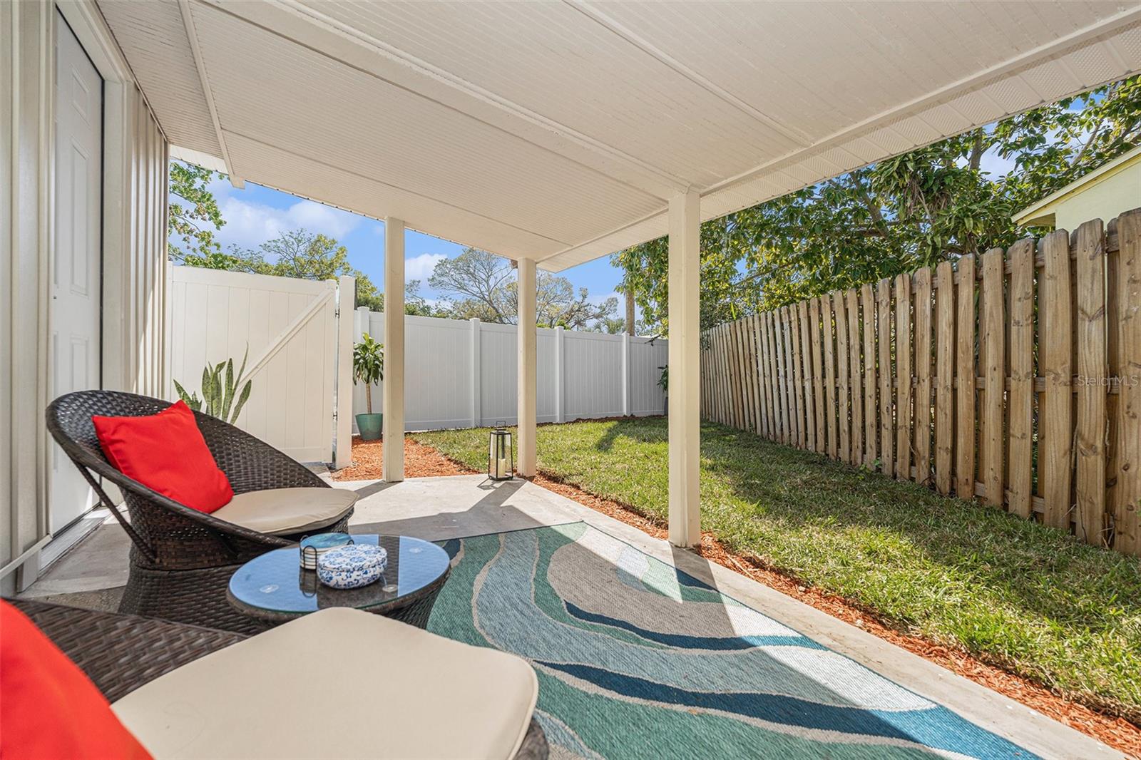 Welcome to this beautifully upgraded home in St. Petersburg, where contemporary updates meet timeless charm. This stunning three-bedroom, one-bath home has been completely transformed with high-end finishes and energy-efficient enhancements, including OWNED SOLAR PANELS that significantly reduce electrical expenses. Recent updates include a brand-new roof installed in October 2024, impact windows and doors added in December 2024, and stylish board and batten siding in an almond color with white trim for a fresh, modern look. The home features a fully permitted and inspected plumbing re-pipe, an updated electrical system, and a new tankless water heater for maximum efficiency. The interior boasts luxury vinyl flooring that is both waterproof and scratch-resistant, along with a designer kitchen featuring stone countertops, brass hardware, and Samsung stainless steel appliances. The spa-like bathroom includes a walk-in shower, an LED defog mirror, and a modern vanity. Additional upgrades include new lighting, ceiling fans, and matte black door hardware throughout the home. The third bedroom, located in the back of the home, is a versatile space that can be used as a bedroom, family room, or home office to suit your needs. The spacious, private yard is fully fenced with fresh landscaping and new sod, creating the perfect space for pets or entertaining. For added peace of mind, the foundation has been reinforced with two new steel beams. FLOOD ZONE X - NO FLOOD INSURANCE NEEDED! Property did not flood or receive damages from the storms. Nestled on a spacious corner lot in a prime St. Petersburg location, this move-in-ready home offers both style and energy efficiency. Schedule a tour today and see all that this beautifully upgraded home has to offer.
