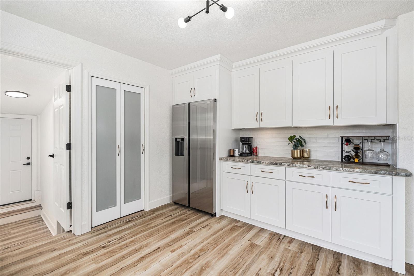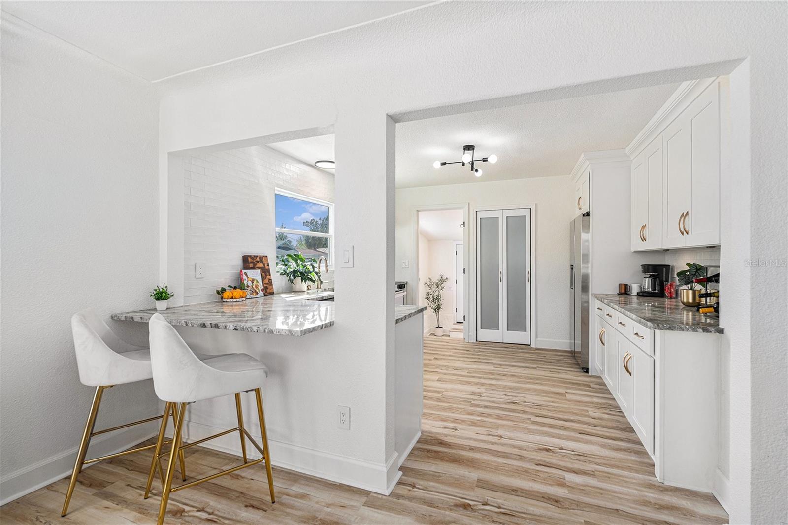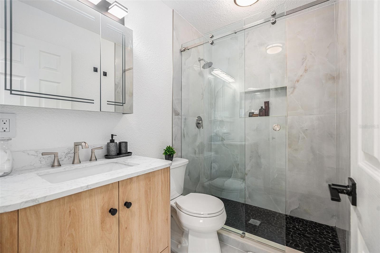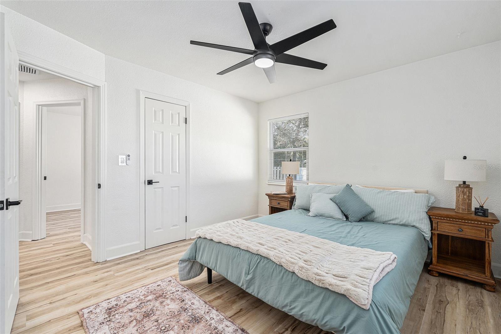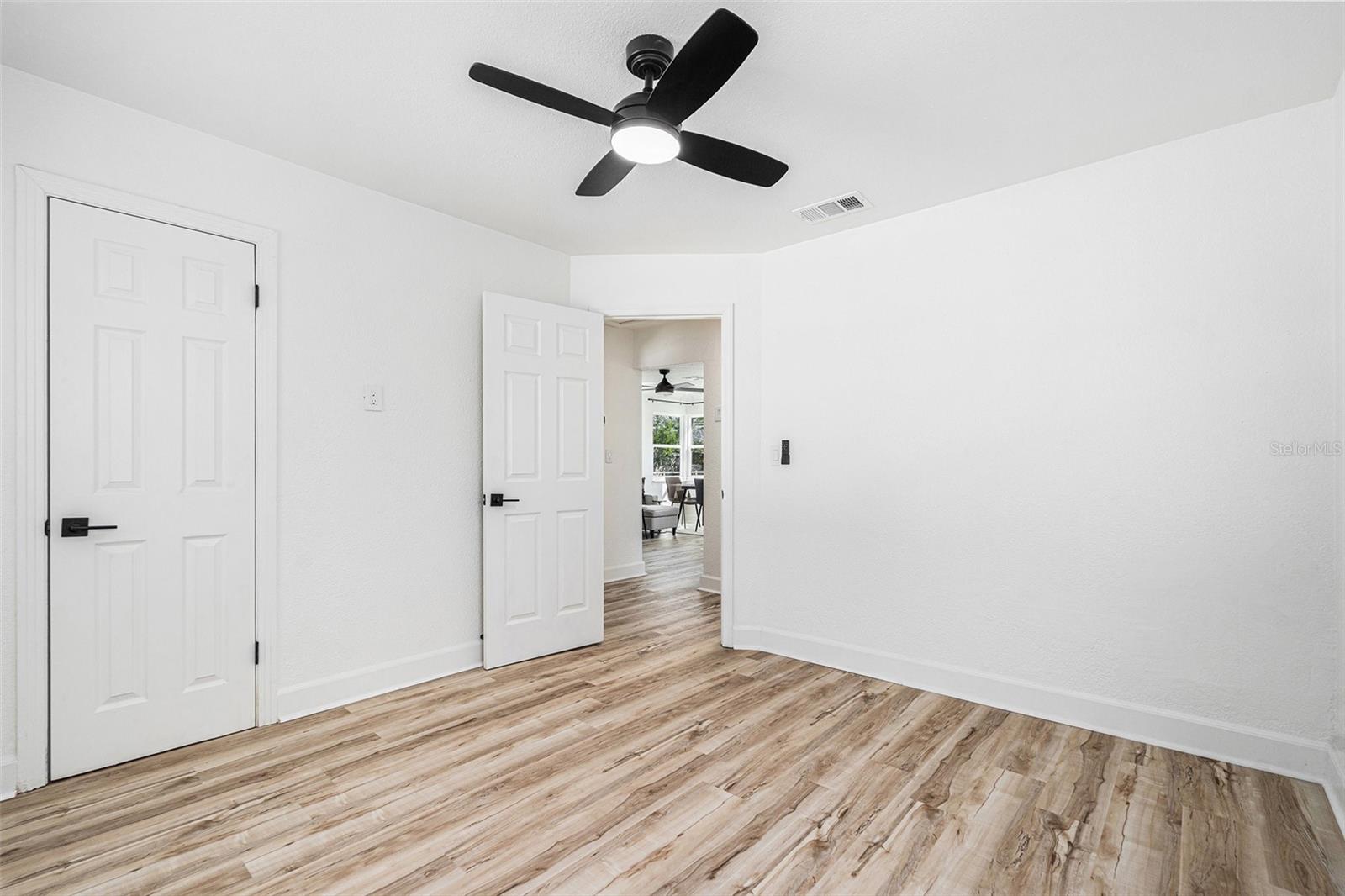 Welcome to this beautifully upgraded home in St. Petersburg, where contemporary updates meet timeless charm. This stunning three-bedroom, one-bath home has been completely transformed with high-end finishes and energy-efficient enhancements, including OWNED SOLAR PANELS that significantly reduce electrical expenses. Recent updates include a brand-new roof installed in October 2024, impact windows and doors added in December 2024, and stylish board and batten siding in an almond color with white trim for a fresh, modern look. The home features a fully permitted and inspected plumbing re-pipe, an updated electrical system, and a new tankless water heater for maximum efficiency. The interior boasts luxury vinyl flooring that is both waterproof and scratch-resistant, along with a designer kitchen featuring stone countertops, brass hardware, and Samsung stainless steel appliances. The spa-like bathroom includes a walk-in shower, an LED defog mirror, and a modern vanity. Additional upgrades include new lighting, ceiling fans, and matte black door hardware throughout the home. The third bedroom, located in the back of the home, is a versatile space that can be used as a bedroom, family room, or home office to suit your needs. The spacious, private yard is fully fenced with fresh landscaping and new sod, creating the perfect space for pets or entertaining. For added peace of mind, the foundation has been reinforced with two new steel beams. FLOOD ZONE X - NO FLOOD INSURANCE NEEDED! Property did not flood or receive damages from the storms. Nestled on a spacious corner lot in a prime St. Petersburg location, this move-in-ready home offers both style and energy efficiency. Schedule a tour today and see all that this beautifully upgraded home has to offer.