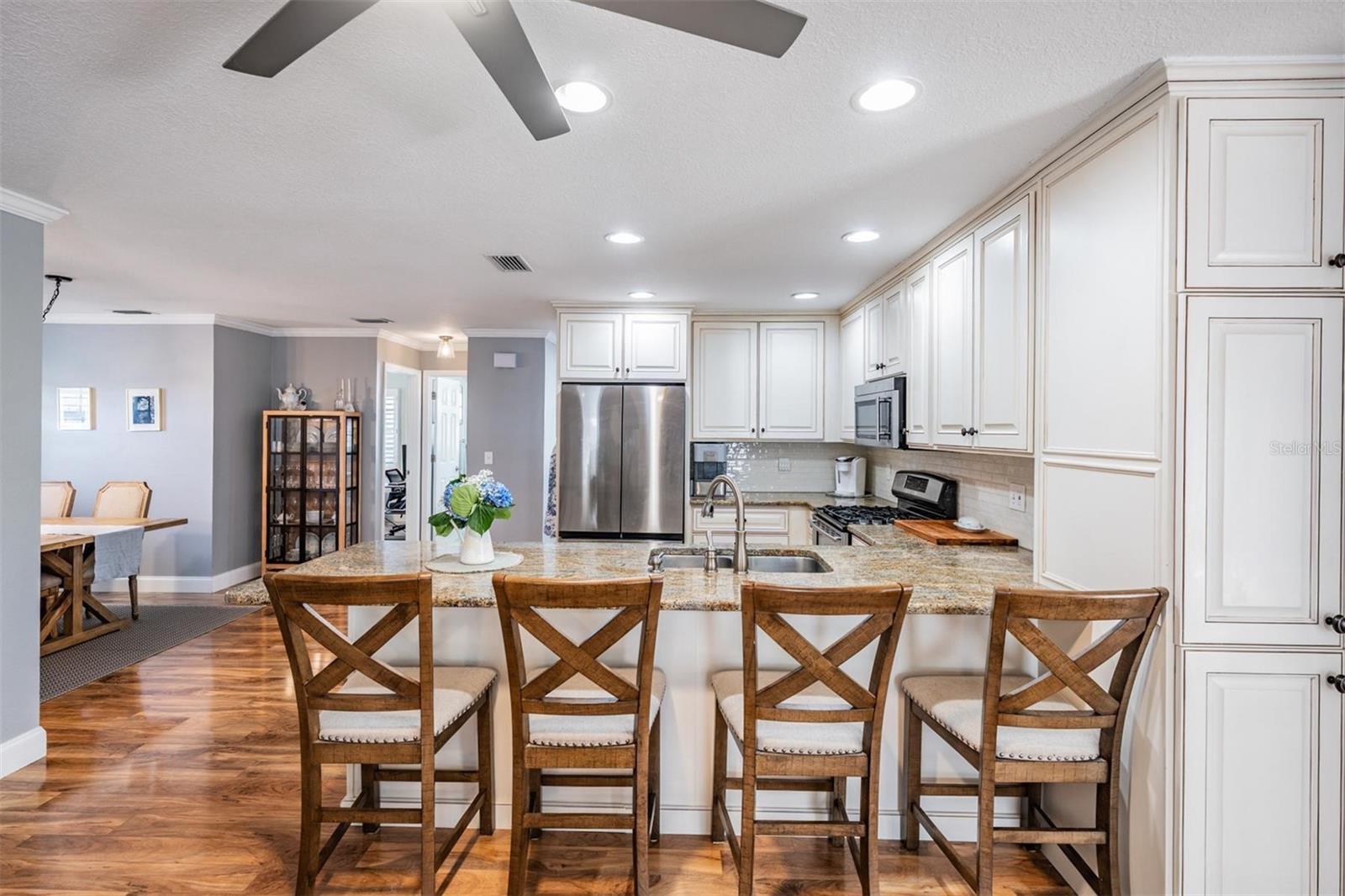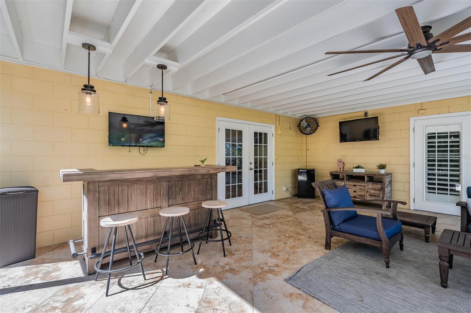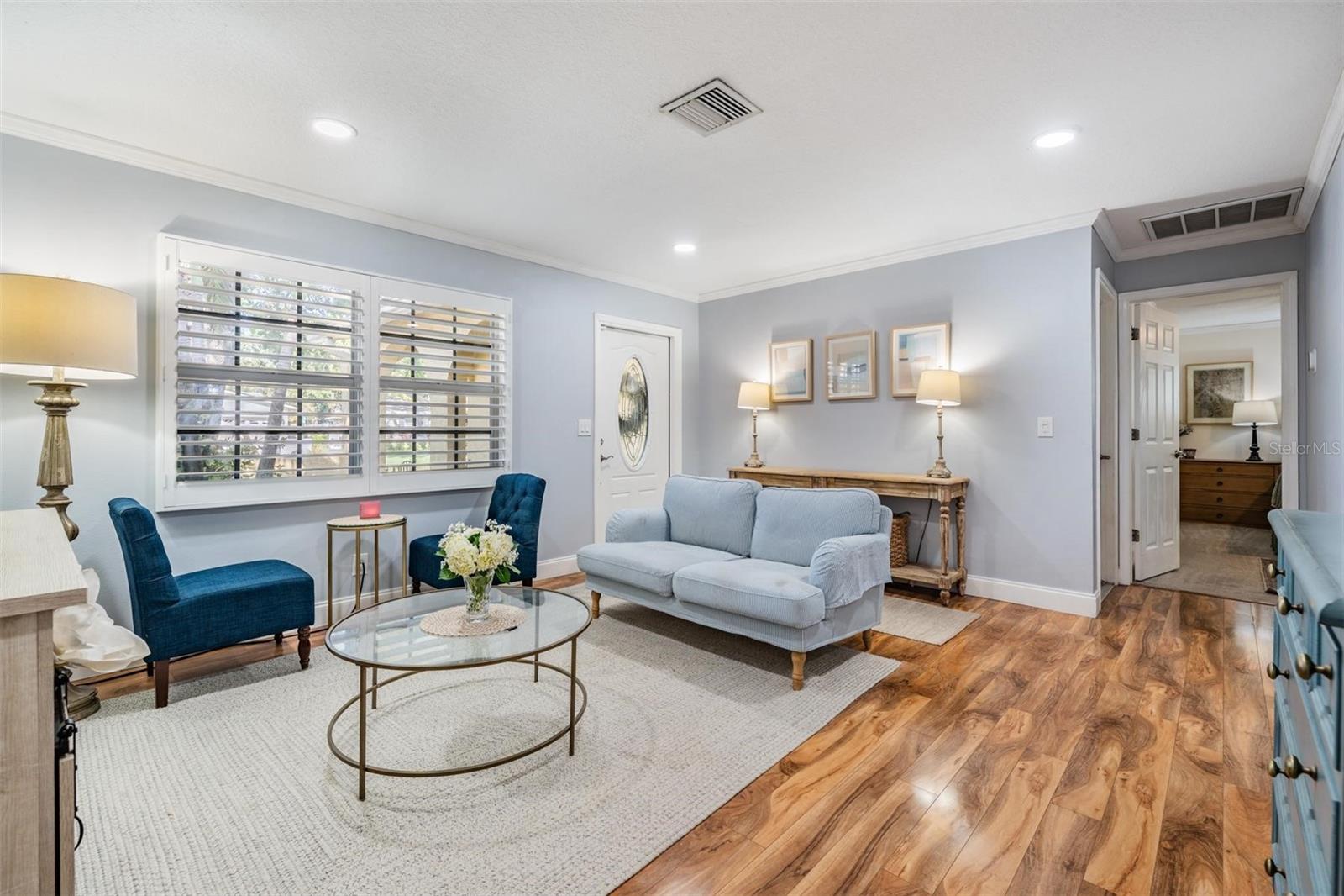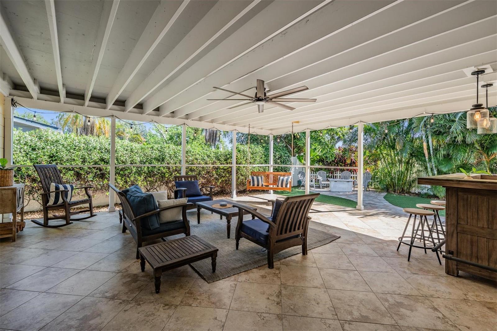 This move-in-ready home is a rare find, as it has never experienced flooding. Spanning just under 1,800 square feet, it offers ample space for large gatherings and entertaining. The home features a bright and airy living room, a separate family room with a newly resurfaced stone wood-burning fireplace, and a chef's kitchen equipped with solid wood cabinetry, stone countertops, a breakfast bar, and stainless steel gas appliances. Additionally, there is a separate dining room, enhancing the home's generous layout. The three spacious bedrooms provide a relaxing retreat, each offering plenty of room to breathe. Notable upgrades include fresh interior paint, new crown molding, and beautiful flooring. Enjoy Florida’s outdoor lifestyle with a sprawling 400 sq ft covered patio accessible from both the living room and master bedroom. And THAT backyard!!! The yard has been enhanced with $15k in upgrades, including maintenance-free turf, pavers, a sprinkler system installed in 2023, and lush landscaping. The property is equipped with a sturdy 2019 roof with gutters, providing peace of mind during the rainy season. Zoned for Shore Acres Elementary, an A-rated school, this home is the perfect blend of practicality and beauty. BONUS: The current owner's flood insurance policy is transferable with the sale of the property, adding an extra layer of convenience for the new owner.