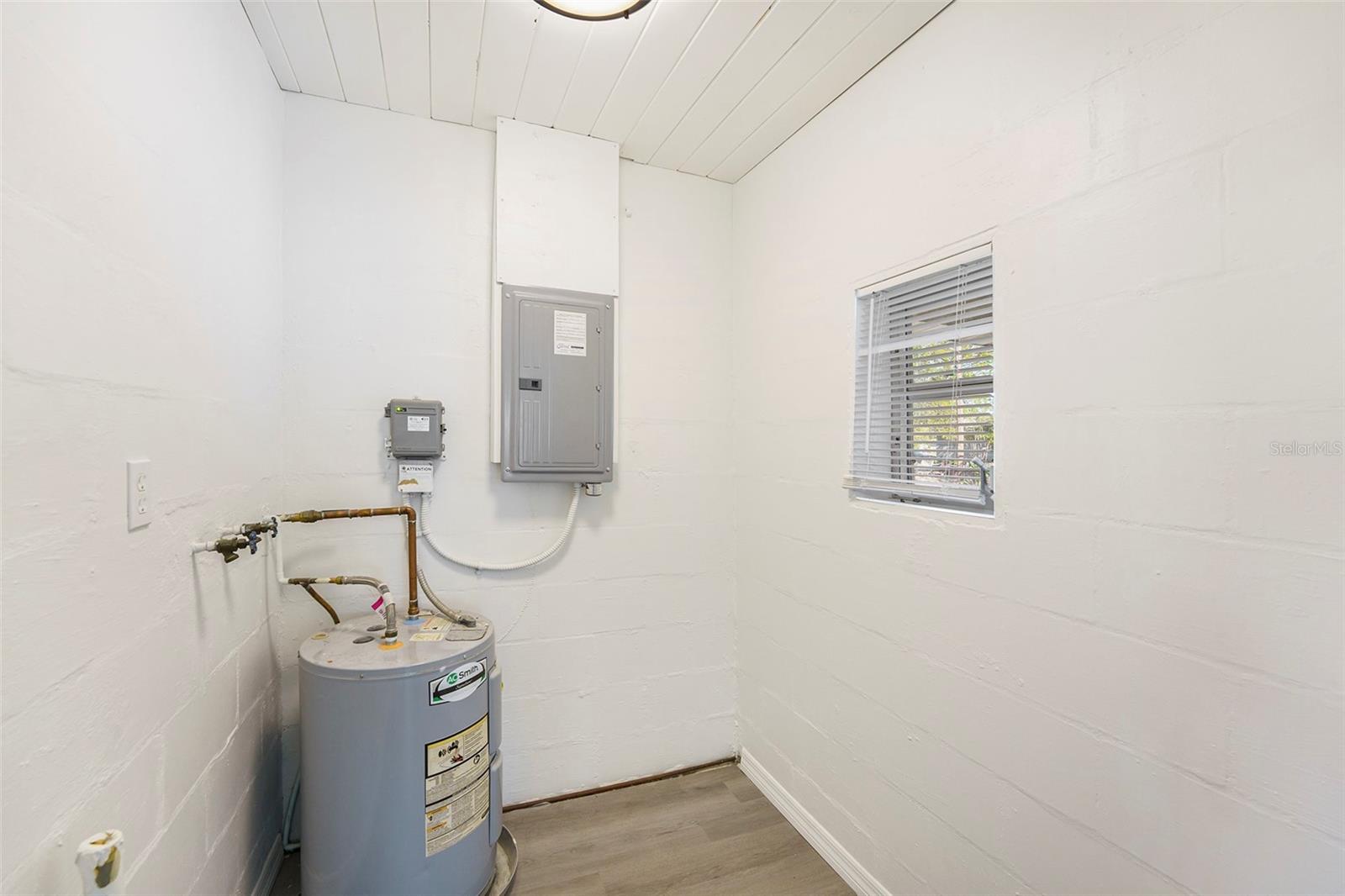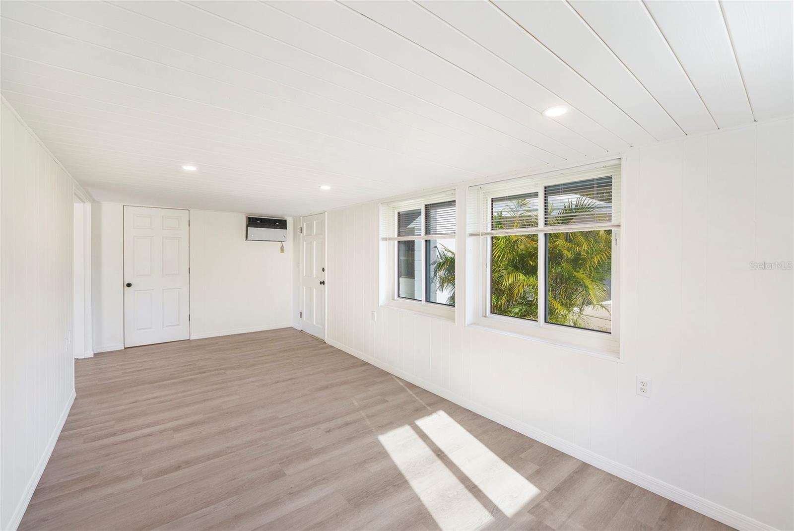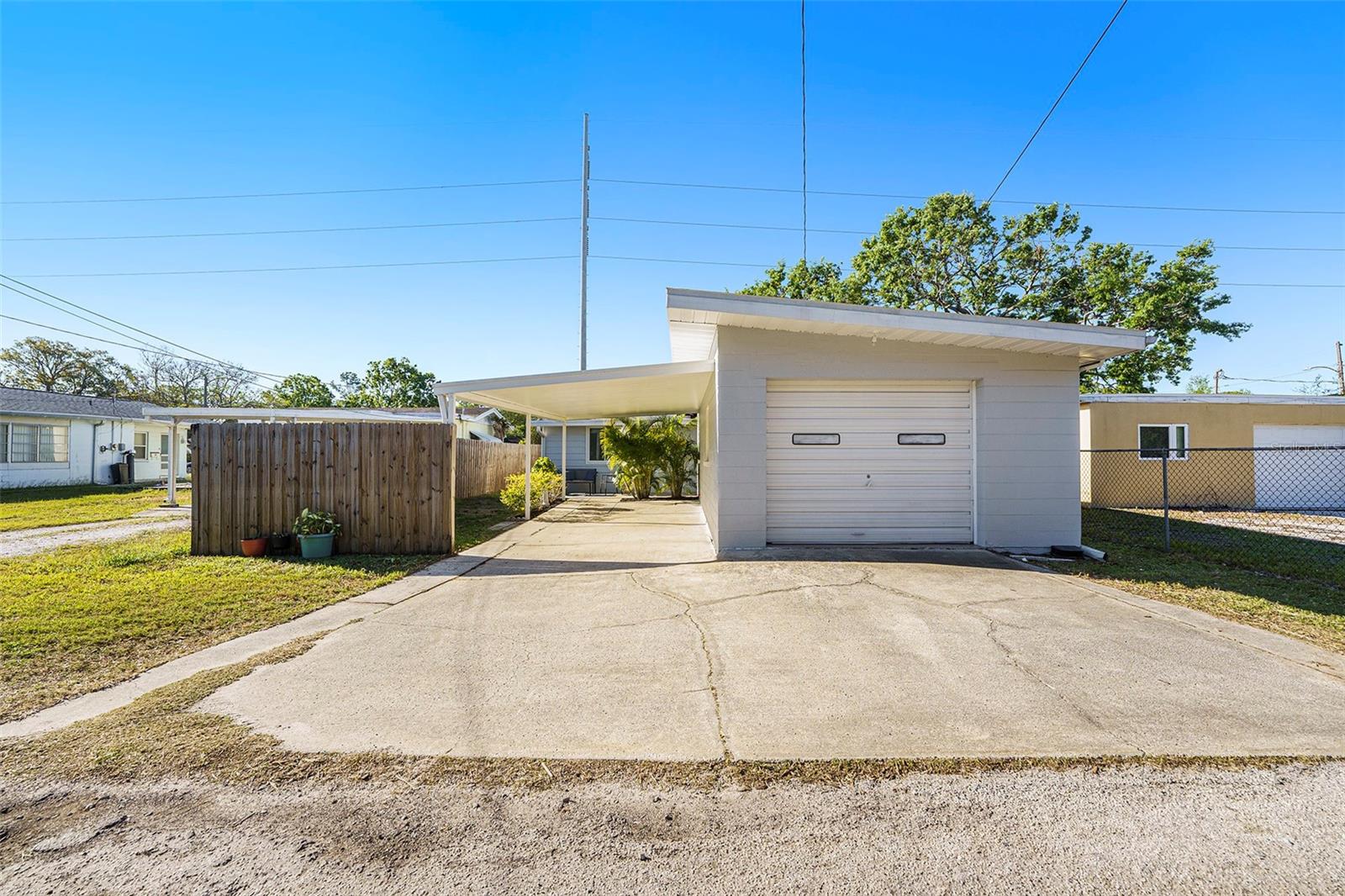 PRICE REDUCED! BELOW MARKET VALUE! This is the ONE! This cozy yet functional property offers a perfect blend of comfort and convenience, with the added potential to increase equity by transforming the oversized detached garage with its own bathroom into a guest suite, rental unit, or versatile workspace. This home had NO water intrusion or wind damage from the 2024 storm season. Welcome to this charming, beautifully updated 1-bedroom, 2-bathroom concrete block home located just one block off vibrant 4th Street in St. Pete Home Features: Beautiful midcentury vaulted ceiling with dark wood beams as you enter the front door. Large, Bright and Airy Living Space perfect for relaxing or entertaining. Updated Kitchen with quartz countertops, newer stainless appliances, and ample solid wood cabinet storage. Spacious Bedroom with ample natural light and closet space. Updated Bathroom featuring modern fixtures and stylish finishes. Fresh Paint and New Flooring throughout, giving the home a modern yet welcoming feel. Detached Oversized Garage with Bonus Bath: The detached 1-car garage is generously sized, offering plenty of room for vehicle storage plus additional space for a workshop, hobby area., or outdoor entertainment. The convenient second bathroom in the garage adds versatility, ideal for adding equity with additional living area, guest suite or potential ADU. Location Highlights: Situated just one block from 4th Street, you’ll enjoy easy access to a variety of restaurants, shops, and entertainment. Minutes from downtown St. Petersburg, park access is 1 block away, and local beaches. Convenient access to major roadways for easy commuting. This property is perfect for first-time buyers, downsizers, or anyone seeking a well-located home with flexible garage space. Don’t miss this rare opportunity in a prime St. Petersburg neighborhood! Schedule your private showing today!