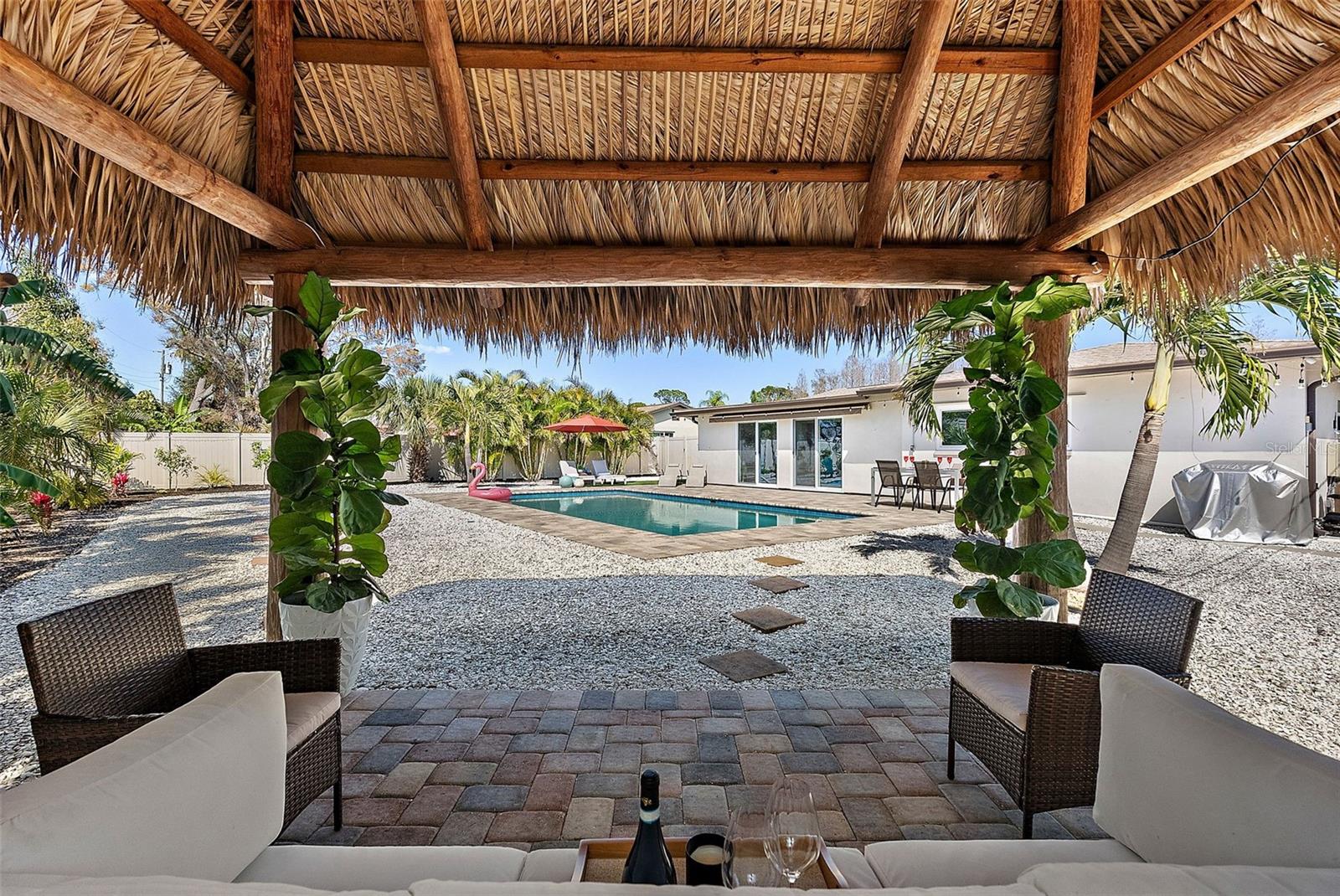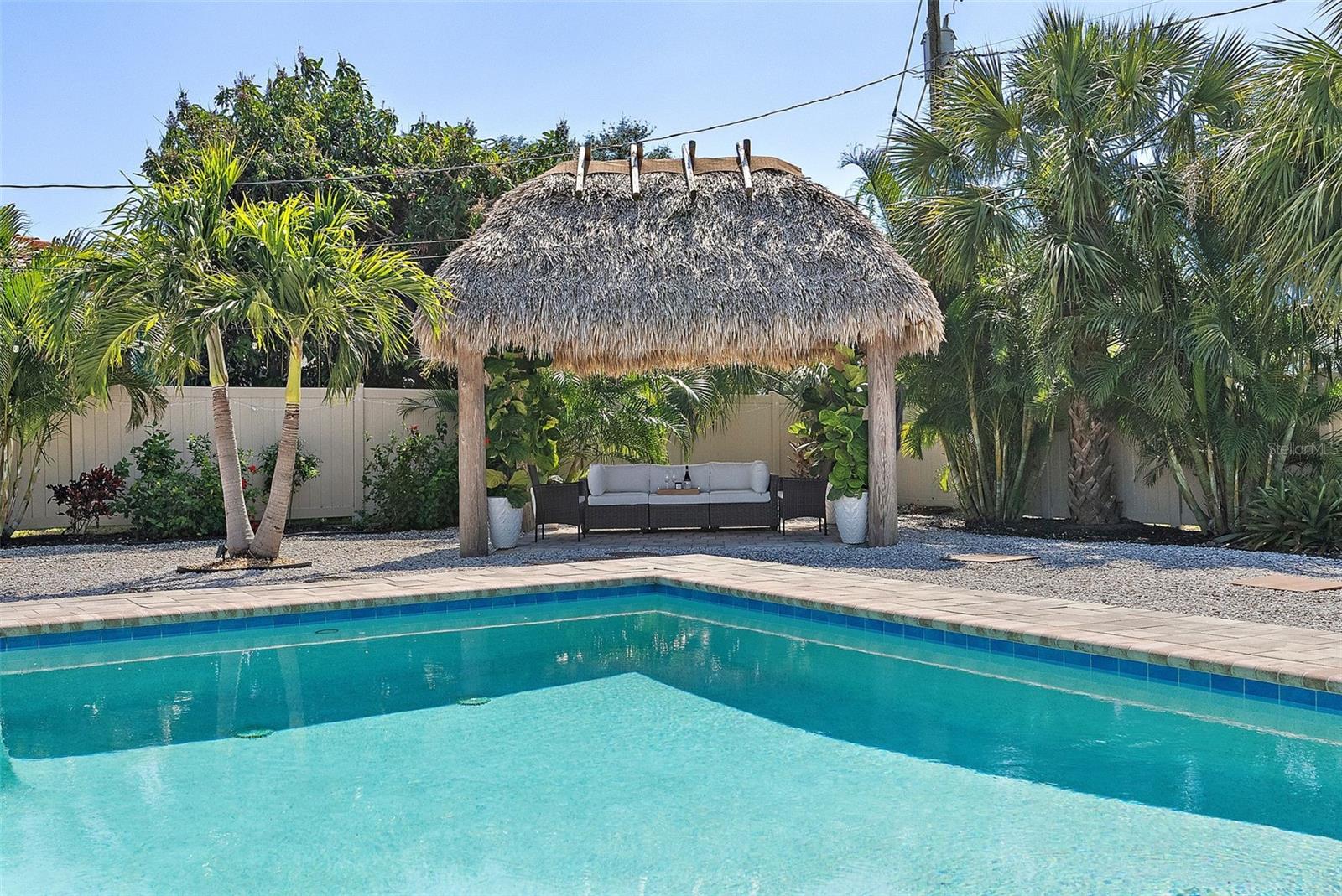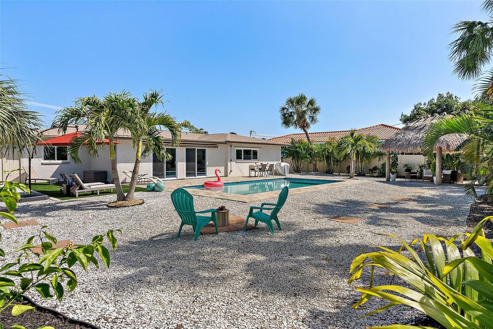No flooding, water intrusion, or storm-related damage during the 2024 hurricane season. VA loan assumption is an option at the seller's mortgage rate of 5.5% for VA qualified buyers. Welcome to this stunning, updated 3-bedroom, 2-bathroom home located at 4149 38th St S, St. Petersburg, FL 33711. Offering 1,826 sq ft of living space, this meticulously designed home features an open floor plan that seamlessly blends modern convenience with exceptional style. The entire home is adorned with beautiful, low-maintenance tile flooring, providing a sleek and cohesive look throughout. The large, inviting primary bedroom is a true retreat, offering ample space to relax and unwind. It features a beautiful design and an updated en-suite bathroom that exudes elegance and comfort, making it the perfect sanctuary after a long day. Each of the guest bedrooms are versatile, offering plenty of space to suit your needs, whether you’re creating a home office, guest room, or a playroom. The home also features a designated dining area, perfect for enjoying meals with family and friends in a spacious and inviting setting. Every detail has been thoughtfully considered, including custom window coverings throughout the home to ensure maximum privacy and enhance the overall aesthetic. The heart of the home is the recently updated kitchen, equipped with newer stainless steel appliances, an exhaust hood, newer fixtures, and ample cabinetry. This space is perfect for preparing gourmet meals or casual dining. Step outside and discover a true outdoor paradise. The backyard boasts a stunning heated saltwater pool, Wi-Fi controlled for your convenience, and a charming tiki hut cabana, ideal for relaxing or hosting gatherings. The paver patio is perfect for enjoying the beautiful Florida weather, while the low-maintenance white shell landscaping keeps the space clean and beautiful. Dual SunSetter outdoor shades offer additional comfort, providing shade for both the outdoor patio and the interior of the home. This home is packed with recent updates for energy efficiency and peace of mind. In 2019, the home received a brand-new HVAC system with ductwork, a new water heater, and high-end PGT hurricane impact windows throughout, including front, side, and rear sliders. The attic was also upgraded with blown-in insulation and solar-powered attic fans, further enhancing the home’s energy efficiency. Irrigation was added in 2019, while the pool, pavers, and landscaping were completed in 2020. The roof was replaced in 2021 with hurricane straps, ensuring durability and protection for years to come. Whether you're lounging by the pool, entertaining on the patio, or relaxing in your beautiful, updated interior, this home has it all. With its spacious, versatile layout, modern upgrades, and inviting outdoor spaces, 4149 38th St S is truly the perfect place to call home.