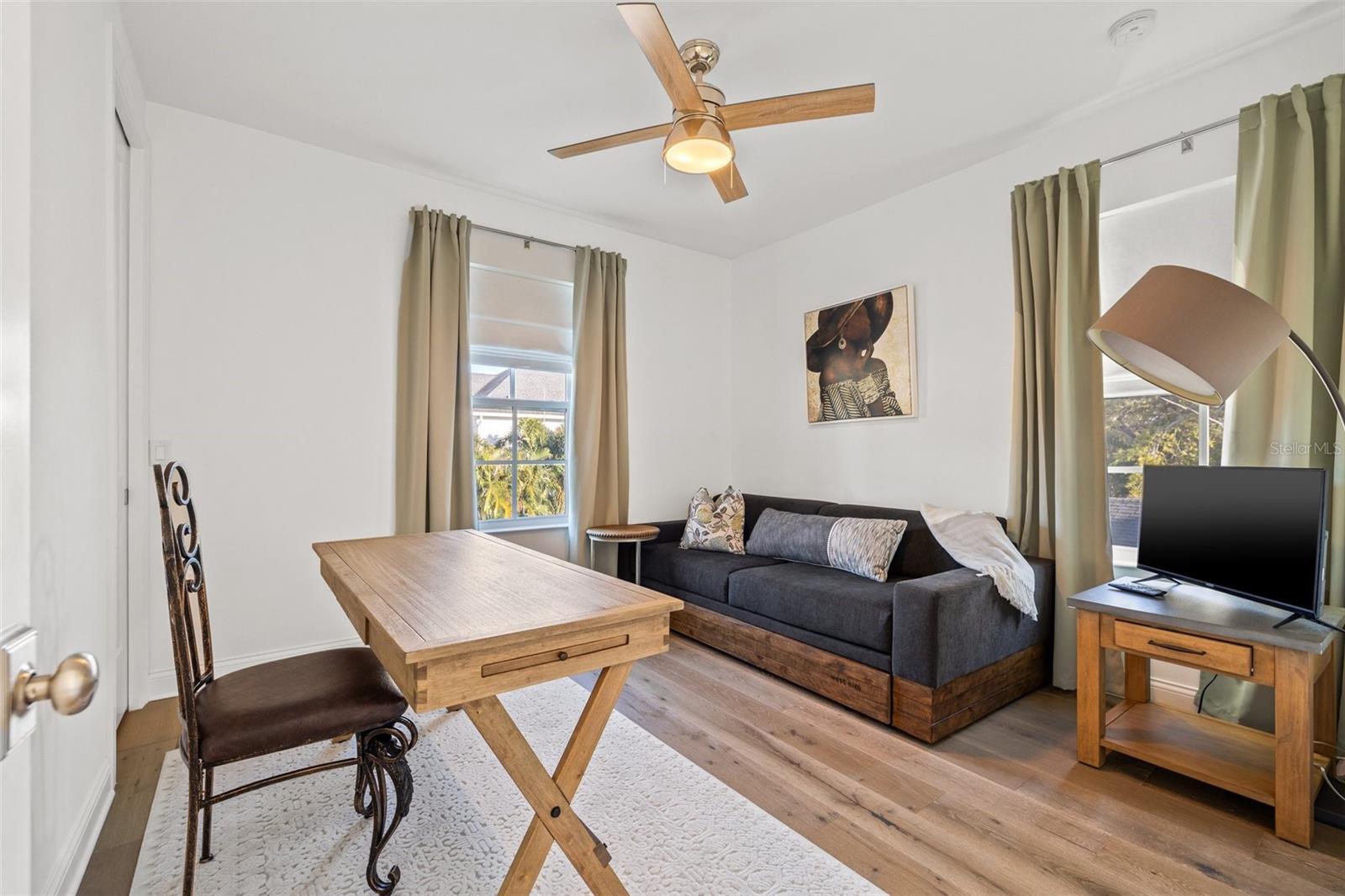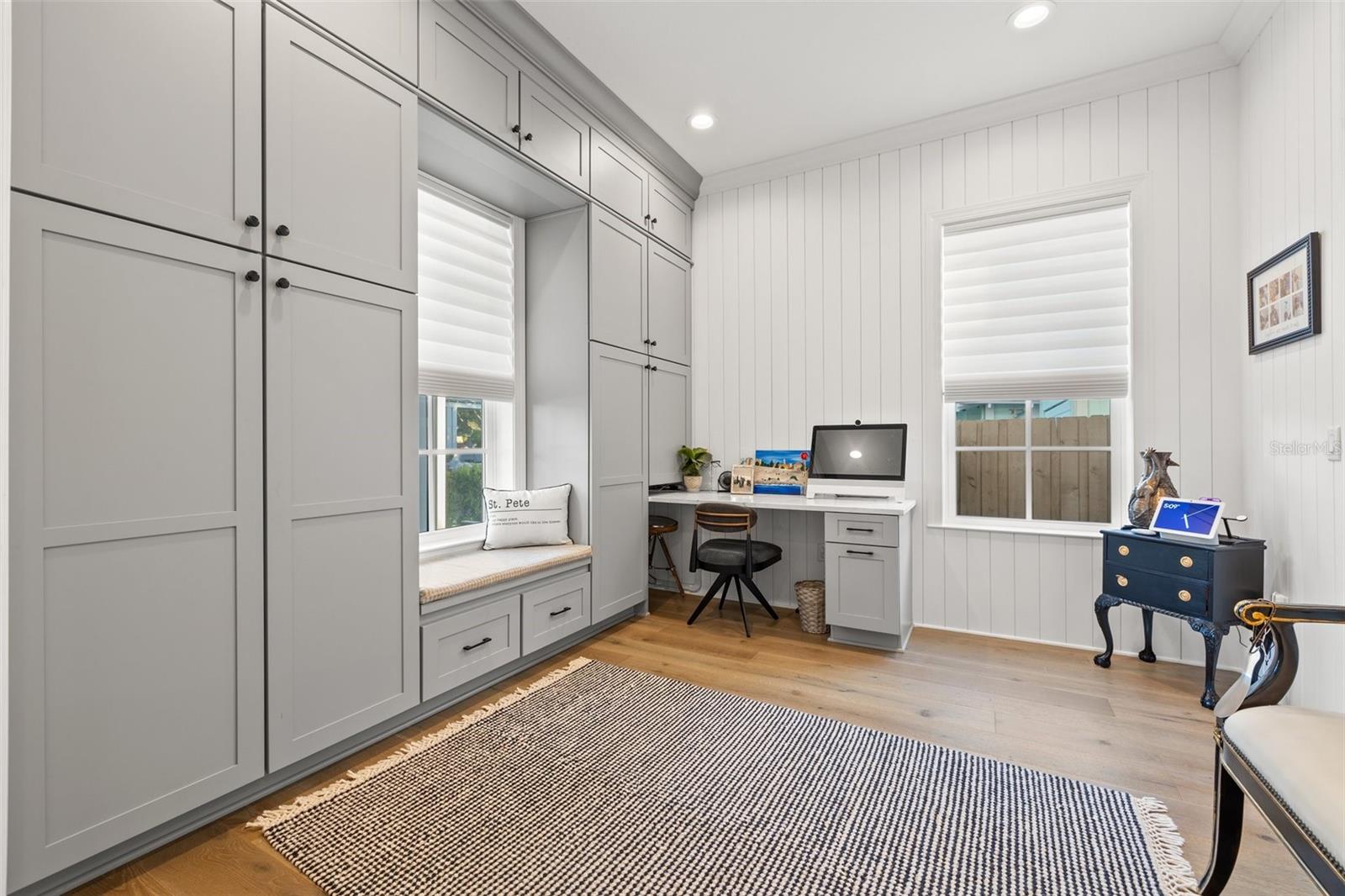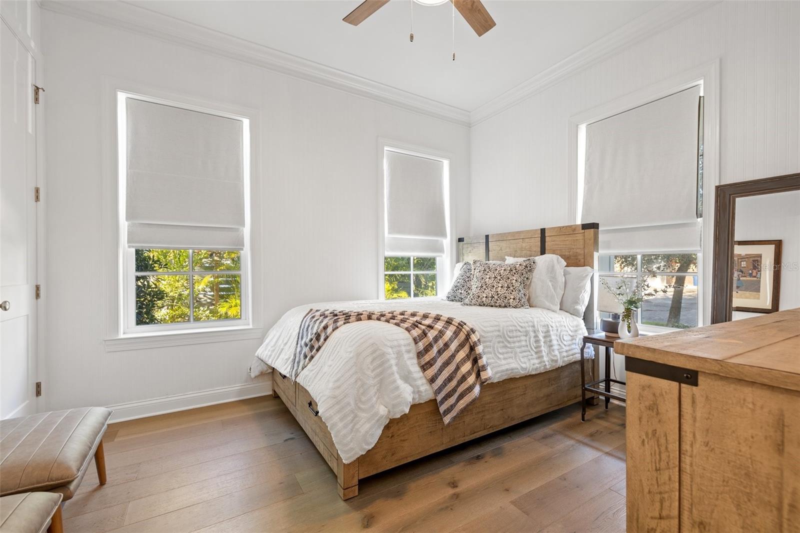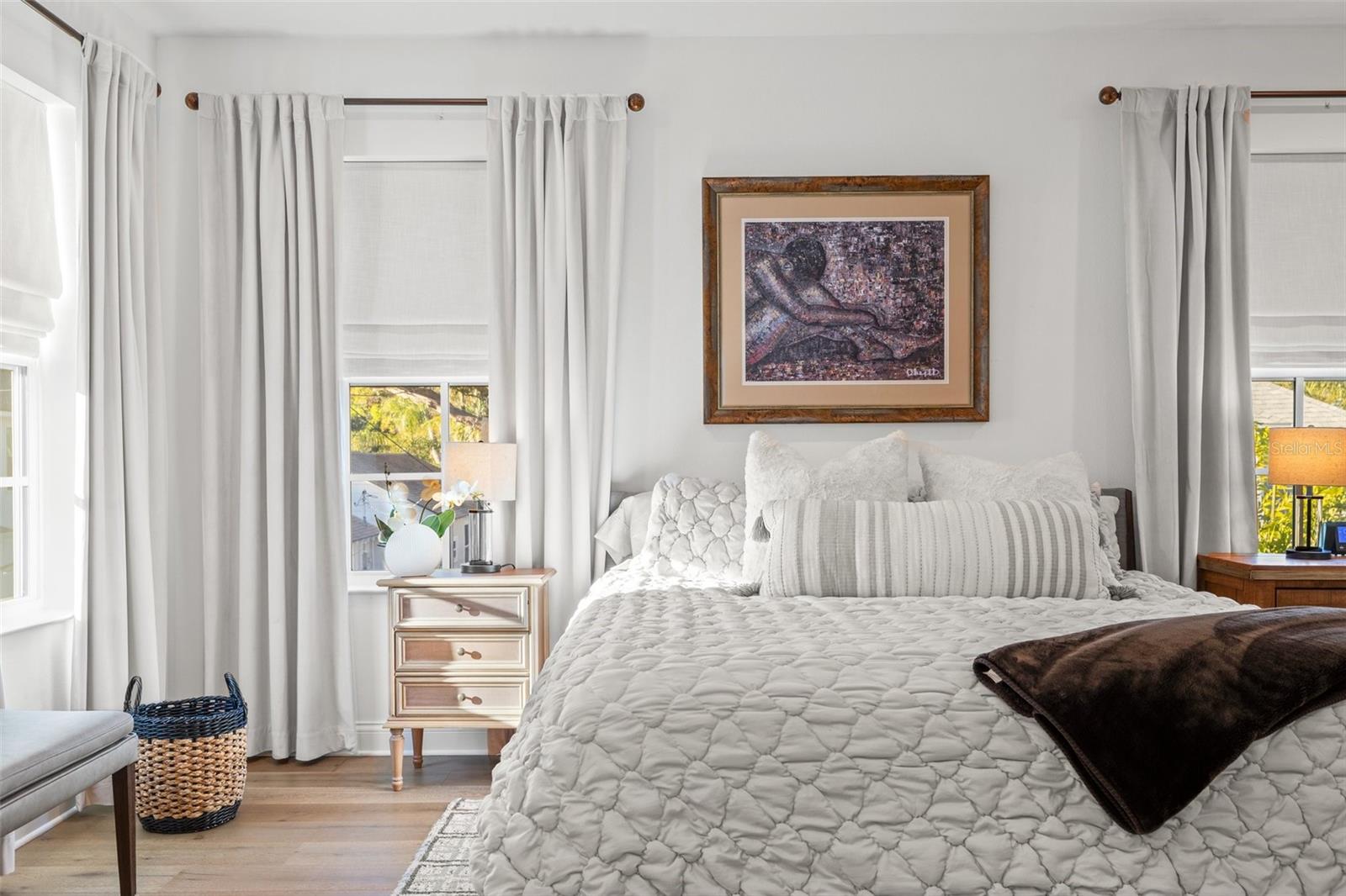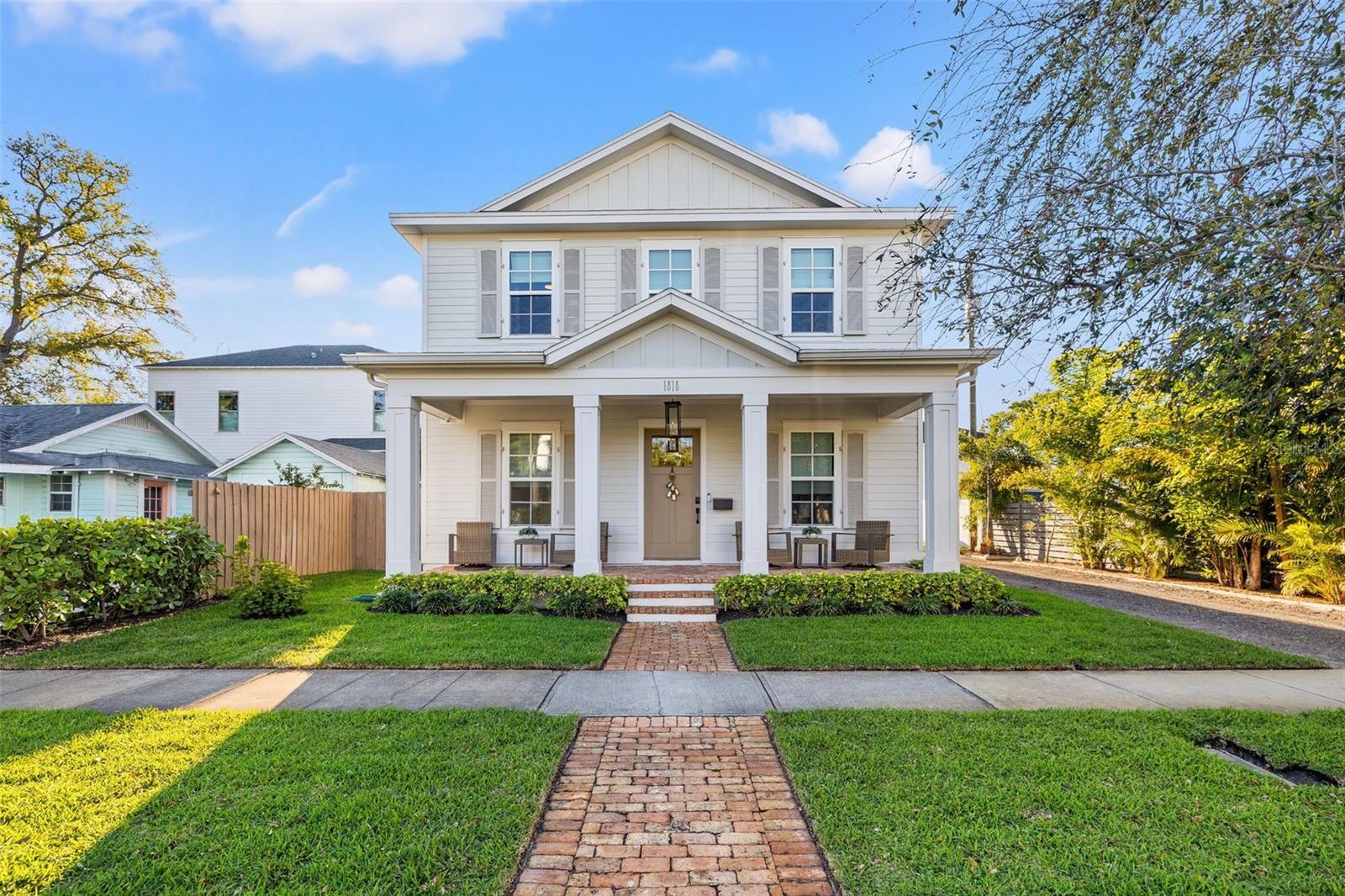 This quintessential Canopy home is nestled in the charming and historic neighborhood of Euclid St. Paul’s, known for its picturesque brick streets and unique character. Built in 2019, this home is a true showcase of craftsmanship, with every detail carefully considered. From the signature front porch gas lantern and shiplap walls to the exquisite lighting and fixtures, this home seamlessly blends modern style with timeless charm. The thoughtfully designed floor plan features a downstairs bedroom and full bath, along with a versatile bonus room that includes a large closet and custom built-ins—ideal for a home office or additional guest space. The expansive open living area and kitchen will take your breath away, adorning high ceilings and beautiful lighting throughout. The chef’s dream kitchen is a highlight, featuring a large island, a farmhouse sink, and a gas range that will inspire your inner cook. The dining room is complemented by custom drapes, and all the windows are outfitted with custom shades, adding warmth and coziness to the space. Automated Hunter Douglas blinds are installed in both the office and living room for added convenience. Step outside the living room to a southern-charm inspired screened porch, the perfect place to unwind and enjoy the outdoors. The current owner even has a video rendering of a stunning pool design for the backyard, creating a true tropical oasis for summer relaxation. The oversized 1-car garage with alley access is a standout feature, complemented by an additional parking pad, ensuring you never have to park on the street. Upstairs, the owner’s retreat offers a spacious sanctuary, complete with a spa-like bath and a walk-in closet finished by California Closets. Across the hall, you’ll find two additional bedrooms and a beautifully appointed laundry room. This home has it all, including curb appeal with a new lawn, a sprinkler system, and a gorgeous Chicago brick walkway leading to the front porch. Euclid St. Paul’s is rich in history and just minutes from Downtown St. Pete, Crescent Lake, and a variety of shops and restaurants, including Rollin’ Oats, Trader Joe’s, and Whole Foods. Located in the highly desirable X flood zone, this home is safe and secure, built to the highest hurricane standards. With the added peace of mind of a Generac generator, this 2019-built home is a rare find in one of the best locations in the city. Don’t miss out—schedule your appointment today! ALMOST 50FT ABOVE SEA LEVEL HIGH AND DRY, GENERATOR AND HURRICANE IMPACT WINDOWS!