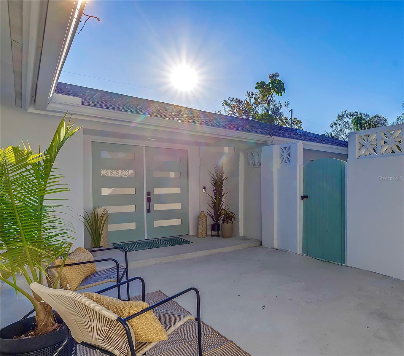 One or more photo(s) has been virtually staged. Welcome to your stunning, fully remodeled 4-bedroom, 3-bathroom home in the highly desirable Allendale Terrace neighborhood of St. Petersburg, FL. Sitting on an oversized 13,000+ sq ft corner lot, this exquisite mid-century modern retreat boasts over 2,700 sq ft of beautifully updated living space, seamlessly blending modern luxury with timeless charm. As you approach, a beautifully landscaped private courtyard welcomes you, setting the tone for the tranquility and elegance that awaits inside. Step through the double-door entrance into the expansive open-concept living area, where luxury vinyl plank flooring, custom cabinetry, and sleek LED lighting create a warm yet sophisticated ambiance. The heart of the home is the chef’s kitchen, designed to impress with quartz countertops, a full-height backsplash, brand-new stainless steel appliances, and a spacious eat-up island featuring stunning waterfall-edge counters—perfect for casual dining and entertaining. Thoughtful mid-century touches shine through in the elegant gold hardware and statement range hood, adding a timeless sophistication to this beautifully curated space. This home offers two luxurious primary suites, each designed for ultimate comfort and style, while all three bathrooms have been thoughtfully crafted with custom spa-like finishes. Sleek mid-century modern floating vanities, designer tile work, and high-end fixtures elevate each space, creating a true retreat. A bonus office space provides incredible flexibility—ideal for working from home, a creative studio, or even a cozy den. With its own door leading to the backyard, this space seamlessly connects indoor and outdoor living. The seamless indoor-outdoor flow is enhanced by custom accordion doors that open to a brand-new pergola-covered patio, extending the living space into the expansive backyard. Enclosed by a six-foot concrete wall along most of the perimeter, this private outdoor oasis provides endless possibilities for relaxing, gardening, or hosting unforgettable gatherings. Adding to the home’s appeal, a detached one-car garage with alley access offers additional convenience and storage. Beyond its breathtaking design, this home’s prime location on high ground in a non-flood zone means added security, lower insurance costs, and year-round peace of mind—an invaluable feature in Florida’s coastal market. Just minutes from downtown St. Pete’s vibrant shops, dining, and waterfront parks, this exceptional home delivers both luxury and unbeatable location. In the last year, this home has been completely transformed with an all-new kitchen, all three bathrooms, HVAC, interior and exterior paint, flooring, interior and exterior doors, updated electrical and lighting, a redesigned laundry room with cabinetry, and new exterior cement pads and landscaping. Additionally, a new roof was installed in 2023, ensuring durability and peace of mind for years to come. Don’t miss this rare opportunity—schedule your private tour today!