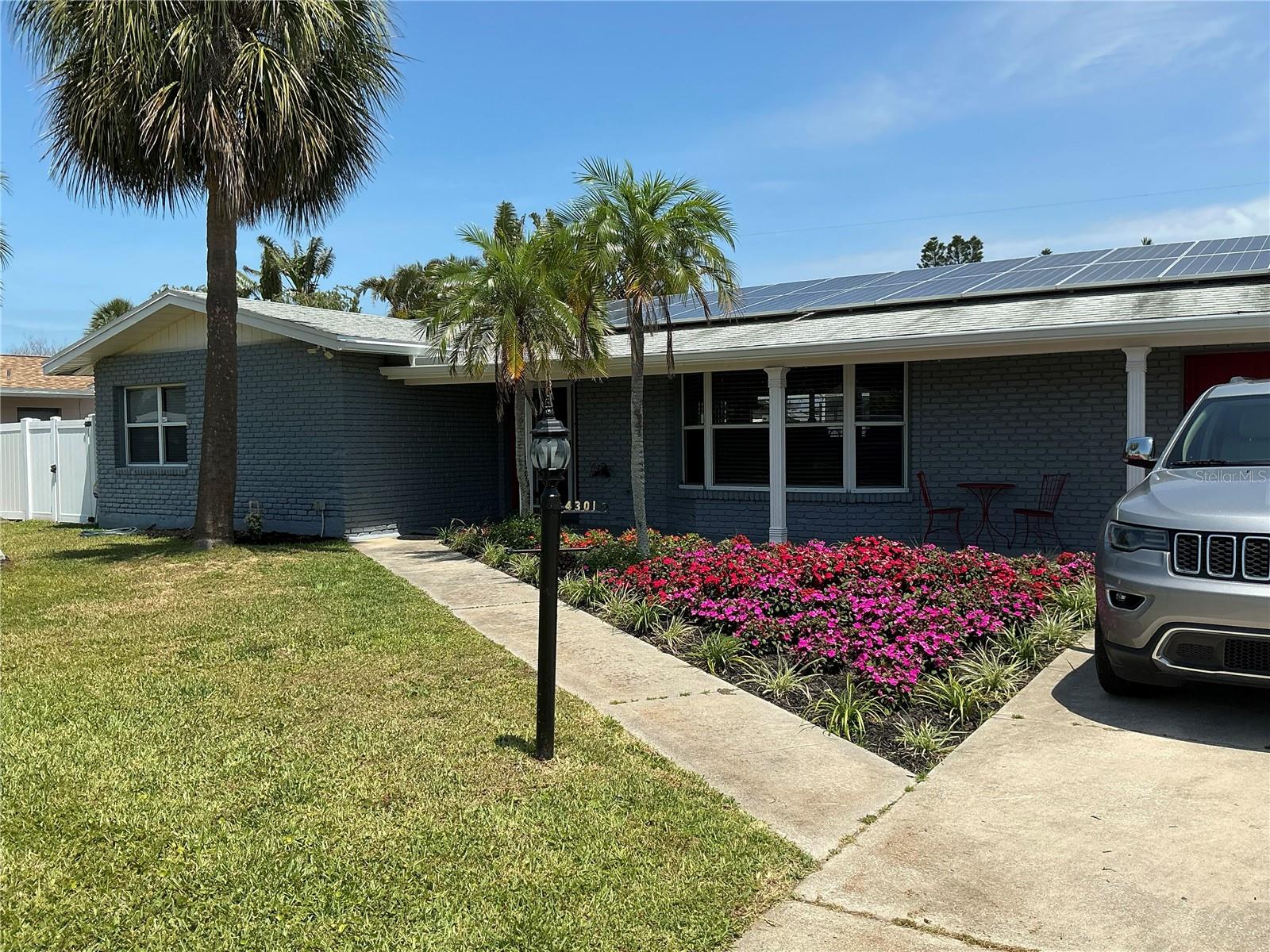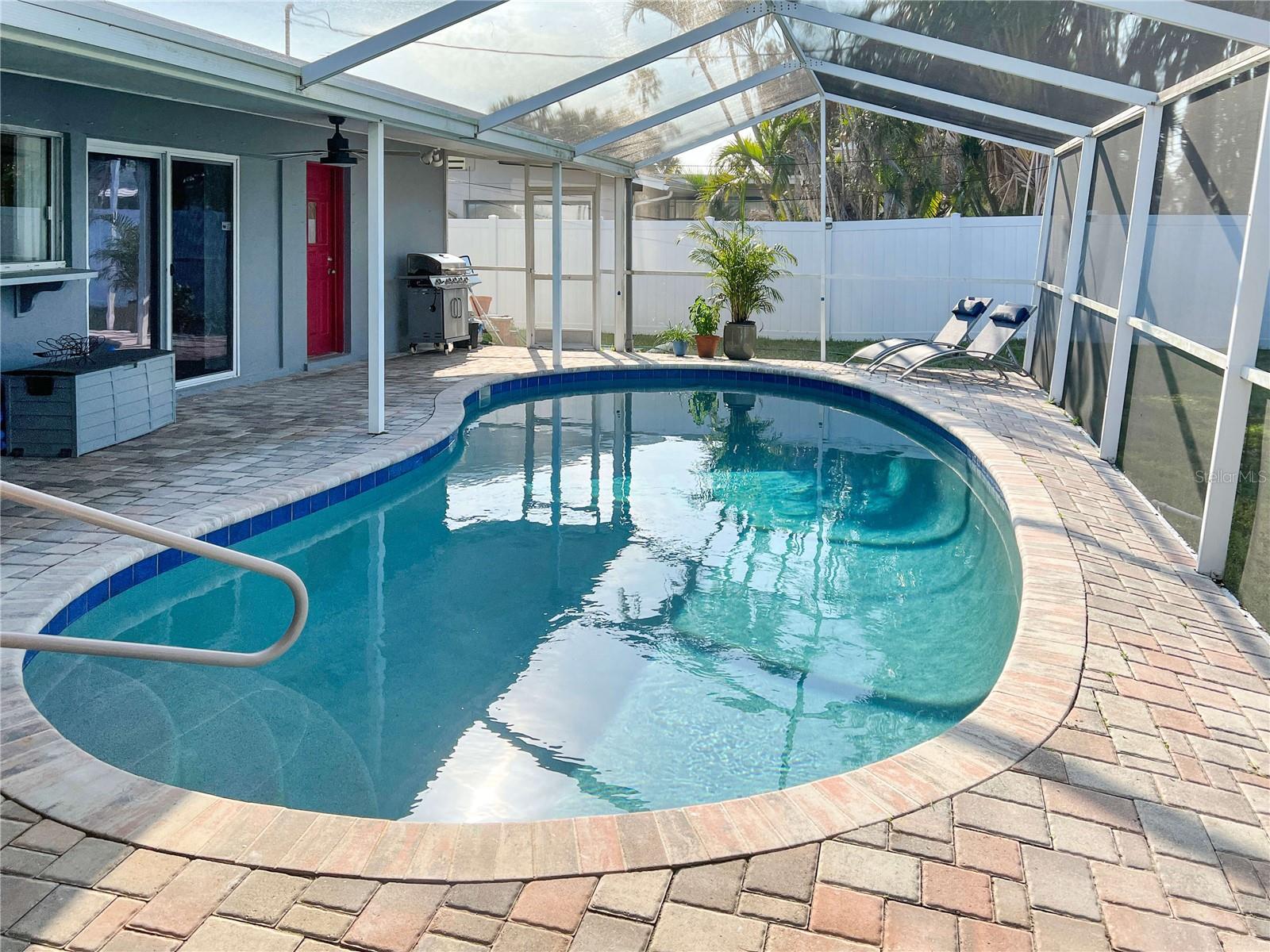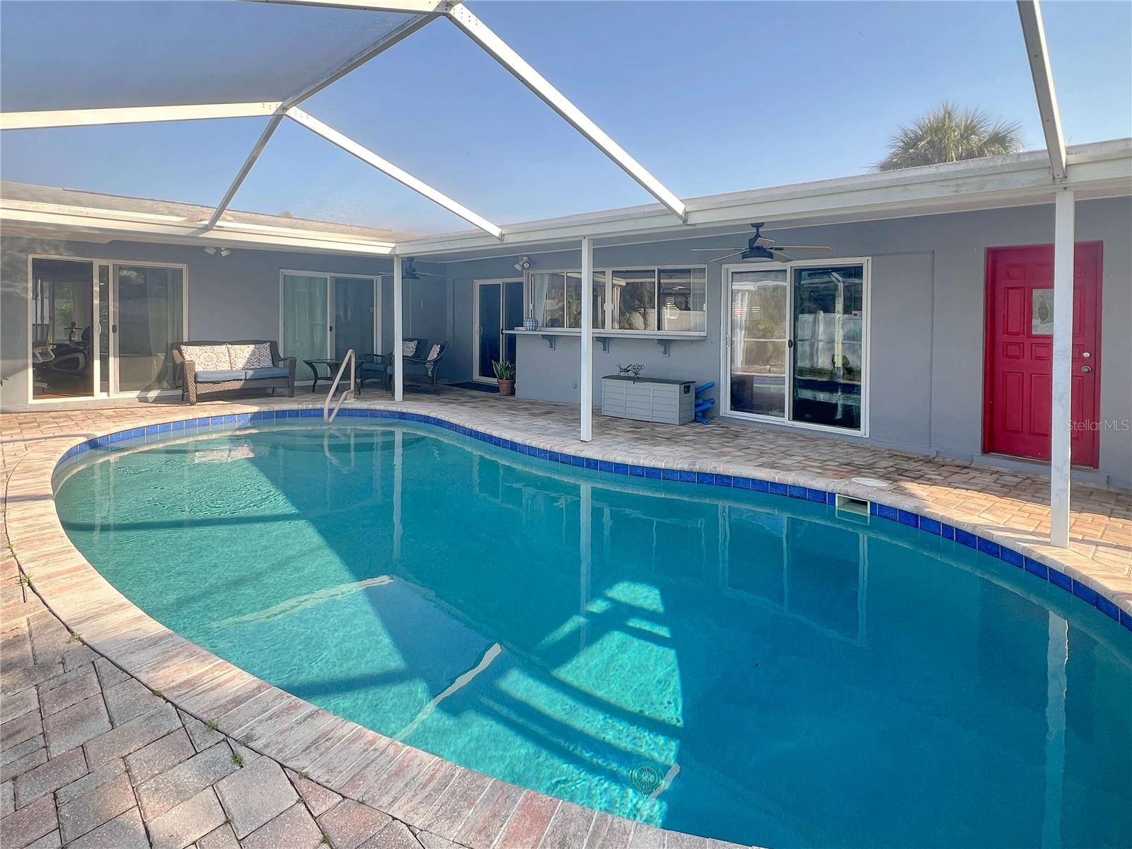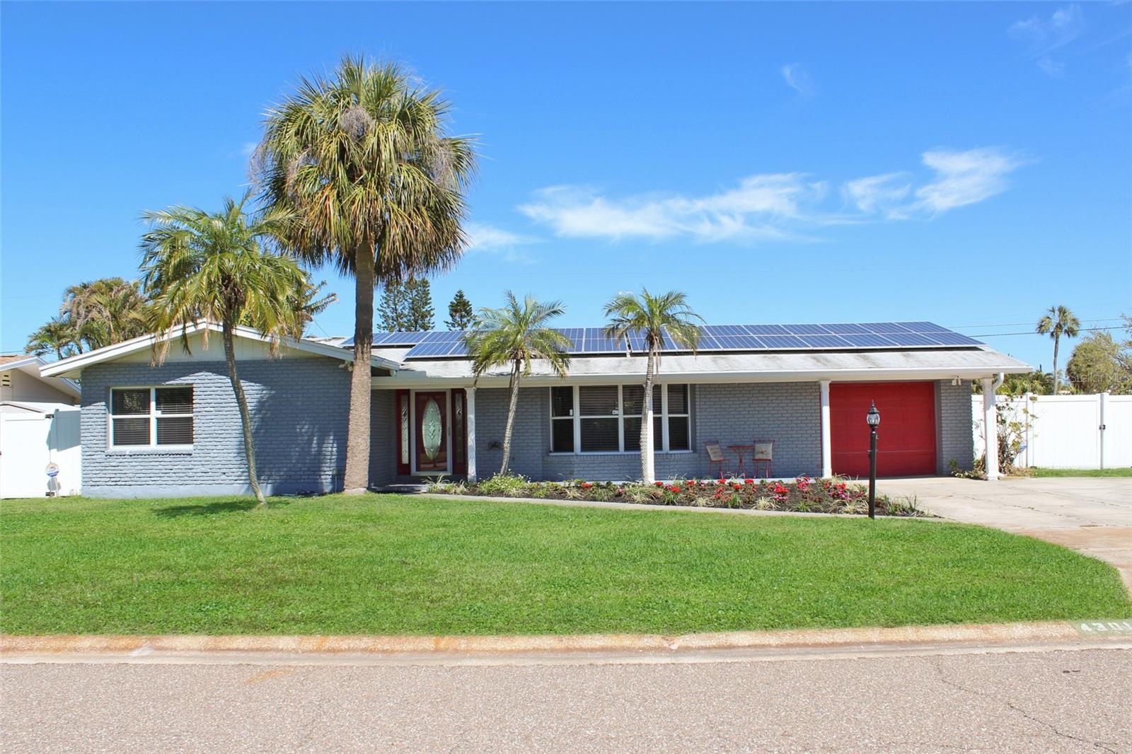 No flooding the past hurricane season and no history of flooding on this property! Discover your dream Florida lifestyle in this spacious and inviting 4 bedroom, 2 bathroom pool home, nestled in the highly sought-after Maximo Moorings neighborhood of St. Petersburg. This property offers the perfect blend of comfort, style, and convenience, making it an ideal haven for families and entertainers alike. Step inside and be greeted by a bright and airy open floor plan, illuminated by large windows that flood the space with natural light. The stylish and durable wood-look tile floors flow seamlessly throughout the living, dining, and kitchen areas, creating a cohesive and modern aesthetic. The kitchen boasts ample counter space, perfect for culinary enthusiasts, complemented by granite countertops and stainless-steel appliances, including a newer refrigerator and an extra refrigerator in the garage. This home features a desirable split floor plan, ensuring privacy for everyone. The bedrooms feature classic and durable Terrazzo floors, adding a touch of vintage charm. The large master suite is a true retreat, complete with glass sliding doors that open directly to the pool area, extending your living space outdoors. The adjoining 4th bedroom, also with glass sliding doors to the pool, offers incredible versatility, serving as a perfect nursery, home office, workout studio, or even a custom walk-in closet. Custom designed closets throughout the home provide ample storage and organization. The dining area also features glass sliding doors that seamlessly blend indoor and outdoor living. Enjoy the ultimate Florida experience in the screened-in pool area, featuring a sparkling solar-heated pool and a recently refurbished pool pump. The second bathroom conveniently acts as a pool bath with a dedicated exterior entrance, perfect for rinsing off after a swim. Benefit from a whole house solar panel system, ensuring energy efficiency and lower utility bills. A water softening system enhances your daily comfort. Additional highlights include a freshly finished epoxy garage floor, custom storm shutters for peace of mind, newer AC, AC Ducts and roof, providing worry-free living. This home is situated on a large corner lot in a quiet neighborhood, offering extra space and privacy. Location is everything! You'll be just 5 minutes from the pristine beaches, close to shopping and restaurants, and only 20 minutes from Tampa International Airport (TIA), making travel and everyday errands a breeze. This Maximo Moorings gem offers everything you've been searching for. Don't miss your chance to make this exceptional property your own!