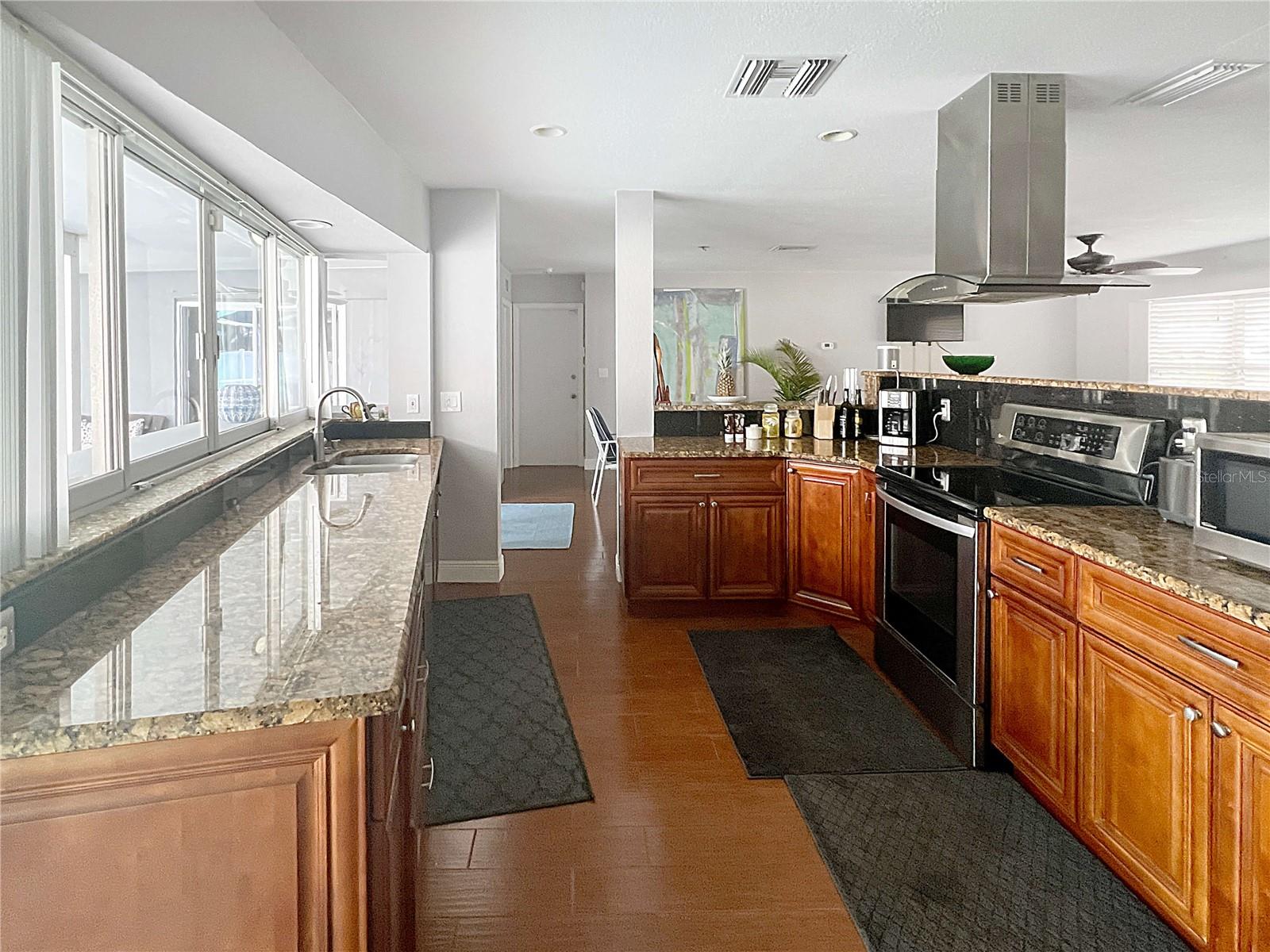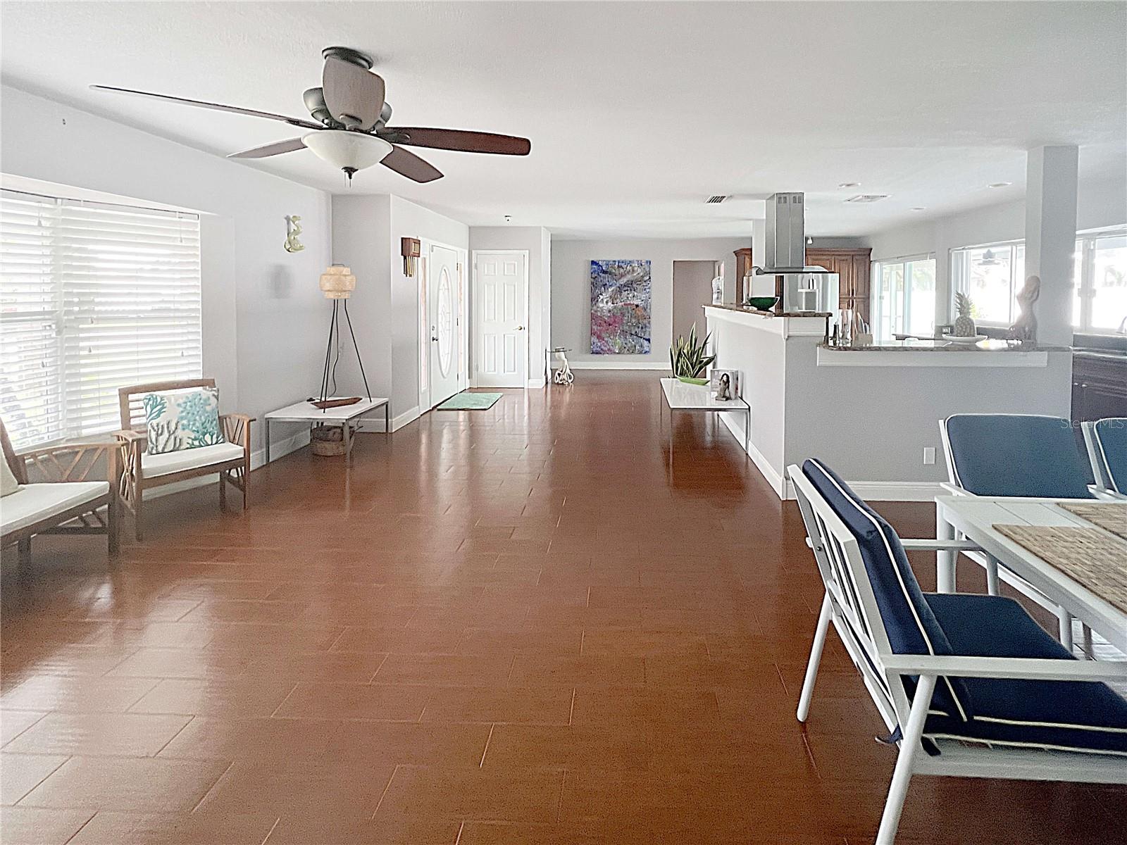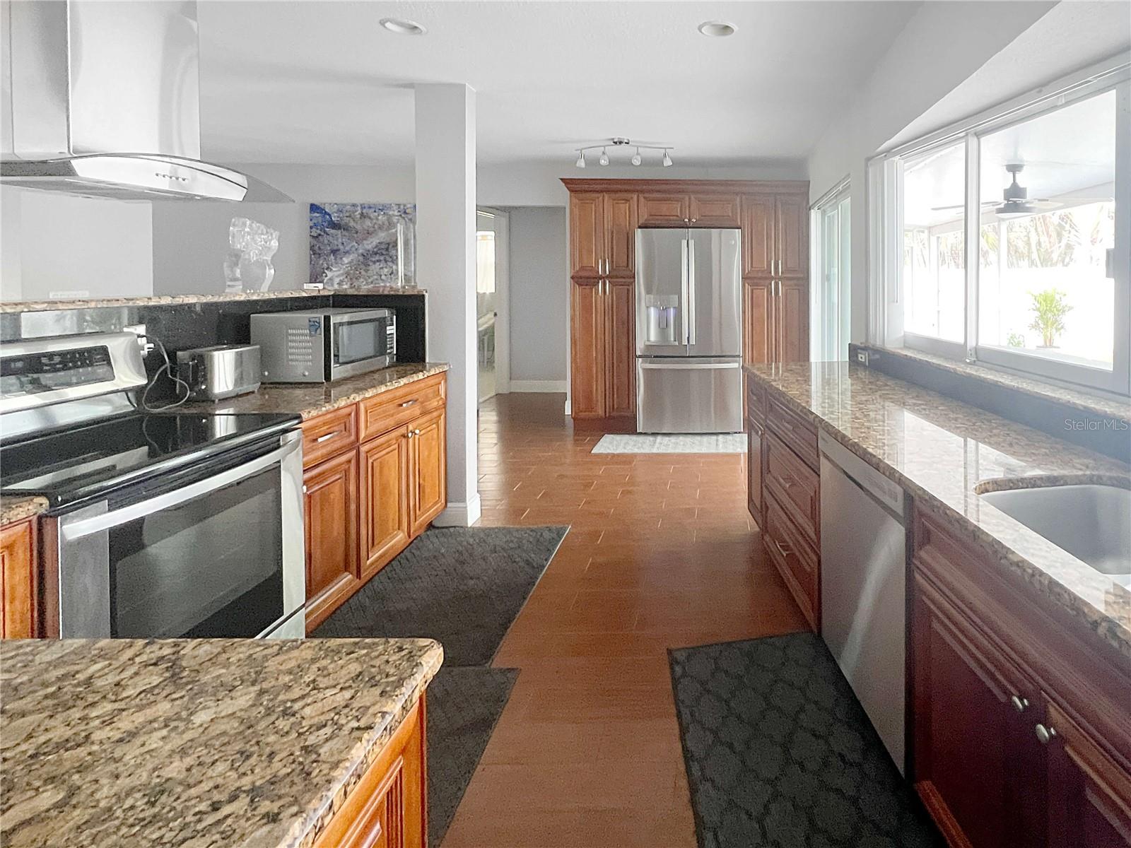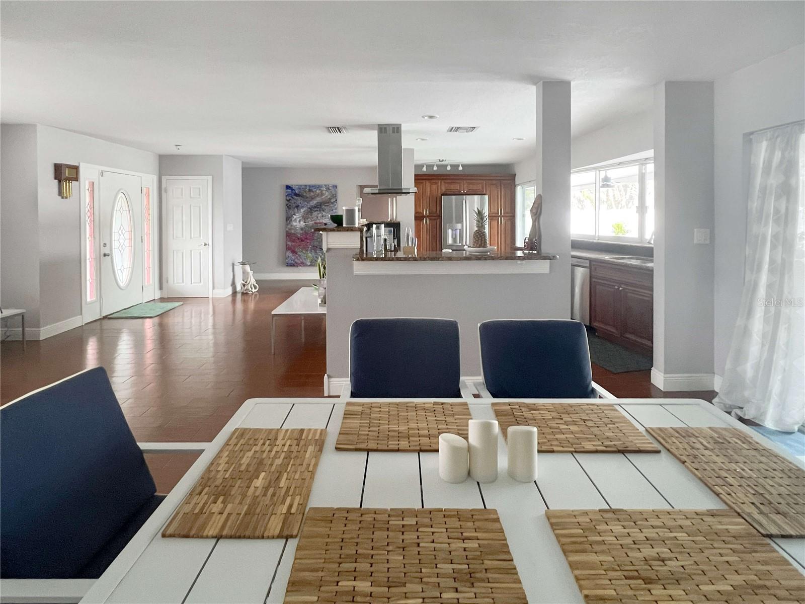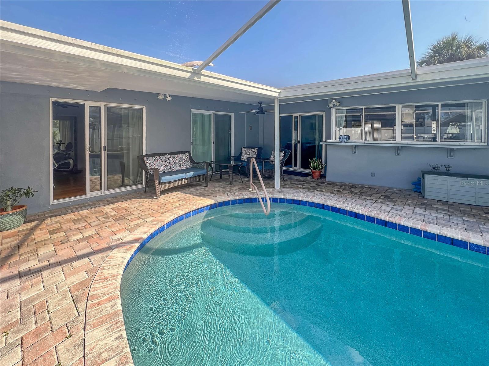 No flooding the past hurricane season and no history of flooding on this property! Discover your dream Florida lifestyle in this spacious and inviting 4 bedroom, 2 bathroom pool home, nestled in the highly sought-after Maximo Moorings neighborhood of St. Petersburg. This property offers the perfect blend of comfort, style, and convenience, making it an ideal haven for families and entertainers alike. Step inside and be greeted by a bright and airy open floor plan, illuminated by large windows that flood the space with natural light. The stylish and durable wood-look tile floors flow seamlessly throughout the living, dining, and kitchen areas, creating a cohesive and modern aesthetic. The kitchen boasts ample counter space, perfect for culinary enthusiasts, complemented by granite countertops and stainless-steel appliances, including a newer refrigerator and an extra refrigerator in the garage. This home features a desirable split floor plan, ensuring privacy for everyone. The bedrooms feature classic and durable Terrazzo floors, adding a touch of vintage charm. The large master suite is a true retreat, complete with glass sliding doors that open directly to the pool area, extending your living space outdoors. The adjoining 4th bedroom, also with glass sliding doors to the pool, offers incredible versatility, serving as a perfect nursery, home office, workout studio, or even a custom walk-in closet. Custom designed closets throughout the home provide ample storage and organization. The dining area also features glass sliding doors that seamlessly blend indoor and outdoor living. Enjoy the ultimate Florida experience in the screened-in pool area, featuring a sparkling solar-heated pool and a recently refurbished pool pump. The second bathroom conveniently acts as a pool bath with a dedicated exterior entrance, perfect for rinsing off after a swim. Benefit from a whole house solar panel system, ensuring energy efficiency and lower utility bills. A water softening system enhances your daily comfort. Additional highlights include a freshly finished epoxy garage floor, custom storm shutters for peace of mind, newer AC, AC Ducts and roof, providing worry-free living. This home is situated on a large corner lot in a quiet neighborhood, offering extra space and privacy. Location is everything! You'll be just 5 minutes from the pristine beaches, close to shopping and restaurants, and only 20 minutes from Tampa International Airport (TIA), making travel and everyday errands a breeze. This Maximo Moorings gem offers everything you've been searching for. Don't miss your chance to make this exceptional property your own!