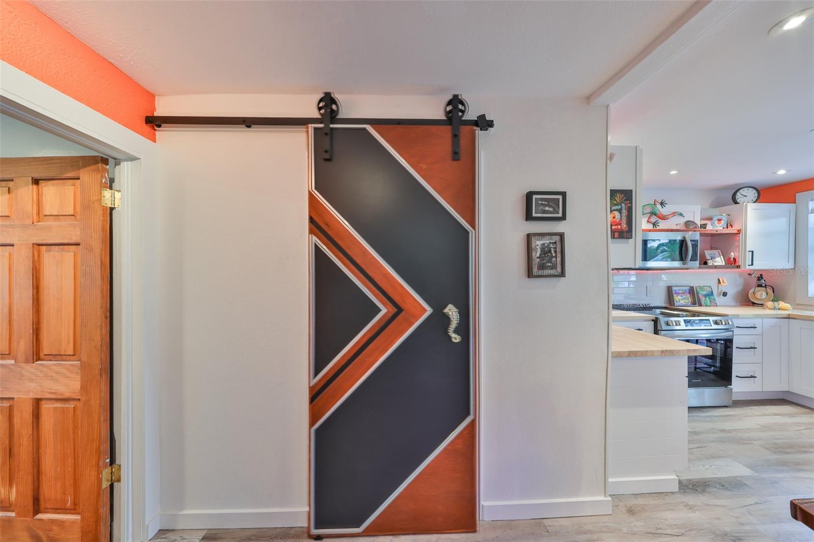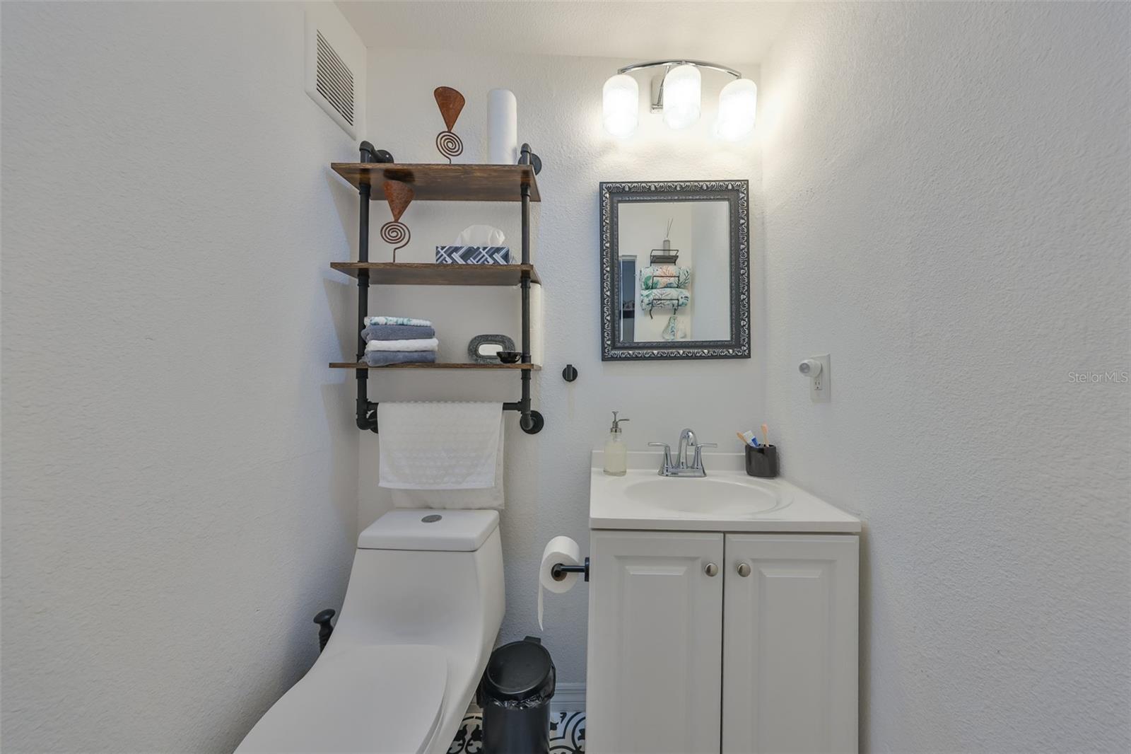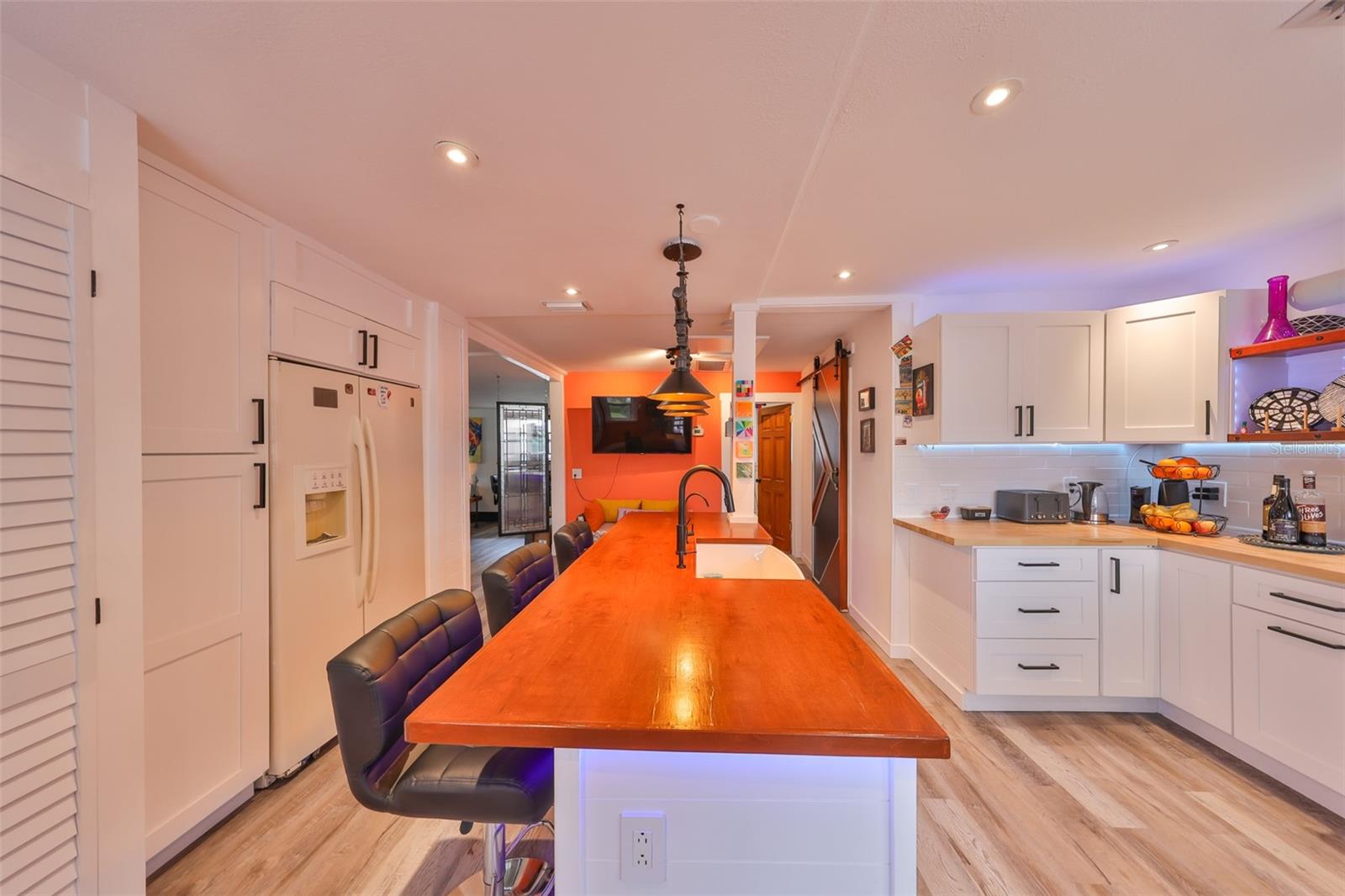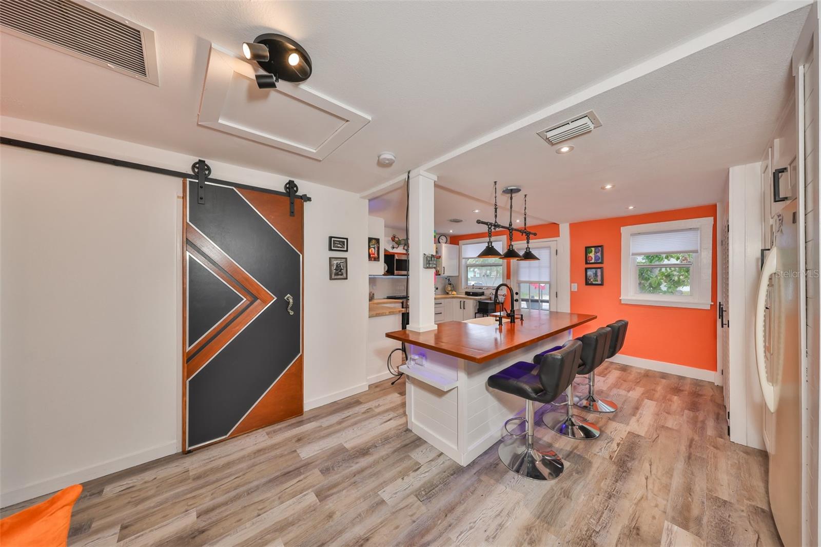 “Colorful Charmer” - Located on a corner lot in West St. Pete, this creatively designed space offers 2 bedrooms and 1.5 bathrooms with a 1-car attached garage. The heart of the home is the energetic, inspired kitchen that pops color at every turn. The colorful, redesigned kitchen with custom tile has been curated to include butcher block countertops with crisp white cabinets to create a modern vibe. A convenient laundry closet is located in the kitchen. A door off the kitchen leads to a deck ideal for morning coffee or relaxing during sunset. The home features 2 bedrooms with the primary bedroom off the living room, and the 2nd bedroom at the rear of the home has a ½ bath attached and a door leading to the courtyard with an outdoor shower and rear garden area. A hallway bathroom with a custom-designed door offers a walk-in shower with modern tile accents. The location provides easy access to the "SunRunner" just a few blocks away for travel to the Gulf Beaches, as well as the convenience of Downtown. All the convenience of dining, shopping, and entertainment on Central Ave and the Tyrone shopping areas, all within minutes. The fun and excitement of Downtown St. Pete is less than a 10-minute drive. Located in a non-flood zone with easy alley access.