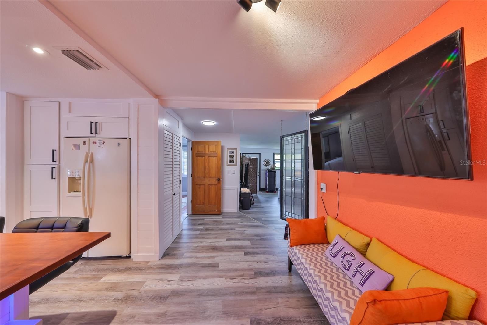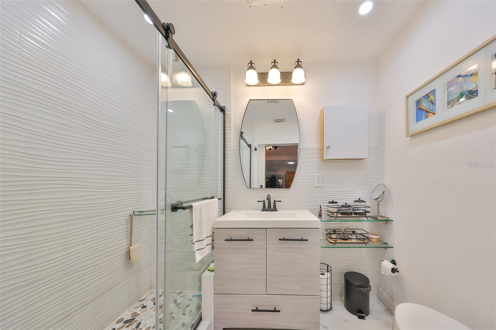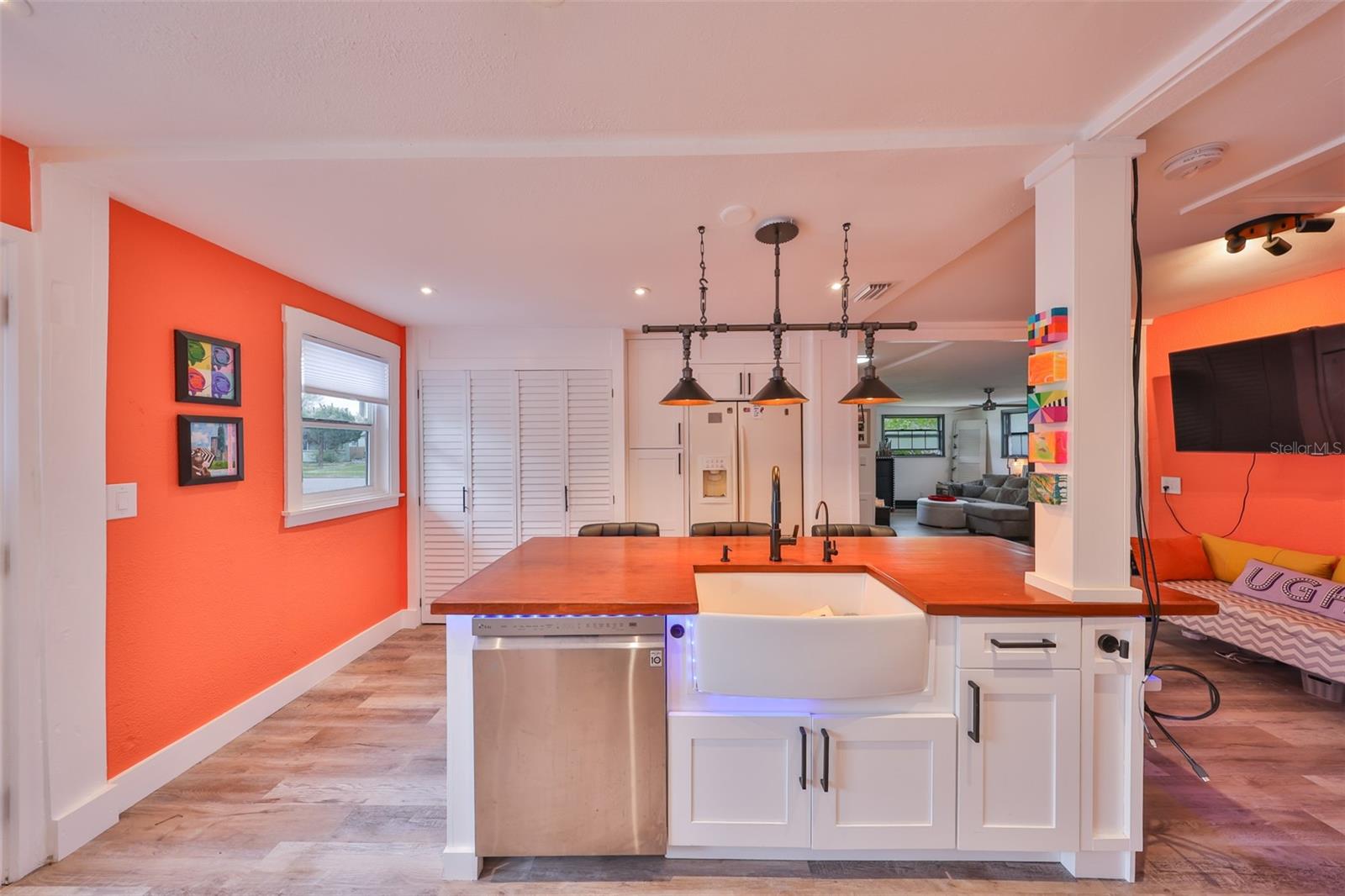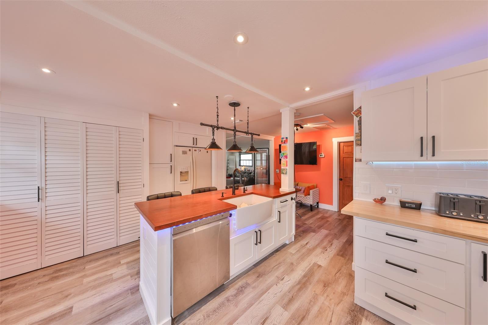 “Colorful Charmer” - Located on a corner lot in West St. Pete, this creatively designed space offers 2 bedrooms and 1.5 bathrooms with a 1-car attached garage. The heart of the home is the energetic, inspired kitchen that pops color at every turn. The colorful, redesigned kitchen with custom tile has been curated to include butcher block countertops with crisp white cabinets to create a modern vibe. A convenient laundry closet is located in the kitchen. A door off the kitchen leads to a deck ideal for morning coffee or relaxing during sunset. The home features 2 bedrooms with the primary bedroom off the living room, and the 2nd bedroom at the rear of the home has a ½ bath attached and a door leading to the courtyard with an outdoor shower and rear garden area. A hallway bathroom with a custom-designed door offers a walk-in shower with modern tile accents. The location provides easy access to the "SunRunner" just a few blocks away for travel to the Gulf Beaches, as well as the convenience of Downtown. All the convenience of dining, shopping, and entertainment on Central Ave and the Tyrone shopping areas, all within minutes. The fun and excitement of Downtown St. Pete is less than a 10-minute drive. Located in a non-flood zone with easy alley access.