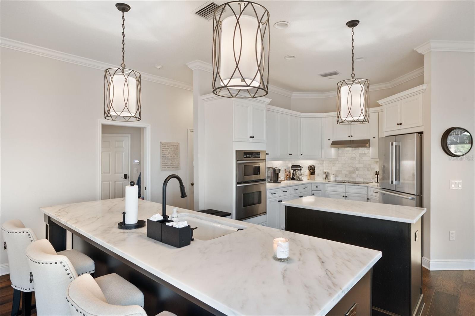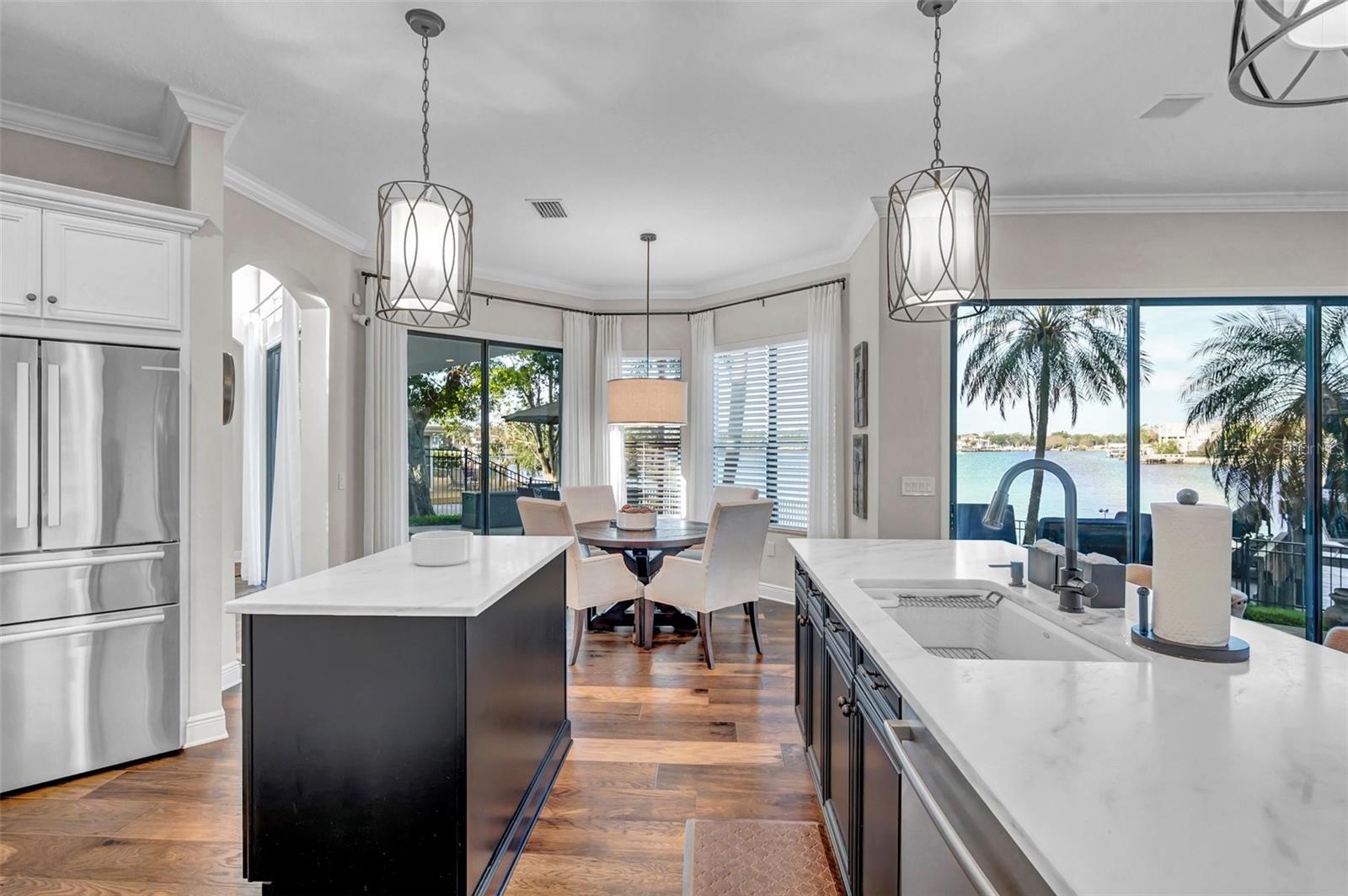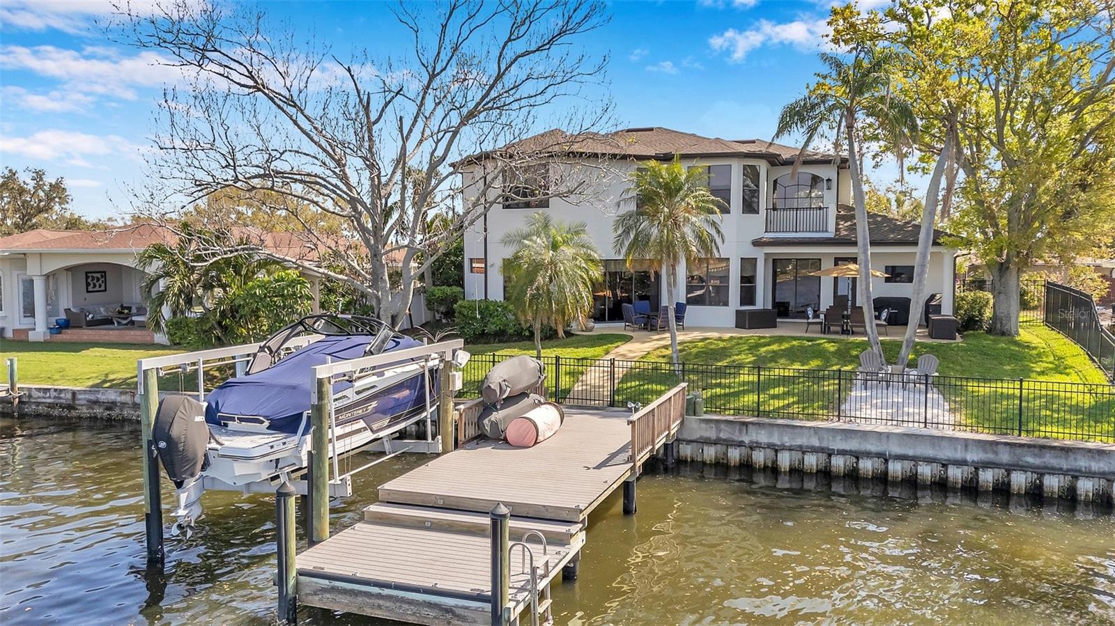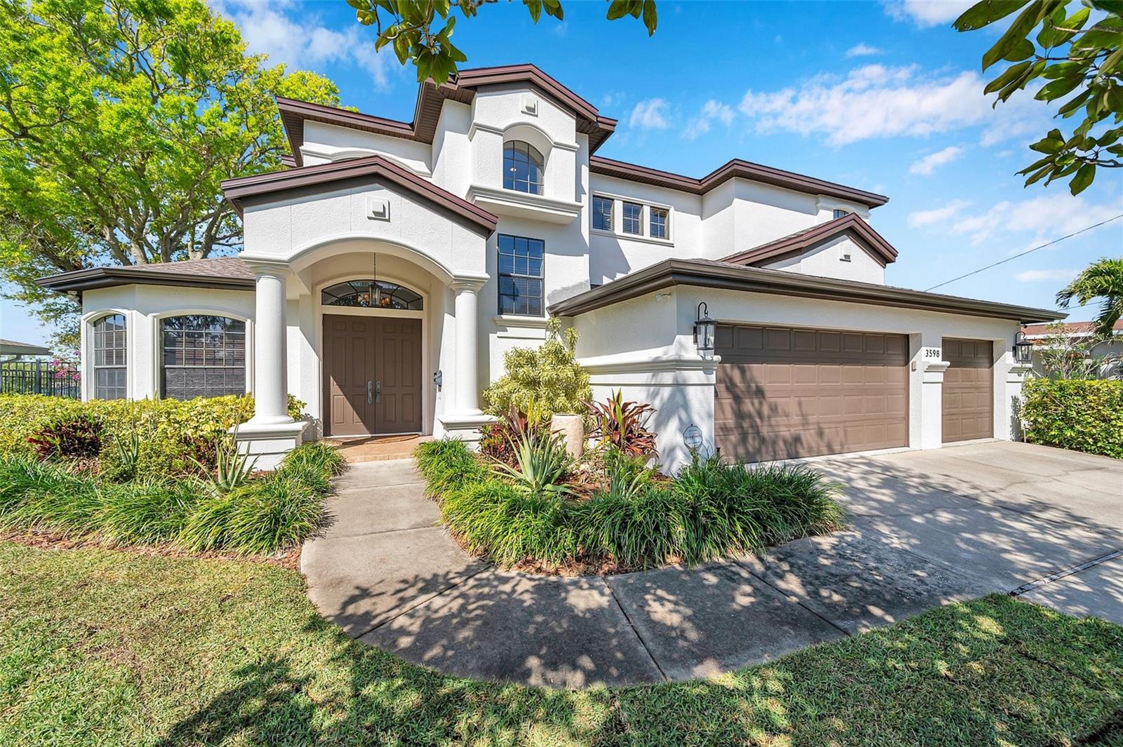 Soaring 20ft ceilings combined with breathtaking water views from the moment you enter this custom built Costanza Home will immediately put this home at the top of your list! This home was methodically designed to highlight the incredible one of a kind water view from almost every room in the home. Recent enhancements in the last few years have elevated the style which is sure to impress the most discerning of Buyers as well as many modern smart modifications throughout. New engineered hardwood floors throughout the home. Stunning Danby Marble countertops are a luxurious upgrade to an already gorgeous kitchen. The Living room off of the kitchen with custom crown molding and breathtaking open water views. Spacious primary bedroom features a private sitting area and a balcony, dual walk-in closets created by Closets By Design, impressive water views with gorgeous sunsets. The 3-car garage leads to the owner’s entry with a mud room and flex space that is currently being used as a playroom. Upstairs, the open loft / media room provides a second flexible space to be enjoyed by everyone in the home. The remaining two upstairs bedrooms share an updated Jack and Jill bathroom. The first floor office can also be used as a guest bedroom steps away from the downstairs full bathroom. Updates include New (2021) high efficiency Trane HVAC system including new upstairs ductwork, new insulation (r38) and a smart thermostat. New 34 x 12 dock with lower landing for easy kayak launch or boat loading, pilings, and refurbished 10k lb lift (2022). Professional Full House Exterior & Interior Paint (2022). Concrete / Vinyl seawall engineered for ease in adding a pool if desired. GE washer and dryer (2021). New Roof (2024), This high and dry home sits at an 8.8 ft elevation and did not sustain any flood water from Hurricane Helene. Current Flood Policy is $843 a year. Please call today to schedule a private showing. POOL Rendering available upon request.