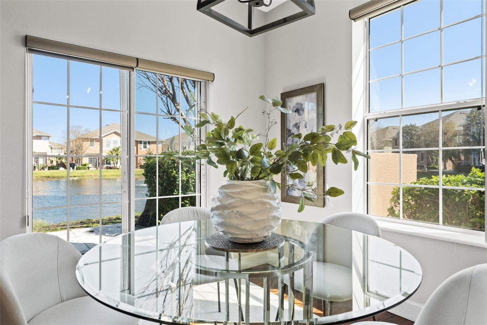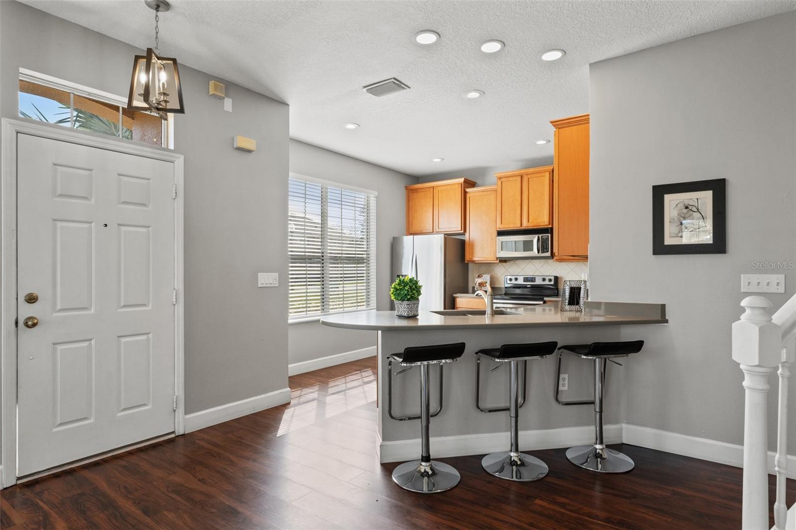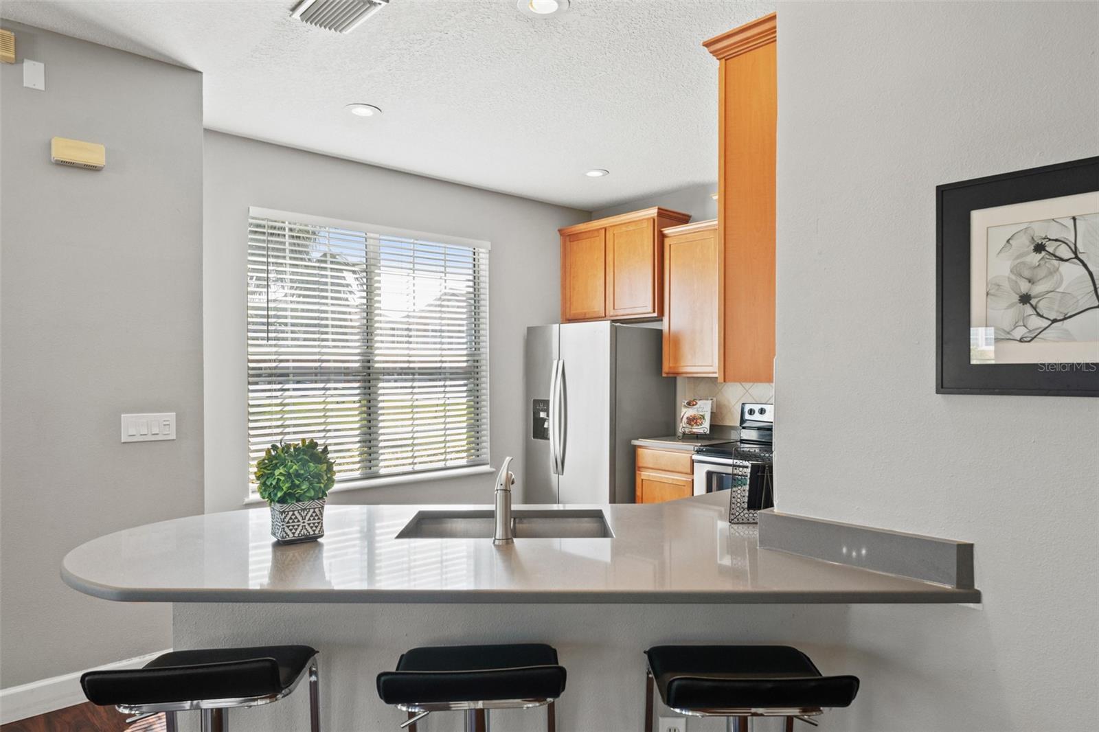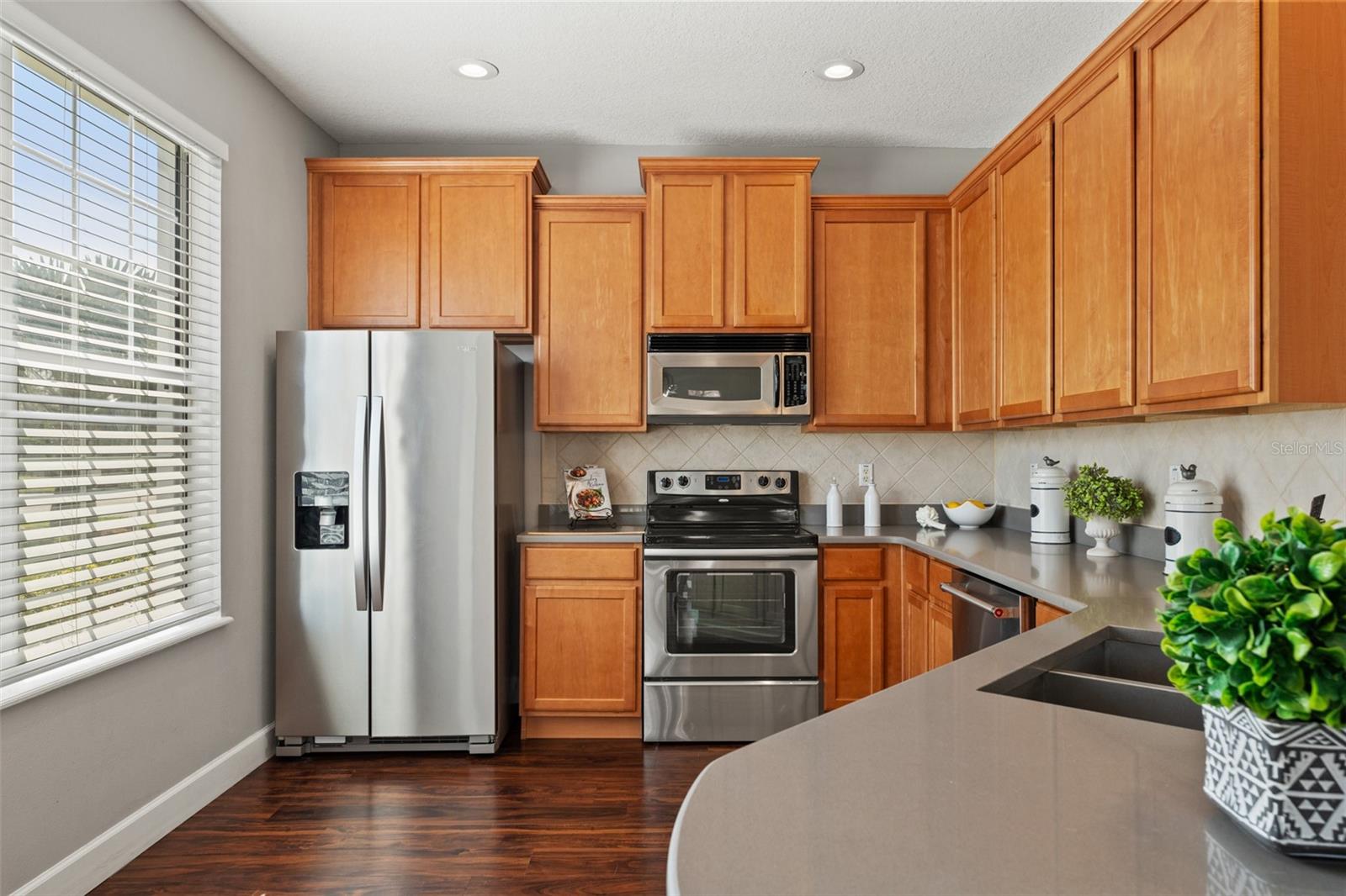 This beautifully updated townhome in Bay Breeze Cove , which does NOT require flood insurance, offers the perfect blend of privacy and modern luxury, with the feel of a single-family home and none of the noise! Nestled in a quiet, well-maintained community, and situated just off the pond, the property is located just off 4th Street N and 50th Ave, you'll enjoy the convenience of being a short walk away from shopping, dining, and entertainment. With 3 spacious bedrooms, 2.5 baths, 1,480 square feet, and a 2 car garage, this home exudes both style and functionality. The kitchen features quartz countertops and stainless steel appliances, ideal for entertaining or enjoying a quiet meal at home. The open-concept living and dining areas have abundant natural light and provide ample space for gatherings or relaxation. The primary suite is a true retreat, complete with a generous walk-in closet and an en-suite bath featuring dual vanities for ultimate convenience. Other highlights include high ceilings, plenty of storage, and a private outdoor space perfect for enjoying Florida's year-round weather. This home also comes with Fabric Shield Hurricane Panels ($7000) by Home Safety Solutions. Fabric Hurricane Custom Panels are light weight, easy to install and are made of PVC coated fabric that is tested to block wind, rain, and storm-driven projectiles to meet stringent building code requirements. The fabric is a natural translucent white color enabling homeowners to have more light in the house during the day. Set within a safe and family-friendly community, residents will also appreciate the added amenities like the beautiful community pool and a dog park for their furry companions. Best of all, this prime location puts you just 10 minutes from downtown St. Petersburg, 30 minutes from Tampa, and 30 minutes from the beautiful Gulf Coast beaches. With everything this home has to offer, it won't last long—don't miss your chance to make it yours!