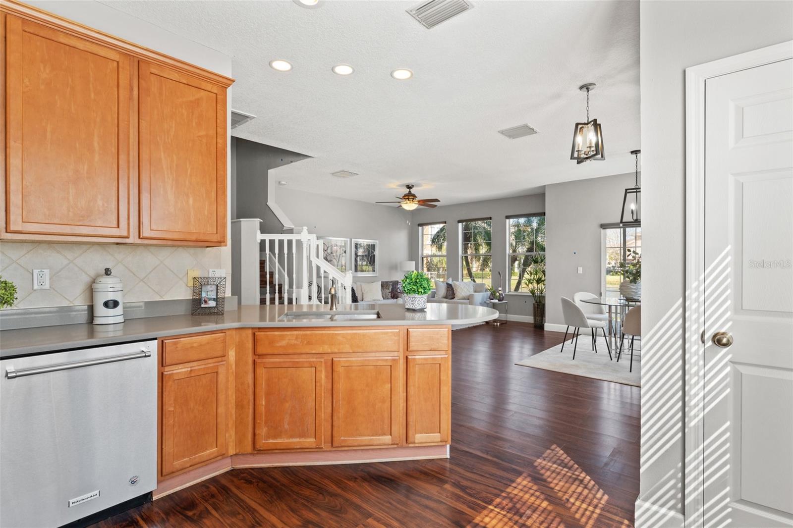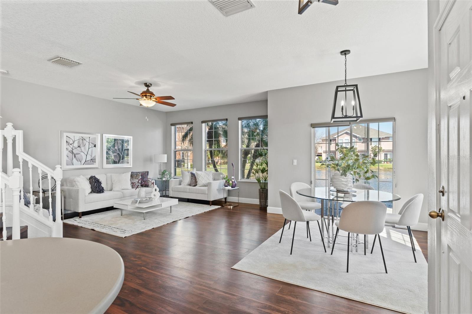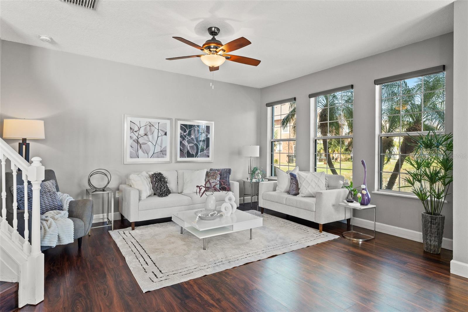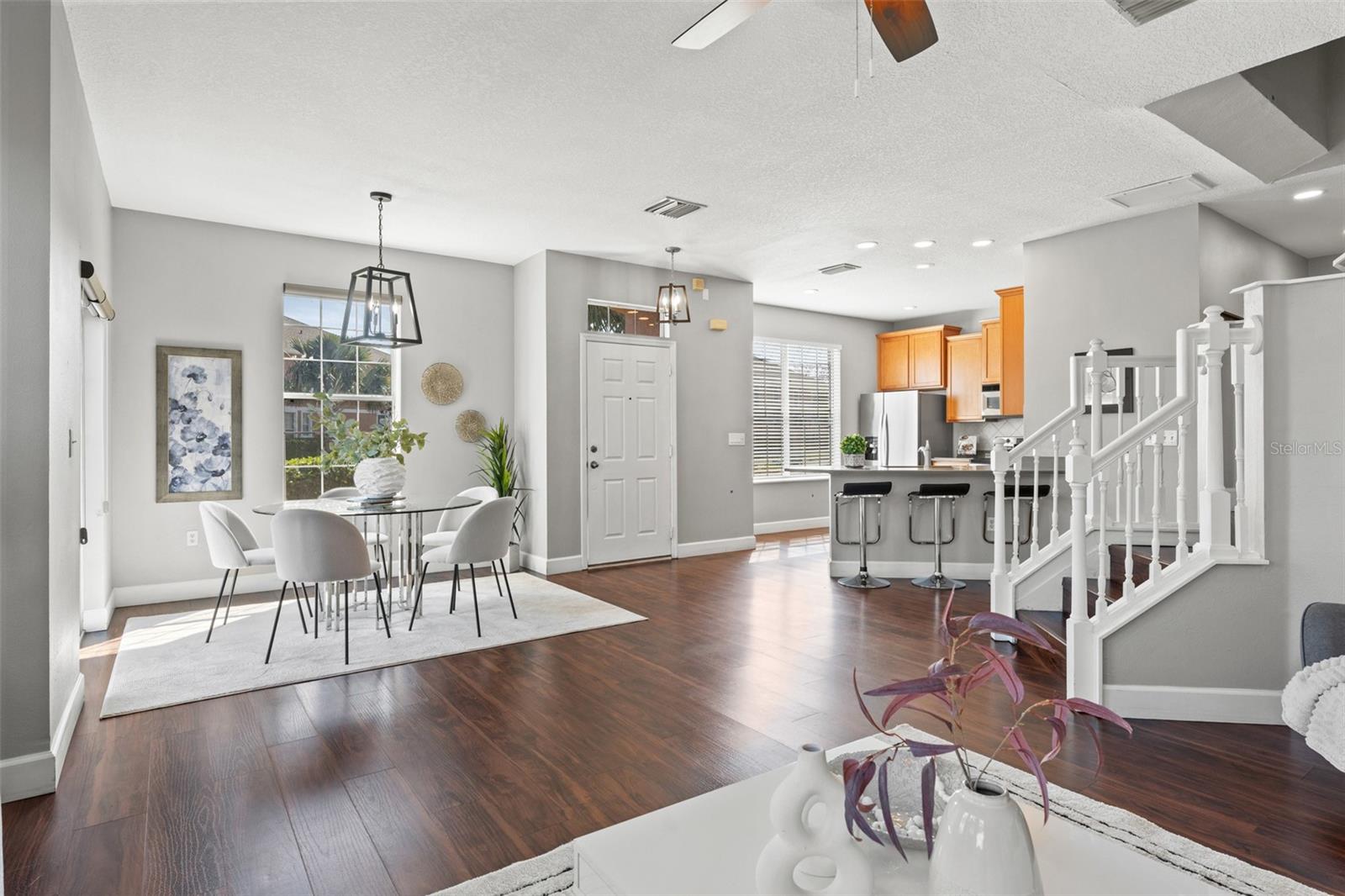 This beautifully updated townhome in Bay Breeze Cove , which does NOT require flood insurance, offers the perfect blend of privacy and modern luxury, with the feel of a single-family home and none of the noise! Nestled in a quiet, well-maintained community, and situated just off the pond, the property is located just off 4th Street N and 50th Ave, you'll enjoy the convenience of being a short walk away from shopping, dining, and entertainment. With 3 spacious bedrooms, 2.5 baths, 1,480 square feet, and a 2 car garage, this home exudes both style and functionality. The kitchen features quartz countertops and stainless steel appliances, ideal for entertaining or enjoying a quiet meal at home. The open-concept living and dining areas have abundant natural light and provide ample space for gatherings or relaxation. The primary suite is a true retreat, complete with a generous walk-in closet and an en-suite bath featuring dual vanities for ultimate convenience. Other highlights include high ceilings, plenty of storage, and a private outdoor space perfect for enjoying Florida's year-round weather. This home also comes with Fabric Shield Hurricane Panels ($7000) by Home Safety Solutions. Fabric Hurricane Custom Panels are light weight, easy to install and are made of PVC coated fabric that is tested to block wind, rain, and storm-driven projectiles to meet stringent building code requirements. The fabric is a natural translucent white color enabling homeowners to have more light in the house during the day. Set within a safe and family-friendly community, residents will also appreciate the added amenities like the beautiful community pool and a dog park for their furry companions. Best of all, this prime location puts you just 10 minutes from downtown St. Petersburg, 30 minutes from Tampa, and 30 minutes from the beautiful Gulf Coast beaches. With everything this home has to offer, it won't last long—don't miss your chance to make it yours!