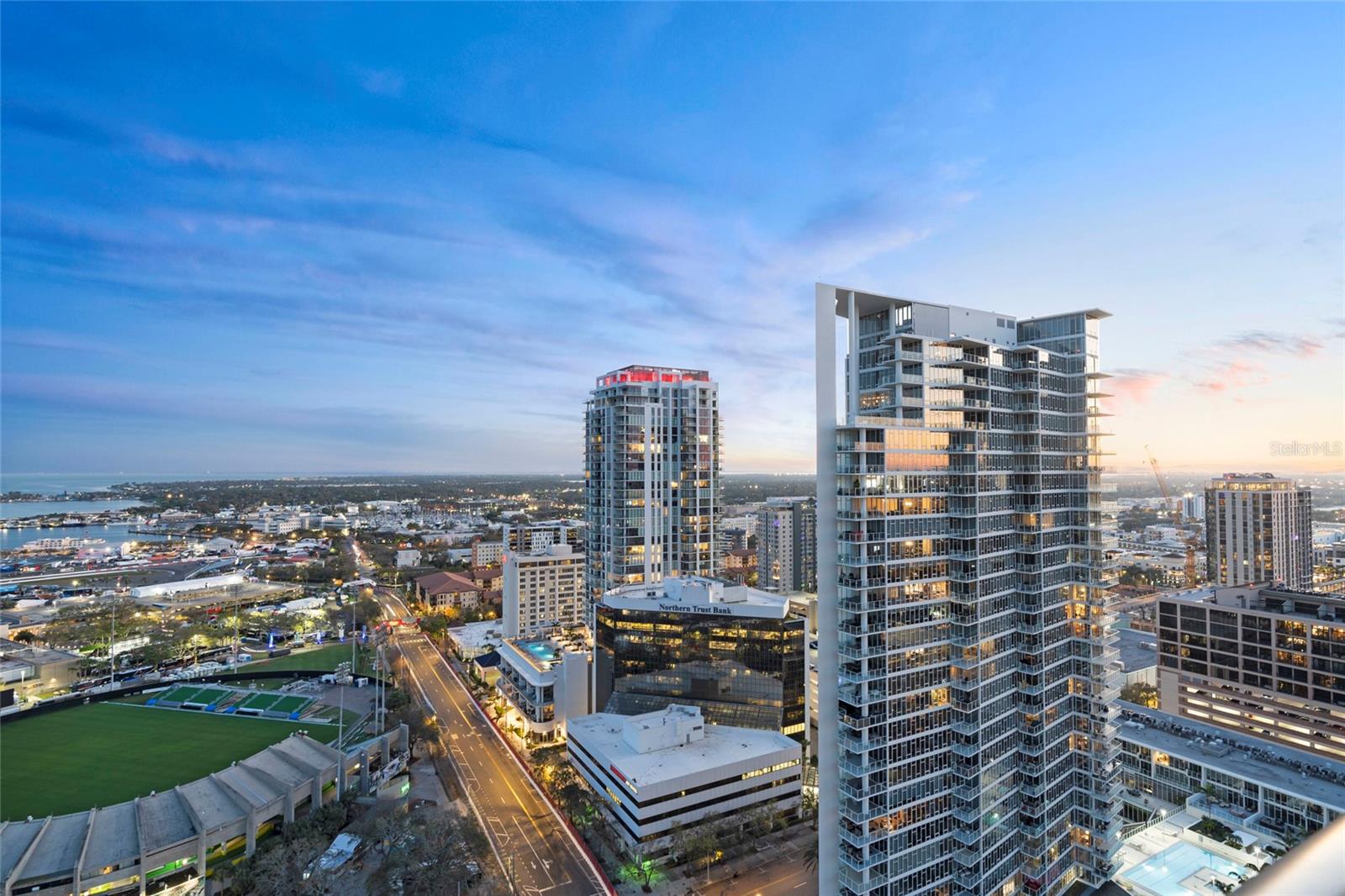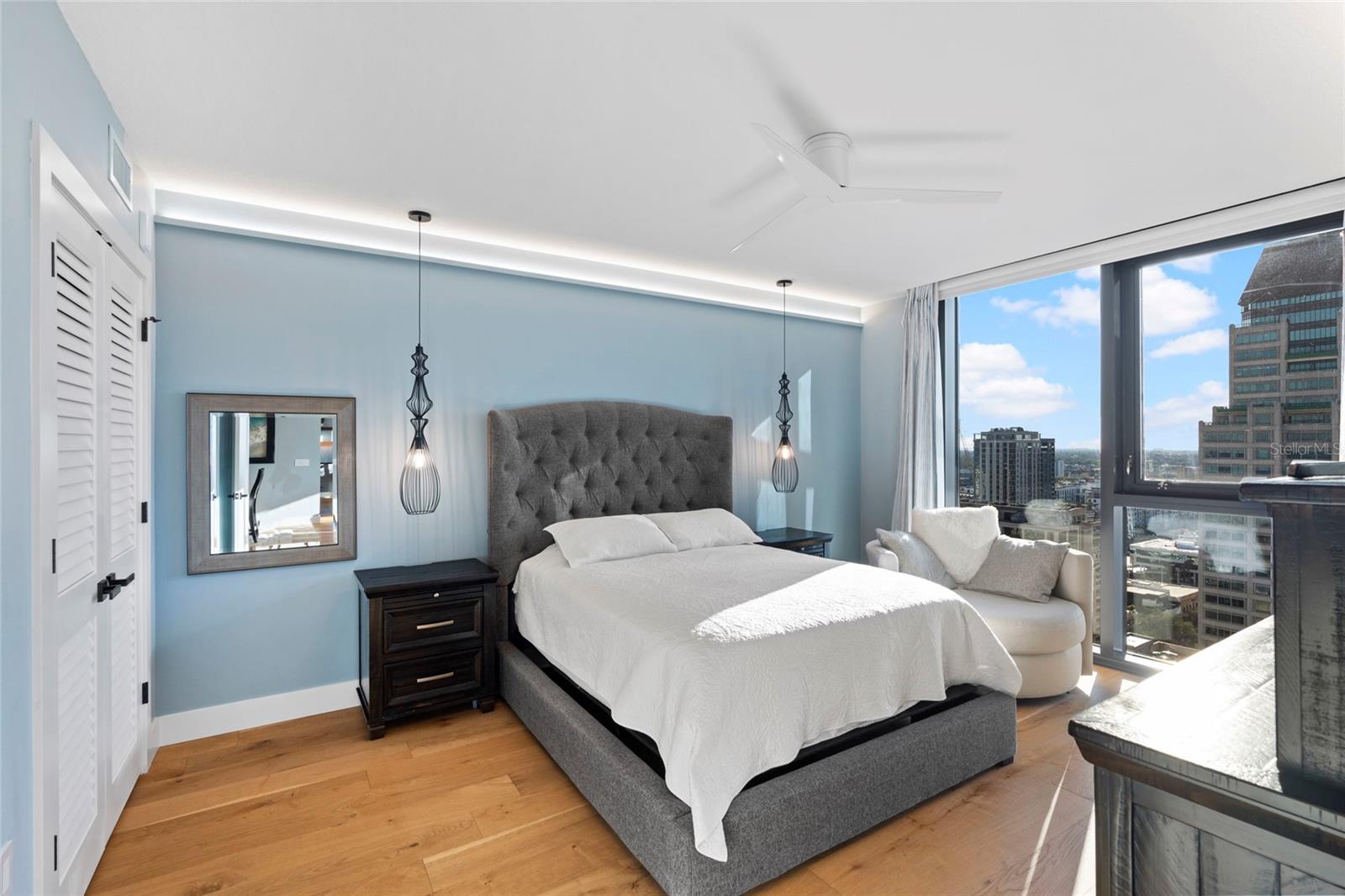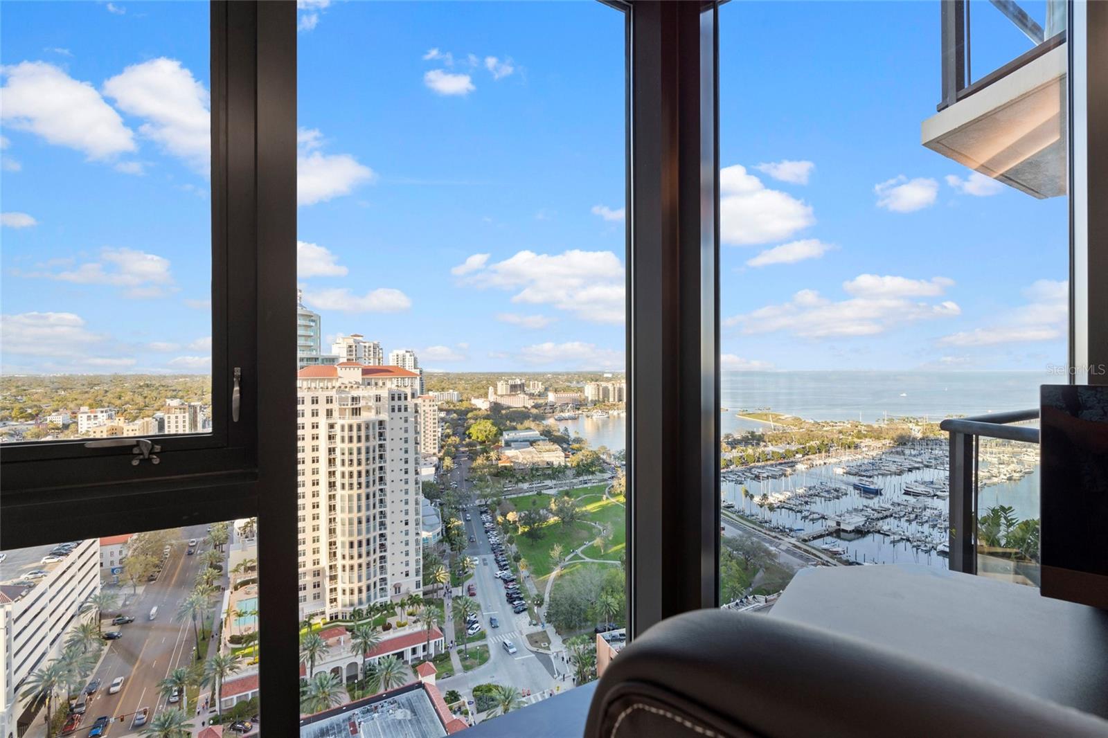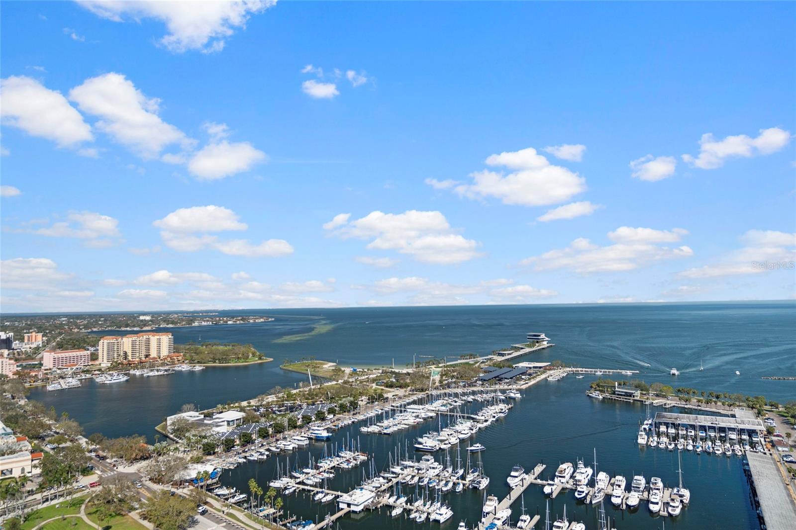 Step into luxury with this fully remodeled 2-bedroom, 2.5-bath condominium on the 24th floor of the renowned Bayfront Tower. Spanning an expansive 2,158 square feet, this NW corner unit offers unparalleled panoramic views of the St. Petersburg skyline, Tampa Bay, and beyond—encompassing the Skyway Bridge, the Gulf of America, downtown St. Petersburg, and even downtown Tampa. From every window, the vibrant city and serene bay unfold in breathtaking 180-degree vistas. Designed for modern luxury, this residence was meticulously remodeled in 2019 with the finest materials and finishes. As you enter, you are immediately greeted by 60 feet of floor-to-ceiling windows with electric shades that flood the space with natural light, highlighting the wide engineered plank hardwood floors and the porcelain tile found throughout the bathrooms. Thoughtfully crafted with LED indirect lighting and Lutron wireless controls, the home exudes a warm and inviting ambiance. The gourmet kitchen is a chef’s dream, featuring a top-tier induction cooktop, double wall oven with a microwave/convection combo, Sub-Zero refrigerator, Asko dishwasher, wine cooler, and custom cabinetry topped with quartz countertops. Whether preparing an intimate meal or entertaining guests, the stunning views make every culinary experience extraordinary. The kitchen provides the perfect vantage point for breathtaking sunsets, ensuring that each evening feels like a special occasion. The flexible layout includes an office/den/guest bedroom with scenic views of the Vinoy Basin and Tampa. The owner's suite offers a private retreat, complete with a spacious 14.5’ x 10.5’ walk-in closet and calming sunset views. Bayfront Tower offers an array of unparalleled amenities designed to enhance your lifestyle. Indulge in the resort-like rooftop, featuring a heated pool, gas grills, 360 running track, and shaded areas for unwinding while soaking in stunning views. The building also boasts a state-of-the-art gym, sauna, yoga/pilates room, game and card rooms, and a library, ensuring every resident has access to first-class leisure and convenience. The exclusive features continue with valet service available 24/7, offering the ultimate in convenience. For those looking for a true sense of community, Bayfront Tower also offers an auditorium, two bars, and an expansive ballroom, with a capacity of up to 150 guests, that has hosted countless memorable events, including weddings, making it the ideal space for gatherings. Located in the heart of Downtown St. Petersburg, this residence places you just steps away from fine dining, art galleries, museums, the St. Pete Yacht Club, lush parks, and vibrant nightlife. Experience the charm of Beach Drive, where the elegance of St. Pete meets the luxury lifestyle you deserve.