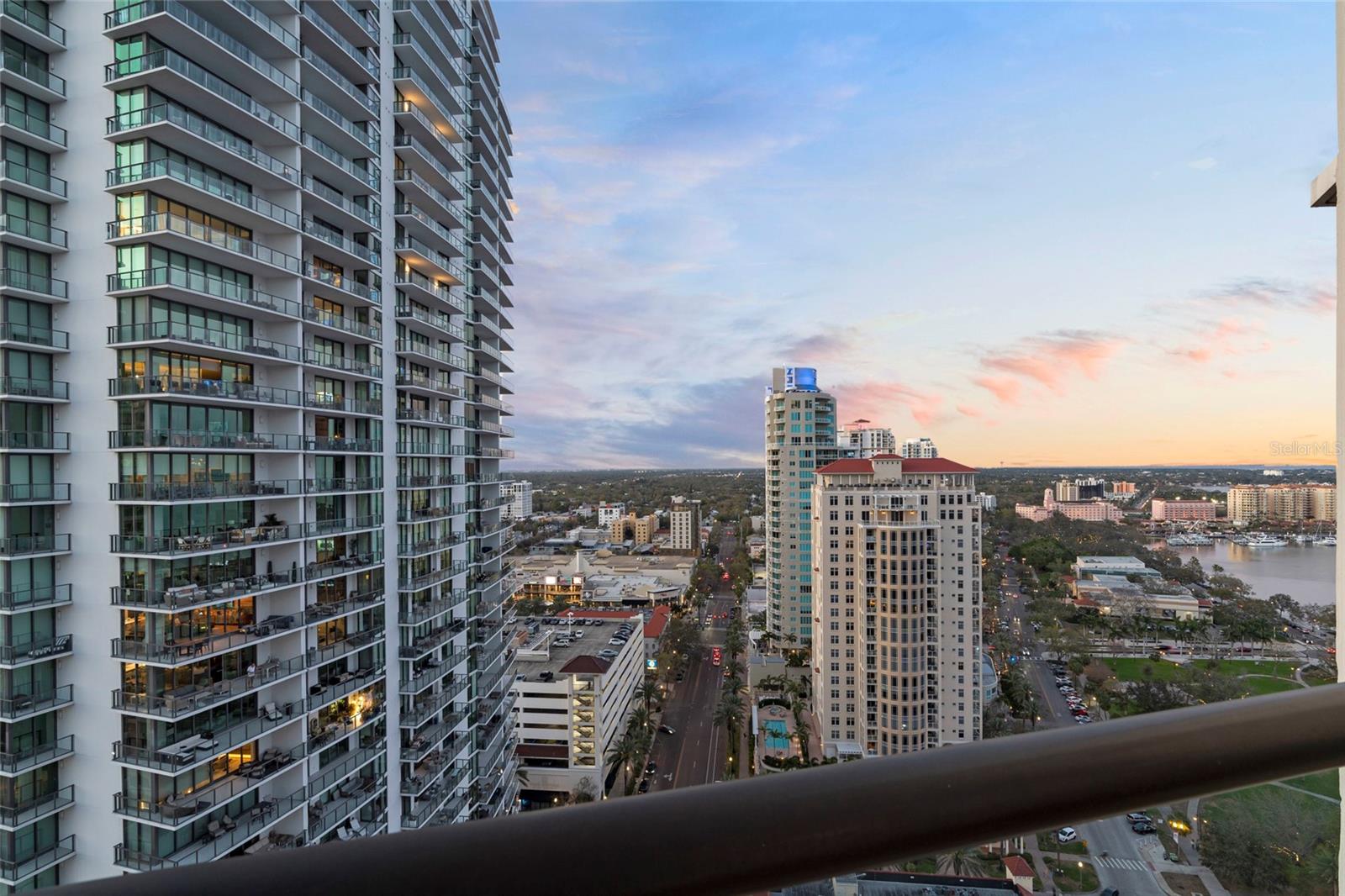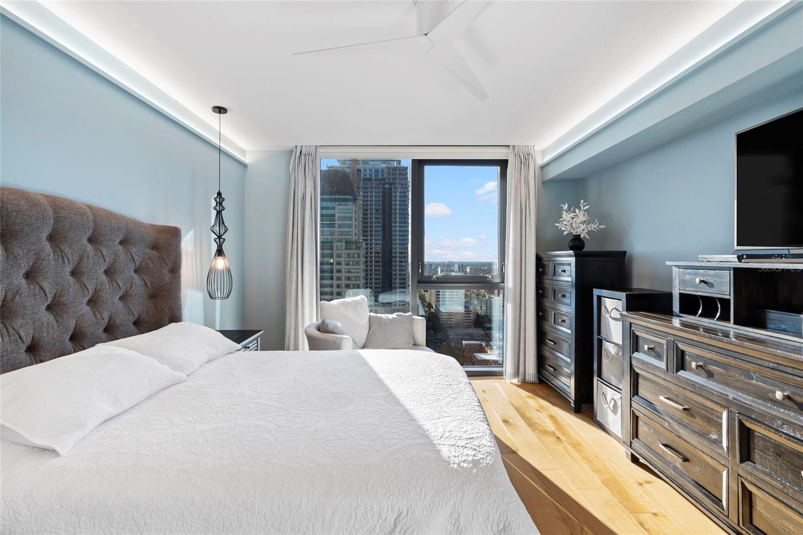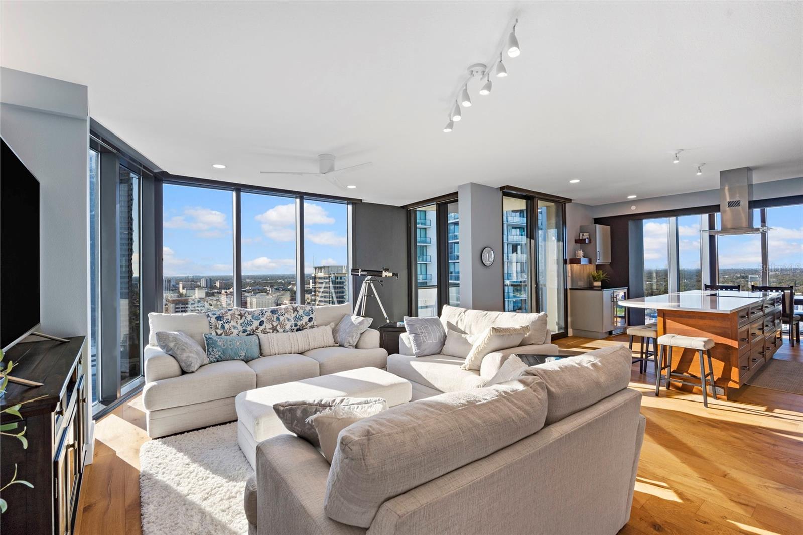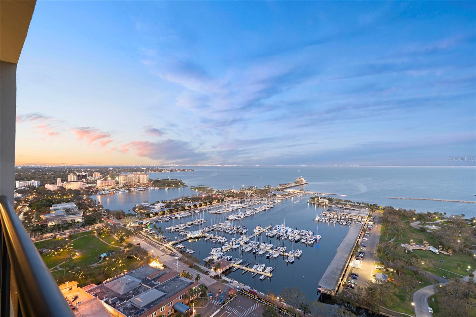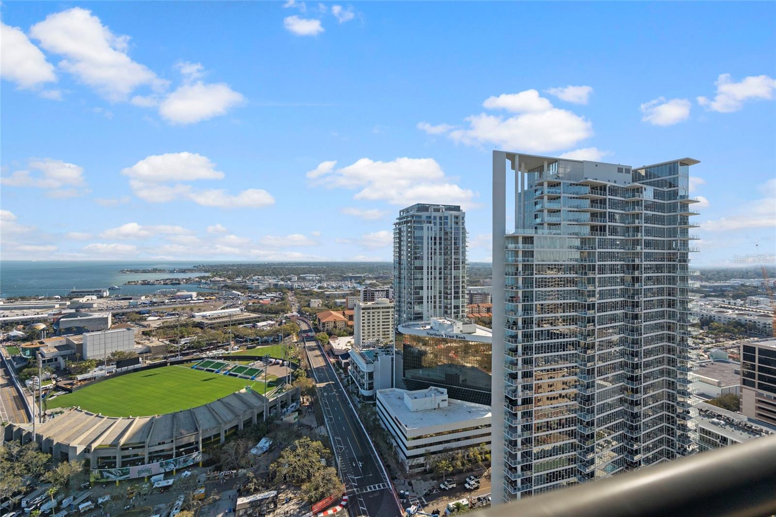 Step into luxury with this fully remodeled 2-bedroom, 2.5-bath condominium on the 24th floor of the renowned Bayfront Tower. Spanning an expansive 2,158 square feet, this NW corner unit offers unparalleled panoramic views of the St. Petersburg skyline, Tampa Bay, and beyond—encompassing the Skyway Bridge, the Gulf of America, downtown St. Petersburg, and even downtown Tampa. From every window, the vibrant city and serene bay unfold in breathtaking 180-degree vistas. Designed for modern luxury, this residence was meticulously remodeled in 2019 with the finest materials and finishes. As you enter, you are immediately greeted by 60 feet of floor-to-ceiling windows with electric shades that flood the space with natural light, highlighting the wide engineered plank hardwood floors and the porcelain tile found throughout the bathrooms. Thoughtfully crafted with LED indirect lighting and Lutron wireless controls, the home exudes a warm and inviting ambiance. The gourmet kitchen is a chef’s dream, featuring a top-tier induction cooktop, double wall oven with a microwave/convection combo, Sub-Zero refrigerator, Asko dishwasher, wine cooler, and custom cabinetry topped with quartz countertops. Whether preparing an intimate meal or entertaining guests, the stunning views make every culinary experience extraordinary. The kitchen provides the perfect vantage point for breathtaking sunsets, ensuring that each evening feels like a special occasion. The flexible layout includes an office/den/guest bedroom with scenic views of the Vinoy Basin and Tampa. The owner's suite offers a private retreat, complete with a spacious 14.5’ x 10.5’ walk-in closet and calming sunset views. Bayfront Tower offers an array of unparalleled amenities designed to enhance your lifestyle. Indulge in the resort-like rooftop, featuring a heated pool, gas grills, 360 running track, and shaded areas for unwinding while soaking in stunning views. The building also boasts a state-of-the-art gym, sauna, yoga/pilates room, game and card rooms, and a library, ensuring every resident has access to first-class leisure and convenience. The exclusive features continue with valet service available 24/7, offering the ultimate in convenience. For those looking for a true sense of community, Bayfront Tower also offers an auditorium, two bars, and an expansive ballroom, with a capacity of up to 150 guests, that has hosted countless memorable events, including weddings, making it the ideal space for gatherings. Located in the heart of Downtown St. Petersburg, this residence places you just steps away from fine dining, art galleries, museums, the St. Pete Yacht Club, lush parks, and vibrant nightlife. Experience the charm of Beach Drive, where the elegance of St. Pete meets the luxury lifestyle you deserve.